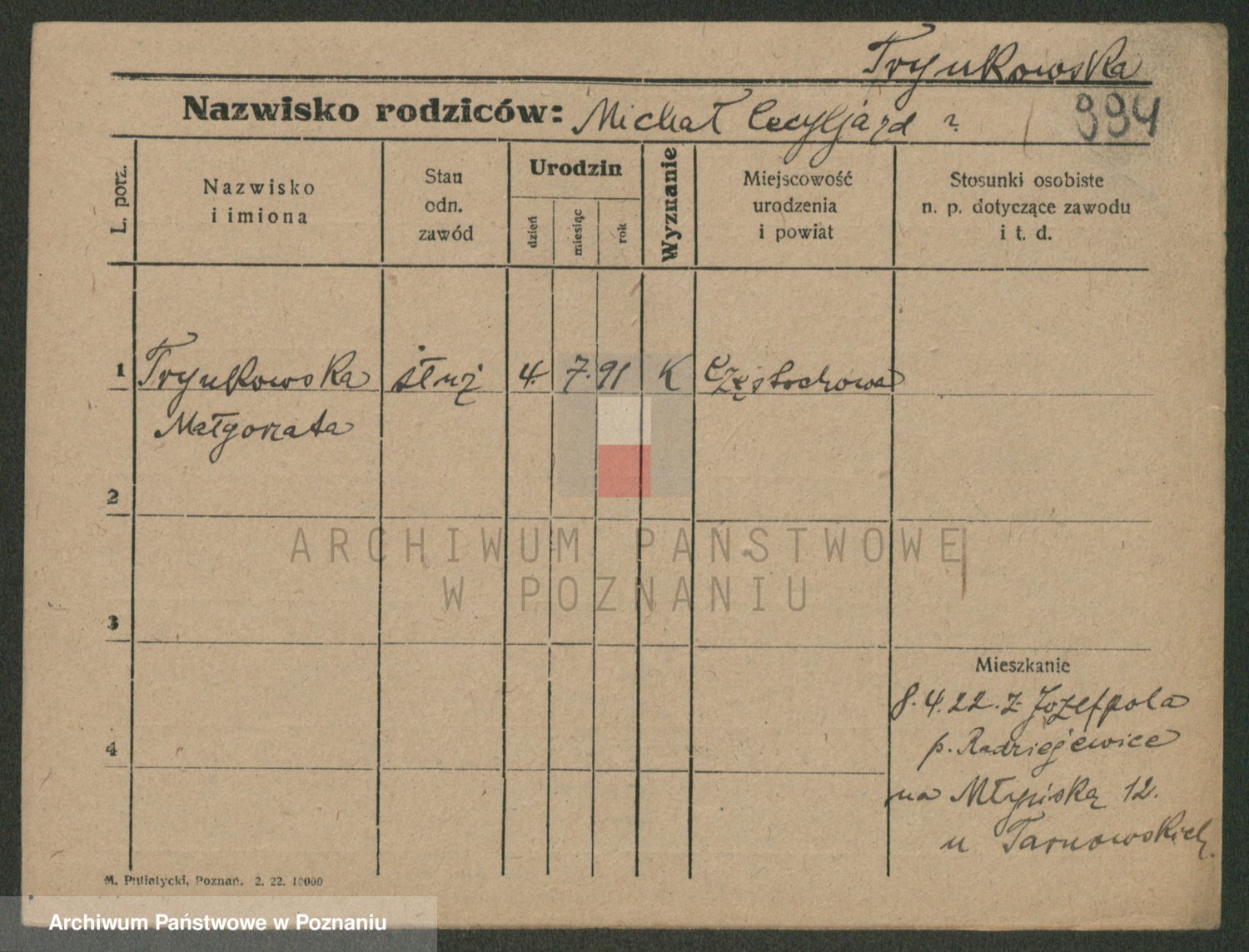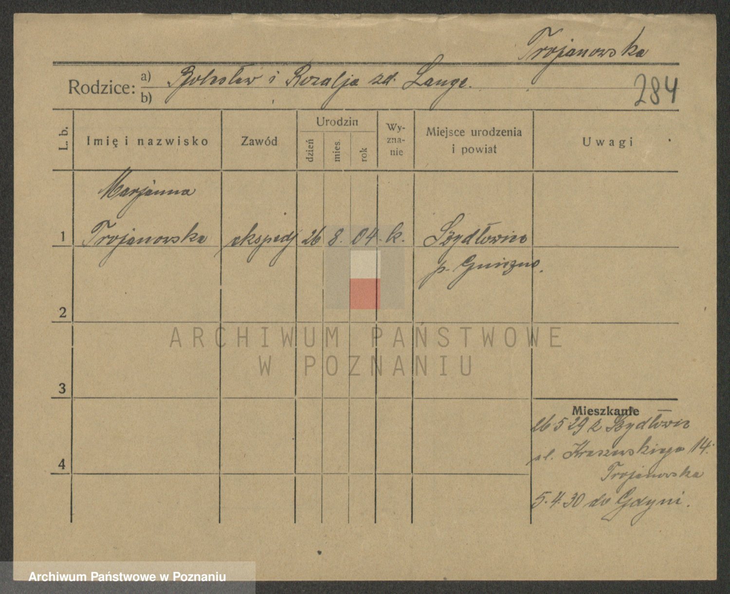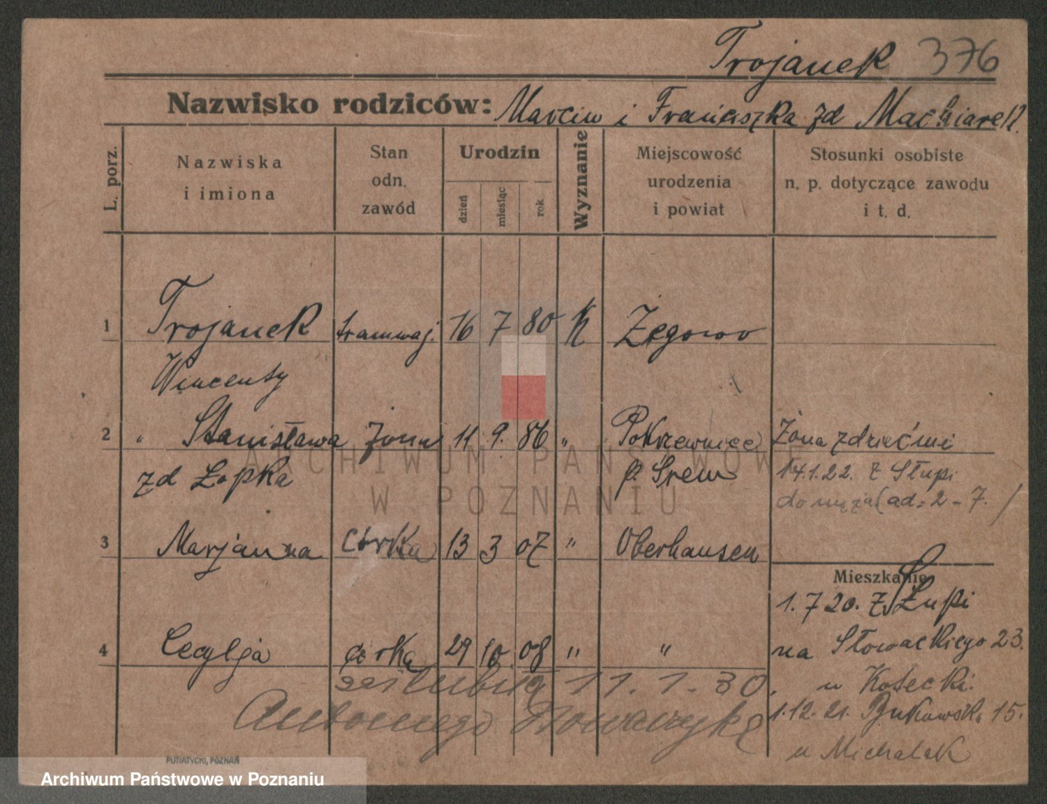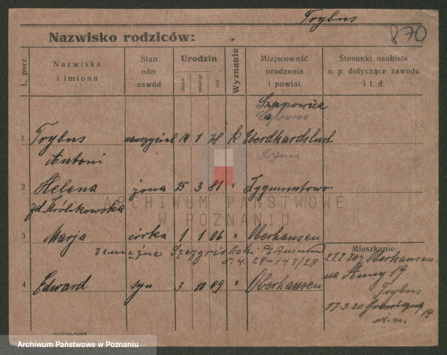 Trynczek zd. Schwachała, Marja