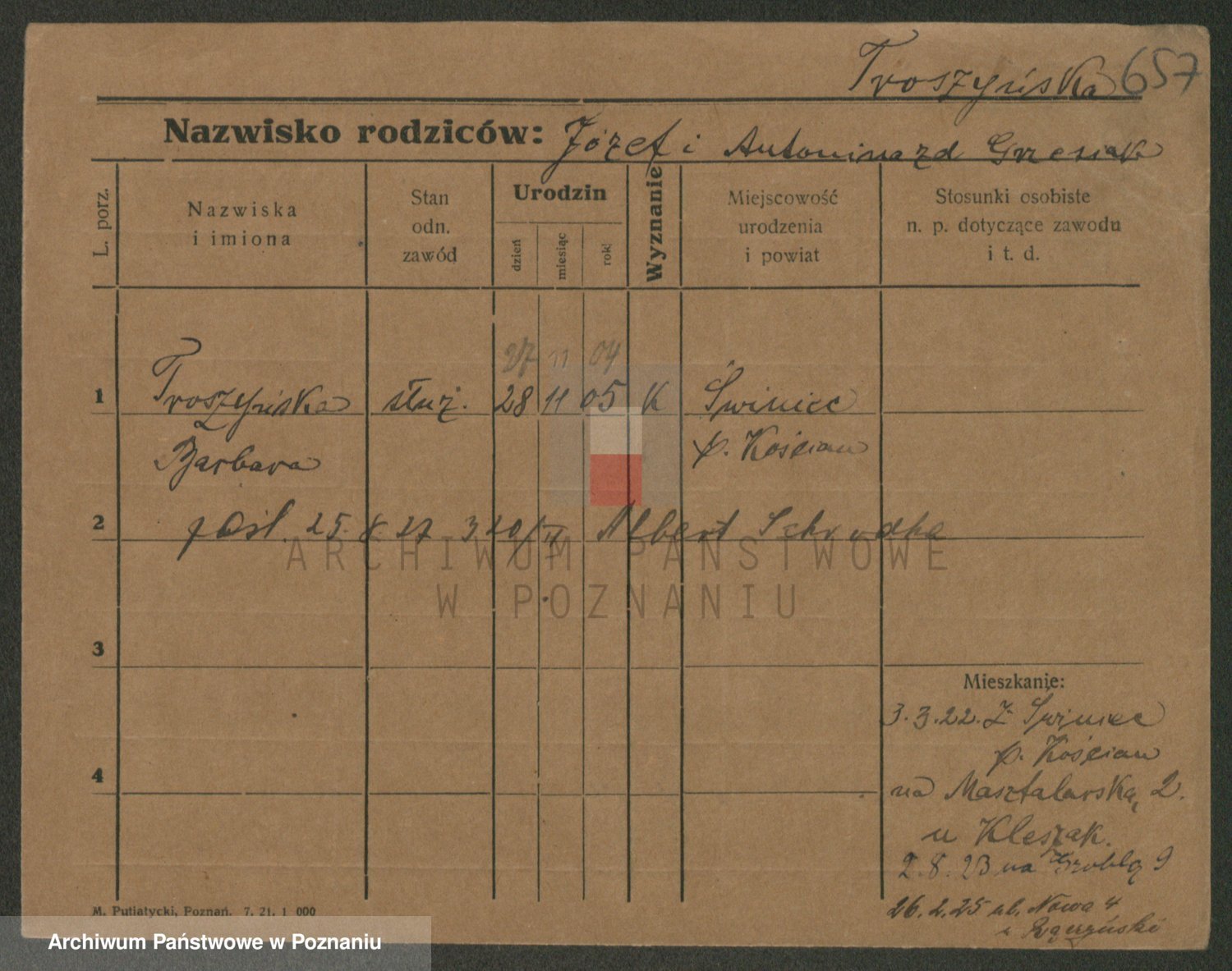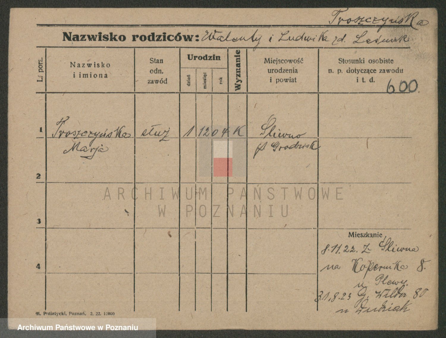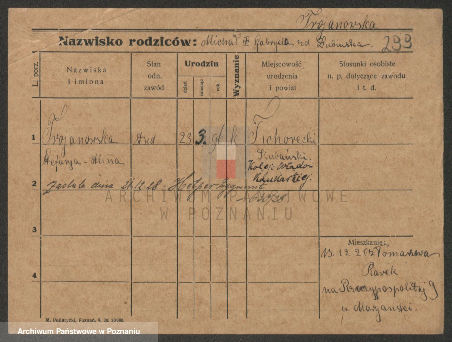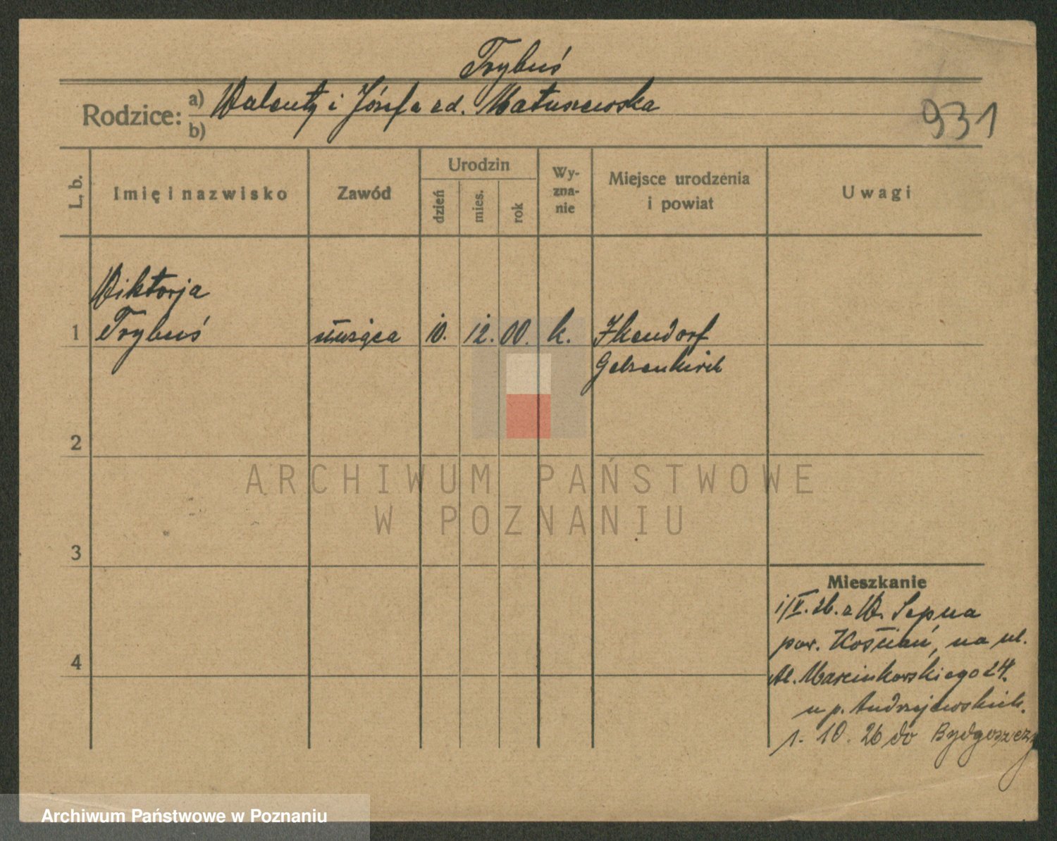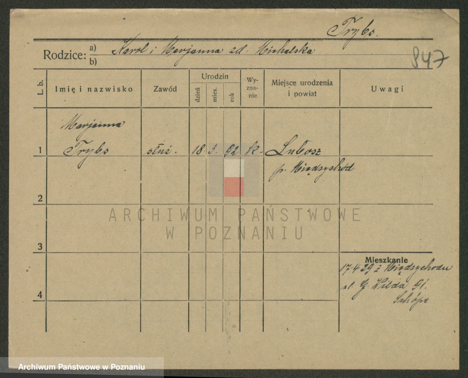 Trynczek zd. Schwachała, Marja
