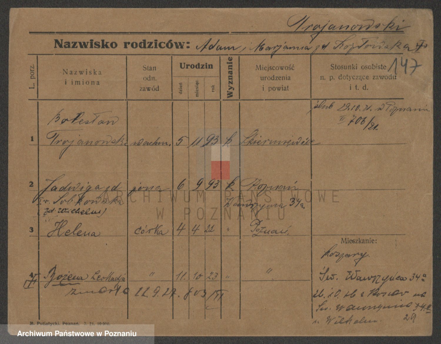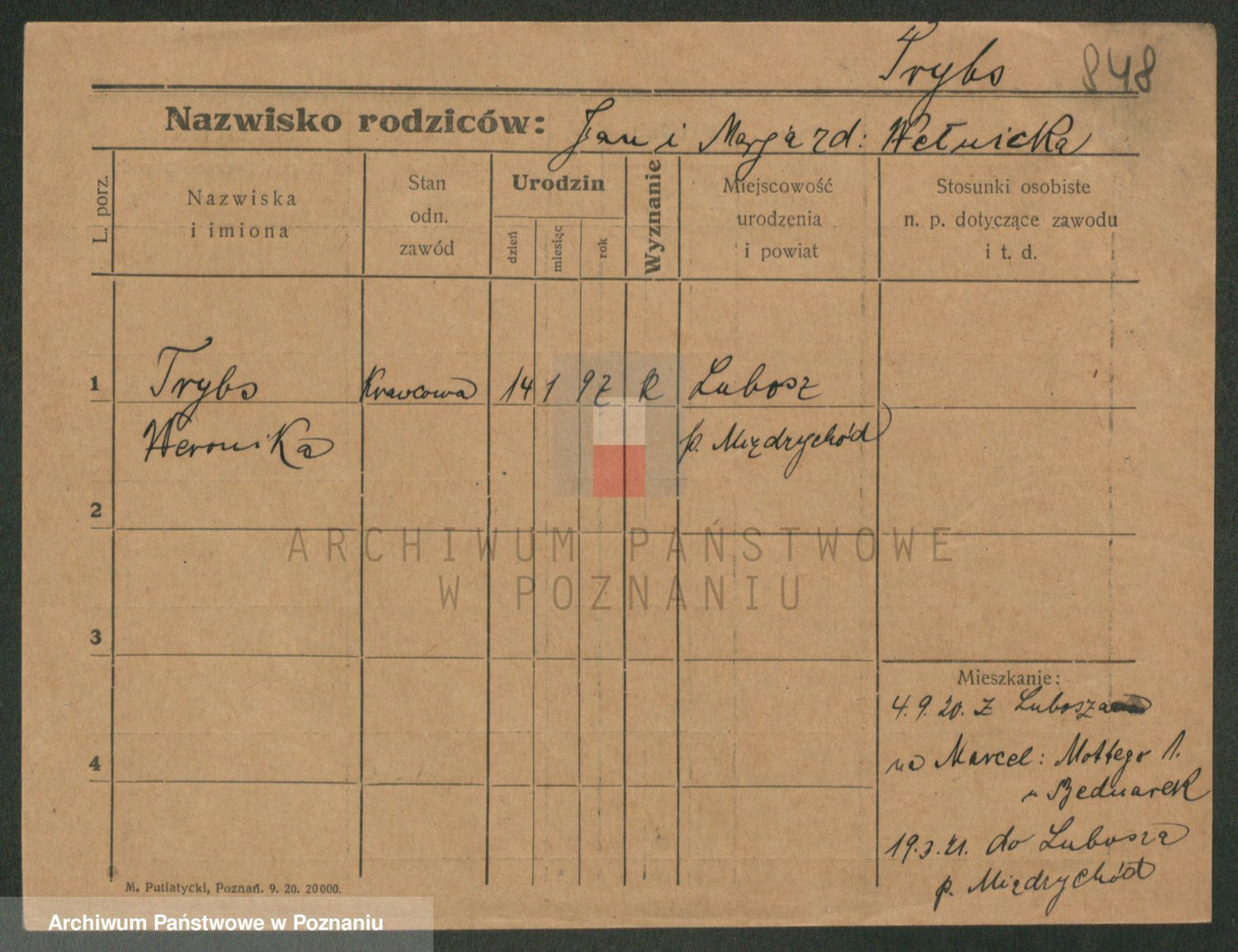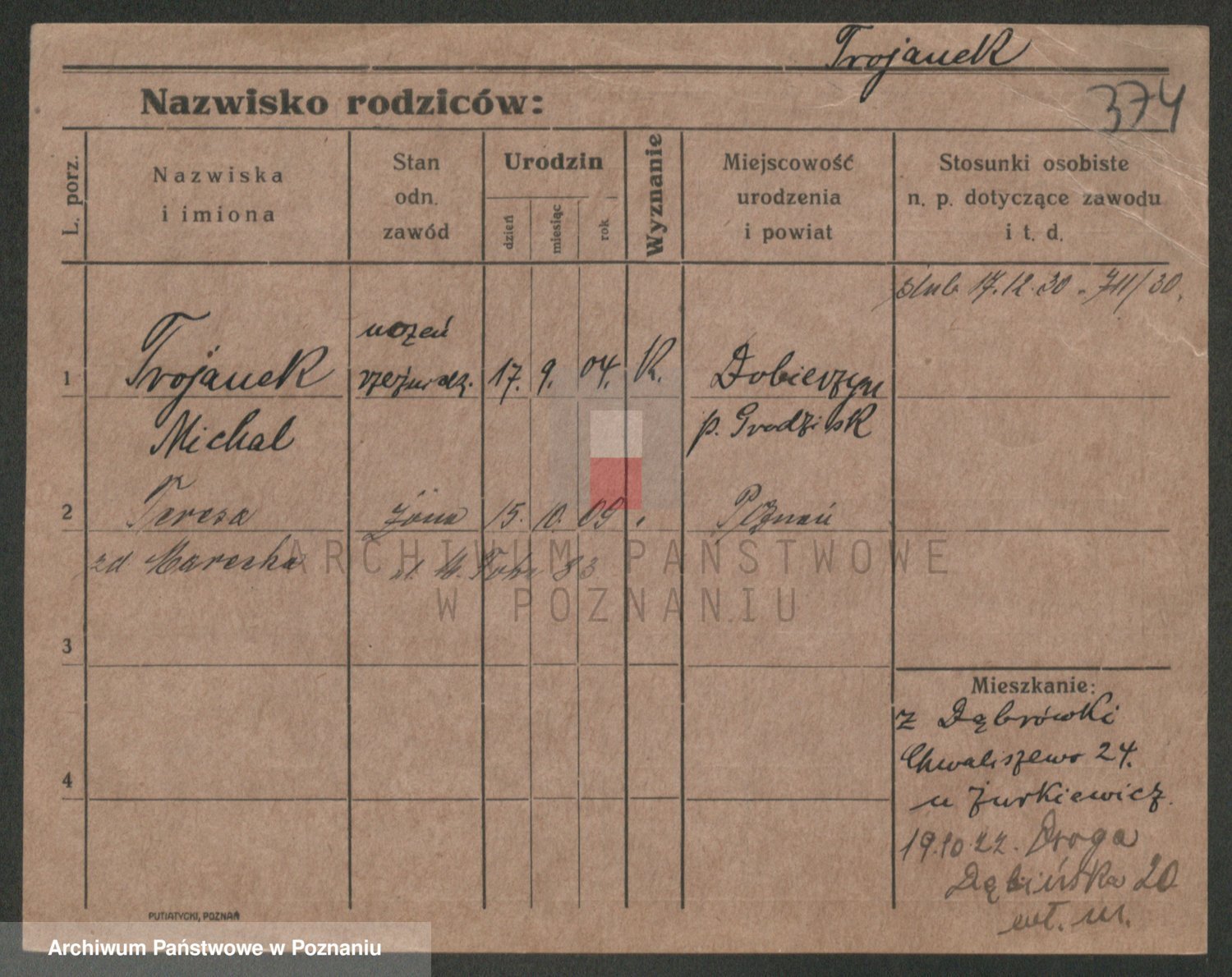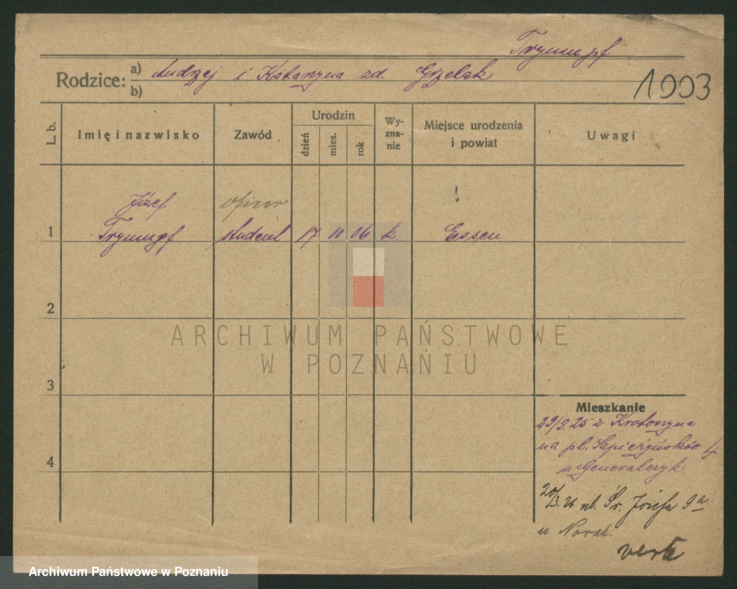 Trynczek zd. Schwachała, Marja