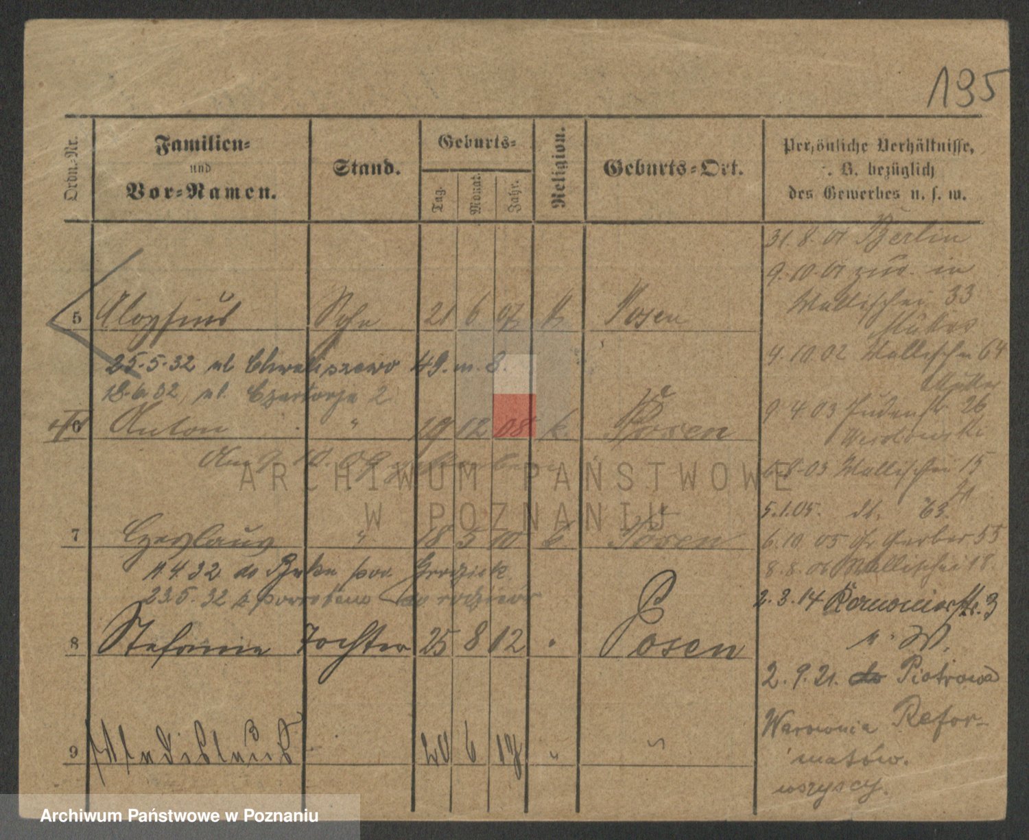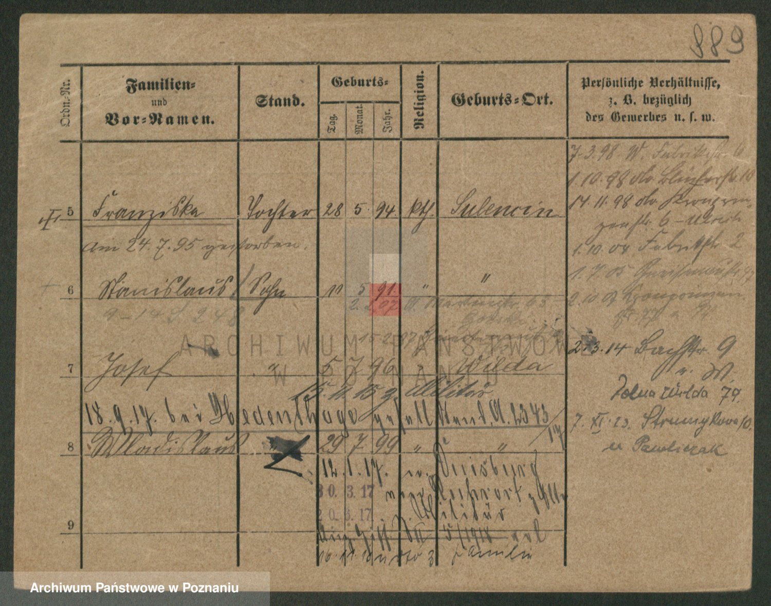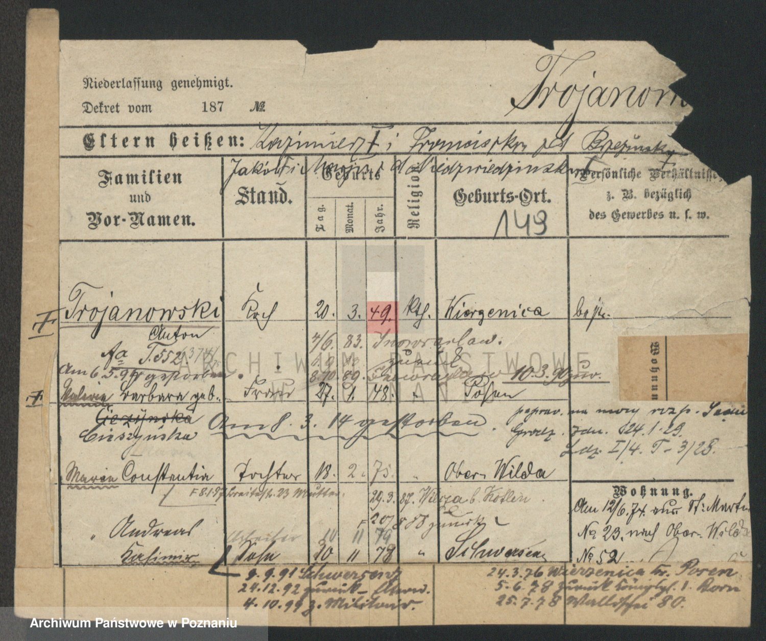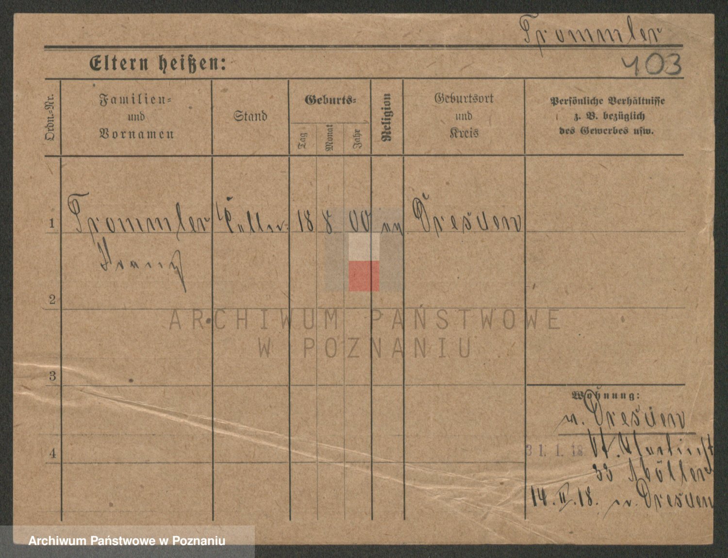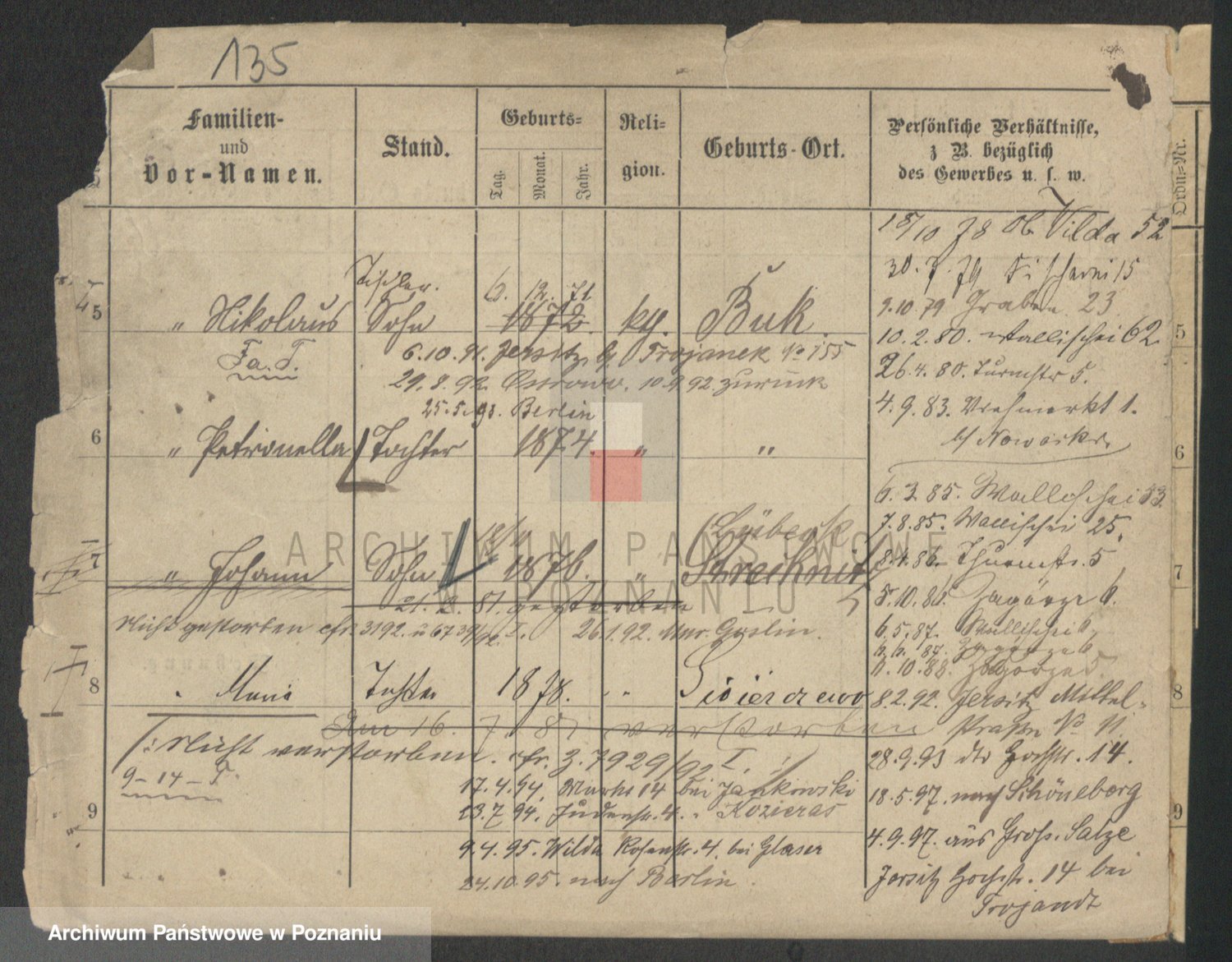 Durch Anklicken eines Namens oder Kartensymbols gelangen Sie zum Vorschau einer Personalkarte. Sie können die Ansicht vergrößern (Symbole am oberen Rand) oder zwischen den Scans wechseln (Pfeile an den Seiten).