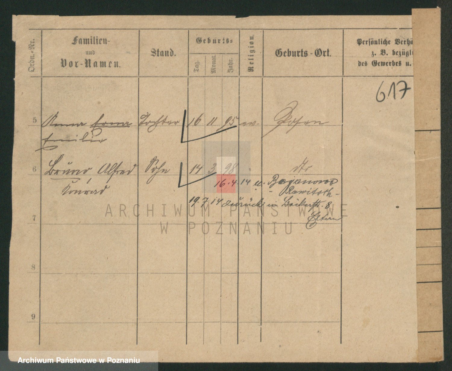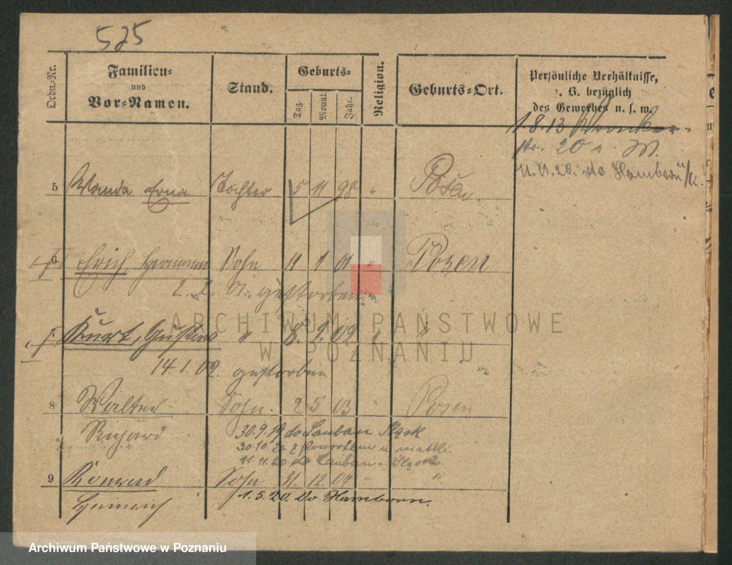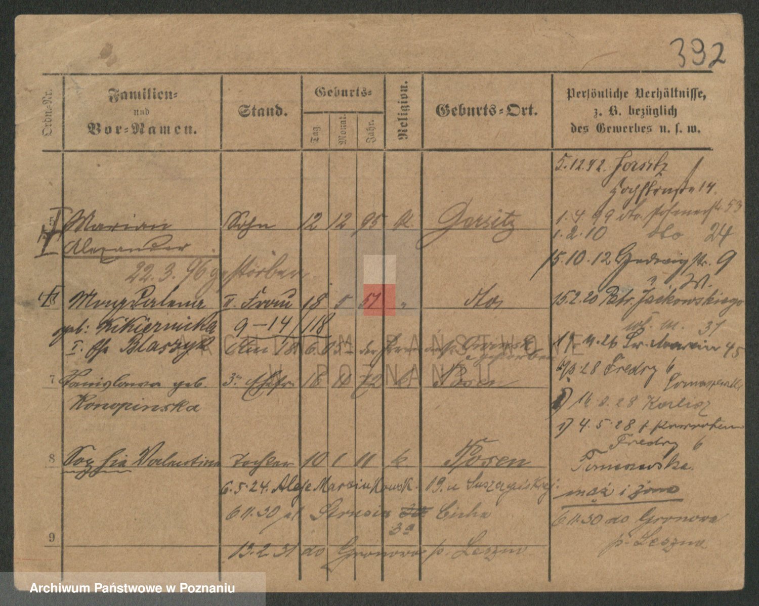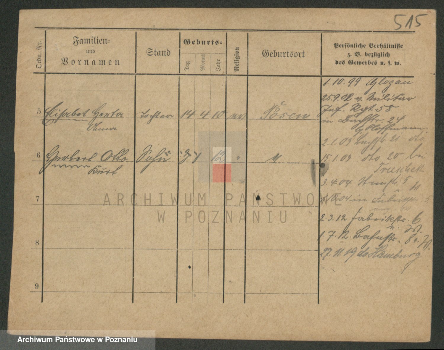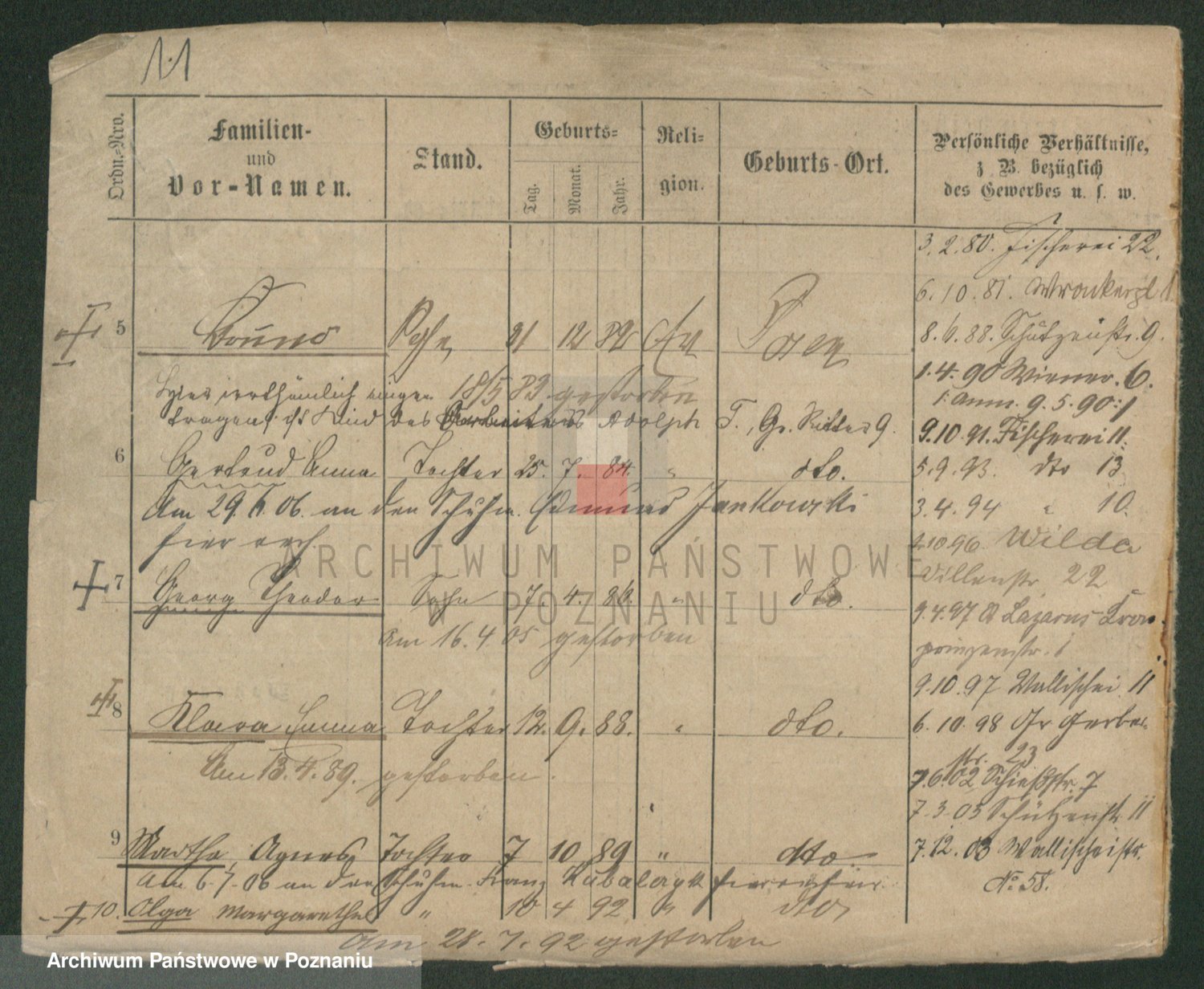 Durch Anklicken eines Namens oder Kartensymbols gelangen Sie zum Vorschau einer Personalkarte. Sie können die Ansicht vergrößern (Symbole am oberen Rand) oder zwischen den Scans wechseln (Pfeile an den Seiten).