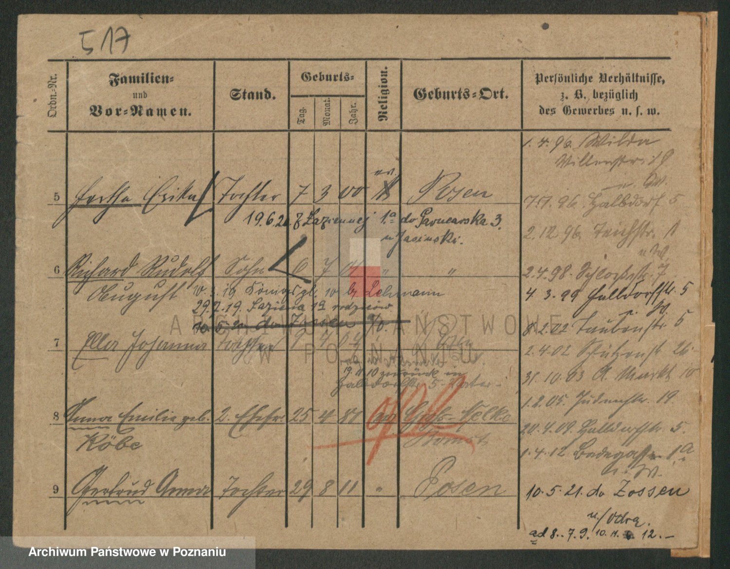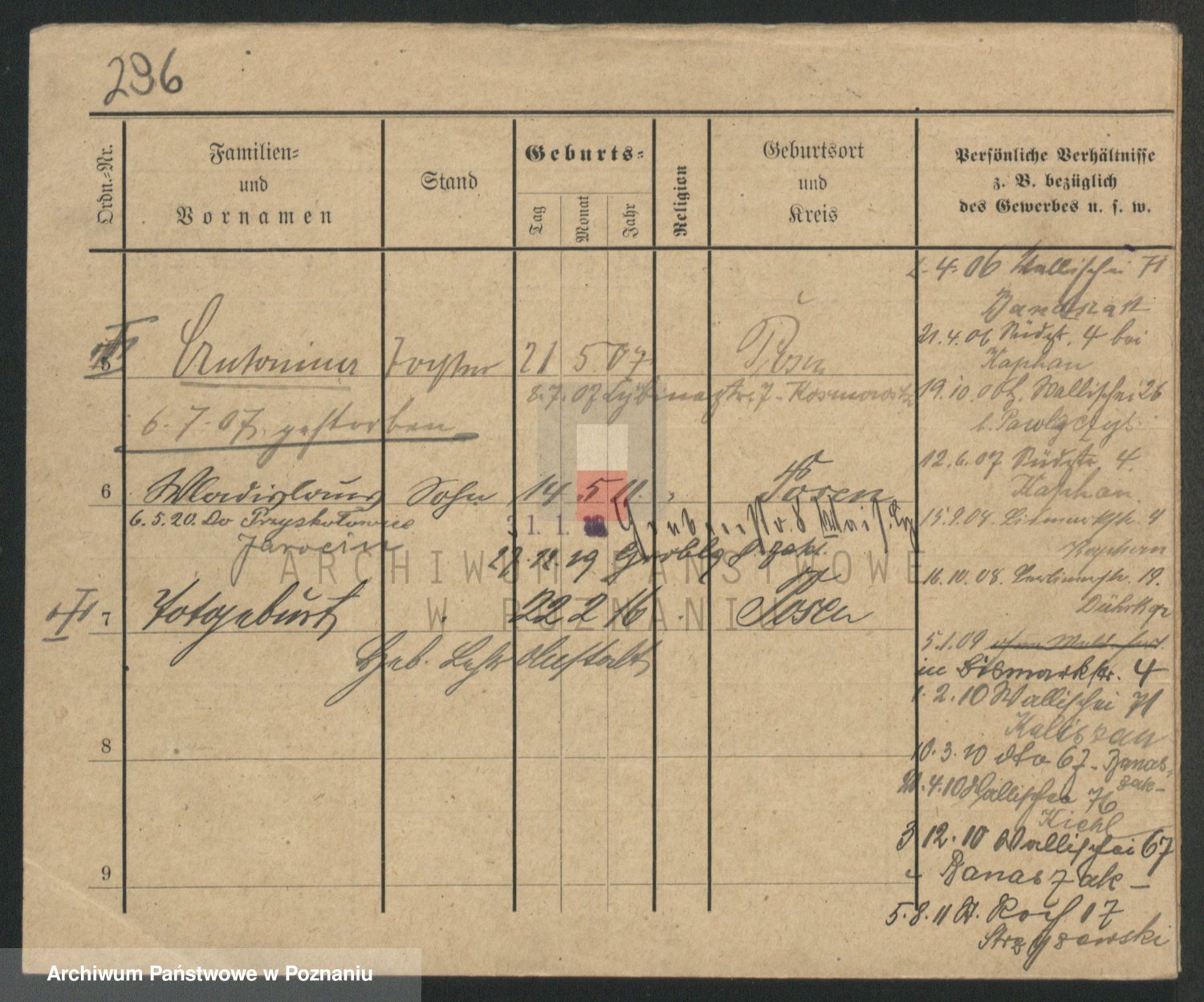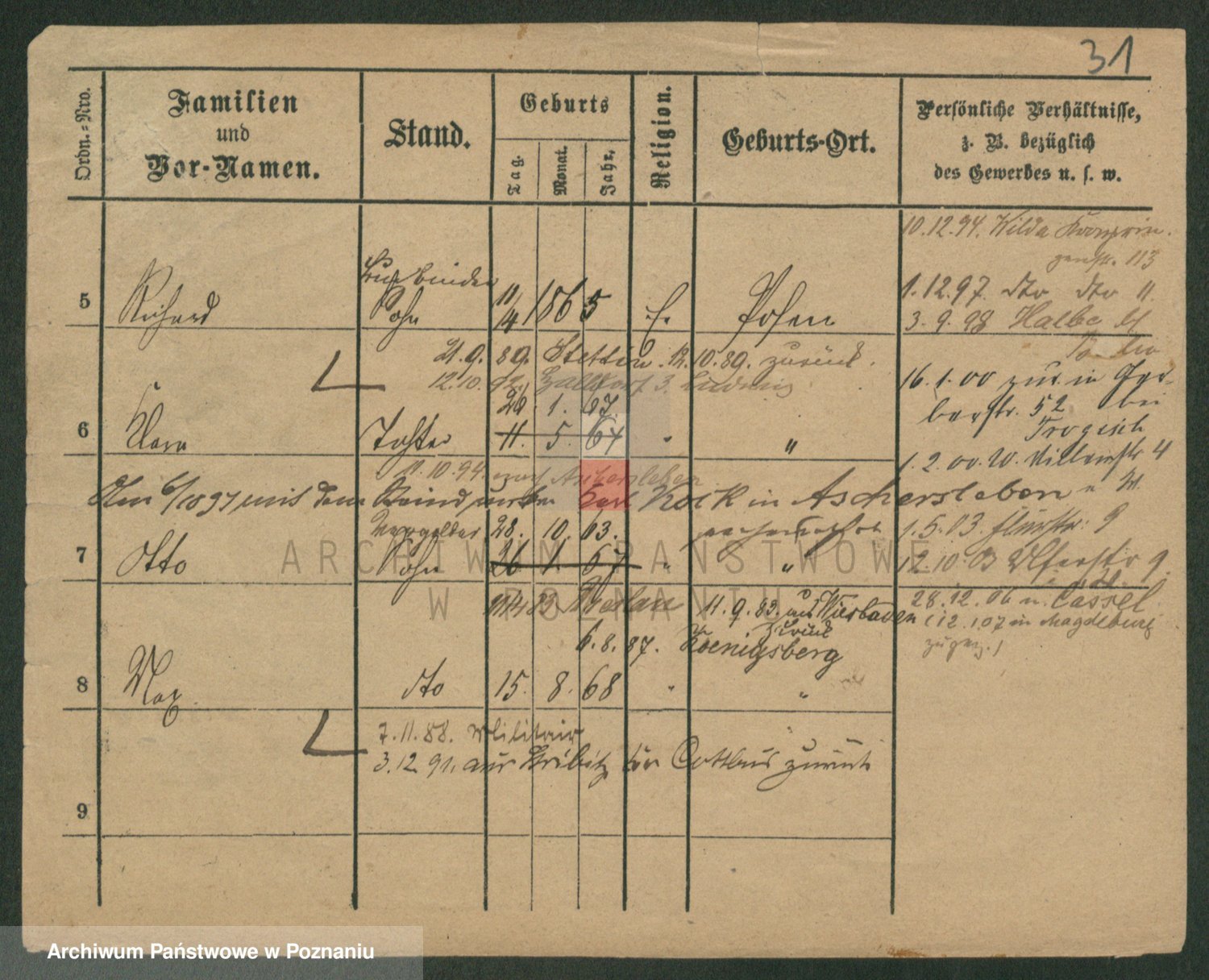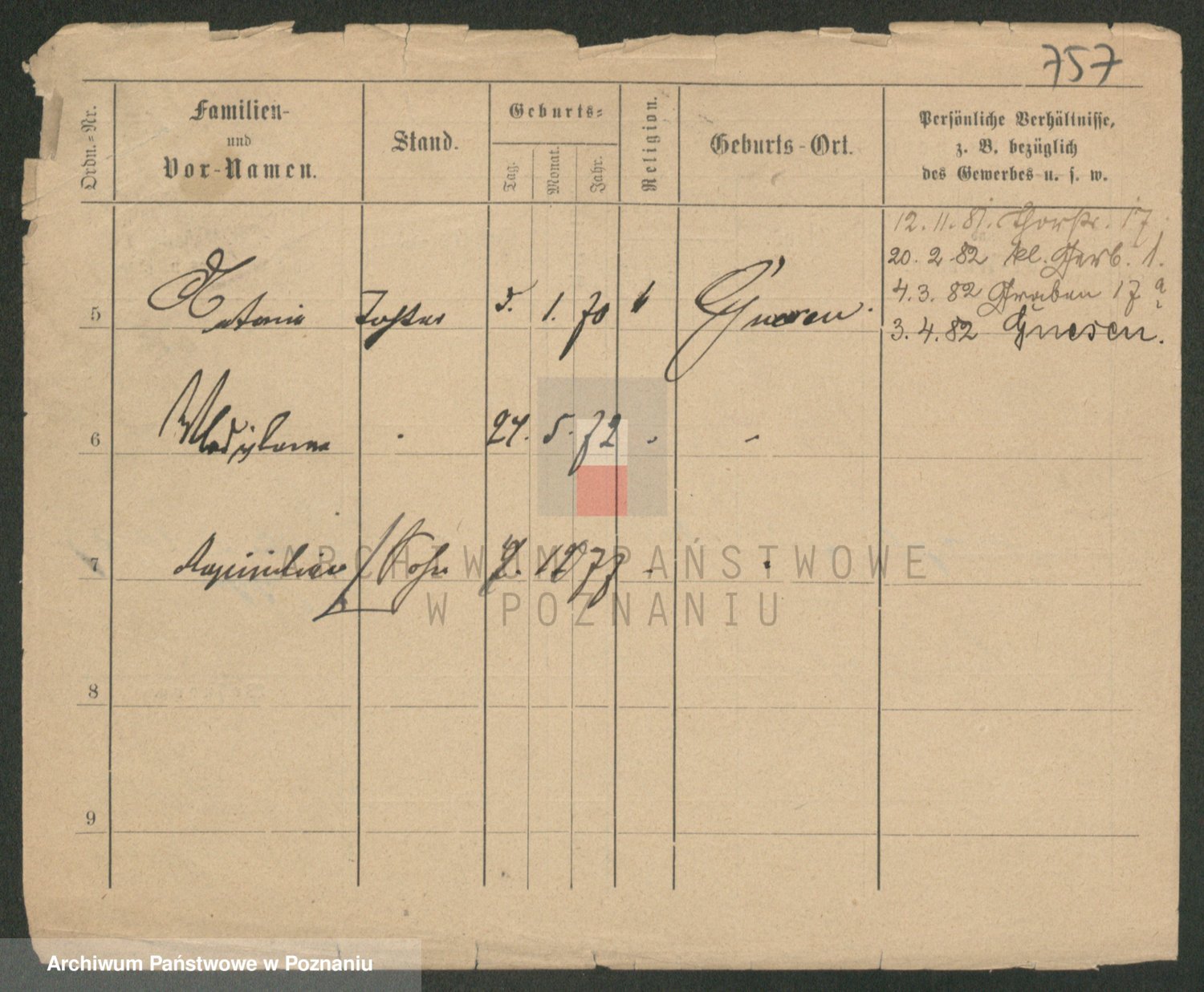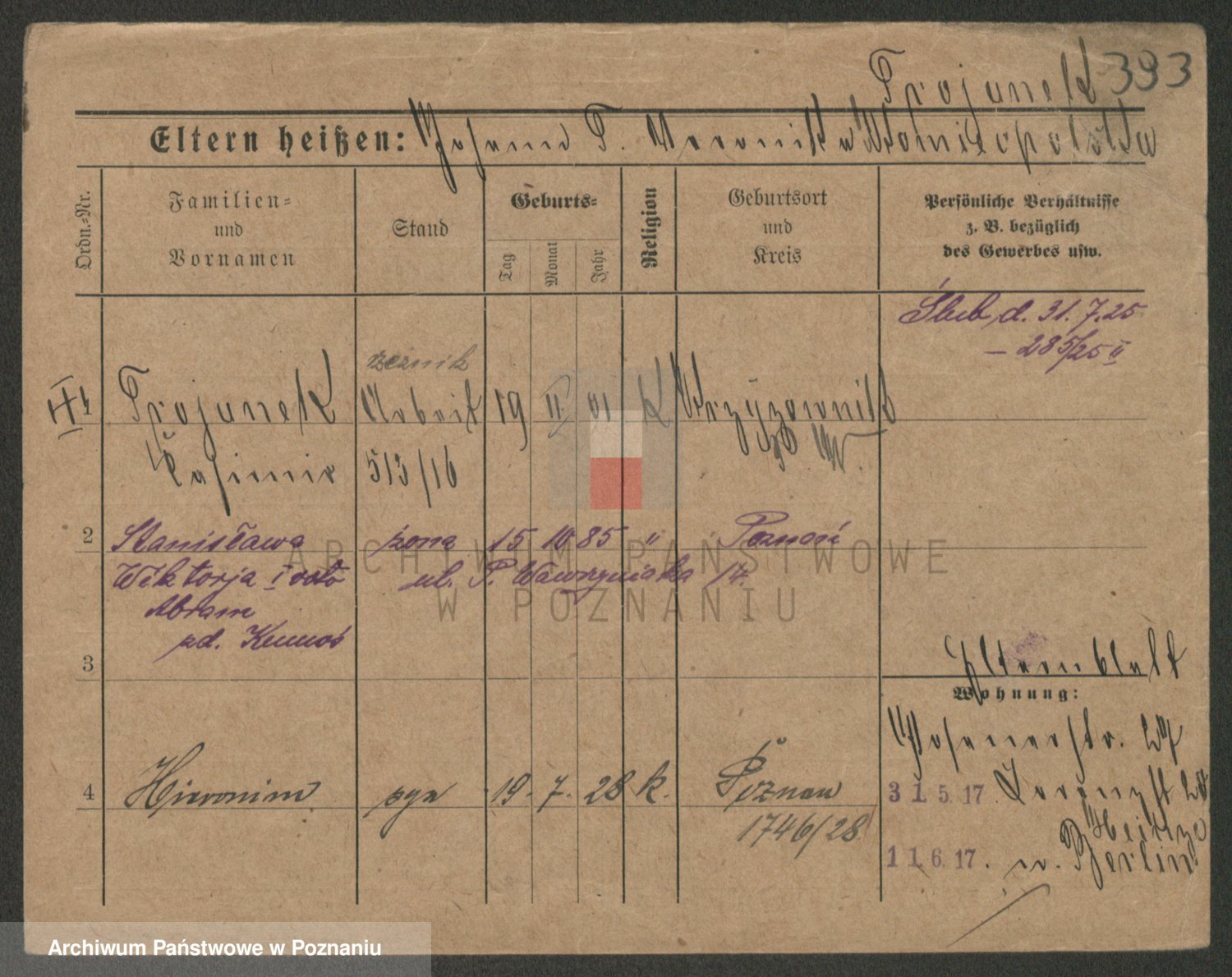 Durch Anklicken eines Namens oder Kartensymbols gelangen Sie zum Vorschau einer Personalkarte. Sie können die Ansicht vergrößern (Symbole am oberen Rand) oder zwischen den Scans wechseln (Pfeile an den Seiten).