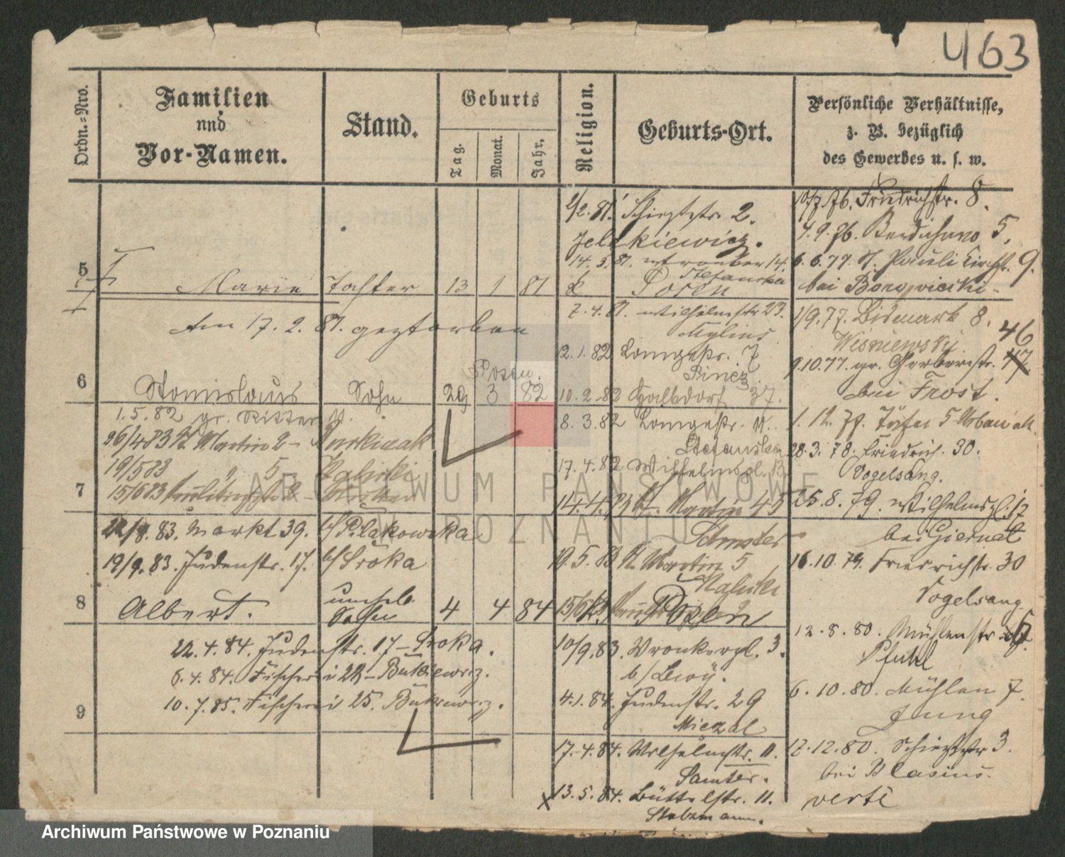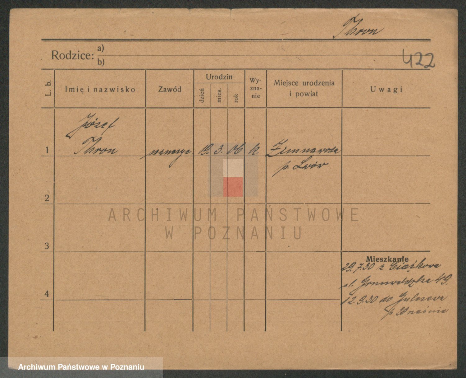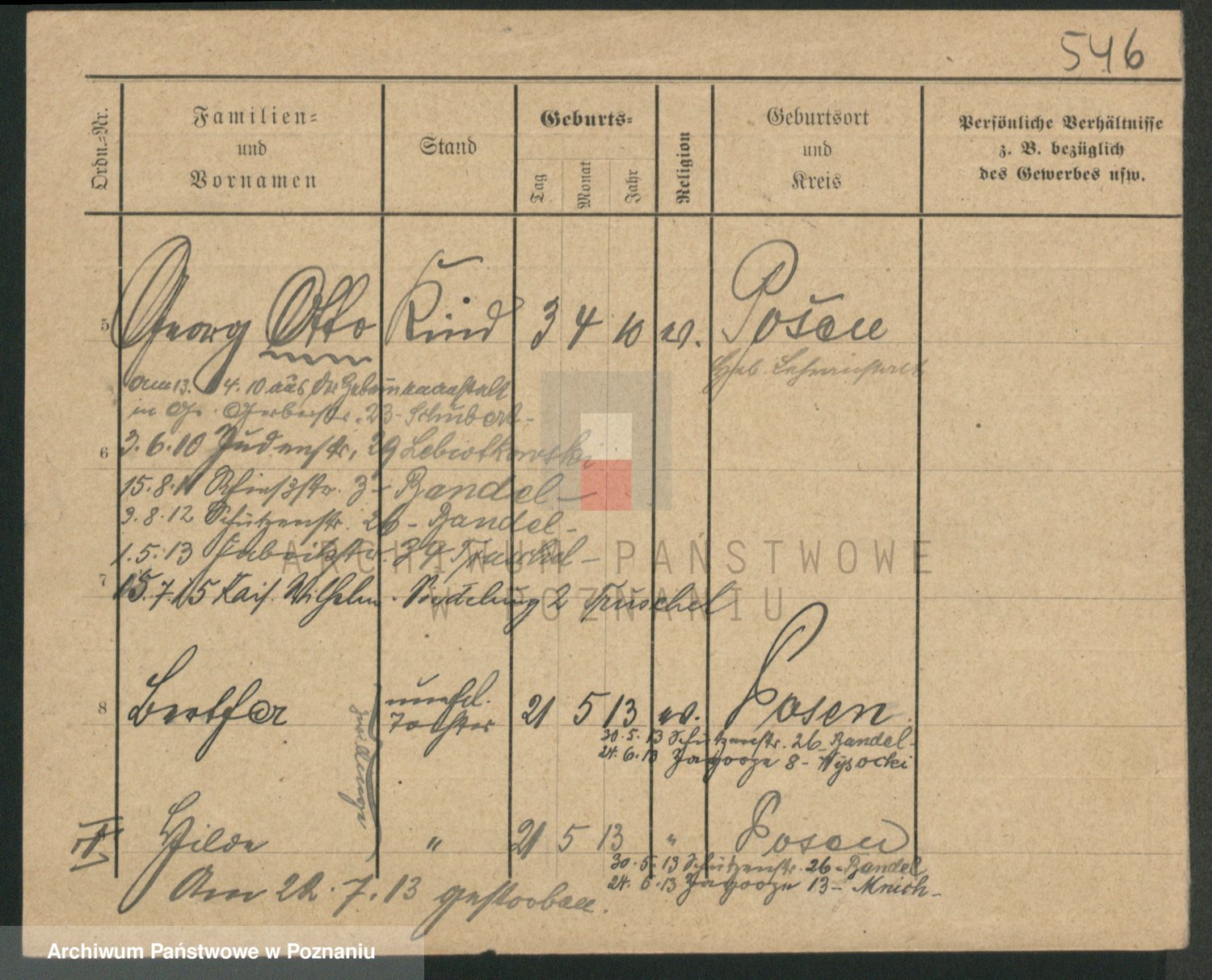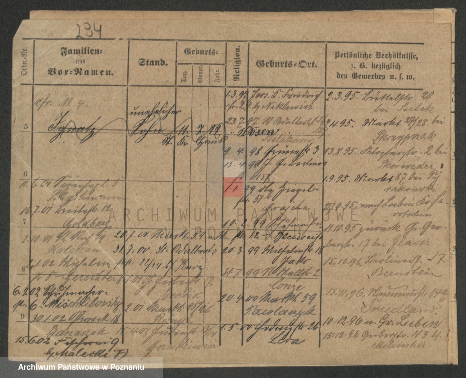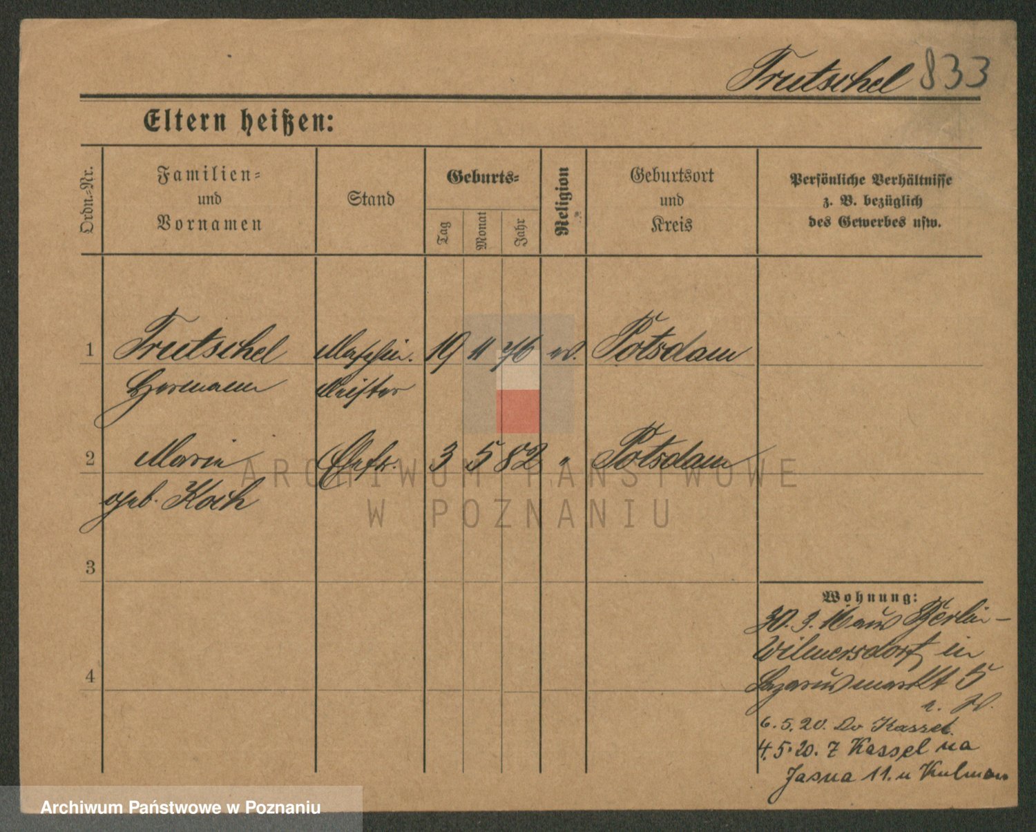 Durch Anklicken eines Namens oder Kartensymbols gelangen Sie zum Vorschau einer Personalkarte. Sie können die Ansicht vergrößern (Symbole am oberen Rand) oder zwischen den Scans wechseln (Pfeile an den Seiten).