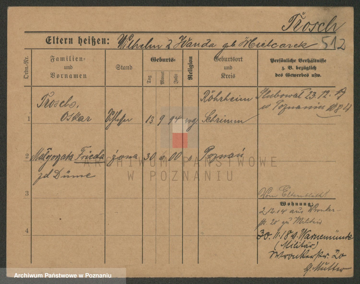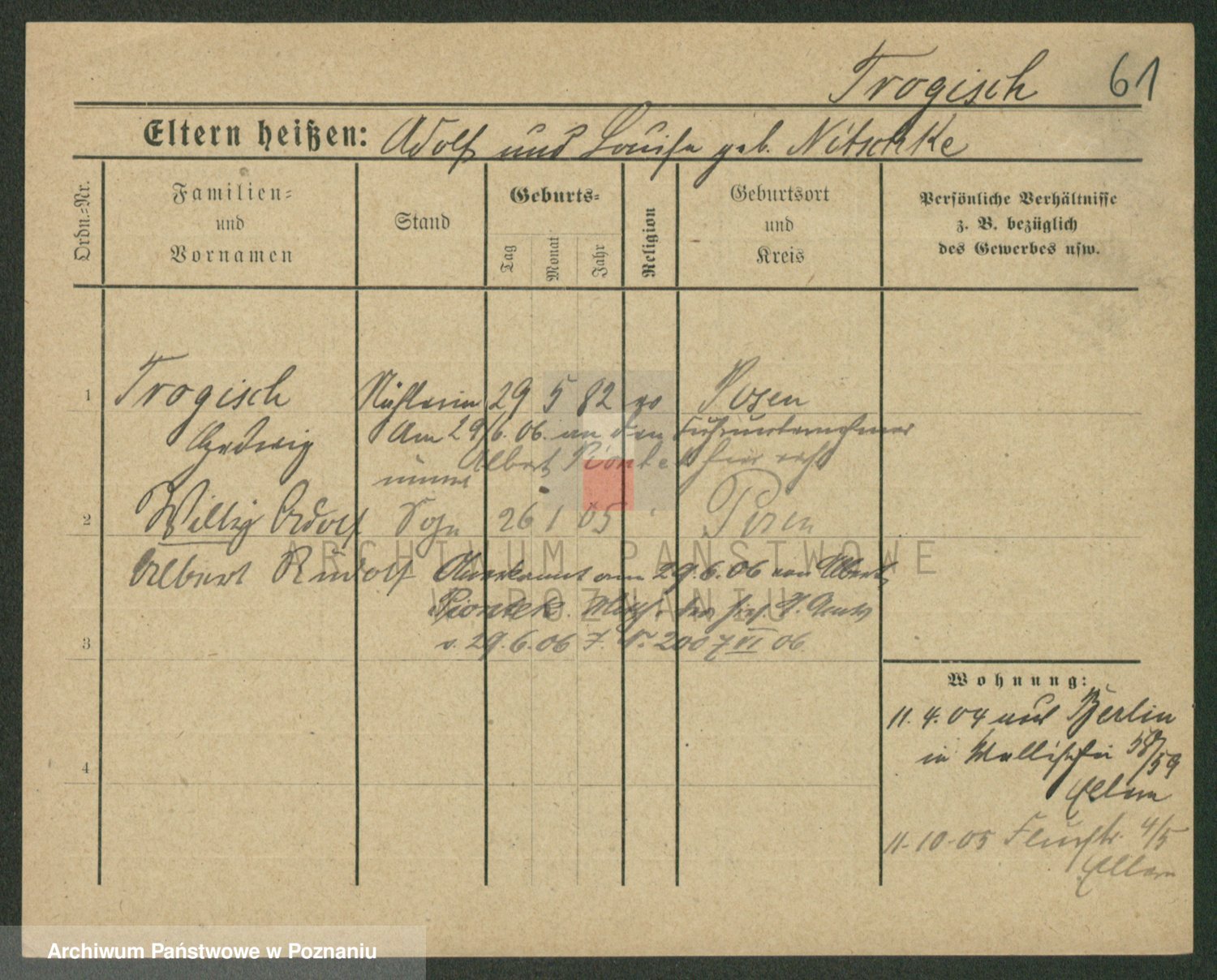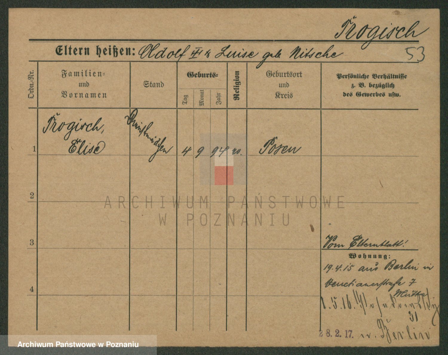 Trogisch zd. Nitsche, Louise Wilhelmine Karoline
