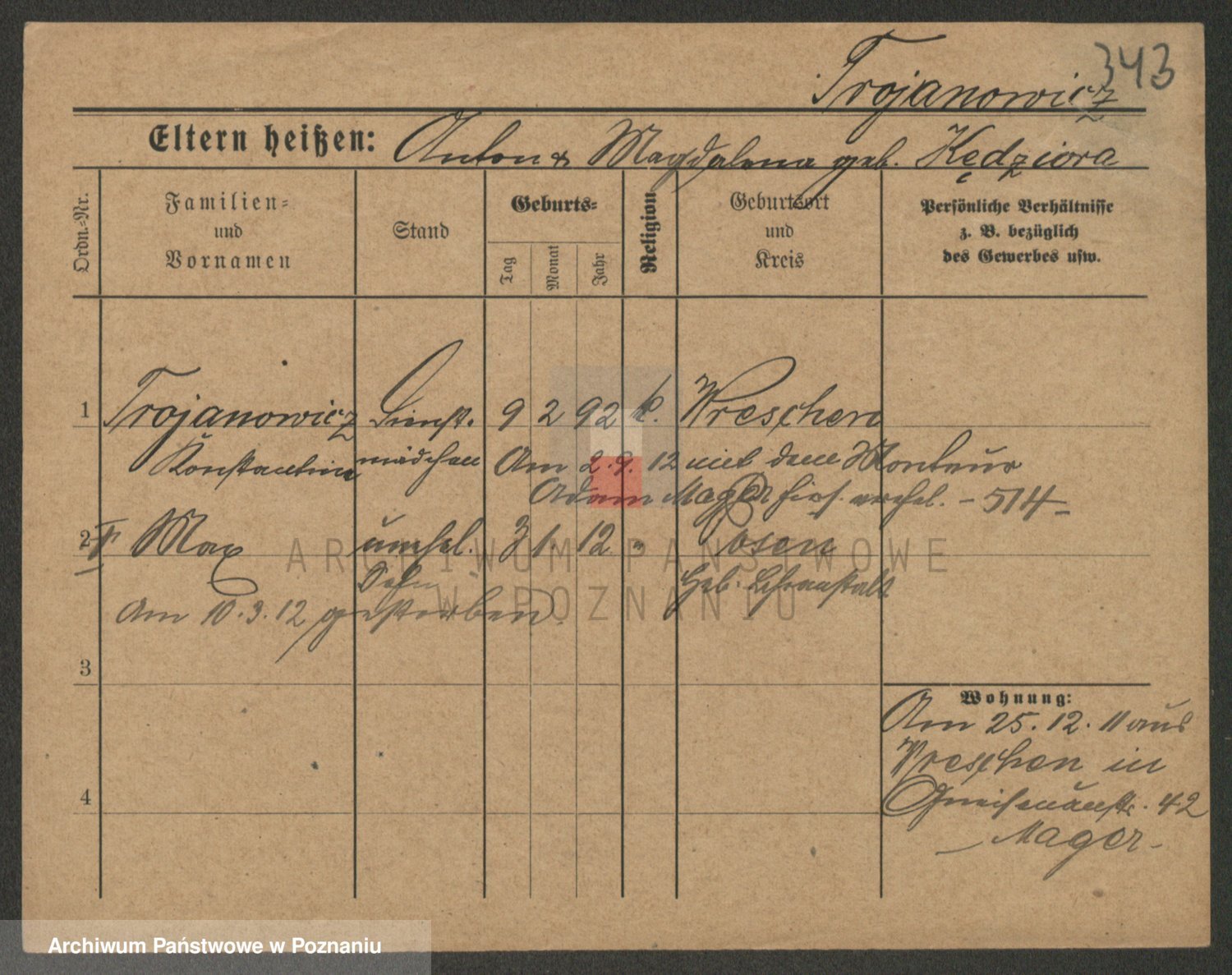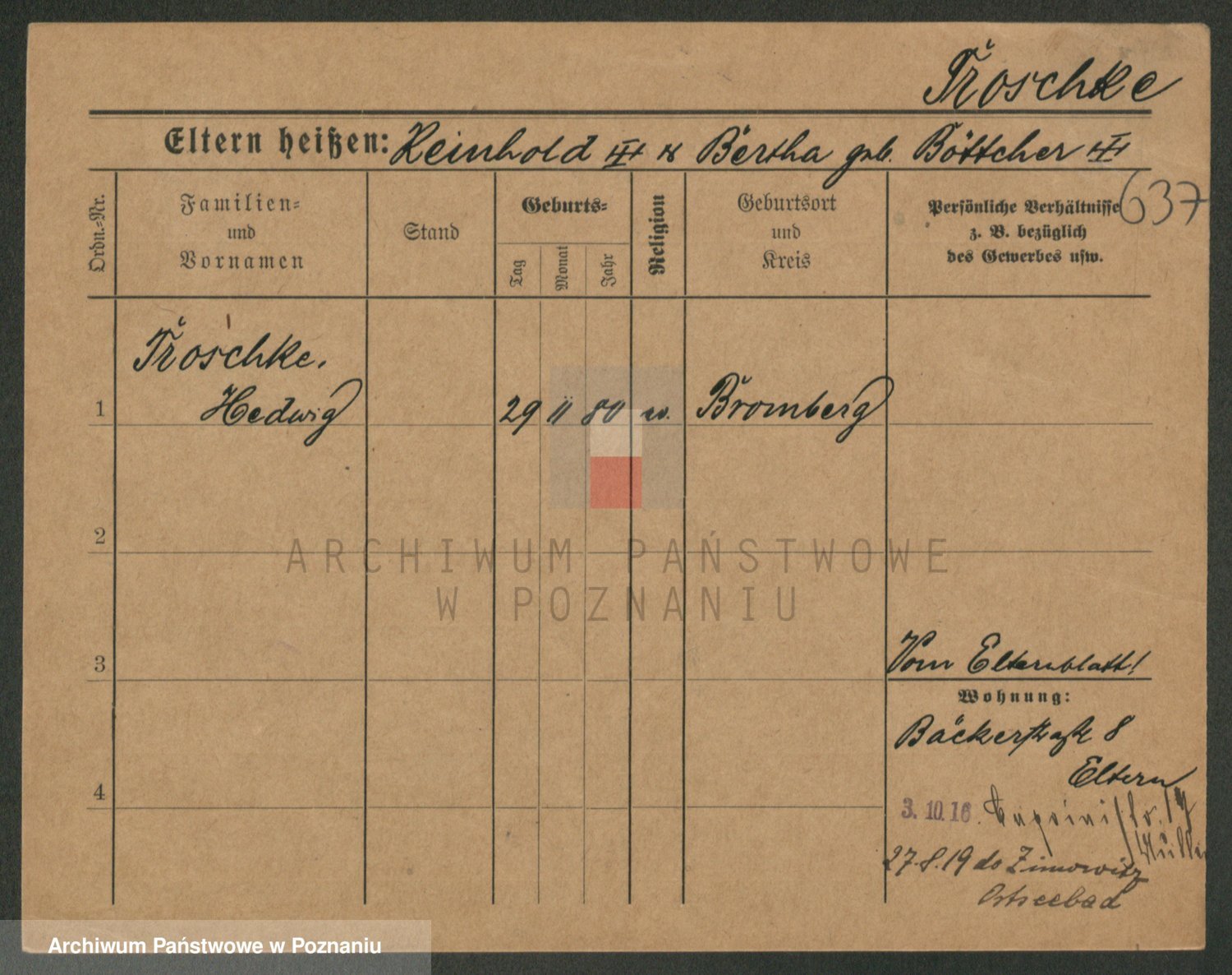 Trogisch zd. Brozowski, Therese Karoline Hedwig
