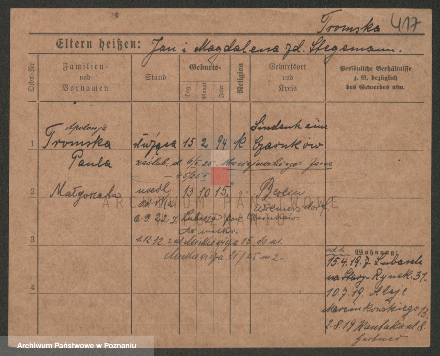 Trogisch zd. Maciejewska, Catharina Marie