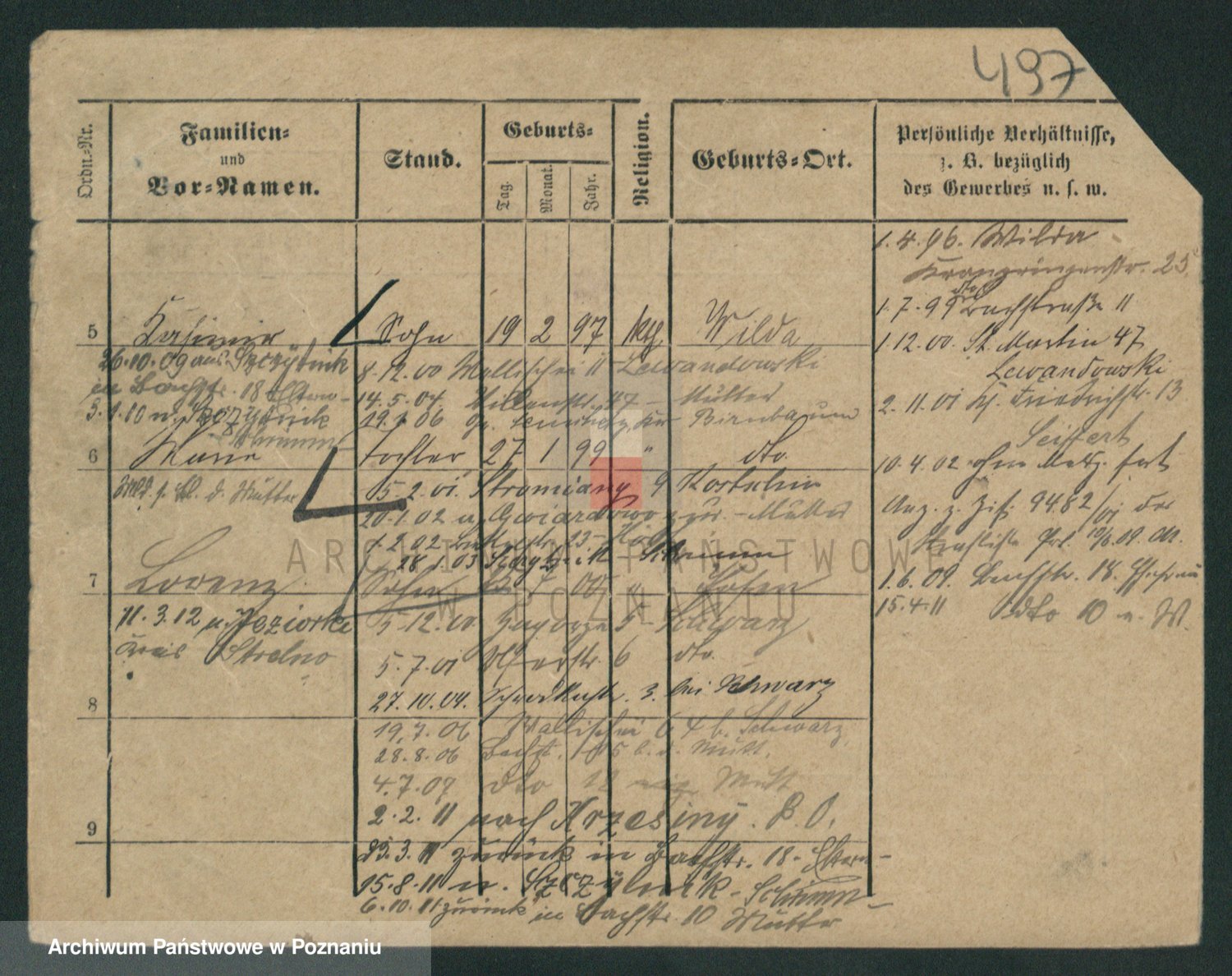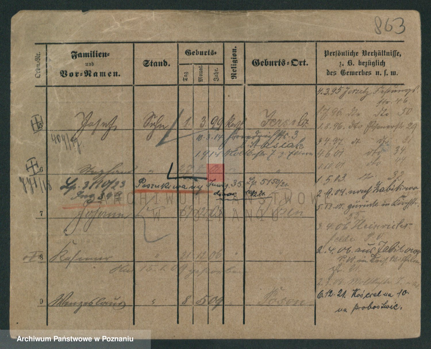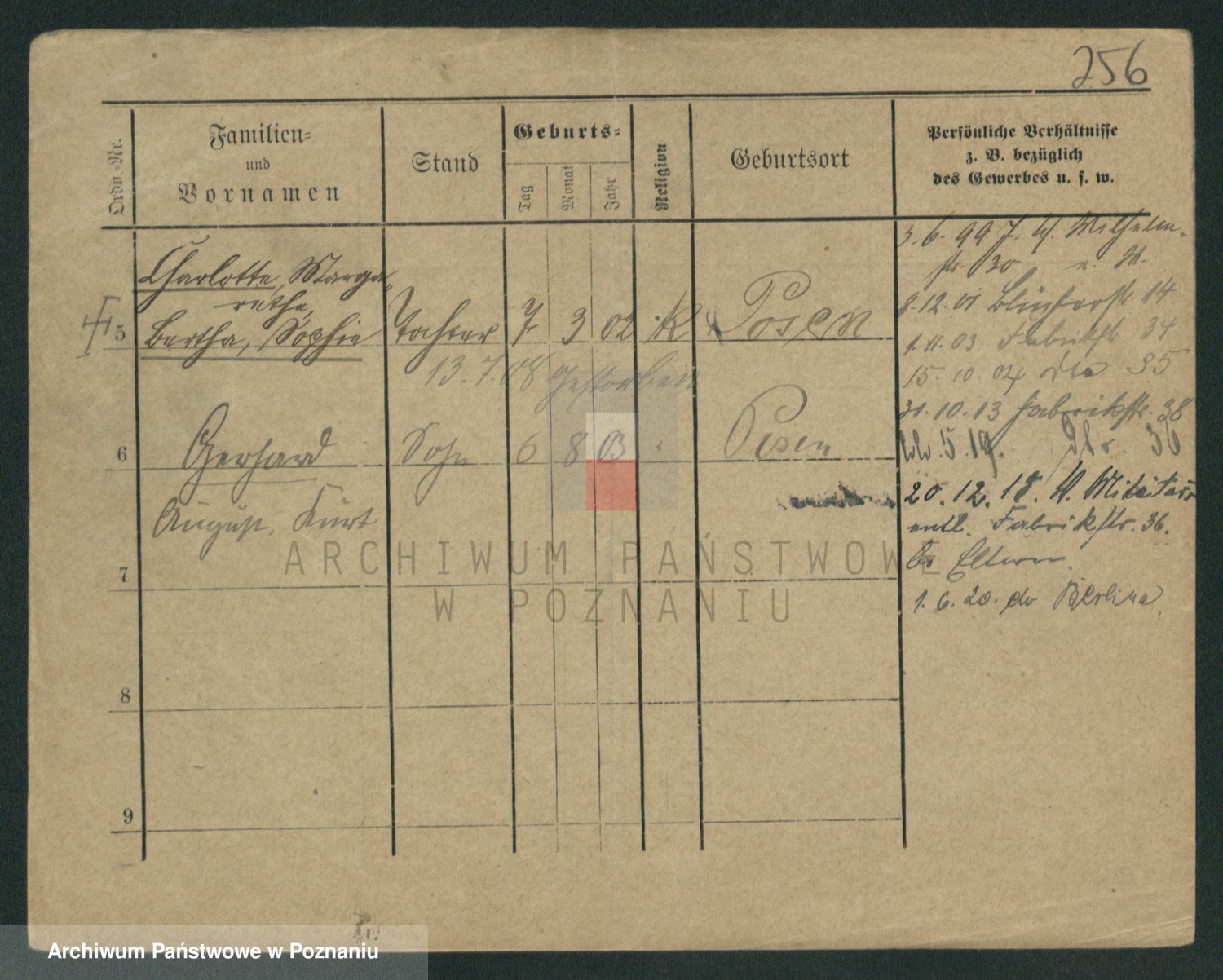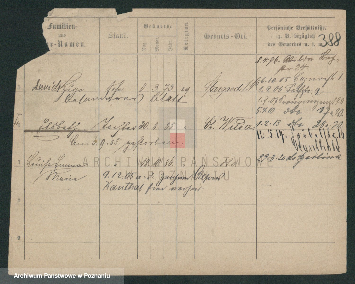 Durch Anklicken eines Namens oder Kartensymbols gelangen Sie zum Vorschau einer Personalkarte. Sie können die Ansicht vergrößern (Symbole am oberen Rand) oder zwischen den Scans wechseln (Pfeile an den Seiten).