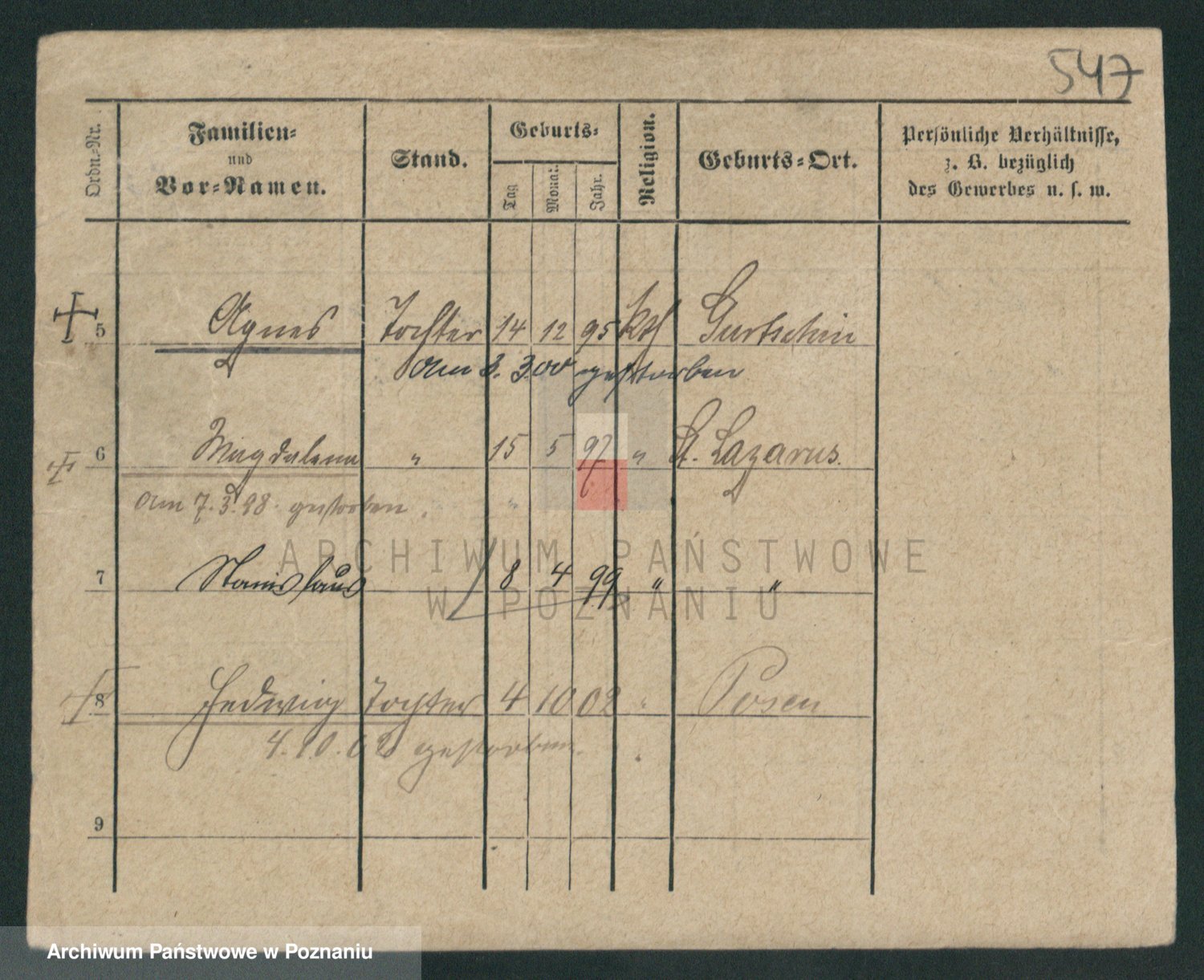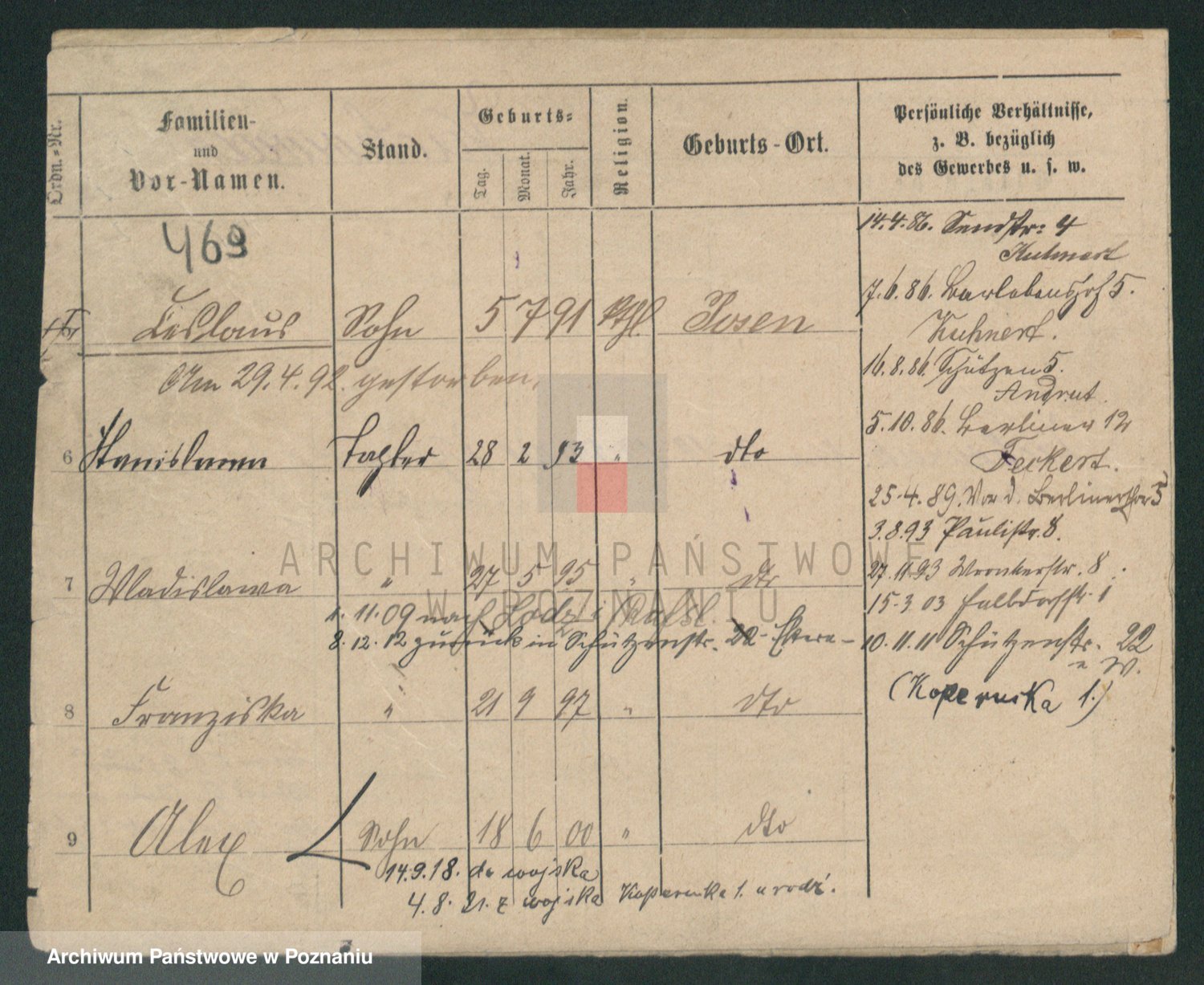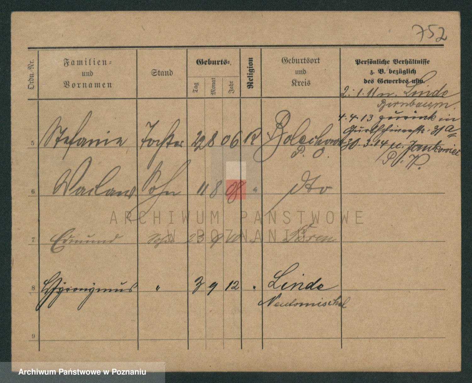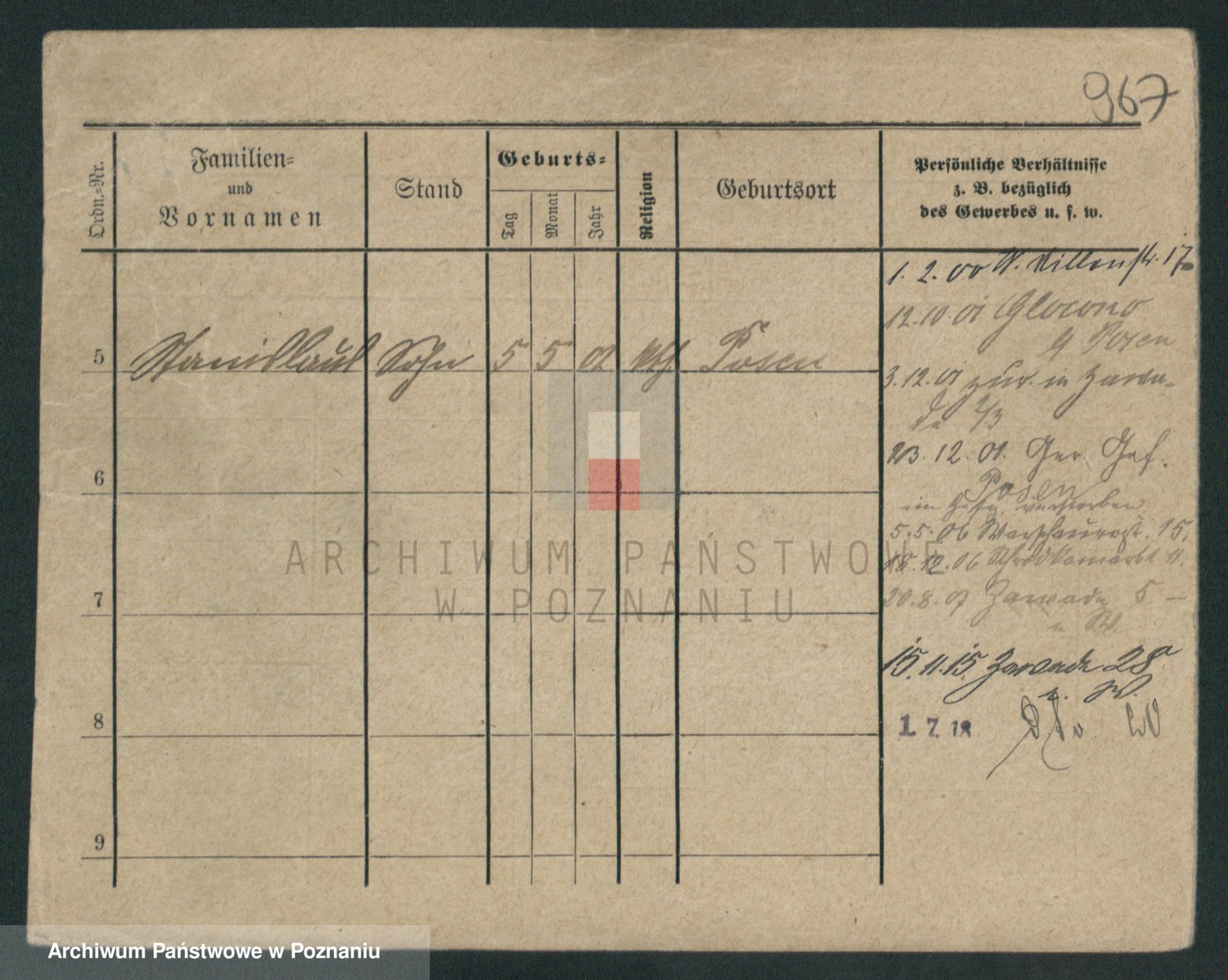 Durch Anklicken eines Namens oder Kartensymbols gelangen Sie zum Vorschau einer Personalkarte. Sie können die Ansicht vergrößern (Symbole am oberen Rand) oder zwischen den Scans wechseln (Pfeile an den Seiten).