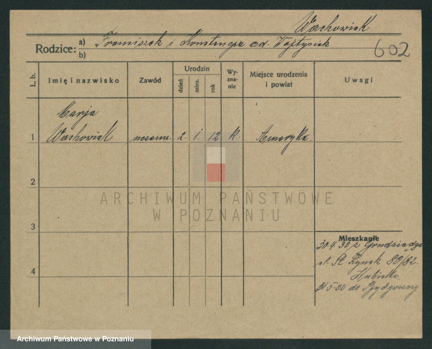 Wachowiak z.d. Przybyl, Marianna
