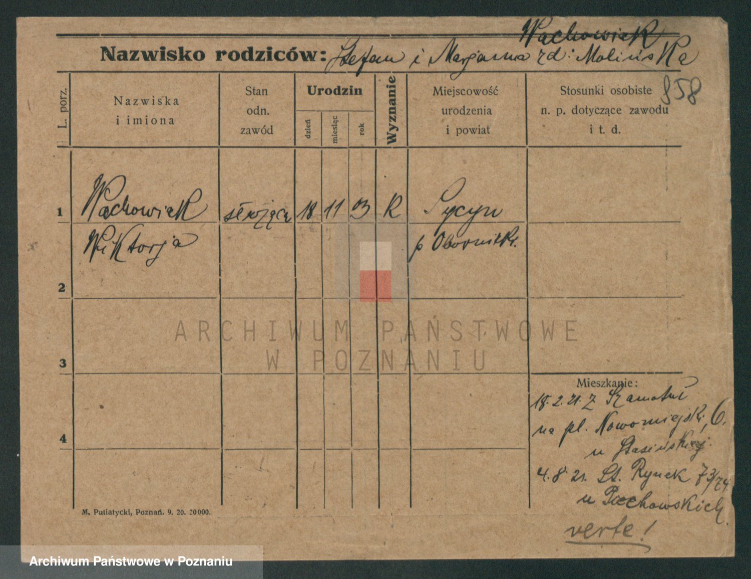 Wachowiak z.d. Molinska, Wiktorja Marja Elżbieta