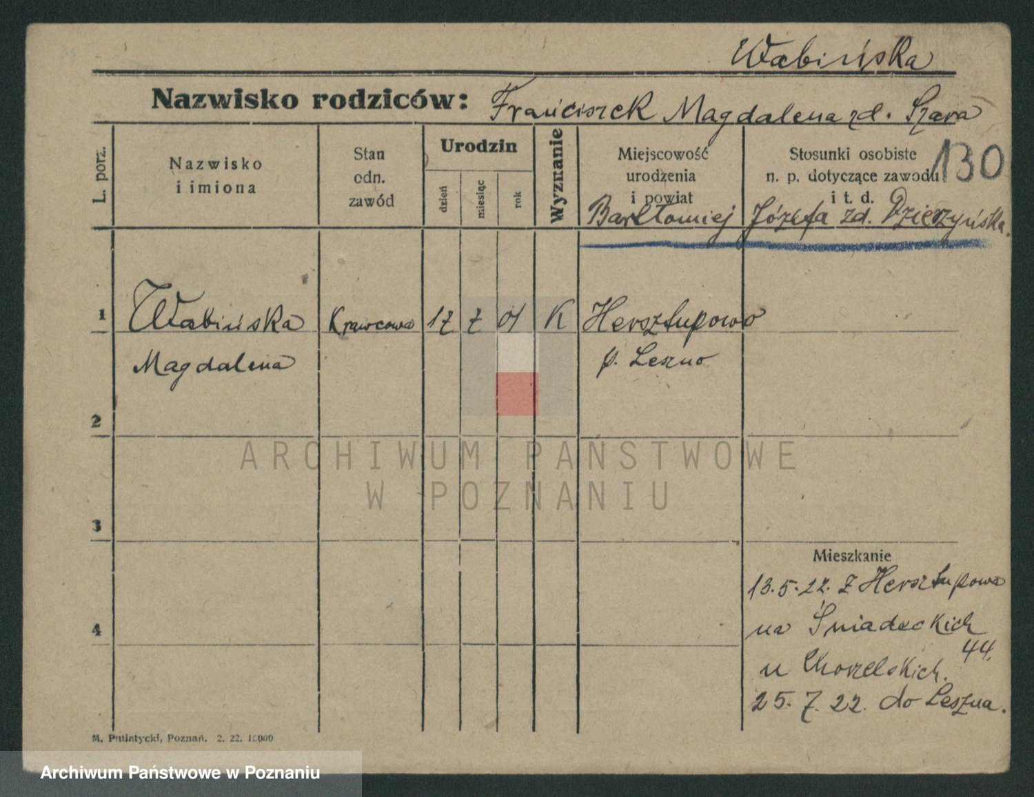 Waberski z.d. Durkiewicz, Stanislawa