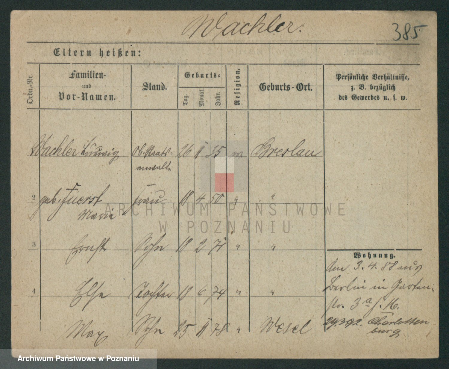 Wachowiak z.d. Majchler, Marie