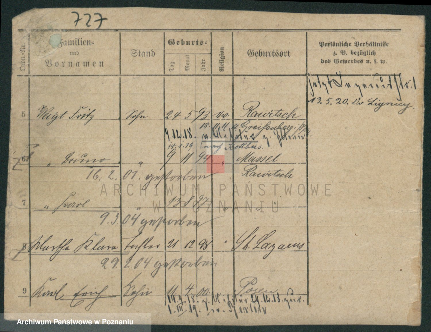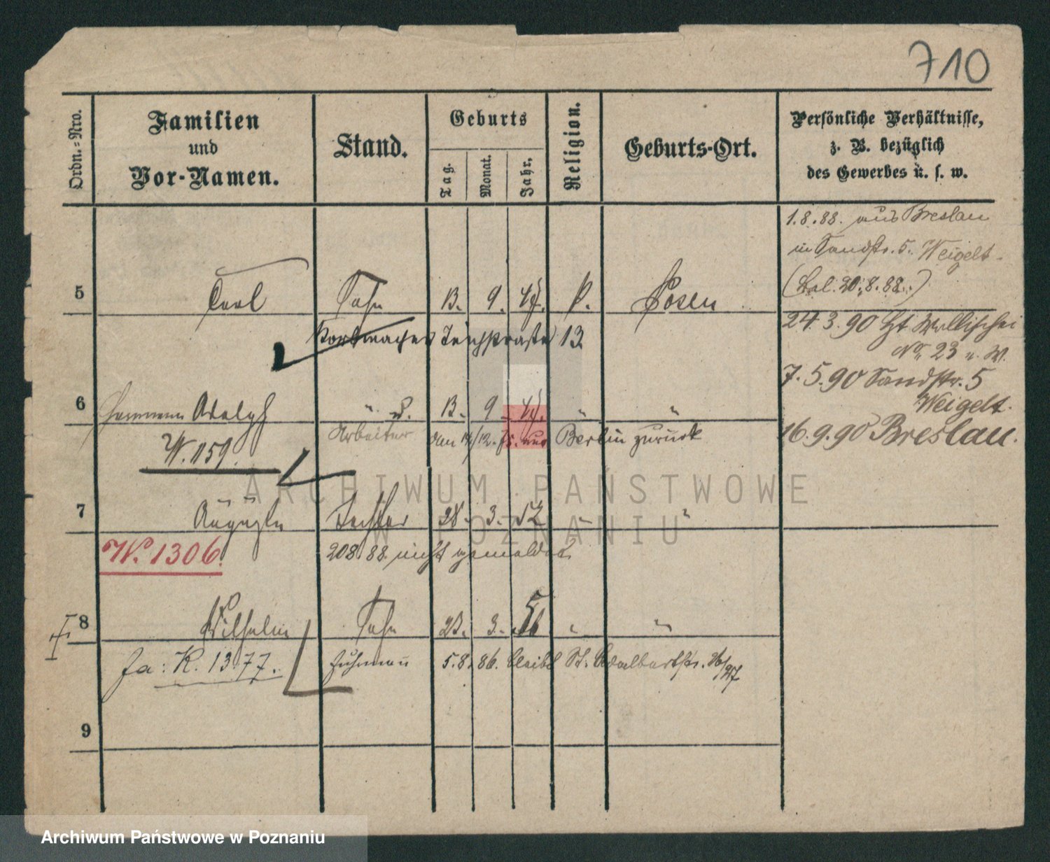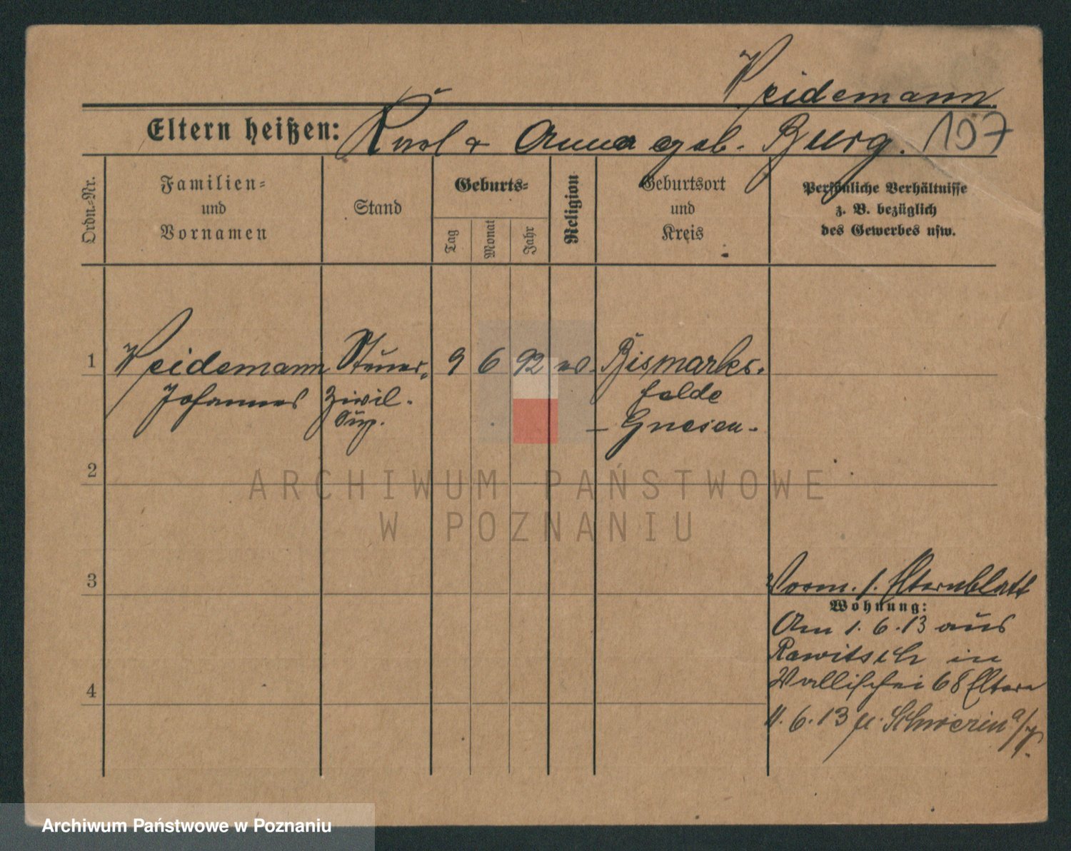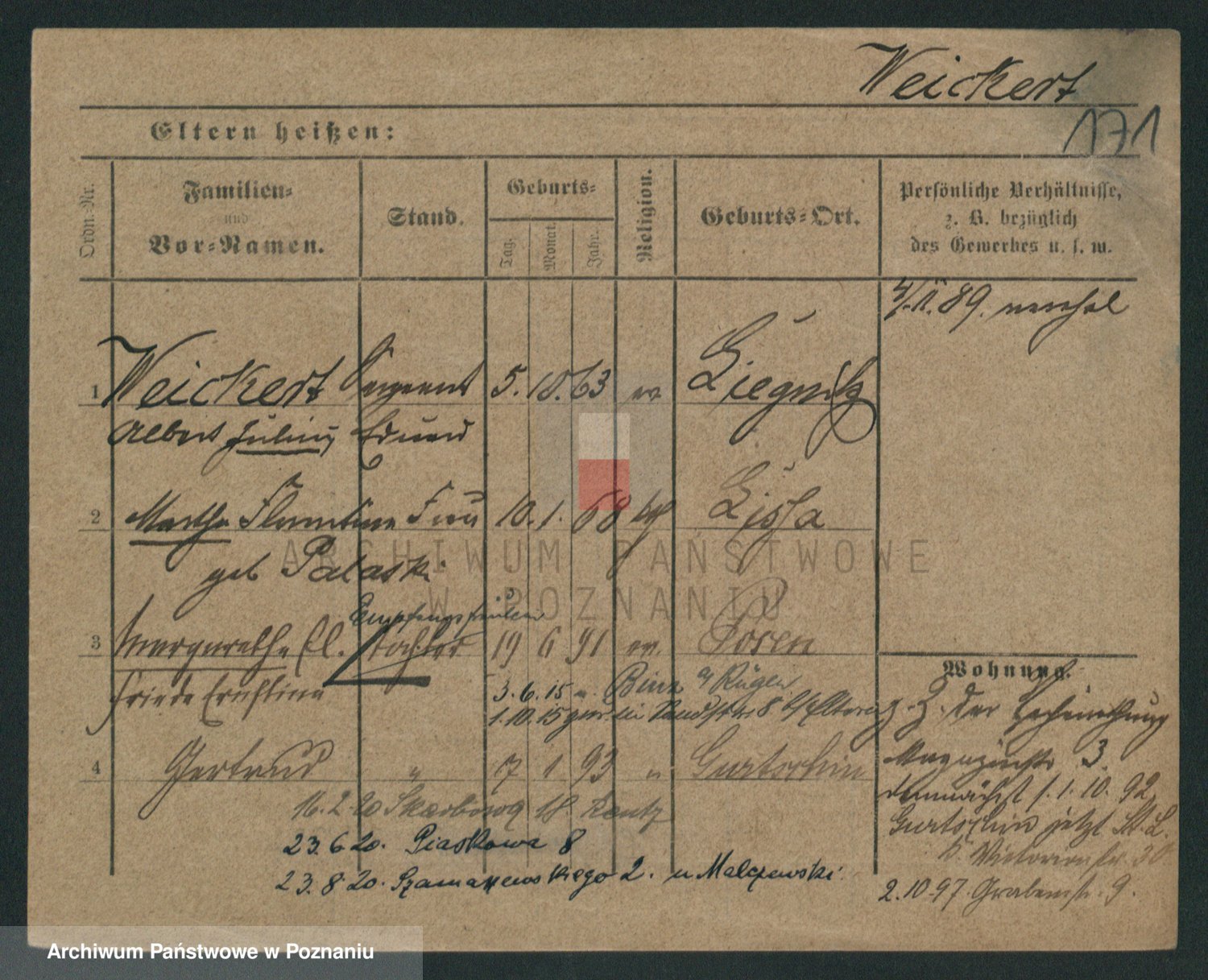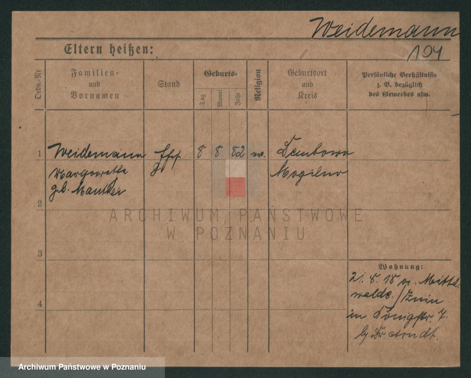 Durch Anklicken eines Namens oder Kartensymbols gelangen Sie zum Vorschau einer Personalkarte. Sie können die Ansicht vergrößern (Symbole am oberen Rand) oder zwischen den Scans wechseln (Pfeile an den Seiten).
