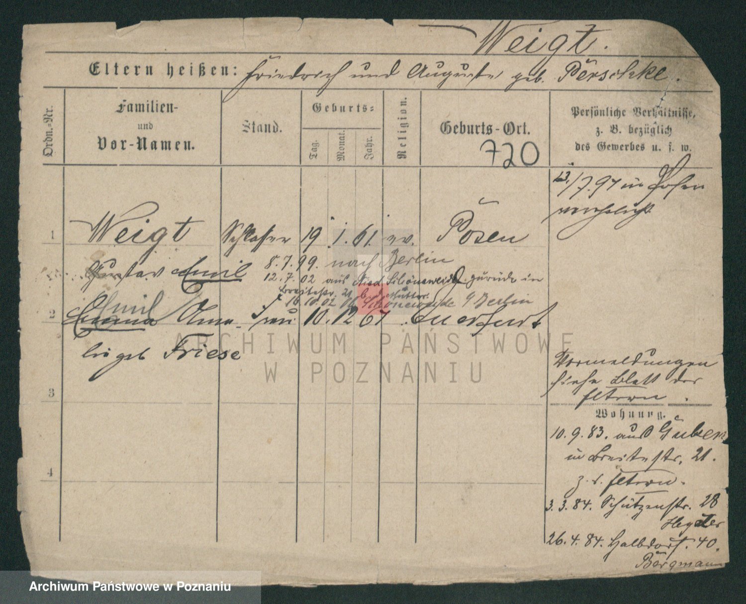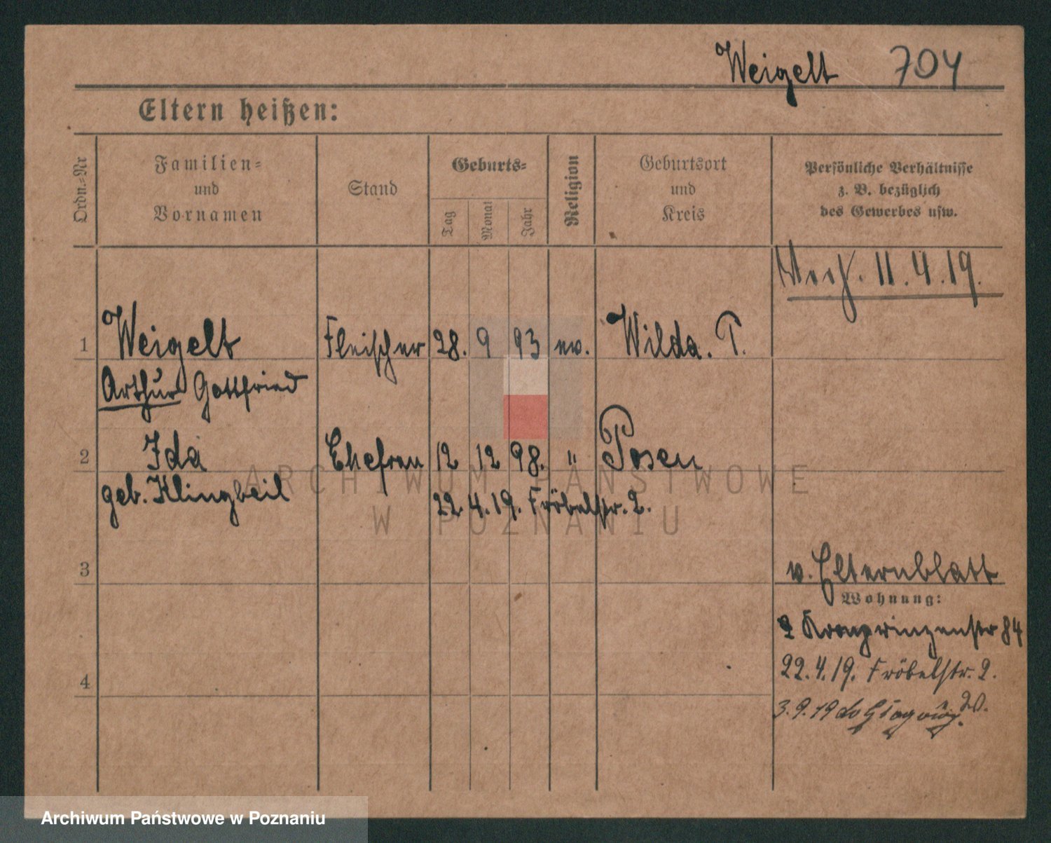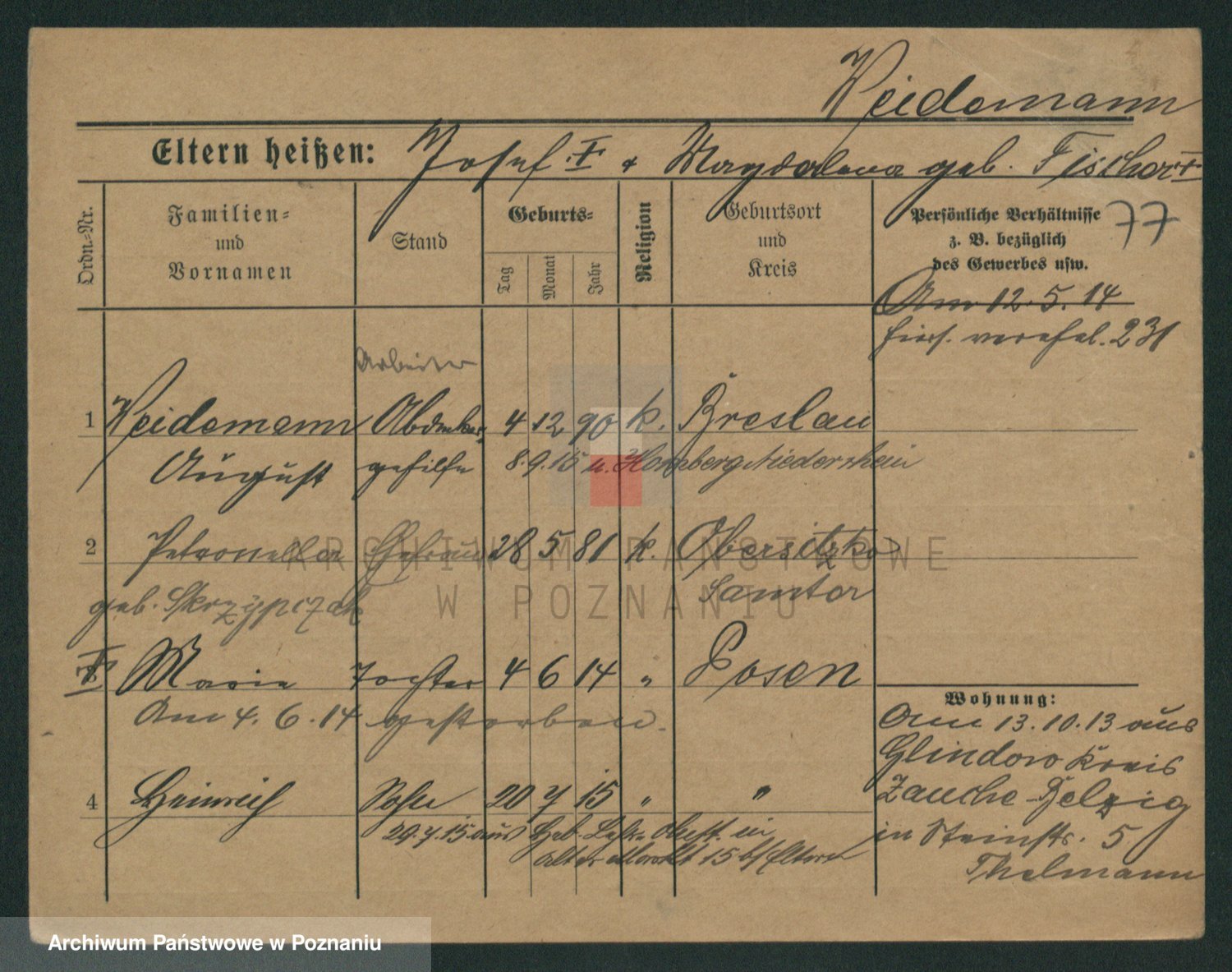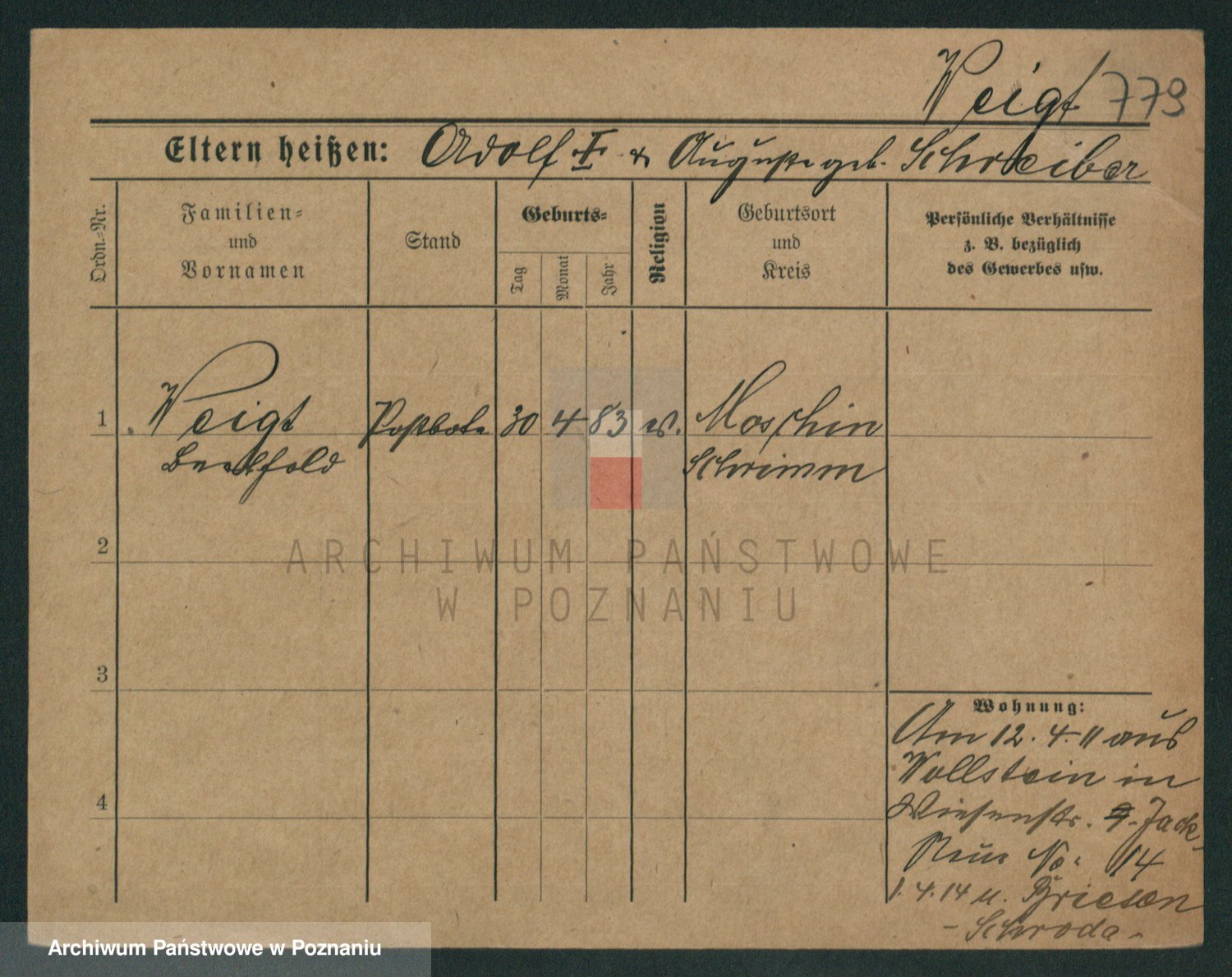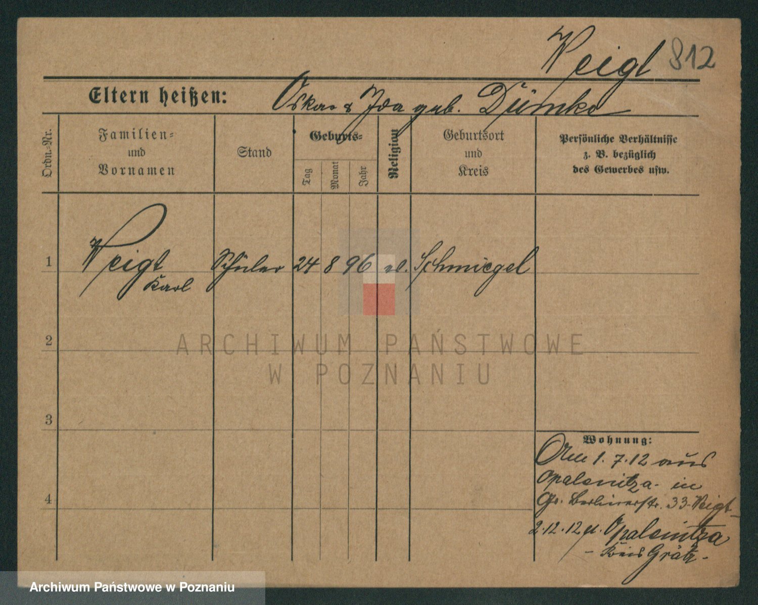 Durch Anklicken eines Namens oder Kartensymbols gelangen Sie zum Vorschau einer Personalkarte. Sie können die Ansicht vergrößern (Symbole am oberen Rand) oder zwischen den Scans wechseln (Pfeile an den Seiten).