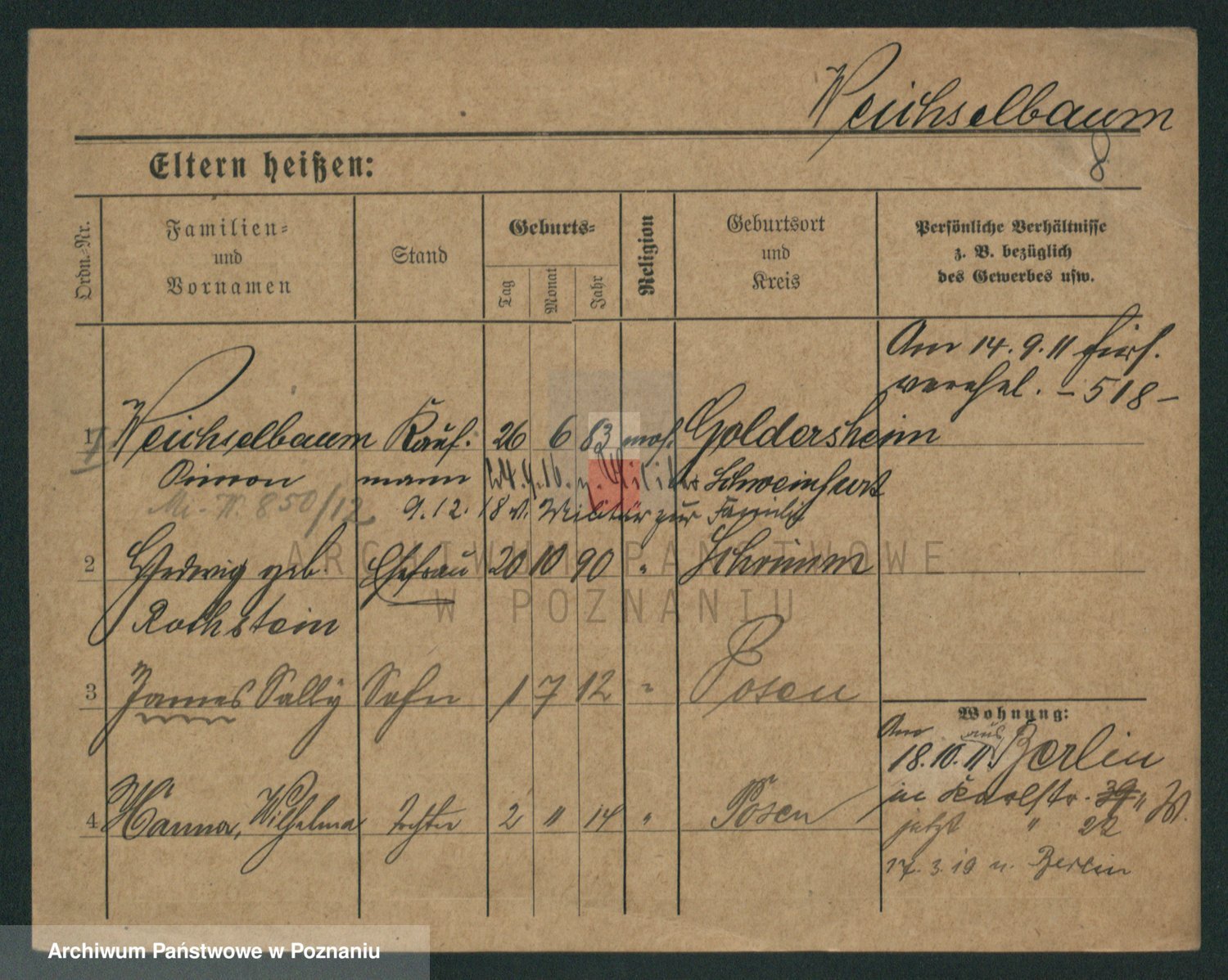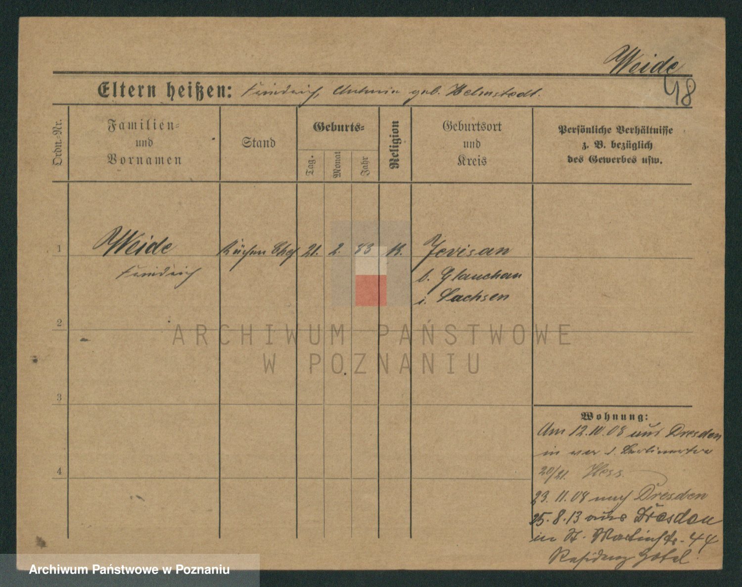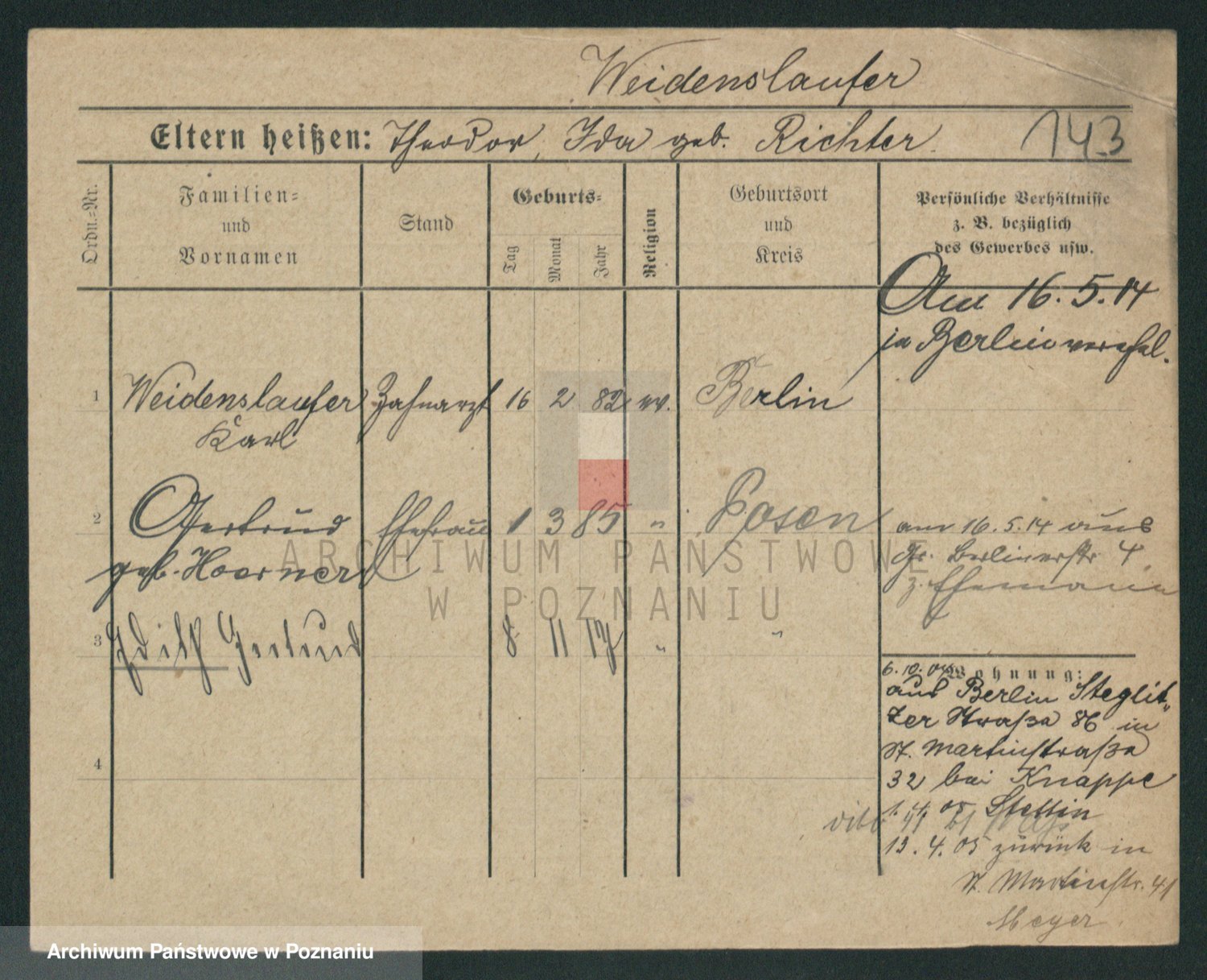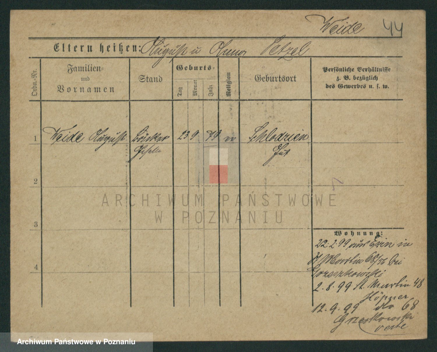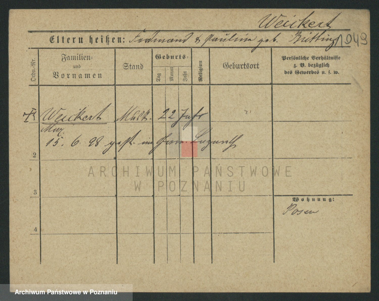 Durch Anklicken eines Namens oder Kartensymbols gelangen Sie zum Vorschau einer Personalkarte. Sie können die Ansicht vergrößern (Symbole am oberen Rand) oder zwischen den Scans wechseln (Pfeile an den Seiten).