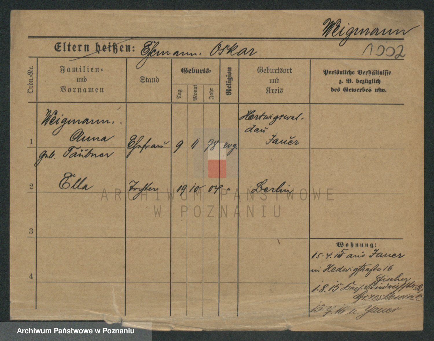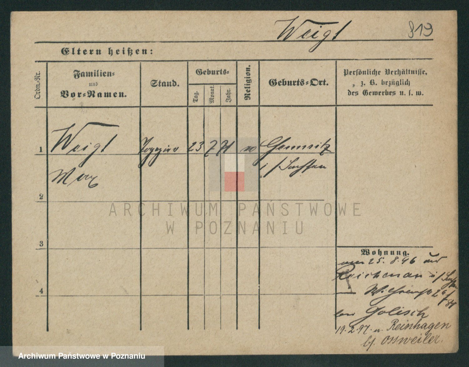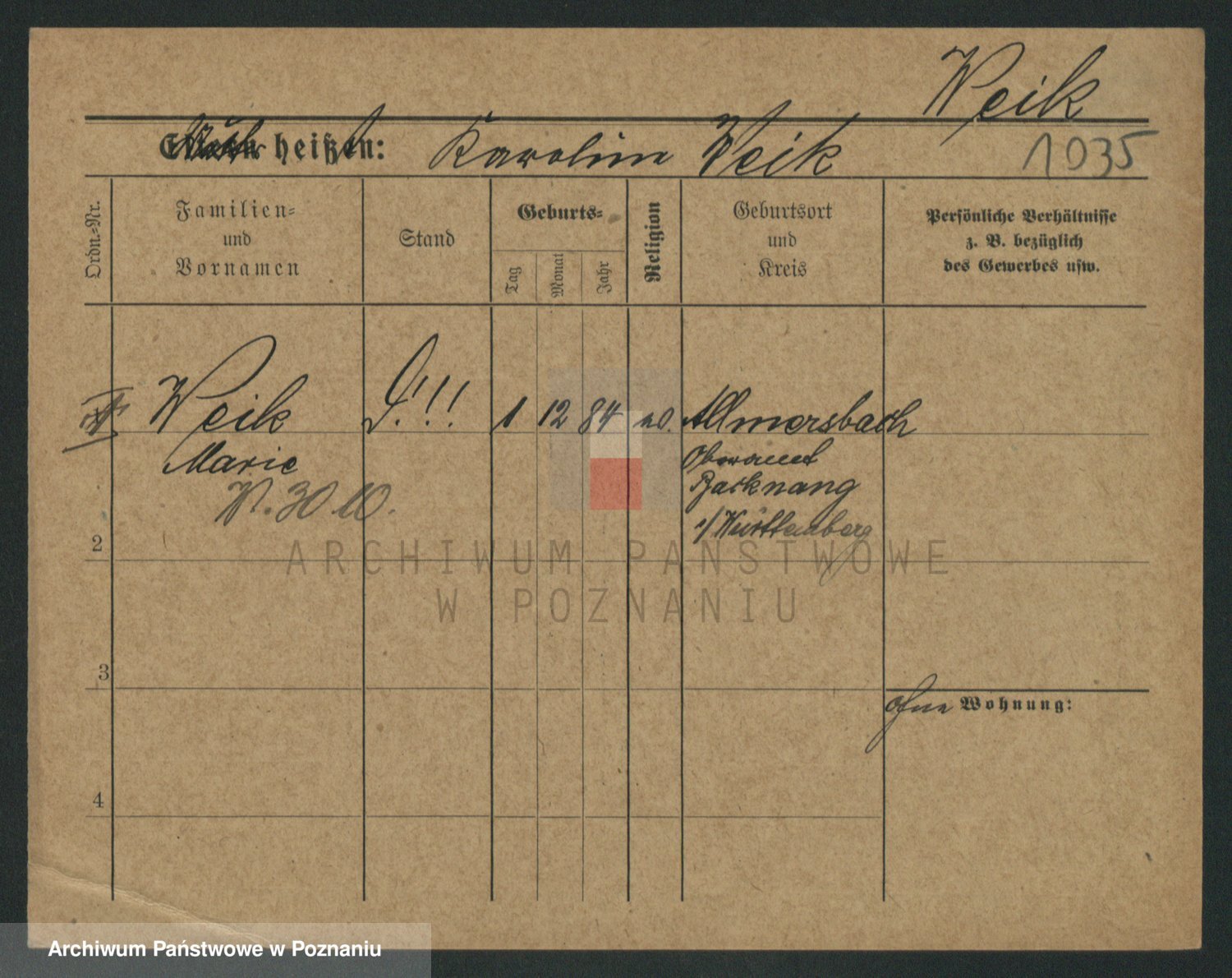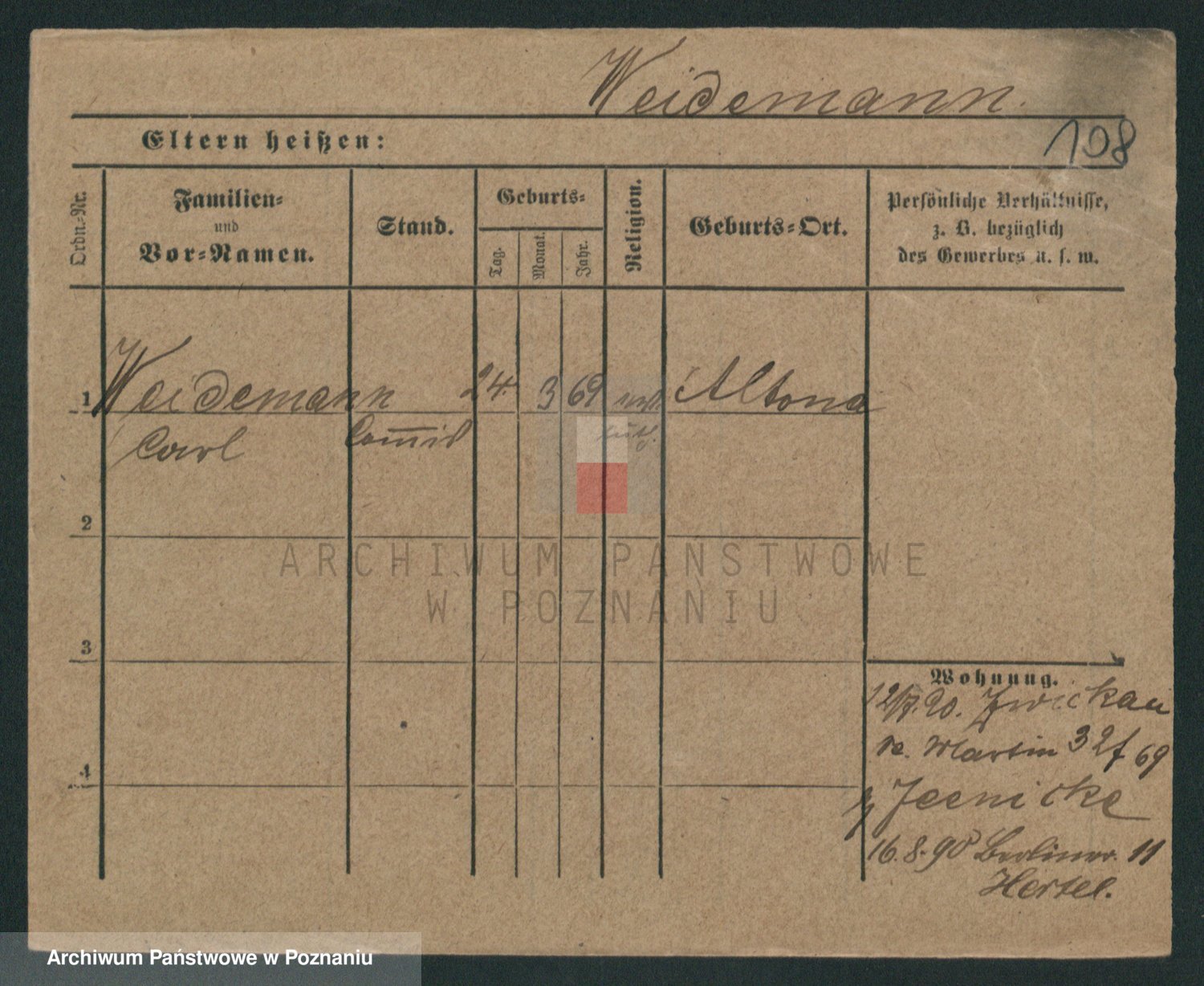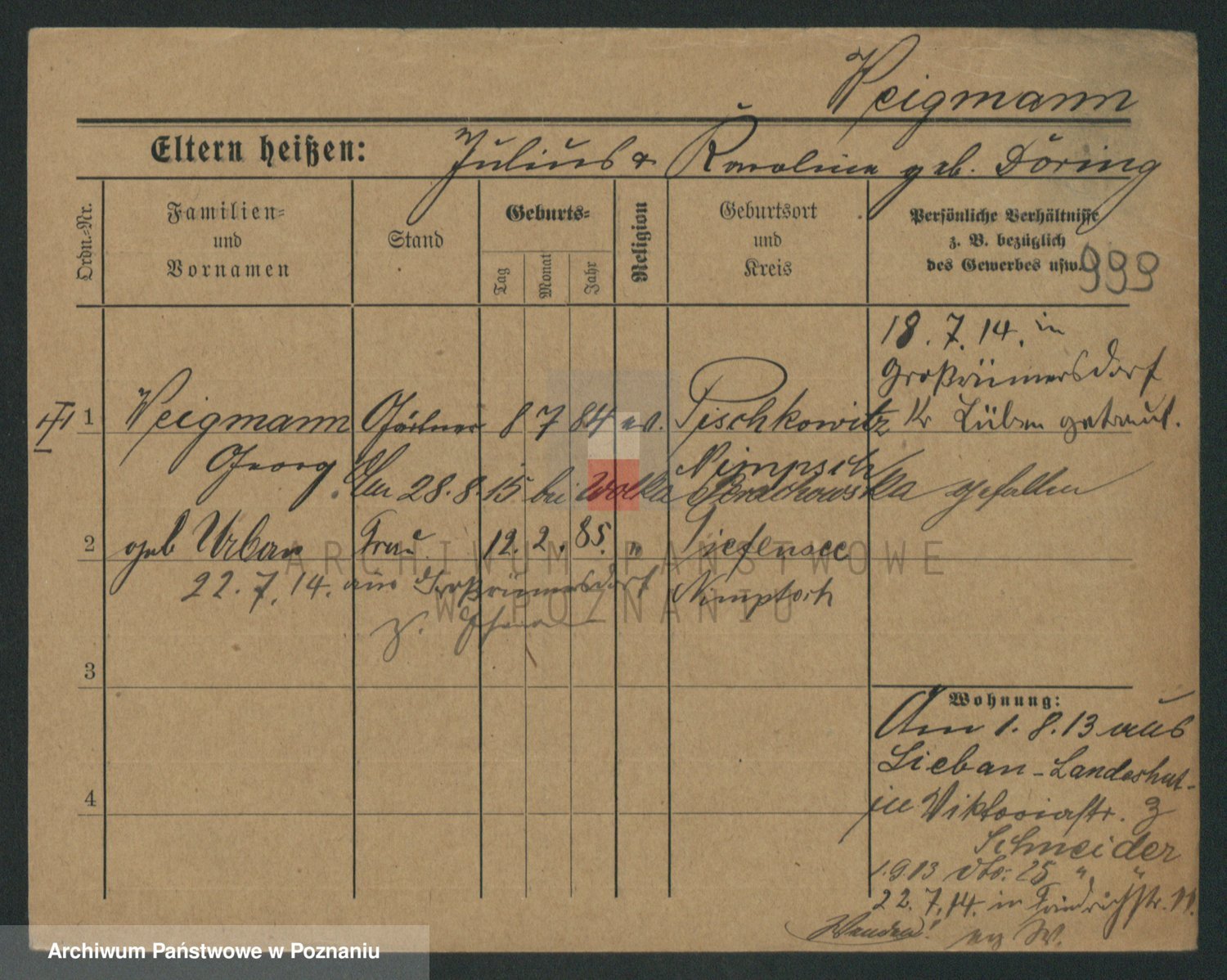 Durch Anklicken eines Namens oder Kartensymbols gelangen Sie zum Vorschau einer Personalkarte. Sie können die Ansicht vergrößern (Symbole am oberen Rand) oder zwischen den Scans wechseln (Pfeile an den Seiten).