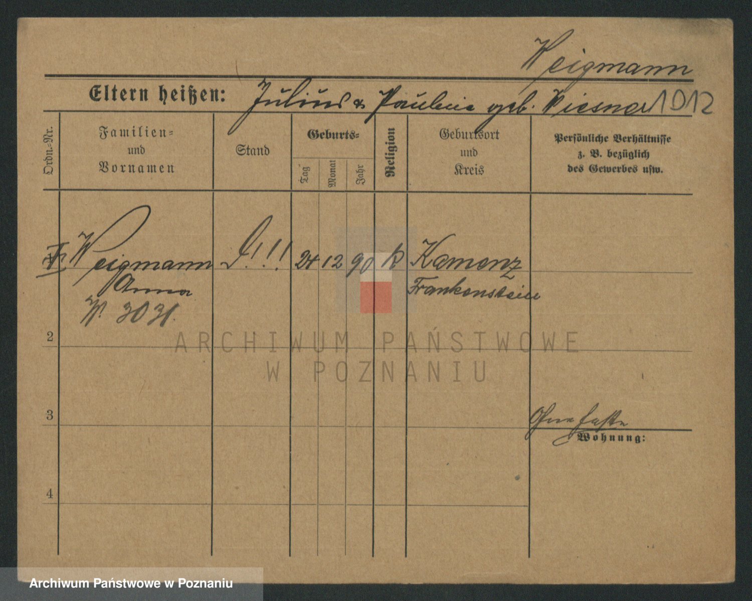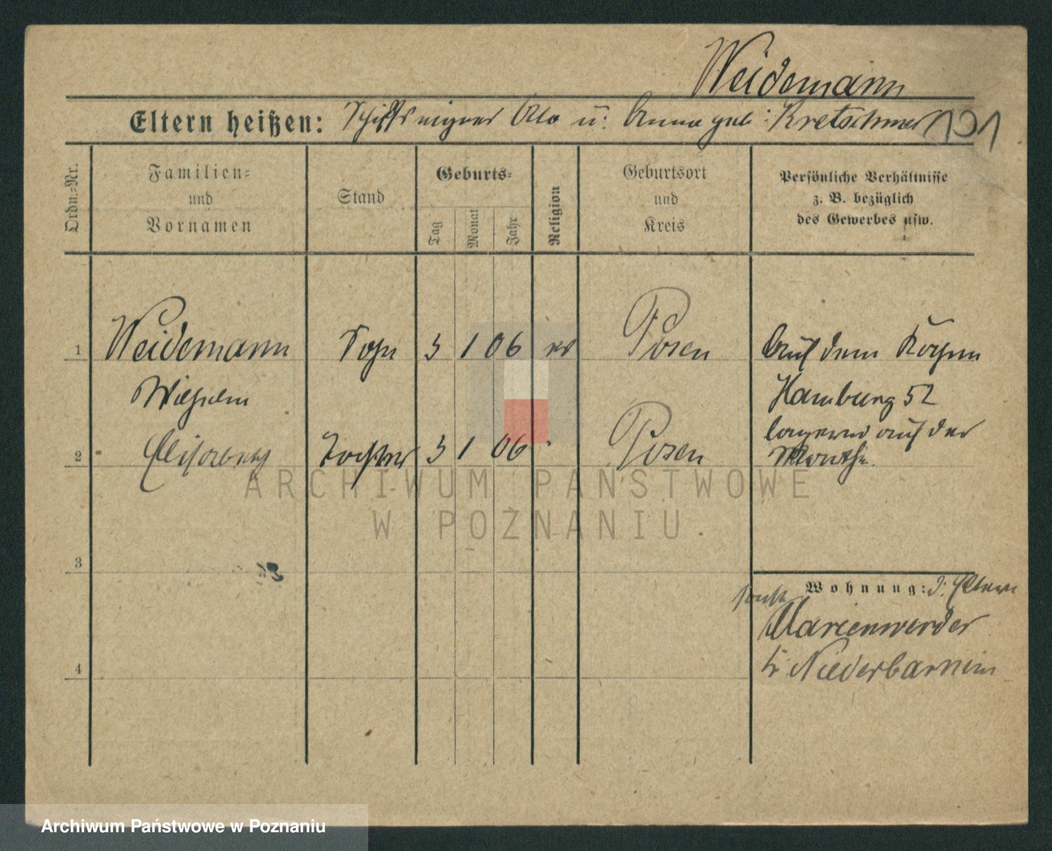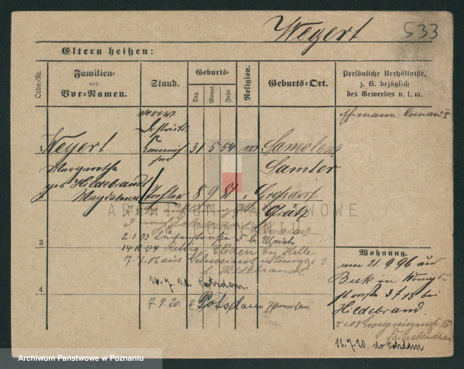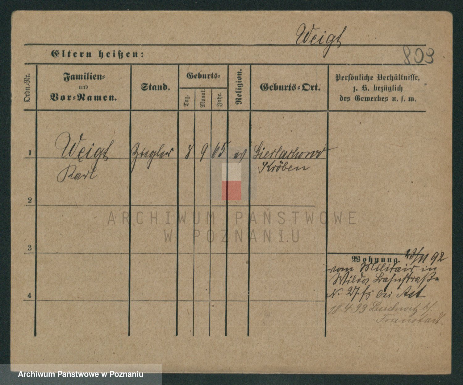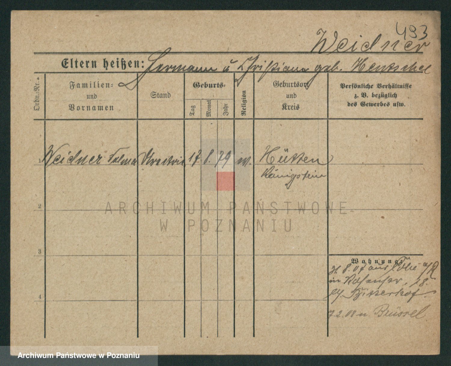 Durch Anklicken eines Namens oder Kartensymbols gelangen Sie zum Vorschau einer Personalkarte. Sie können die Ansicht vergrößern (Symbole am oberen Rand) oder zwischen den Scans wechseln (Pfeile an den Seiten).