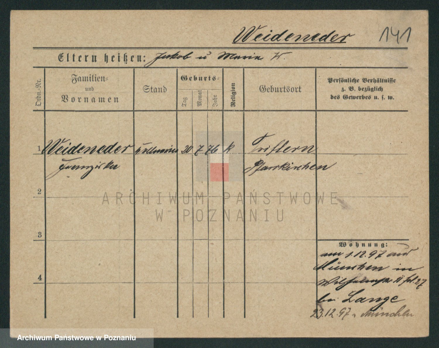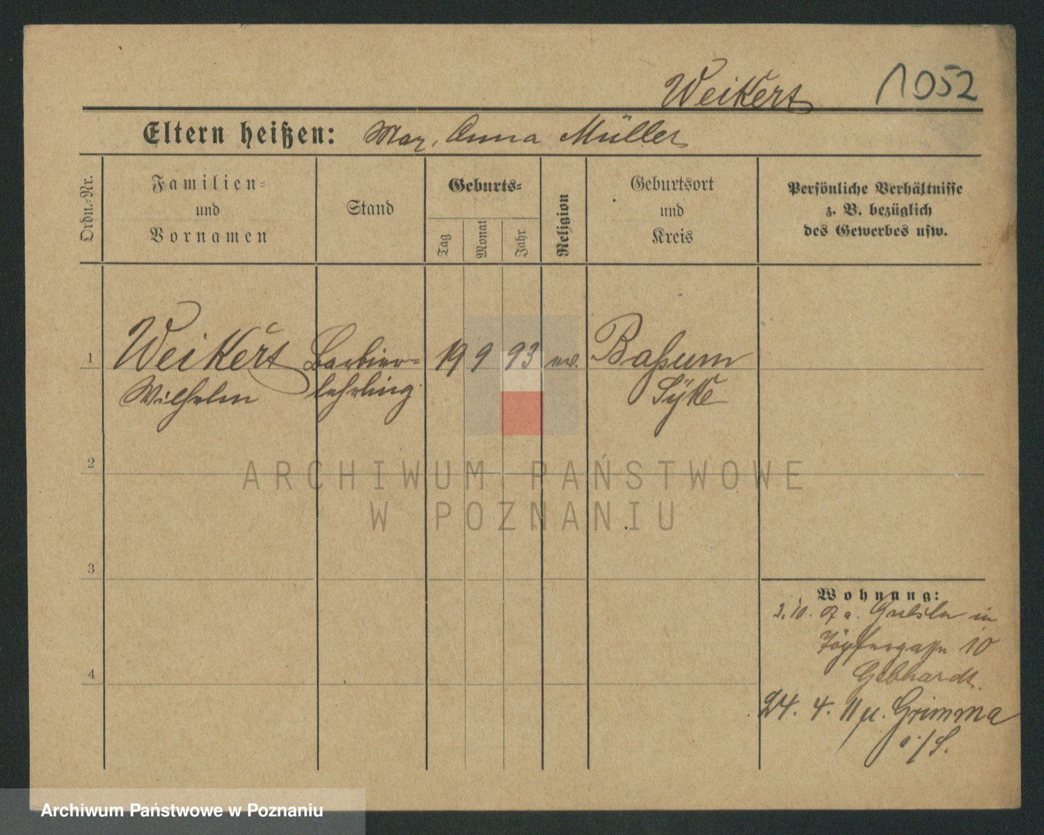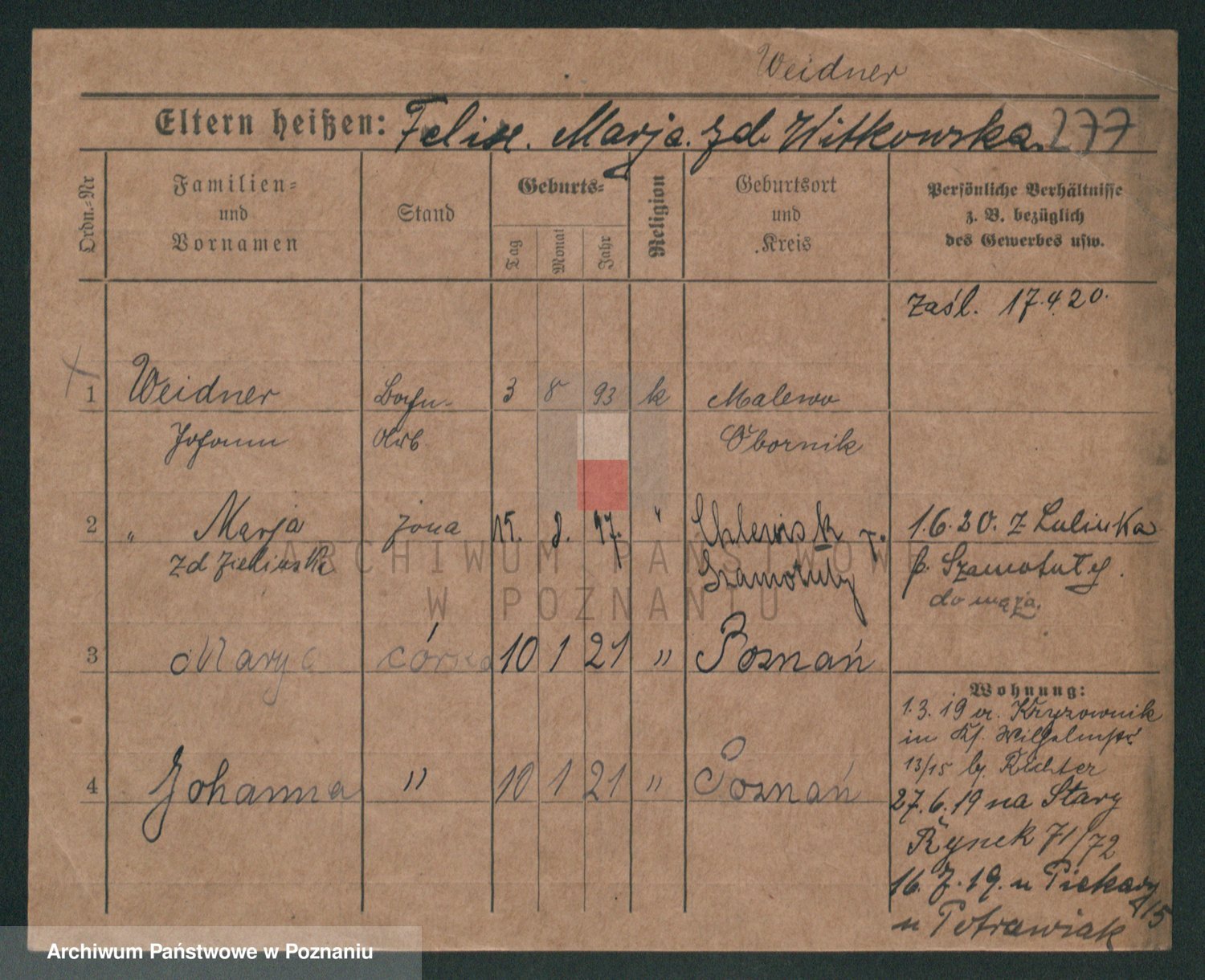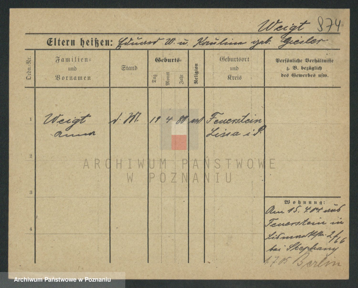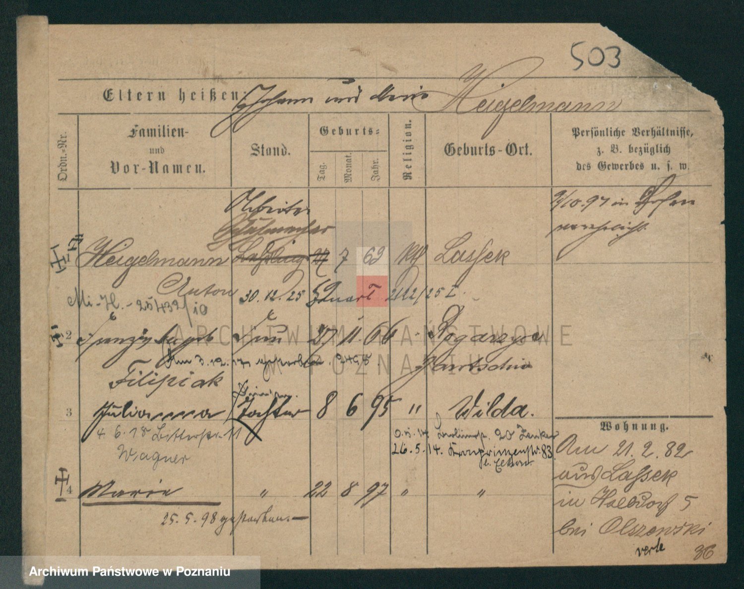Durch Anklicken eines Namens oder Kartensymbols gelangen Sie zum Vorschau einer Personalkarte. Sie können die Ansicht vergrößern (Symbole am oberen Rand) oder zwischen den Scans wechseln (Pfeile an den Seiten).