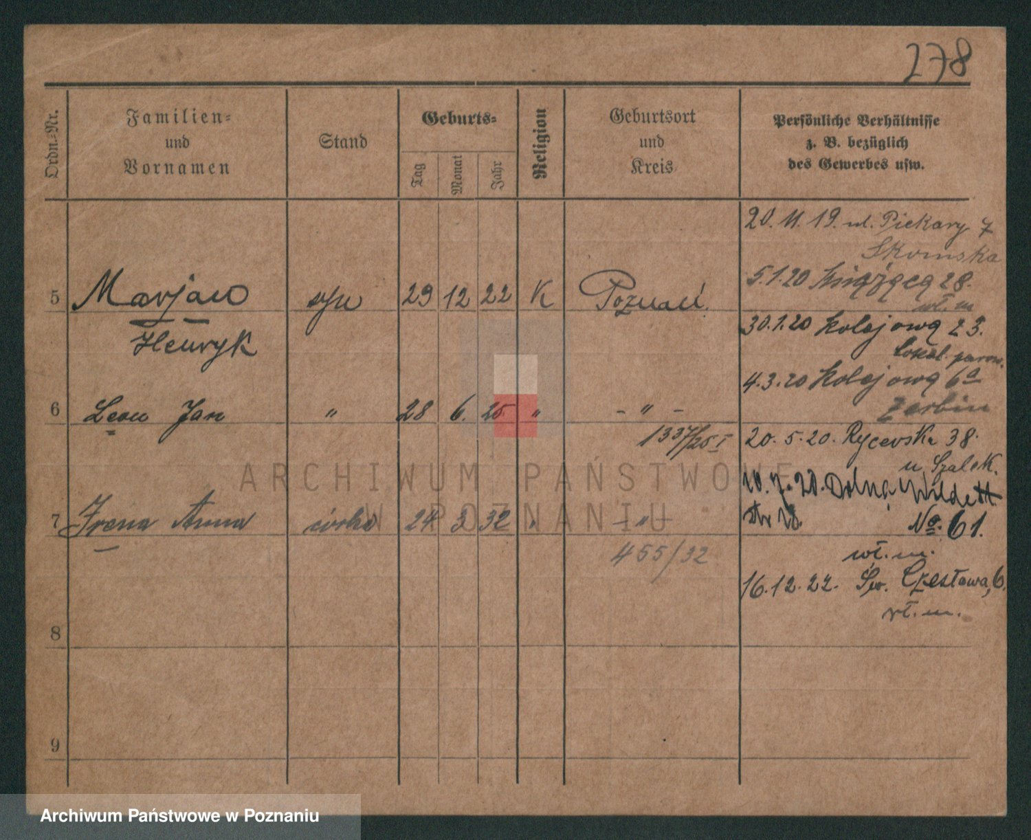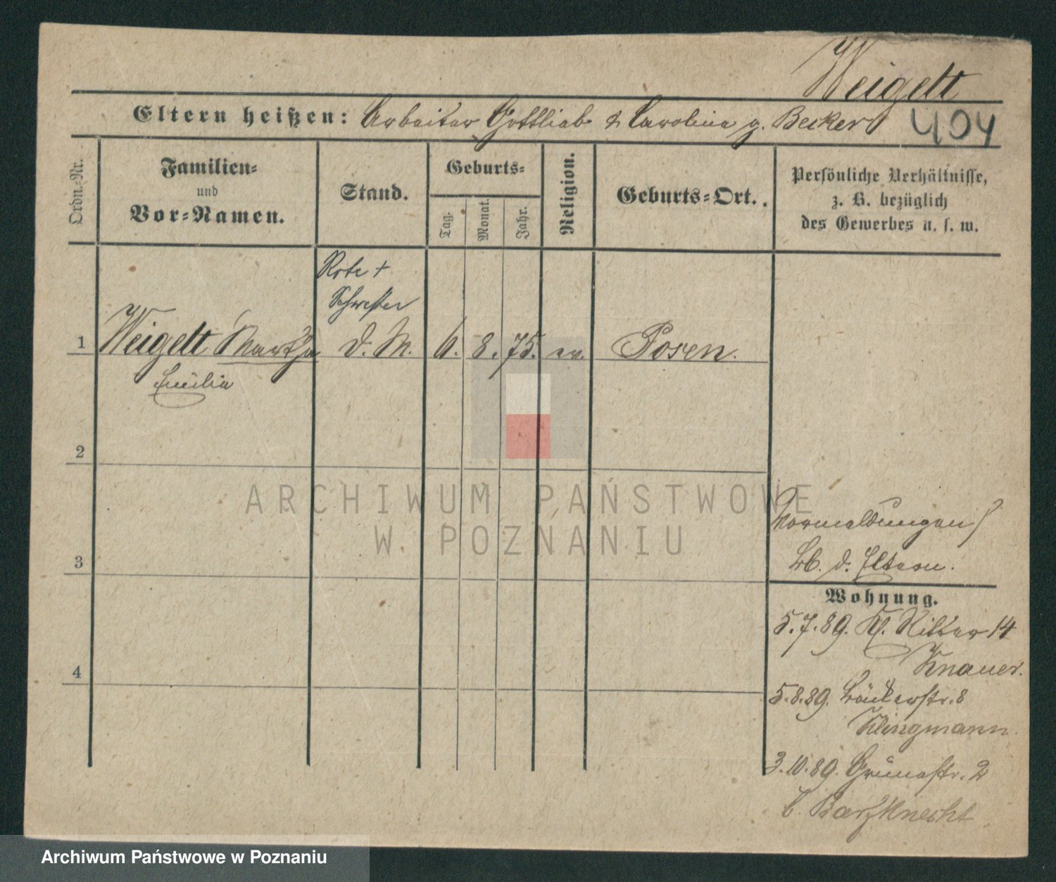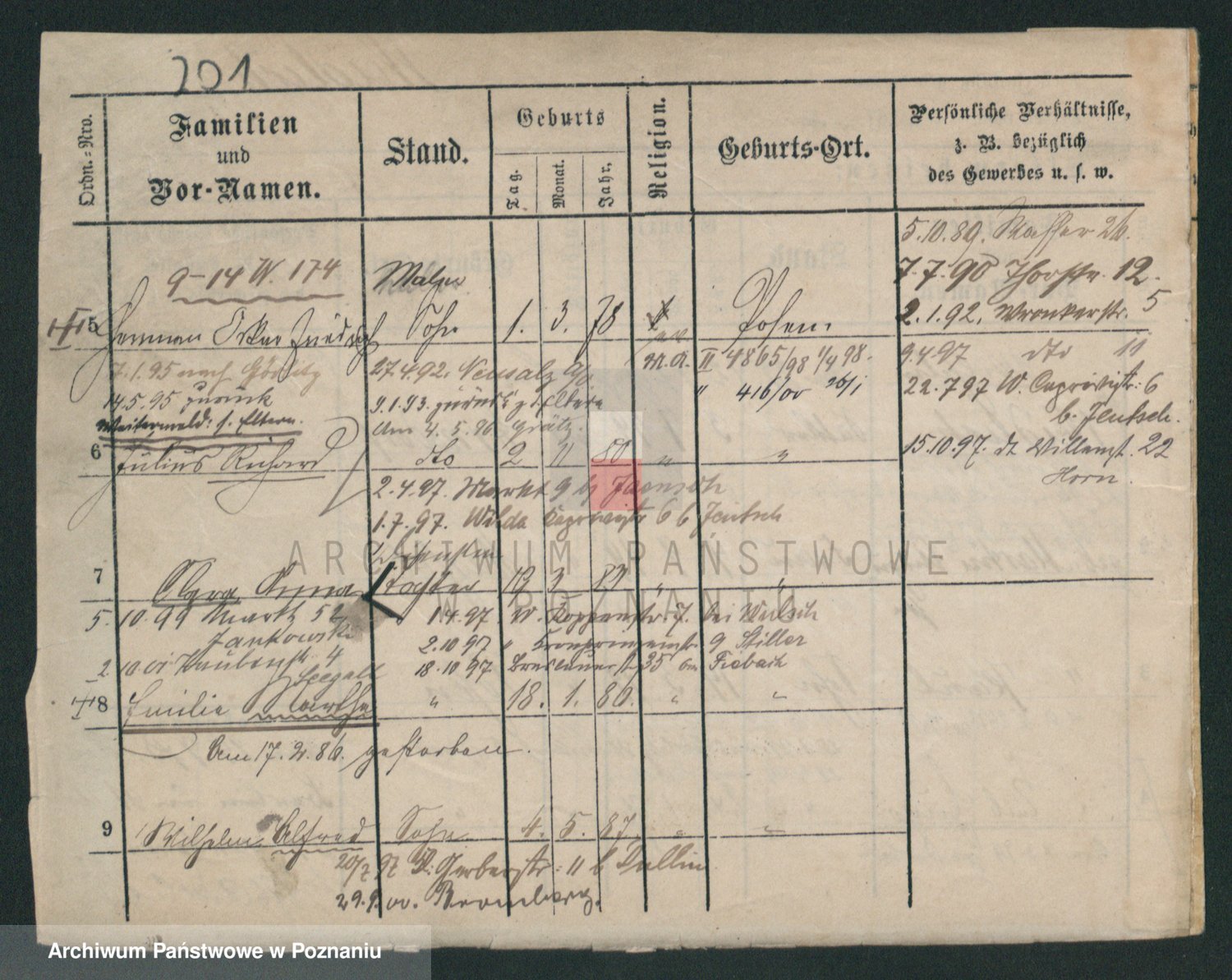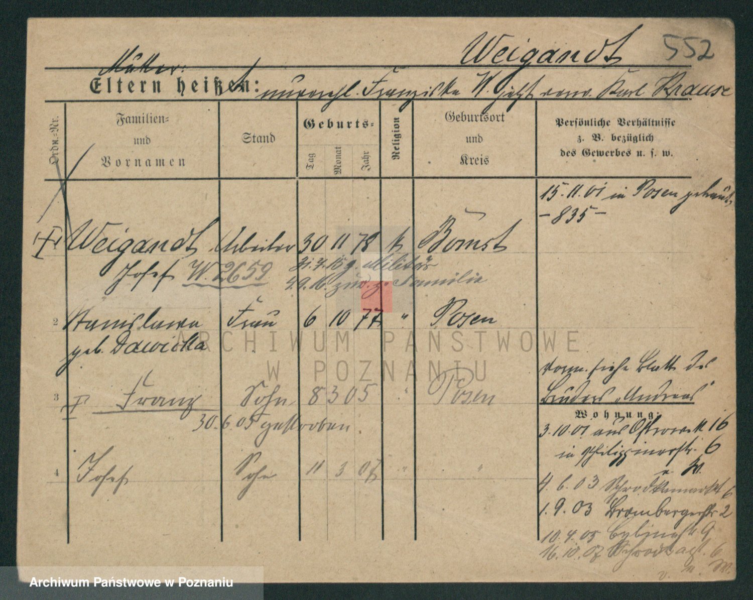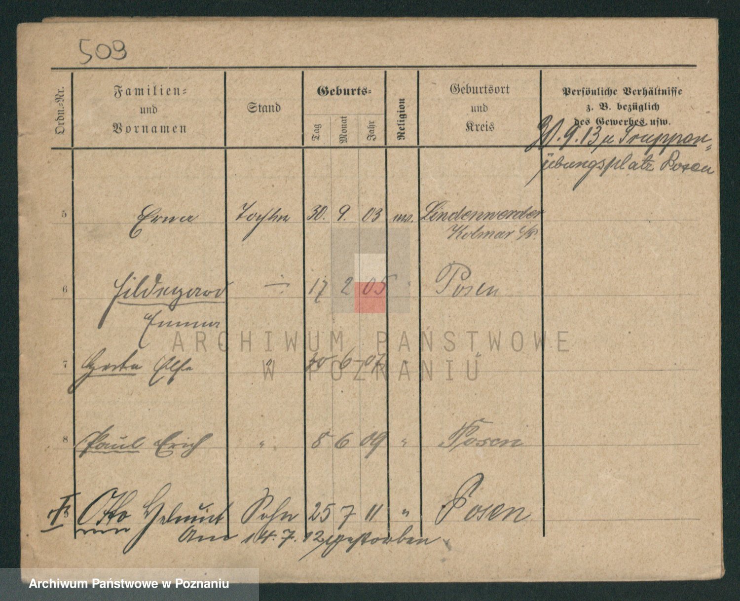 Durch Anklicken eines Namens oder Kartensymbols gelangen Sie zum Vorschau einer Personalkarte. Sie können die Ansicht vergrößern (Symbole am oberen Rand) oder zwischen den Scans wechseln (Pfeile an den Seiten).