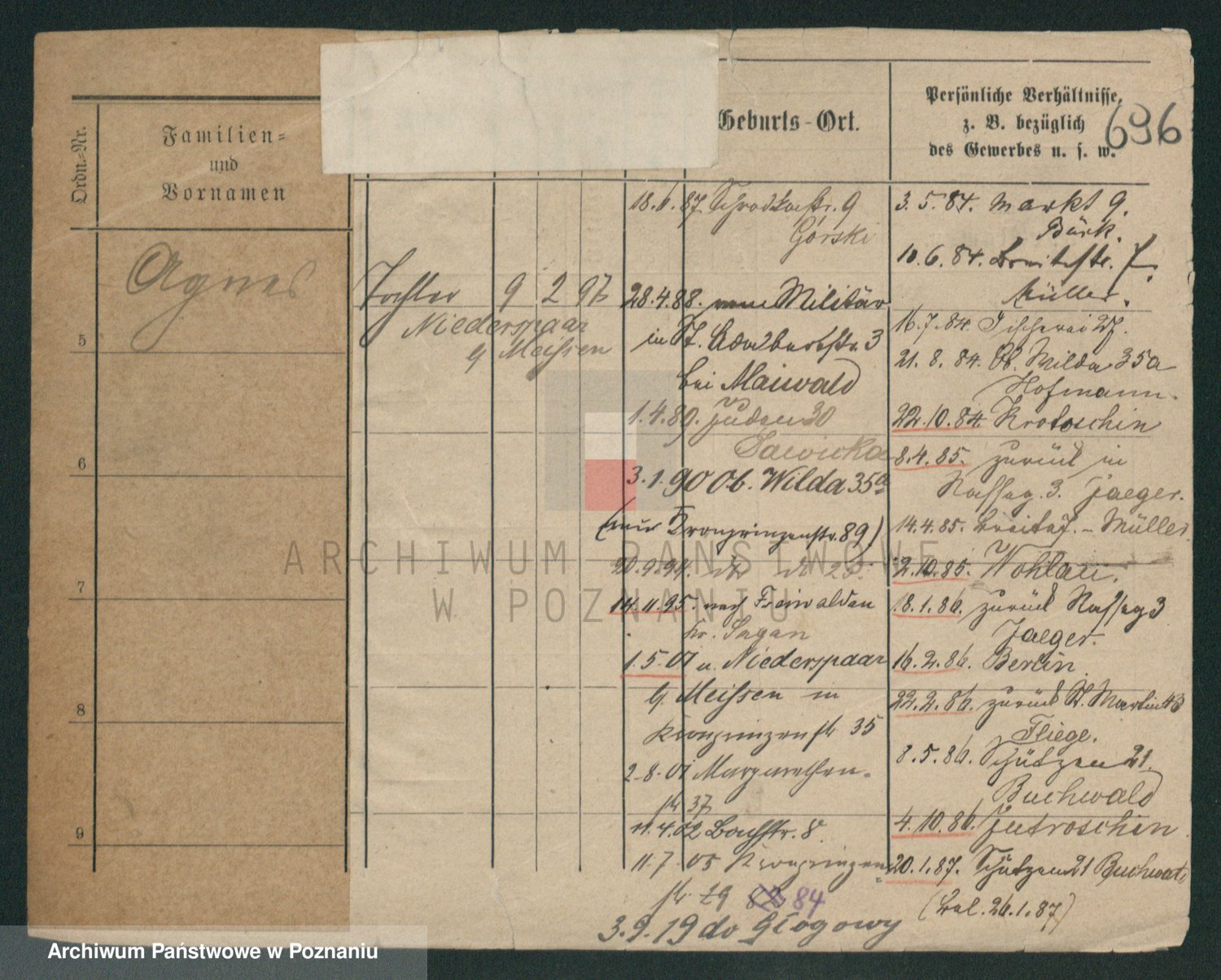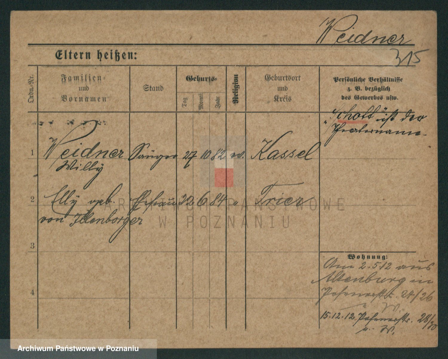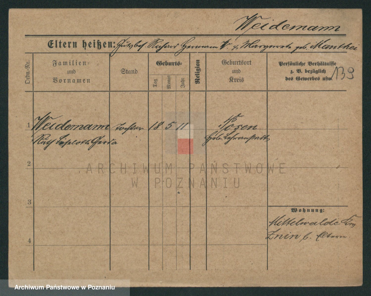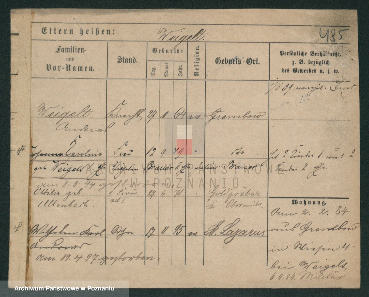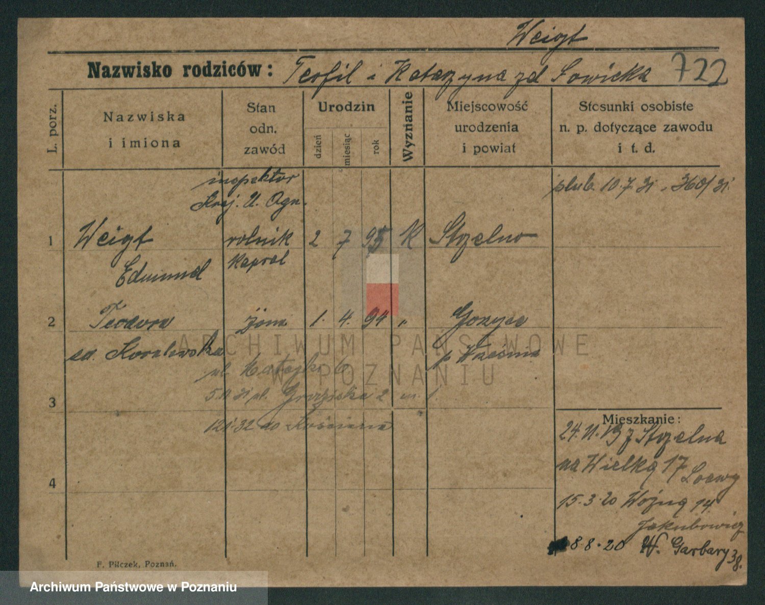 Durch Anklicken eines Namens oder Kartensymbols gelangen Sie zum Vorschau einer Personalkarte. Sie können die Ansicht vergrößern (Symbole am oberen Rand) oder zwischen den Scans wechseln (Pfeile an den Seiten).