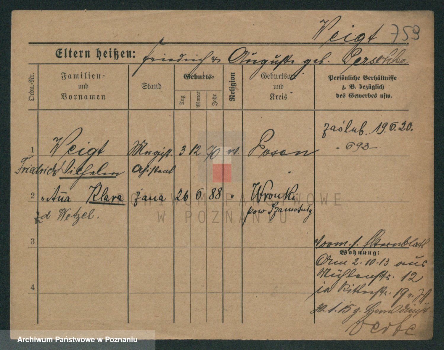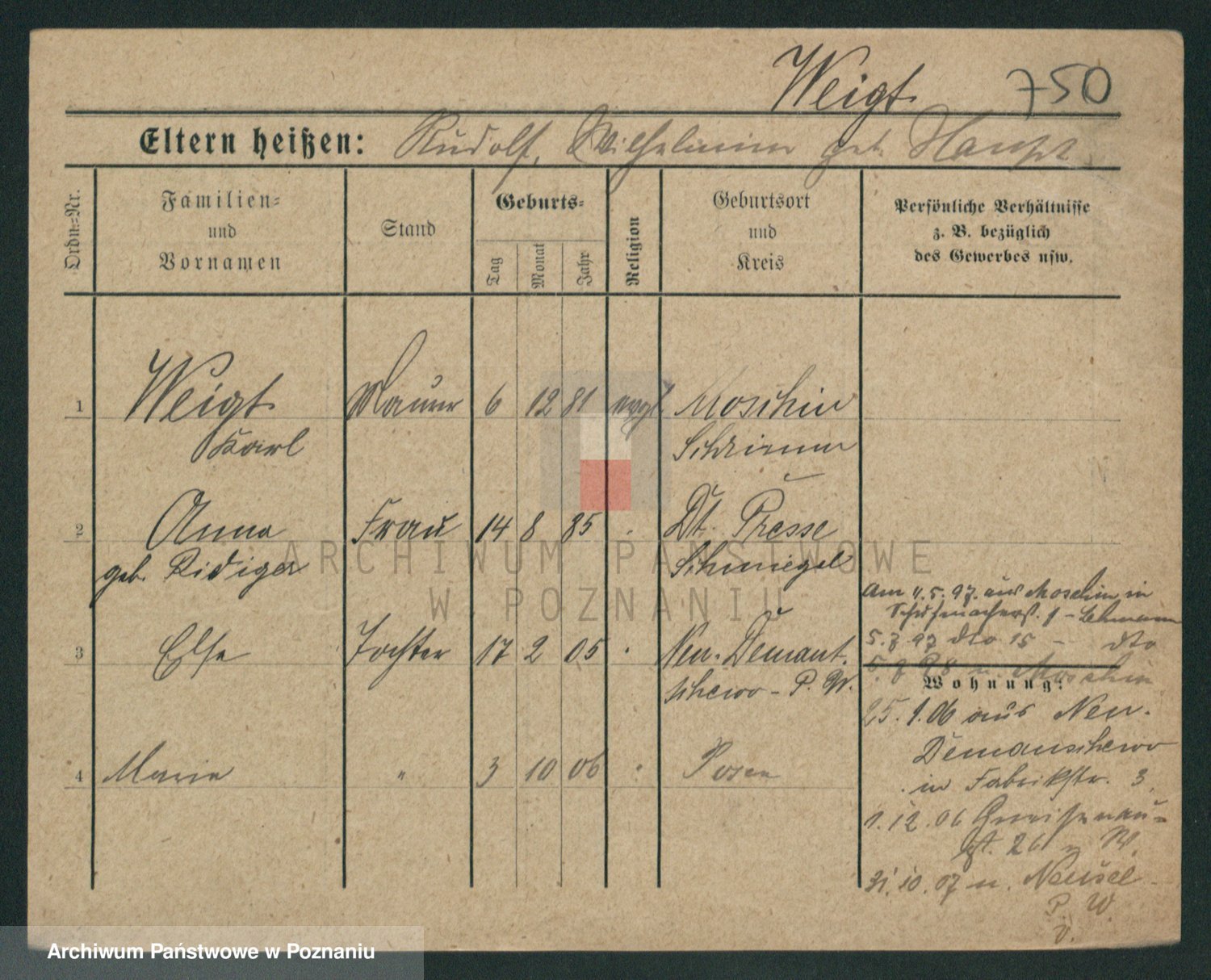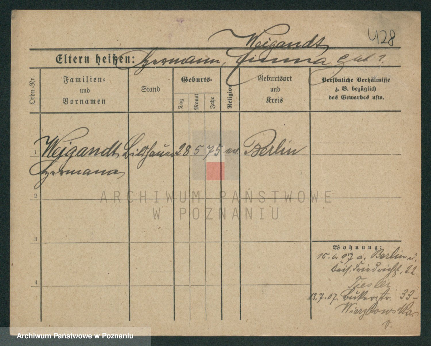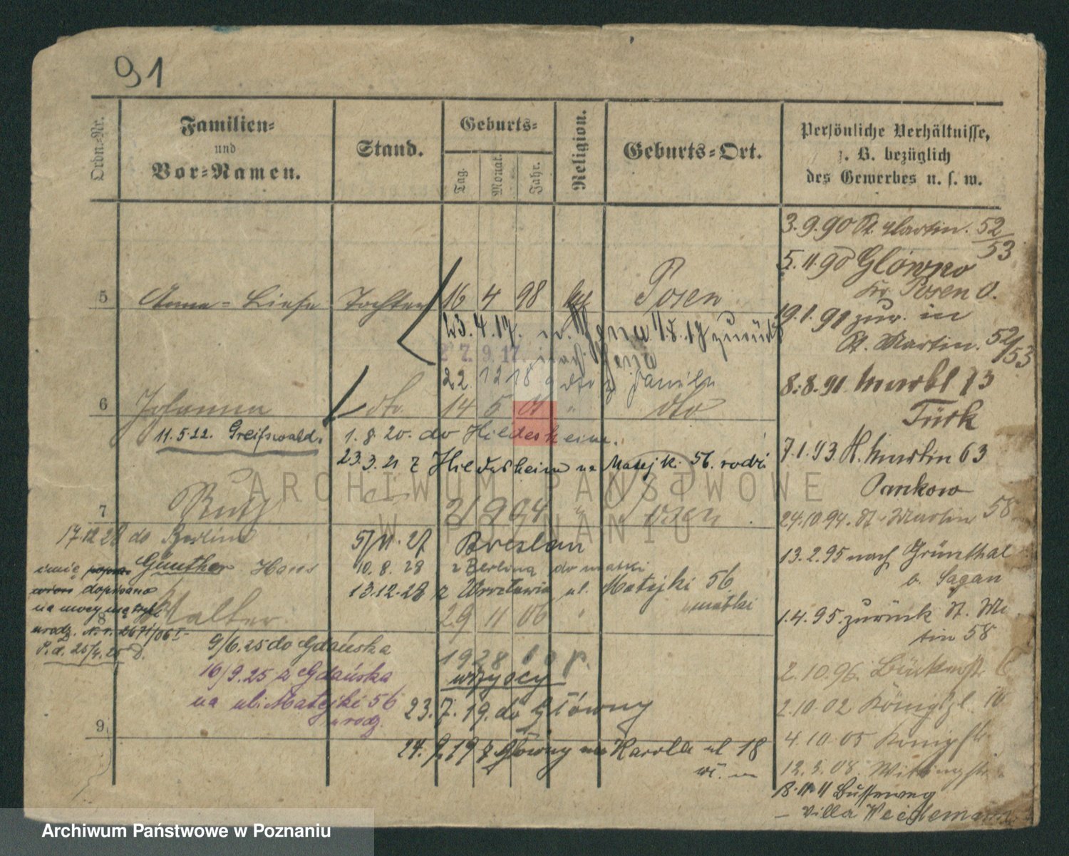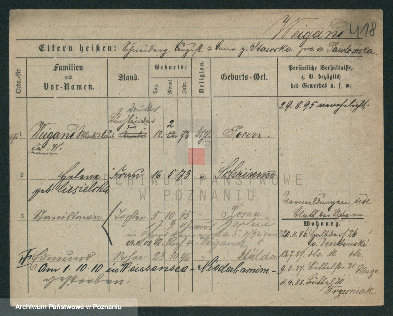 Durch Anklicken eines Namens oder Kartensymbols gelangen Sie zum Vorschau einer Personalkarte. Sie können die Ansicht vergrößern (Symbole am oberen Rand) oder zwischen den Scans wechseln (Pfeile an den Seiten).