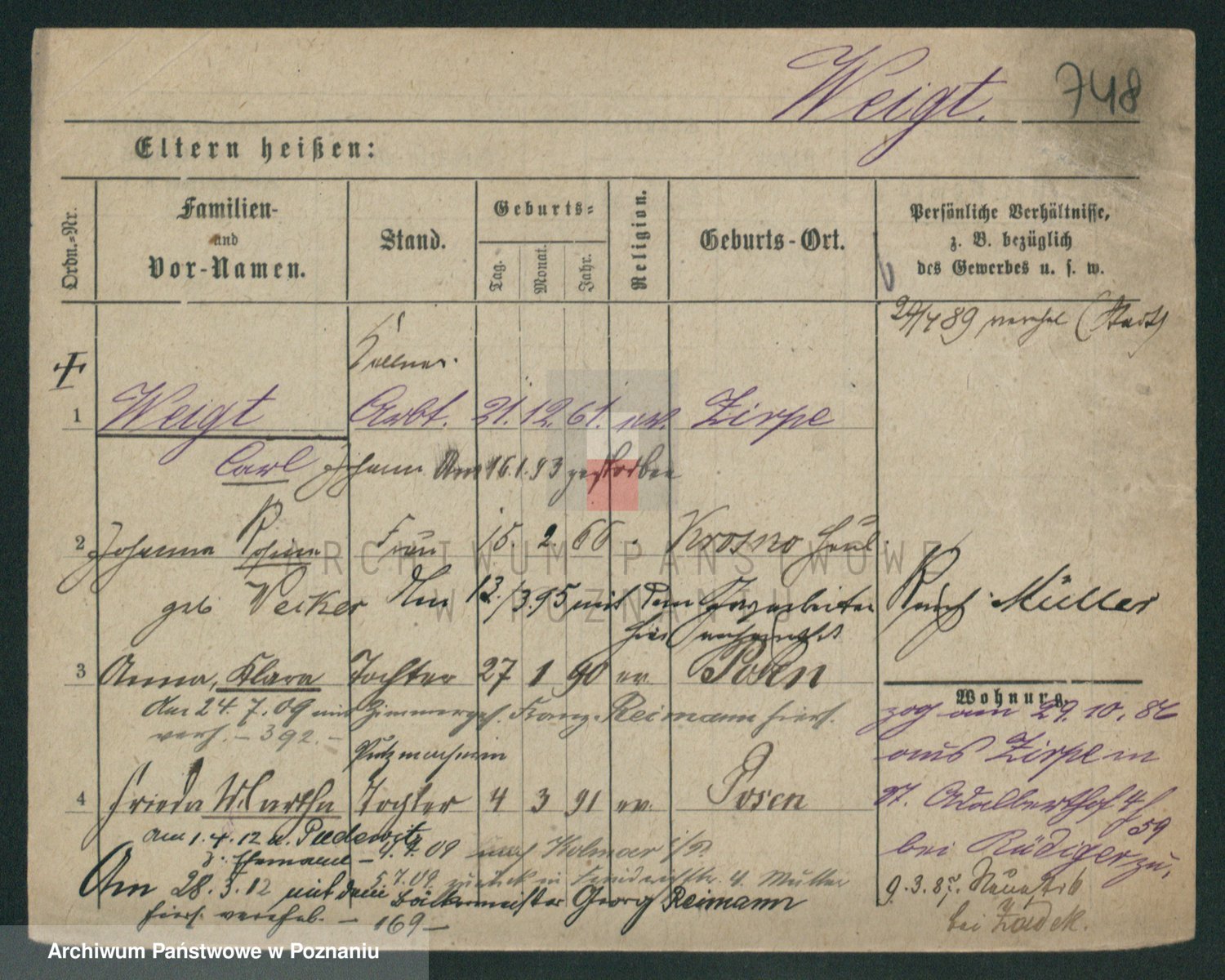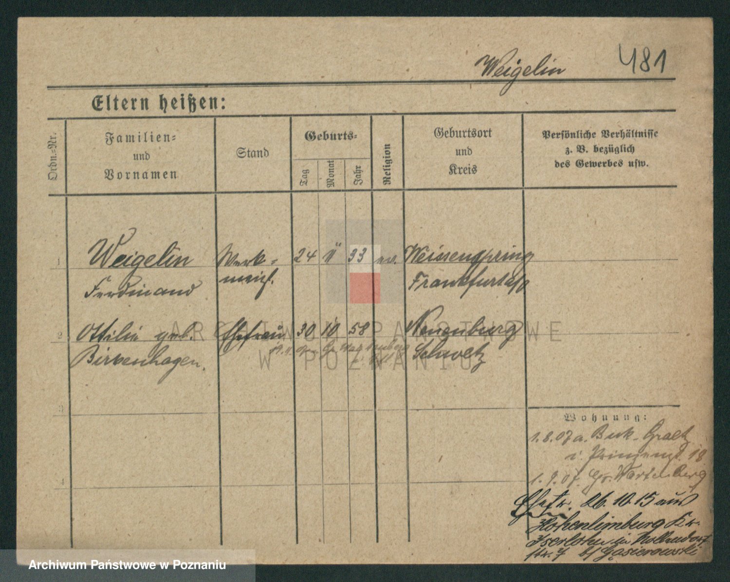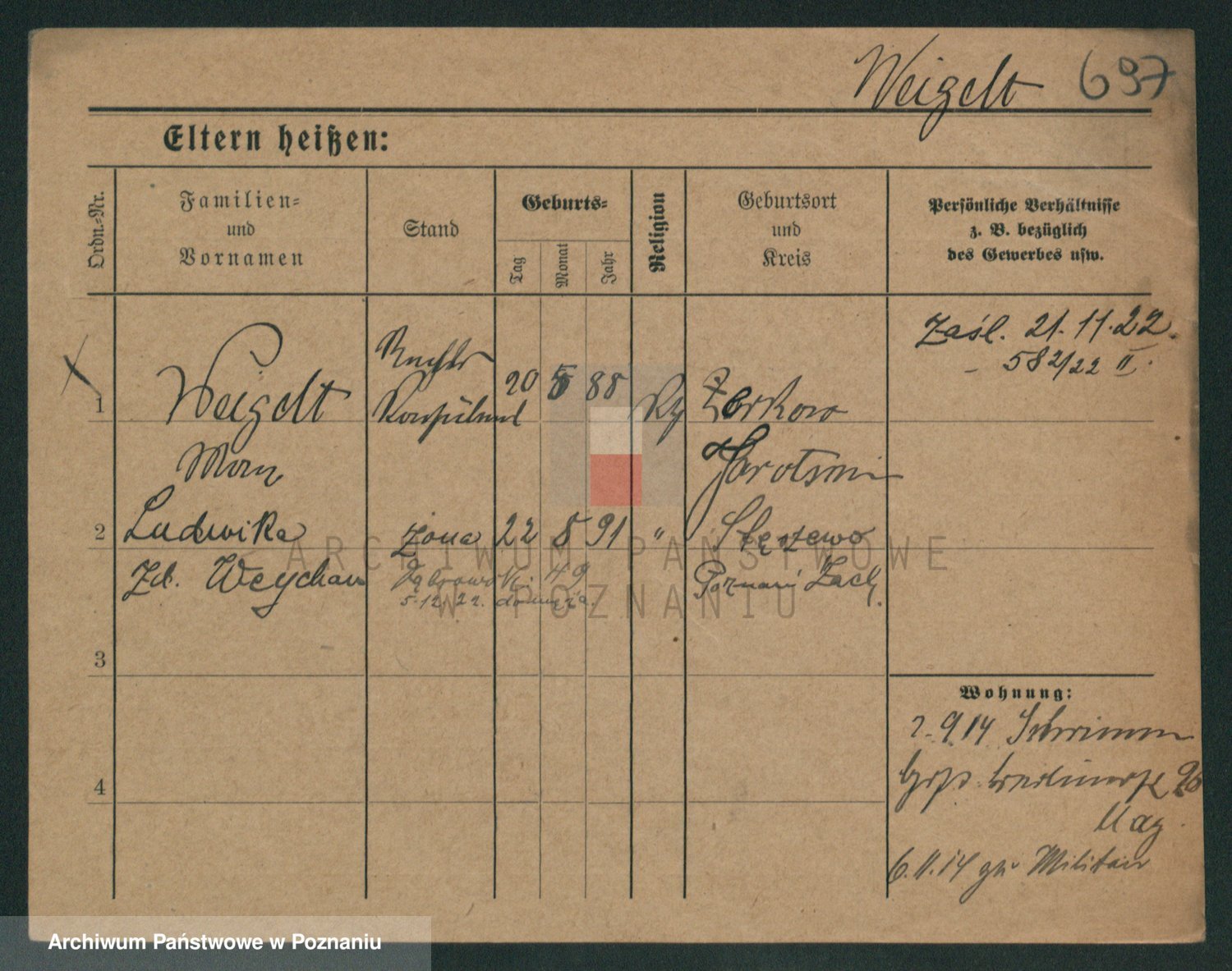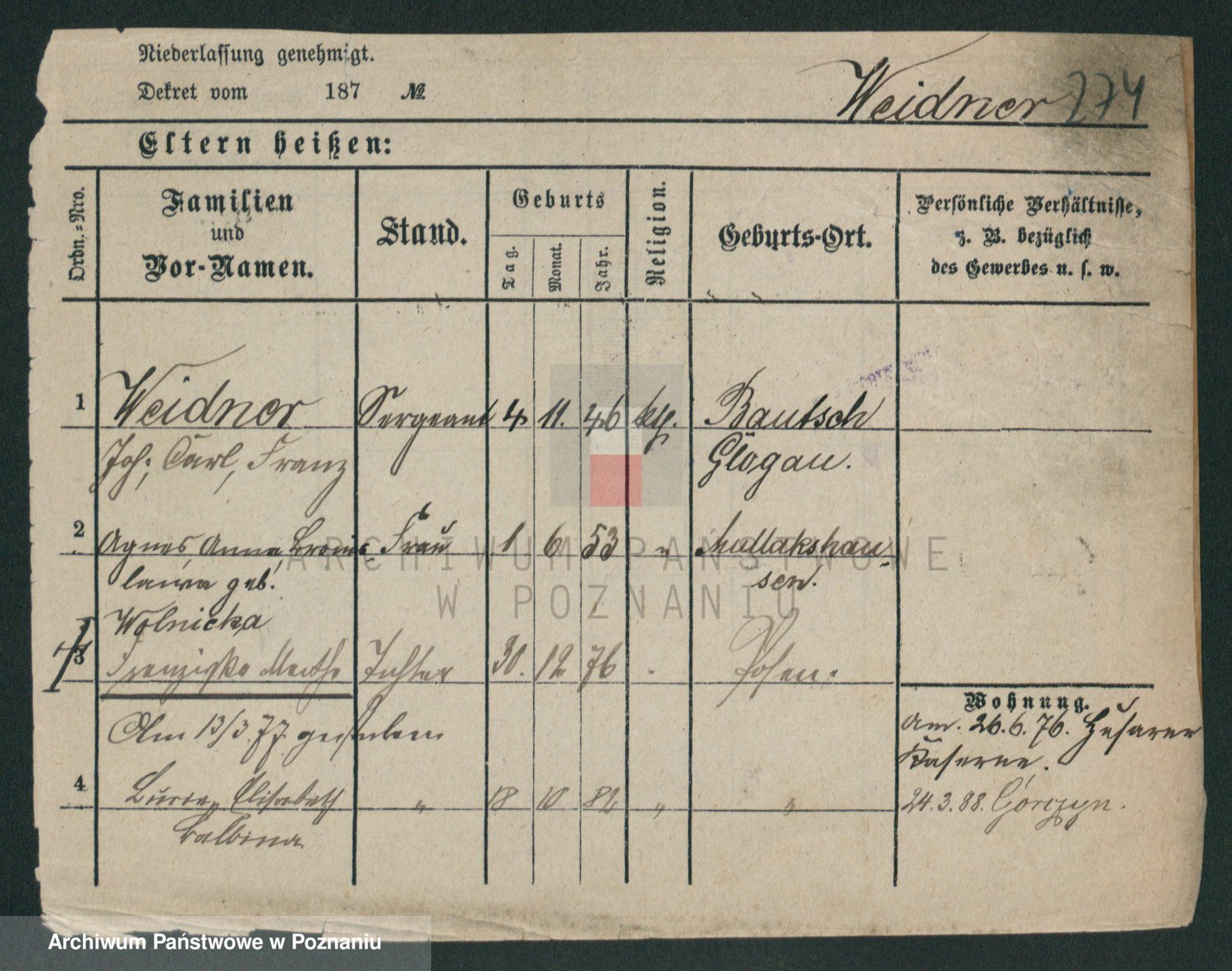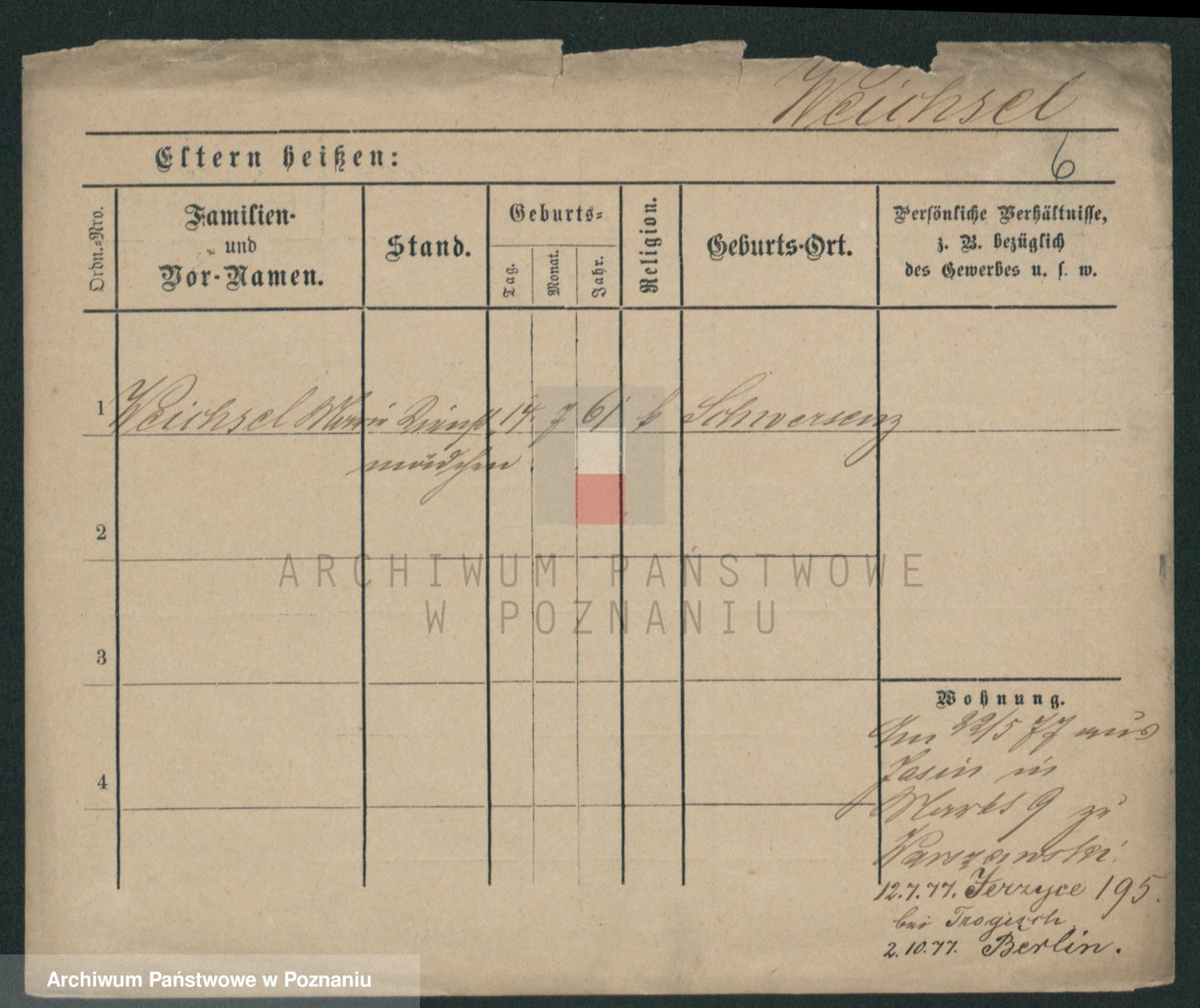 Durch Anklicken eines Namens oder Kartensymbols gelangen Sie zum Vorschau einer Personalkarte. Sie können die Ansicht vergrößern (Symbole am oberen Rand) oder zwischen den Scans wechseln (Pfeile an den Seiten).