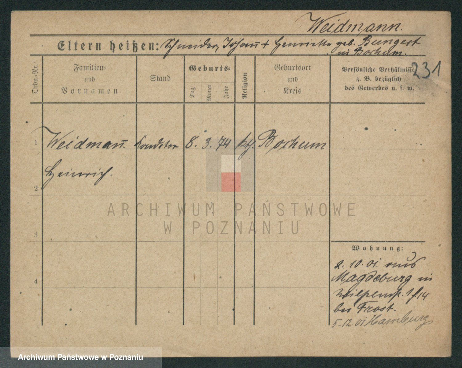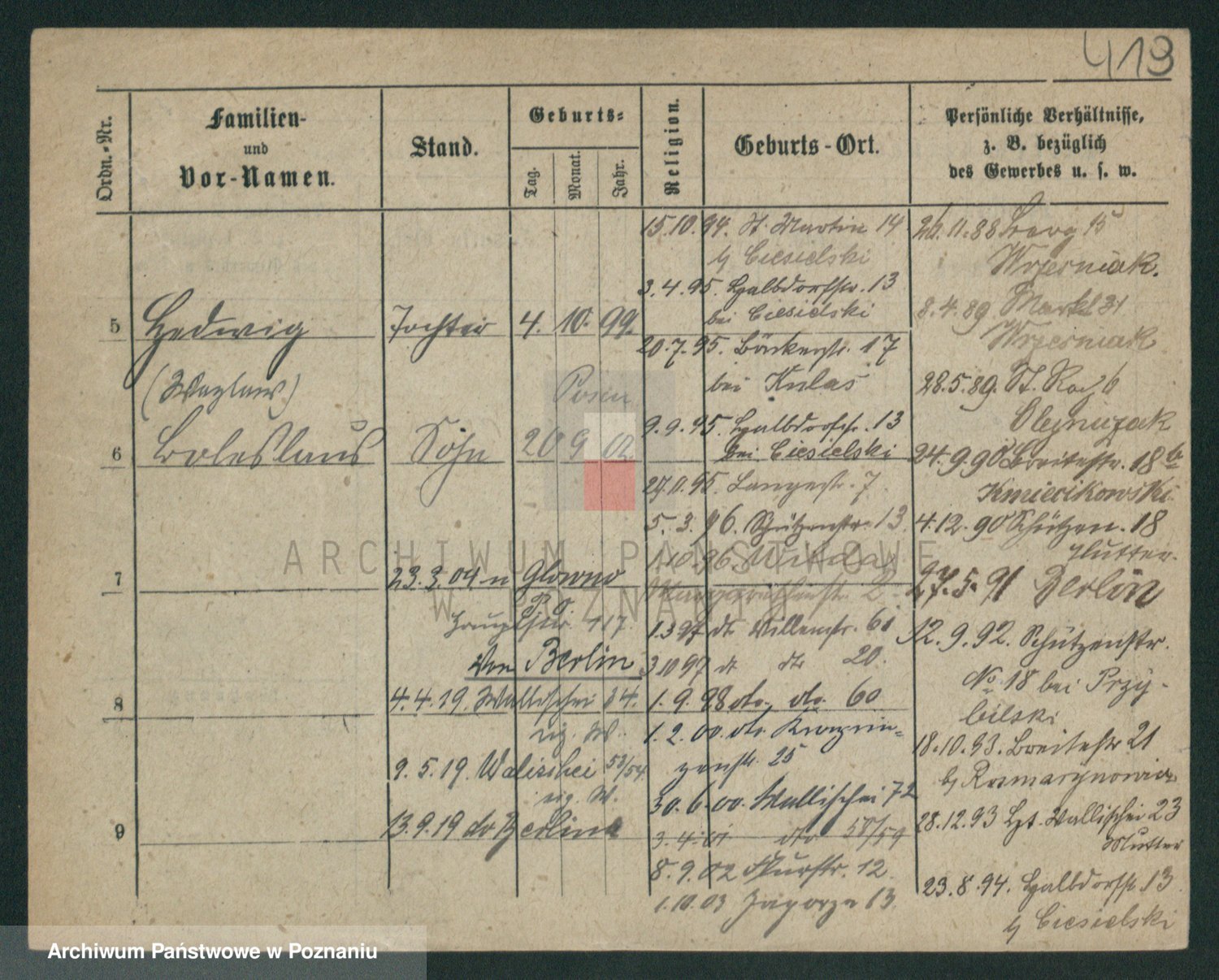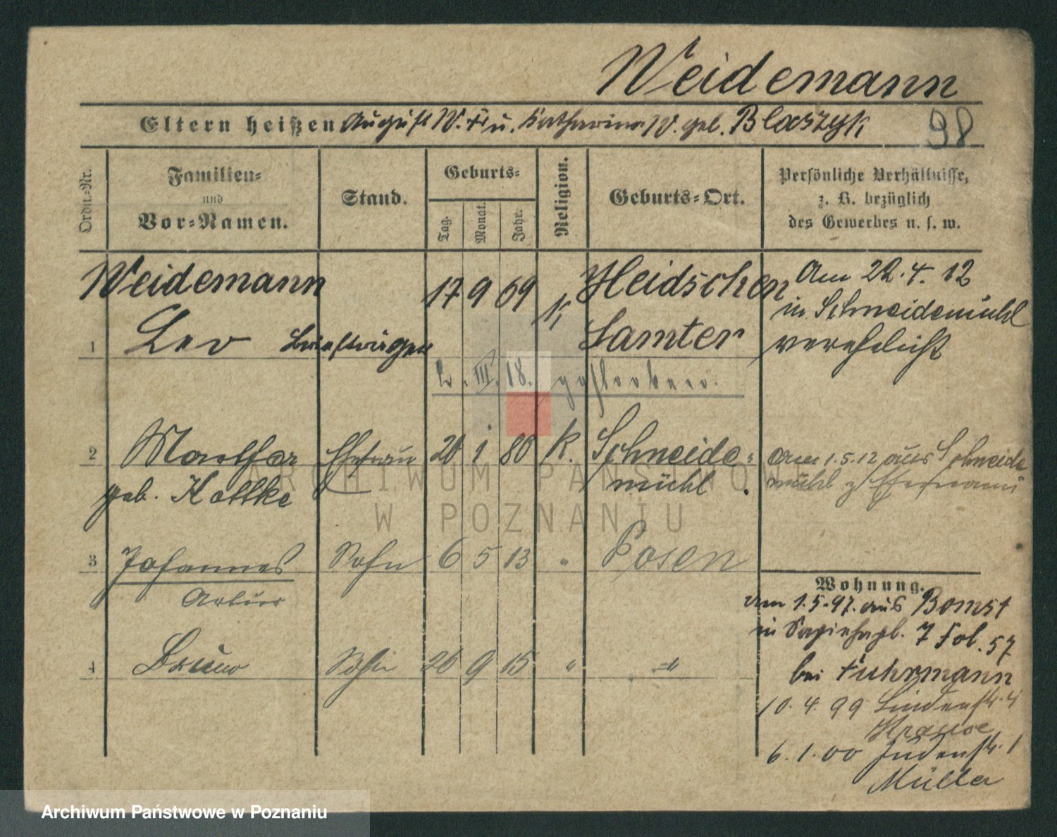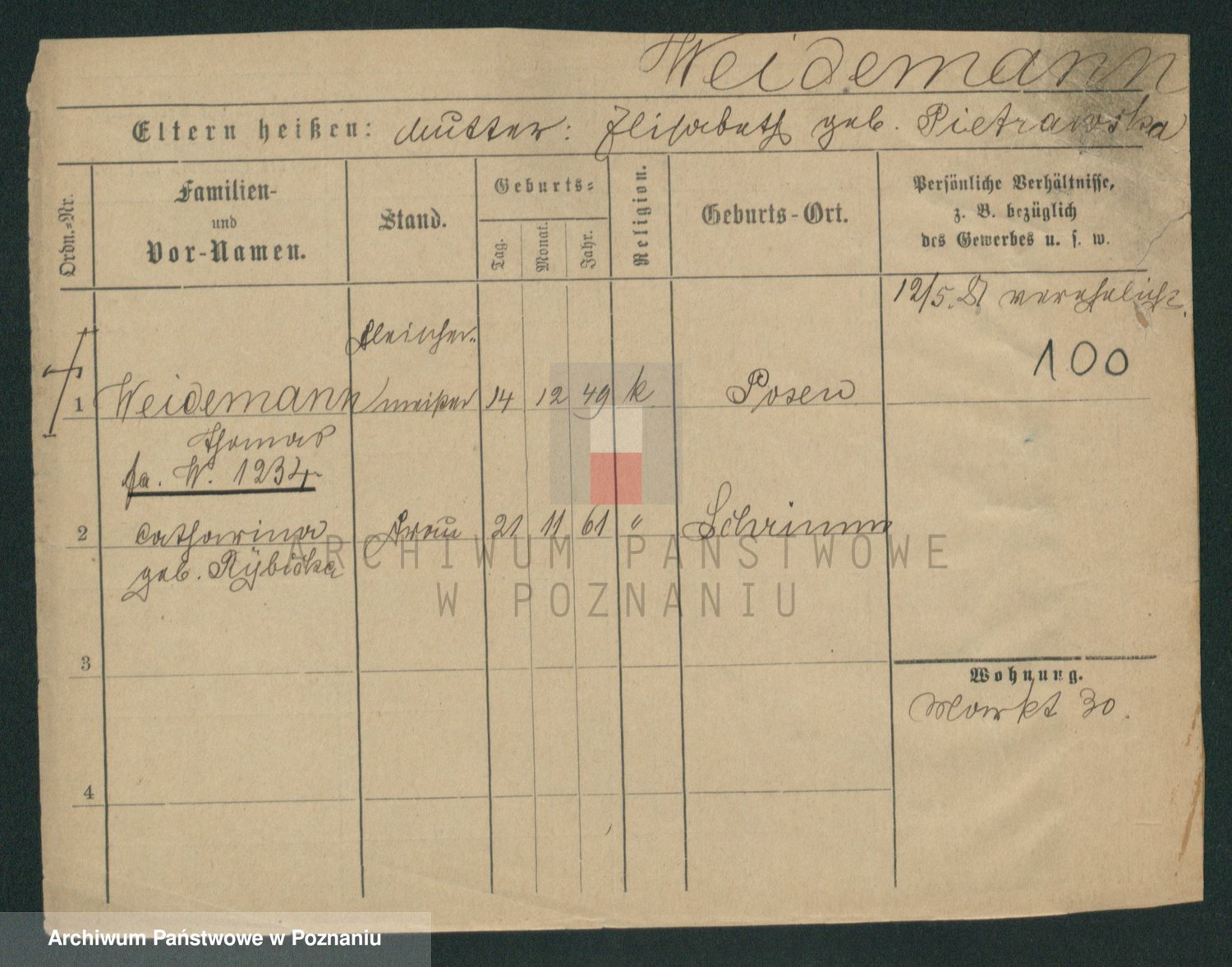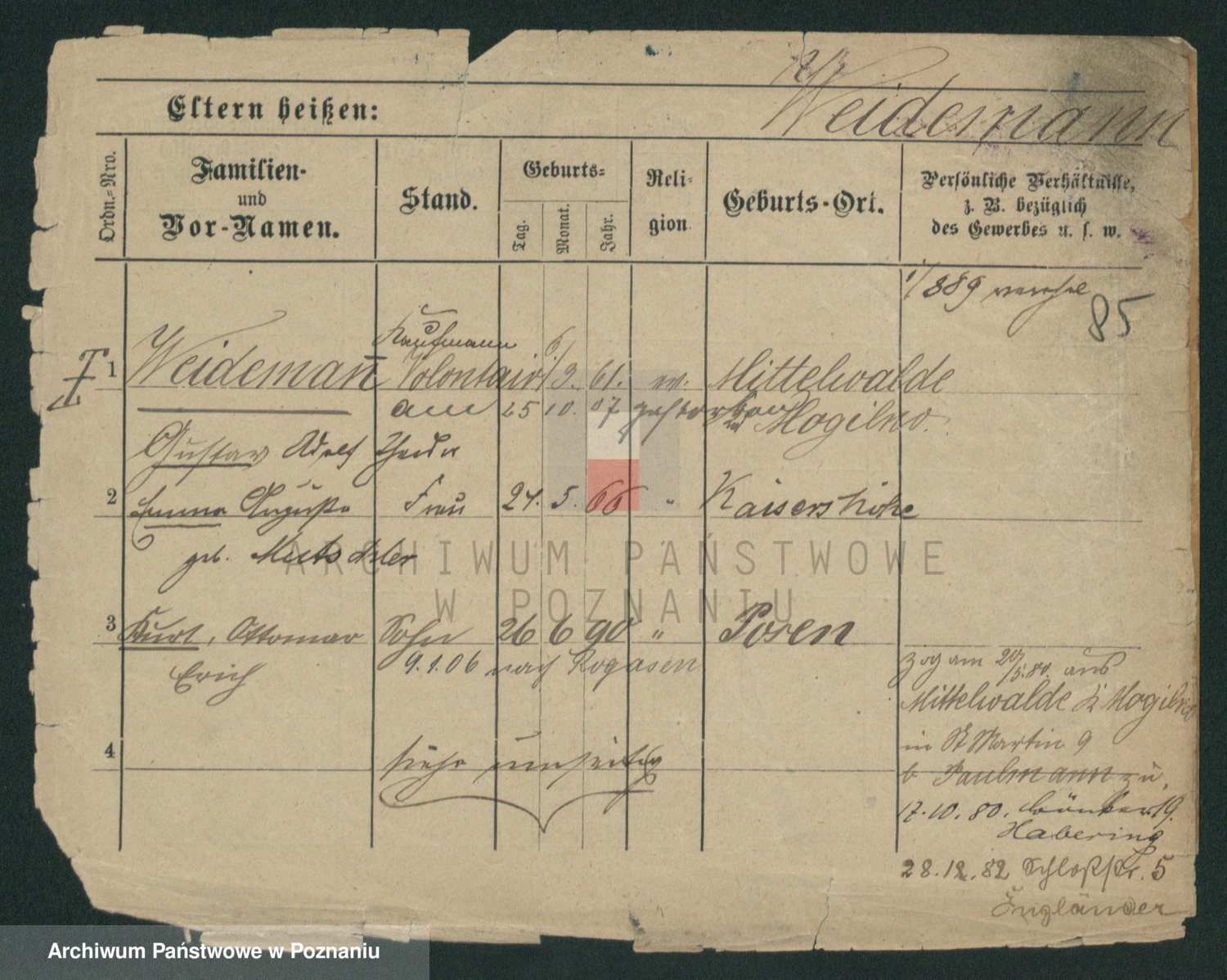 Durch Anklicken eines Namens oder Kartensymbols gelangen Sie zum Vorschau einer Personalkarte. Sie können die Ansicht vergrößern (Symbole am oberen Rand) oder zwischen den Scans wechseln (Pfeile an den Seiten).