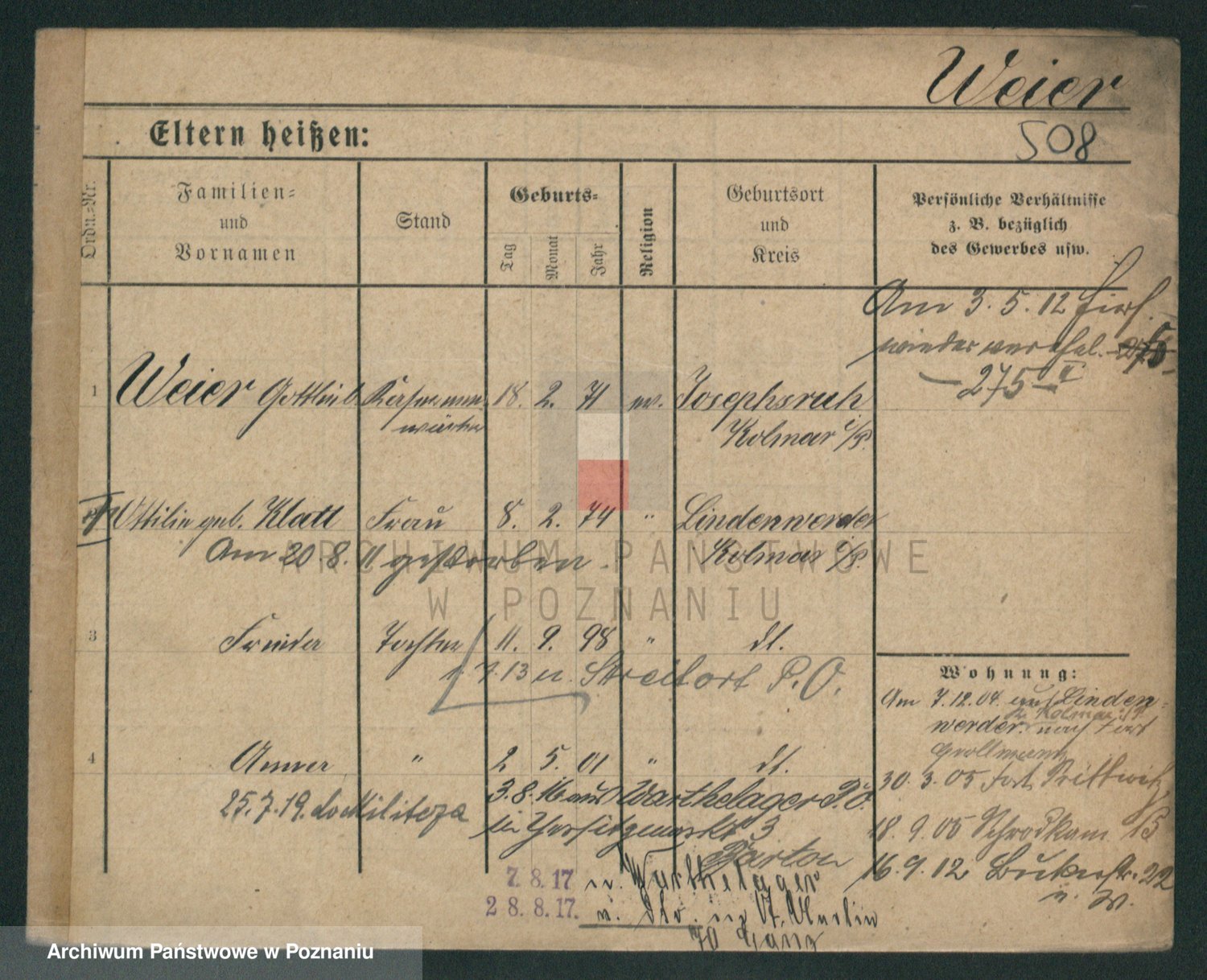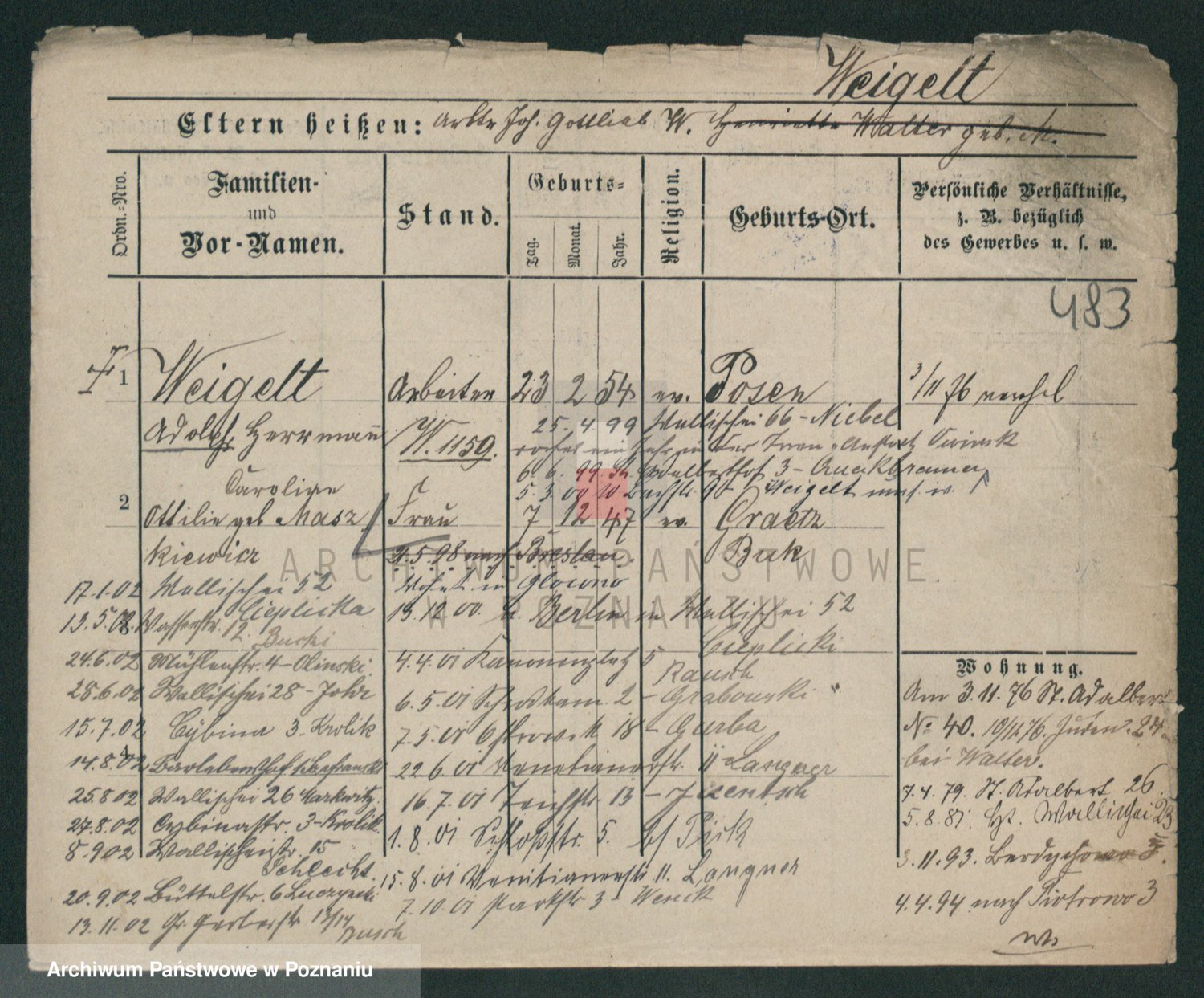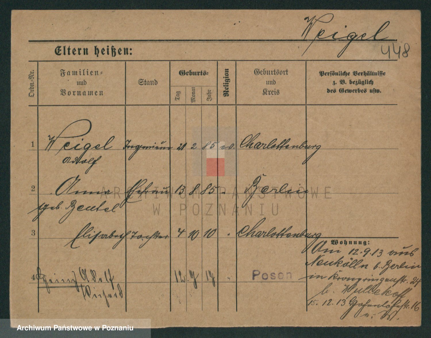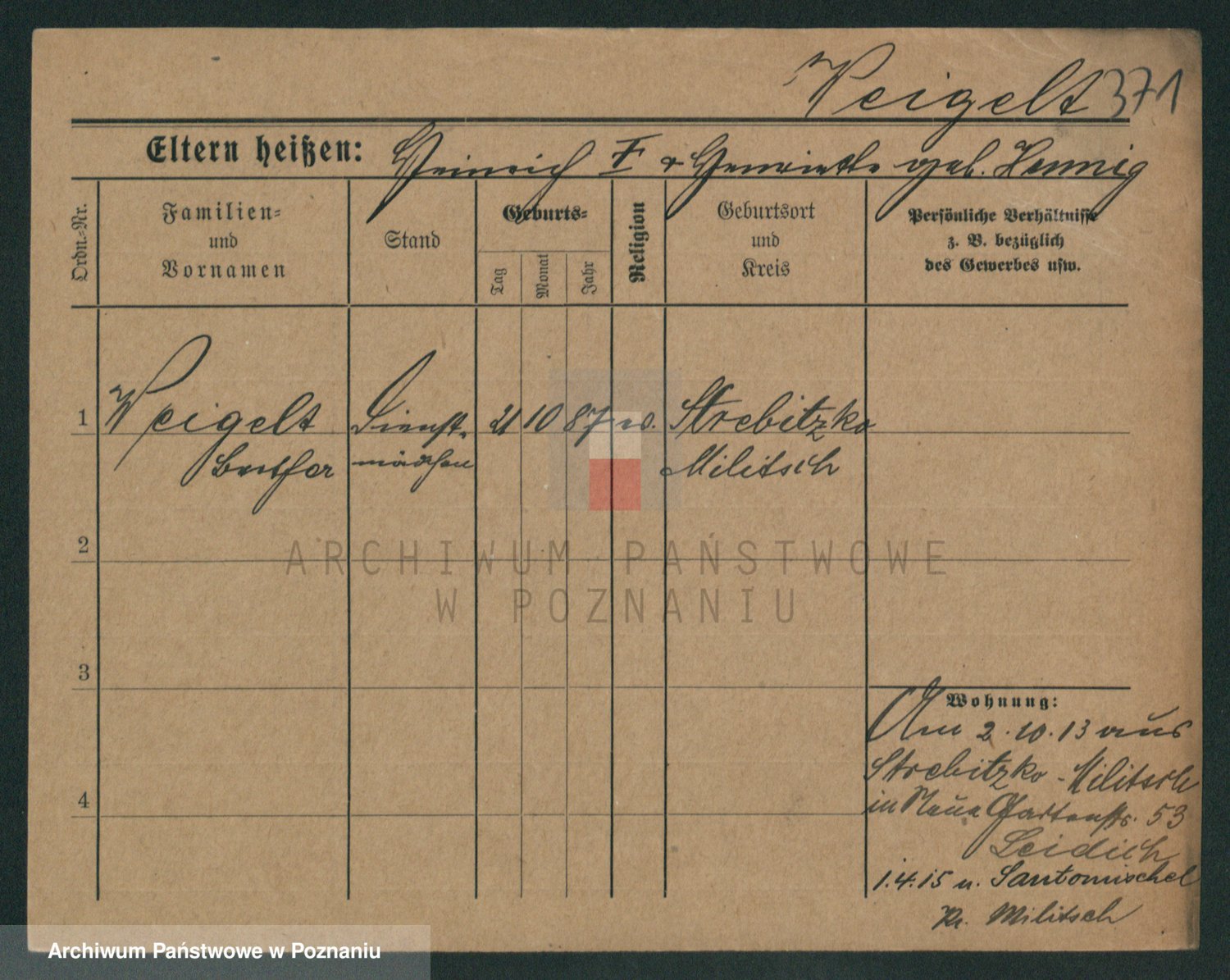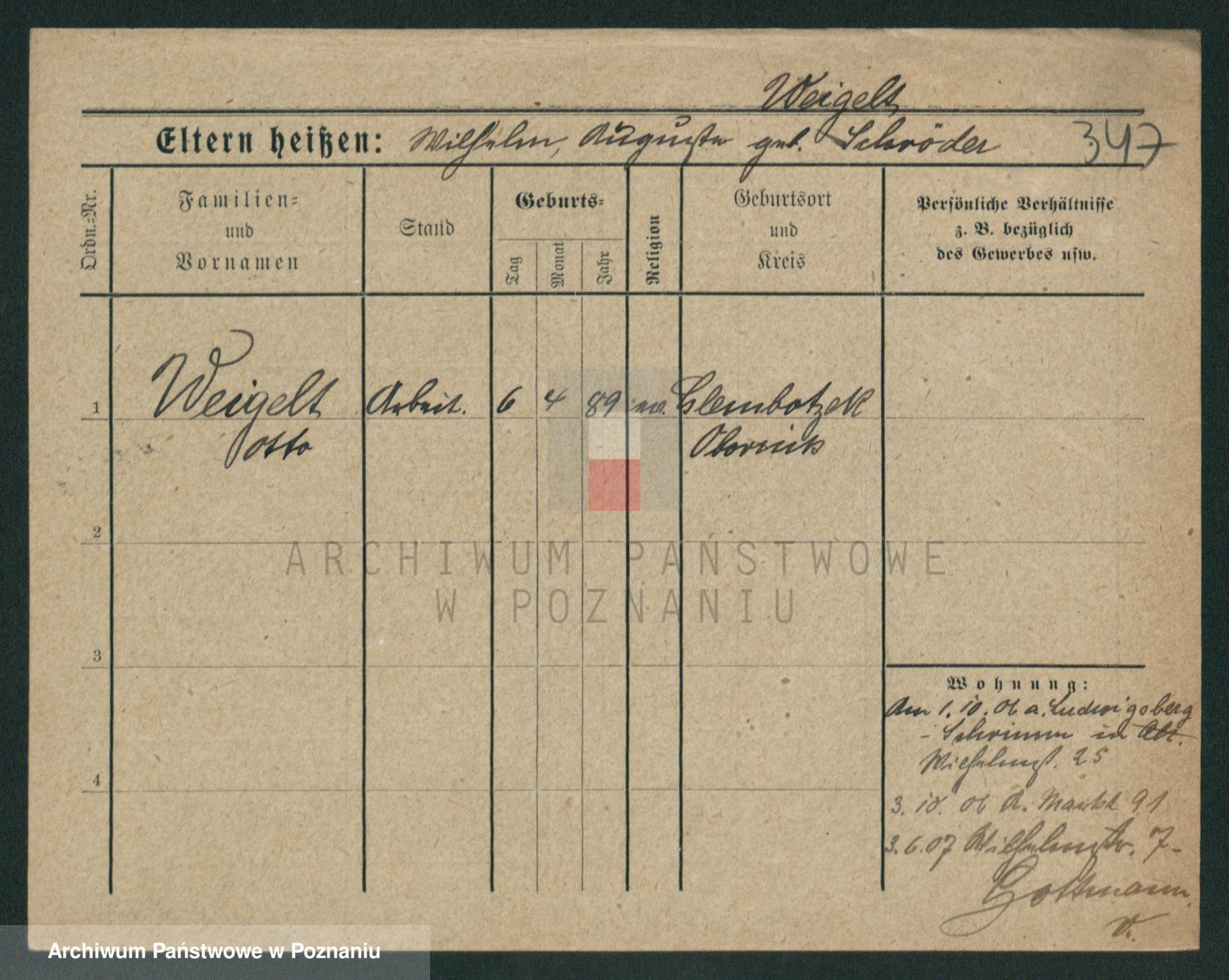 Durch Anklicken eines Namens oder Kartensymbols gelangen Sie zum Vorschau einer Personalkarte. Sie können die Ansicht vergrößern (Symbole am oberen Rand) oder zwischen den Scans wechseln (Pfeile an den Seiten).
