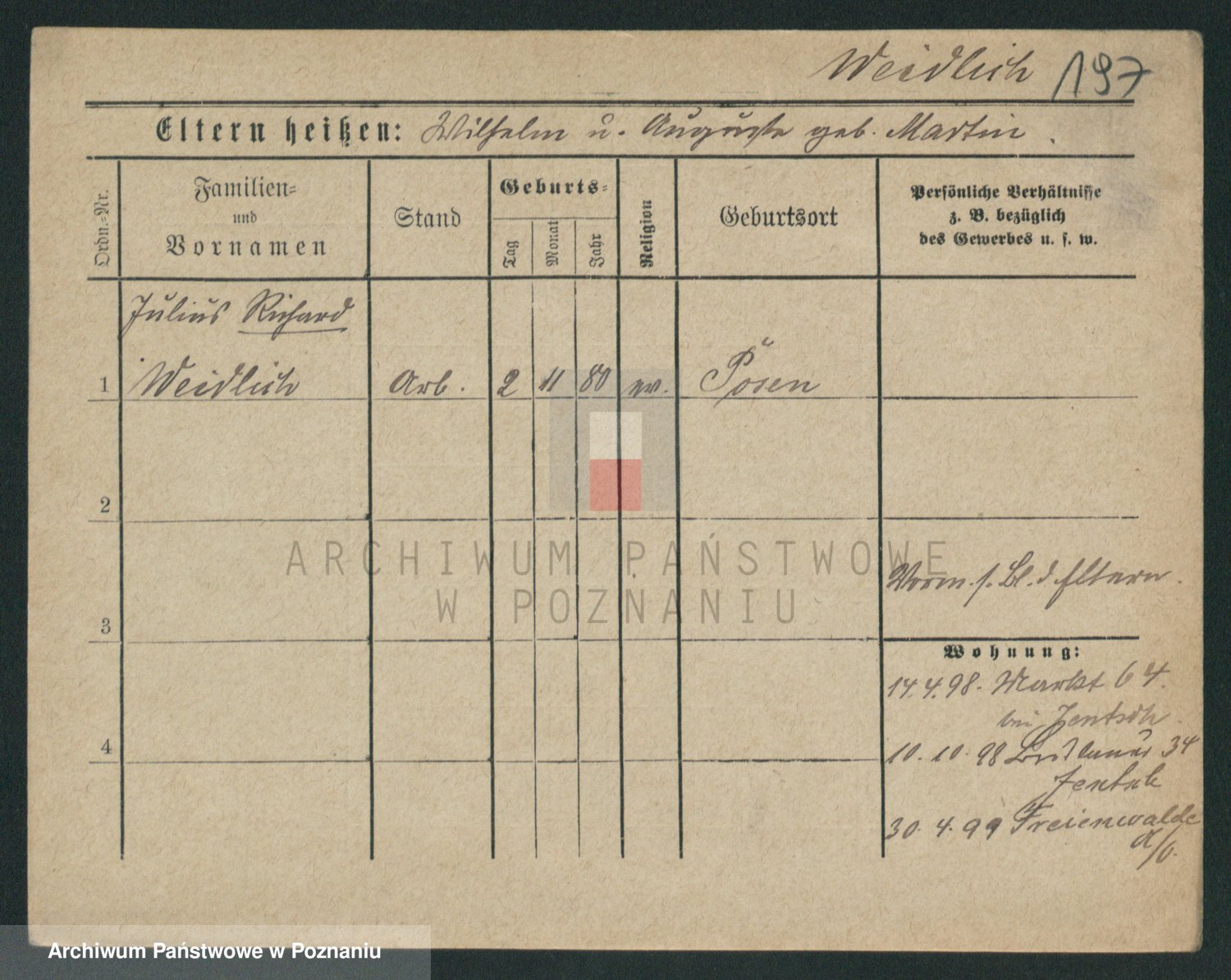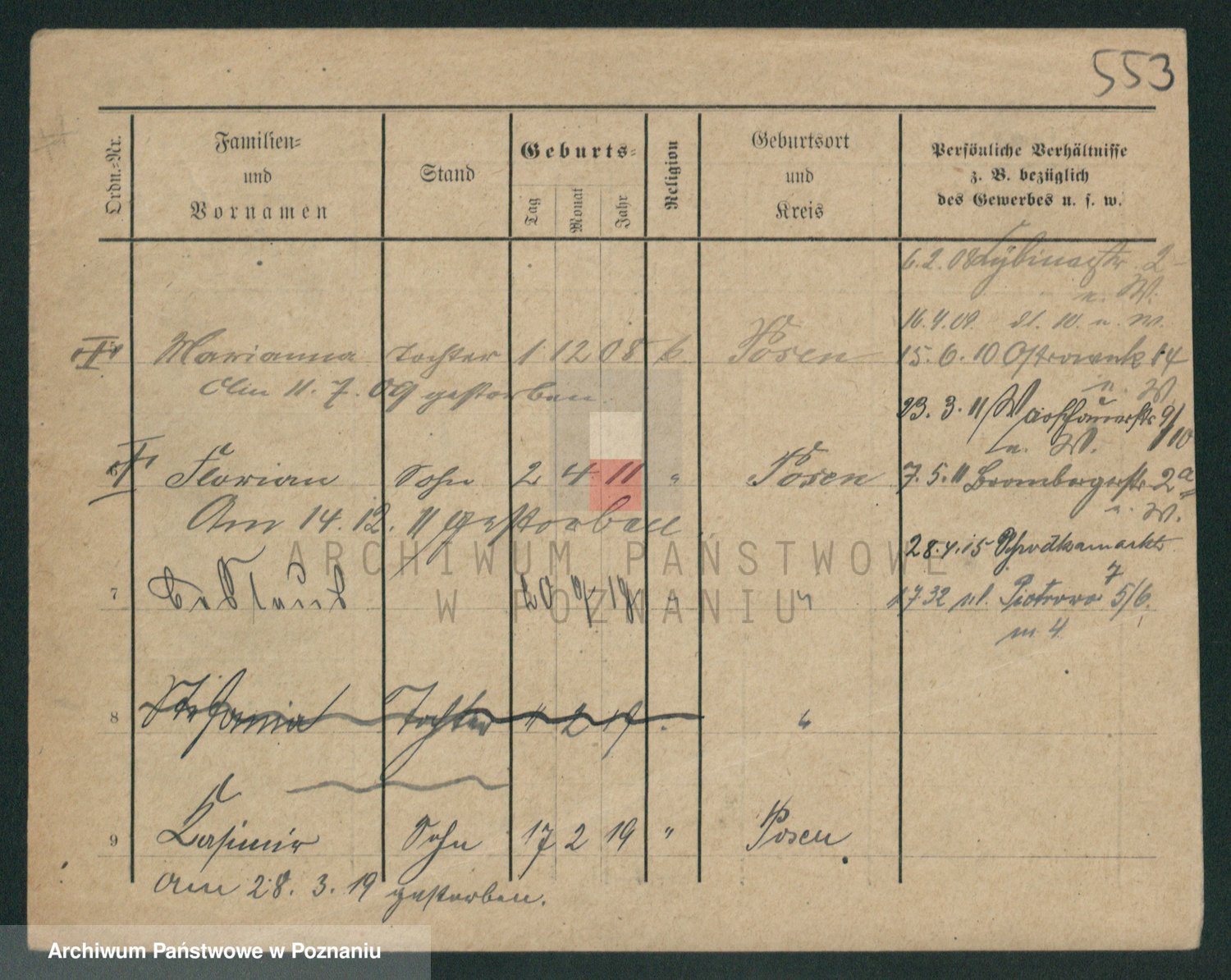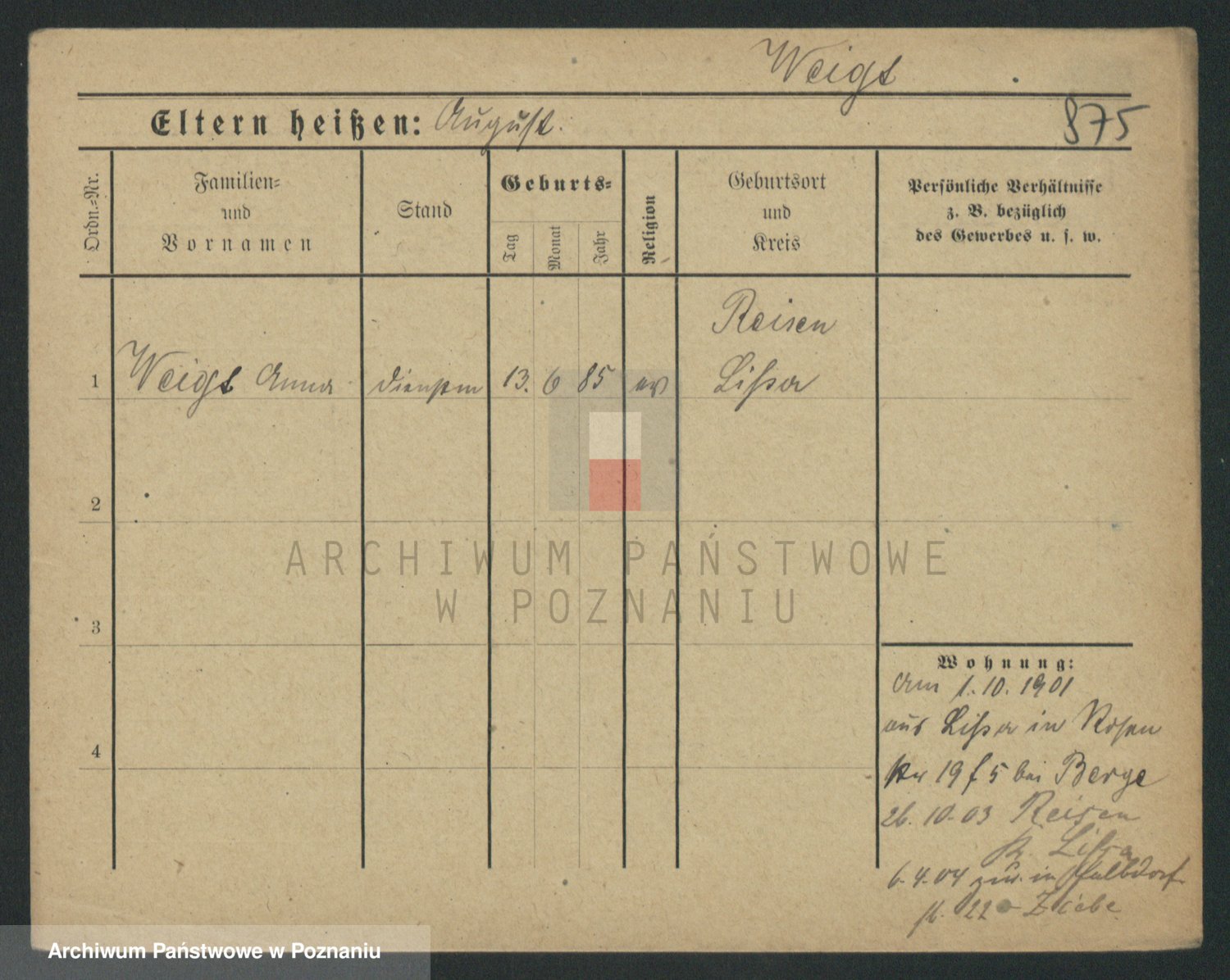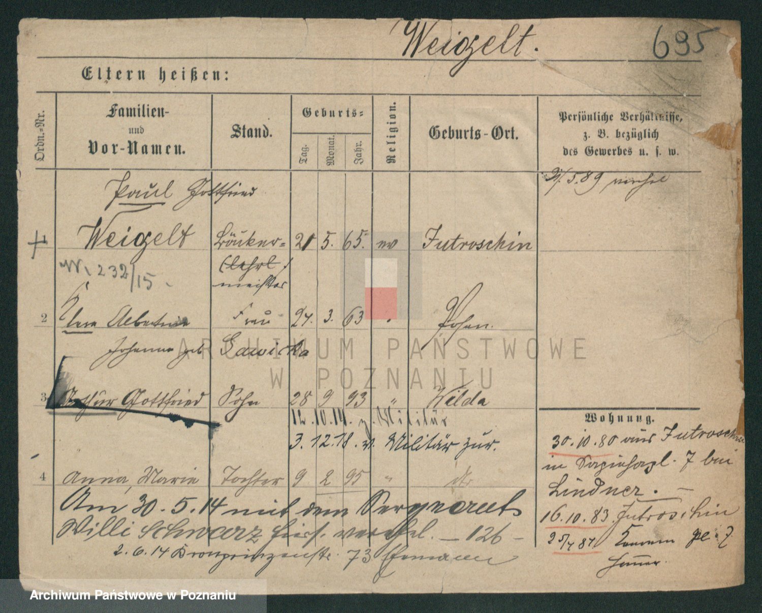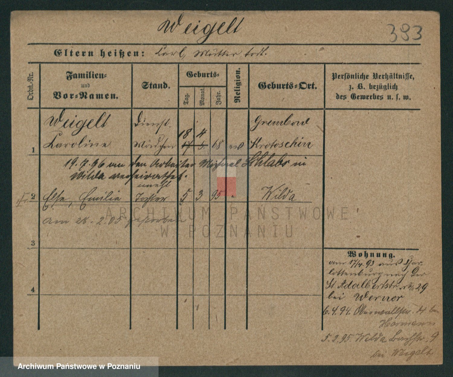 Durch Anklicken eines Namens oder Kartensymbols gelangen Sie zum Vorschau einer Personalkarte. Sie können die Ansicht vergrößern (Symbole am oberen Rand) oder zwischen den Scans wechseln (Pfeile an den Seiten).