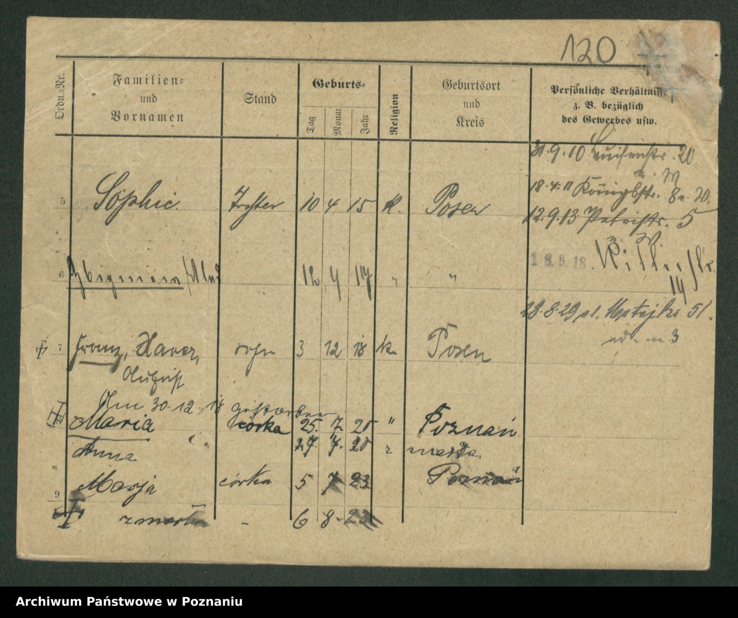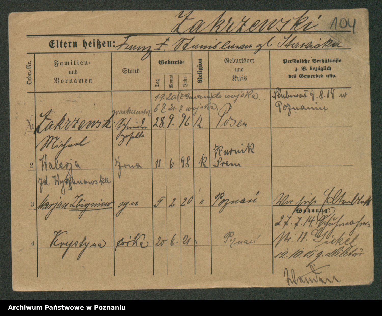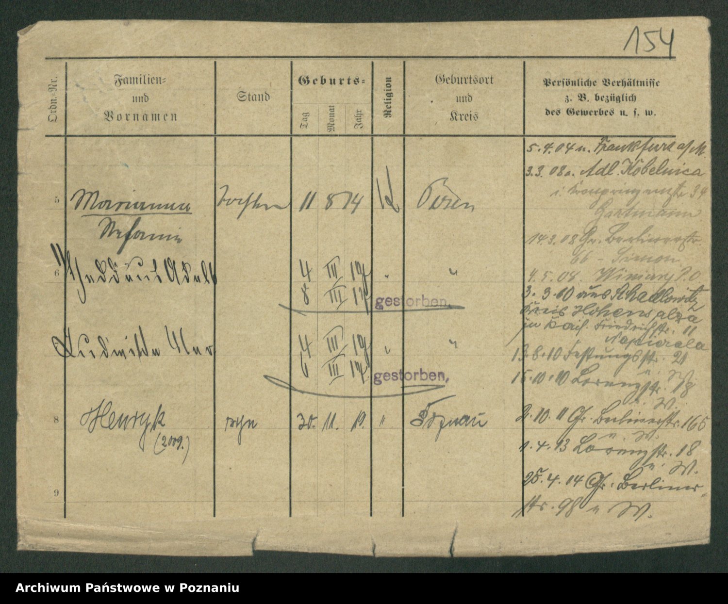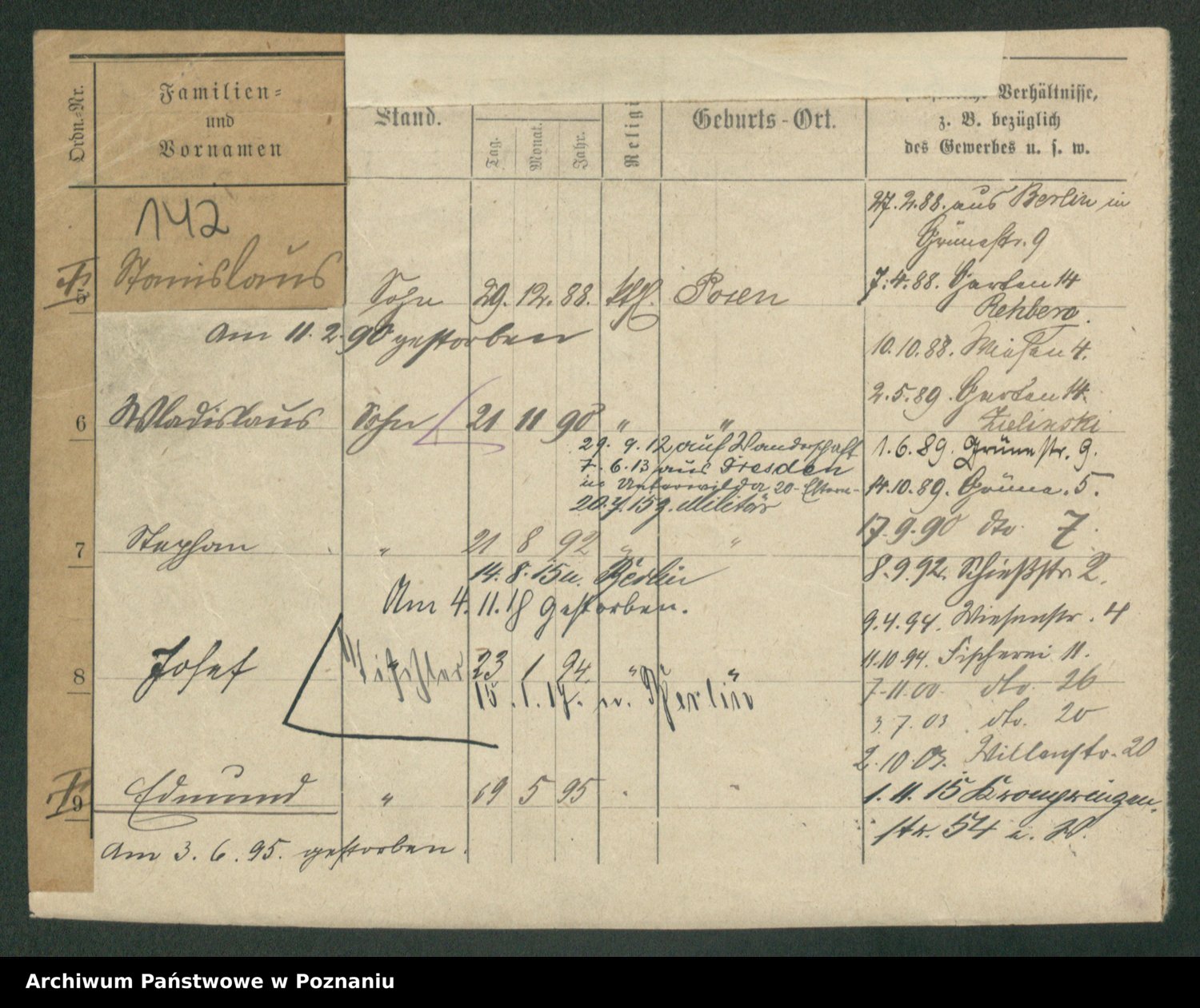 Durch Anklicken eines Namens oder Kartensymbols gelangen Sie zum Vorschau einer Personalkarte. Sie können die Ansicht vergrößern (Symbole am oberen Rand) oder zwischen den Scans wechseln (Pfeile an den Seiten).