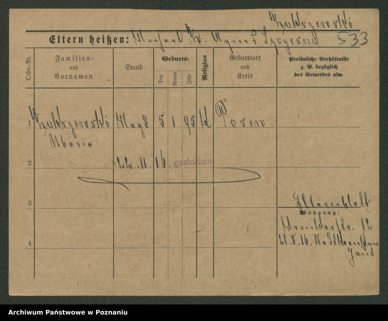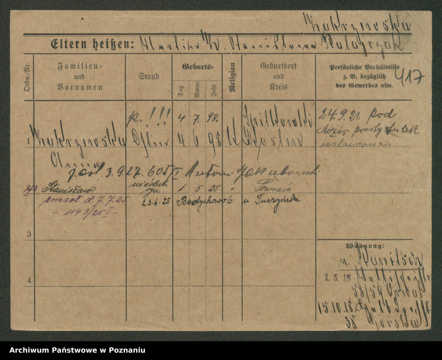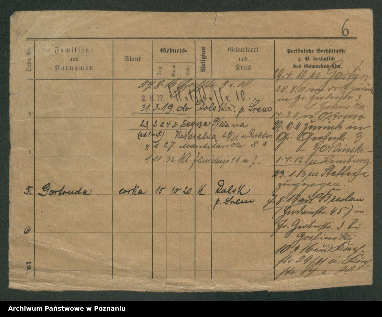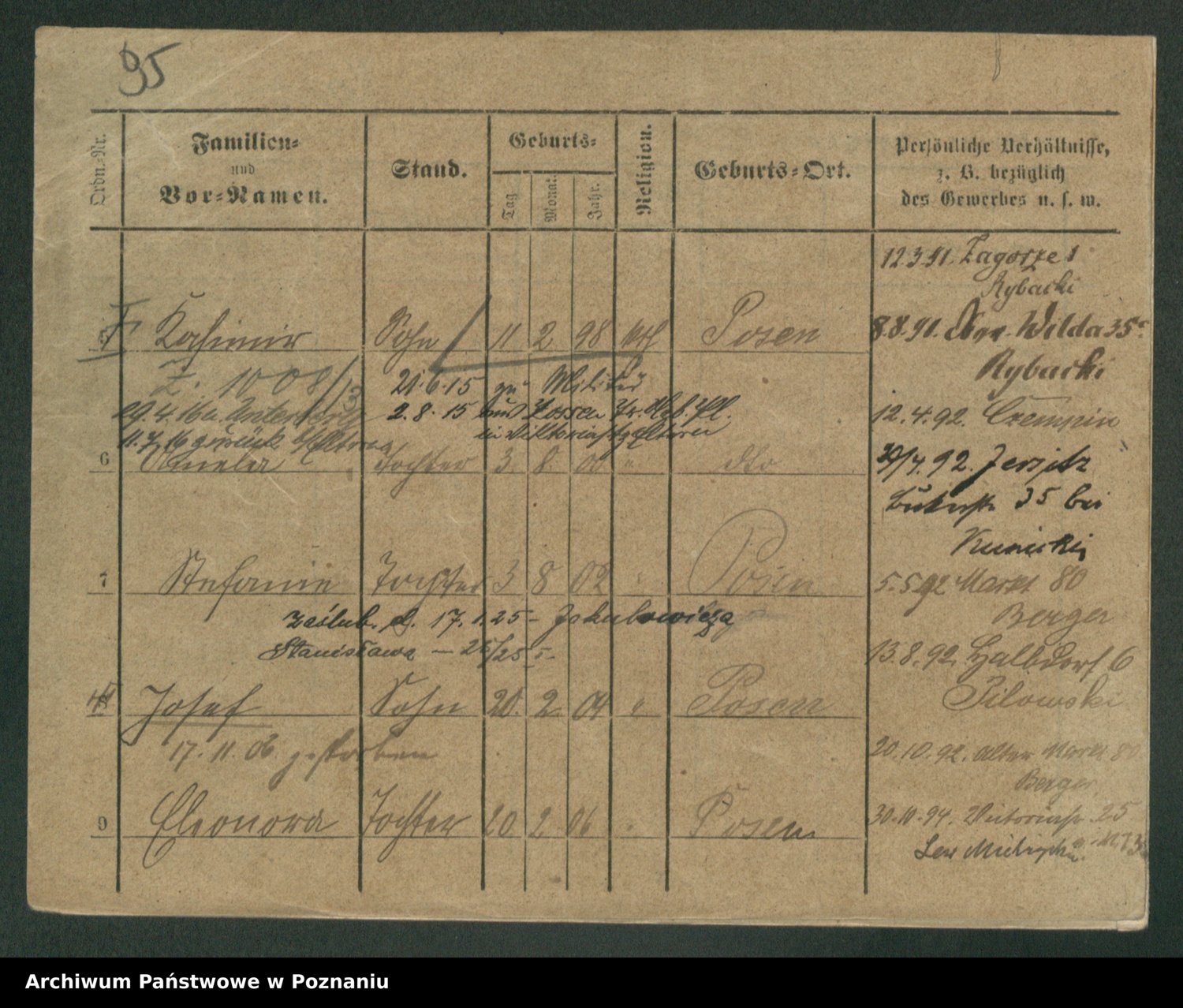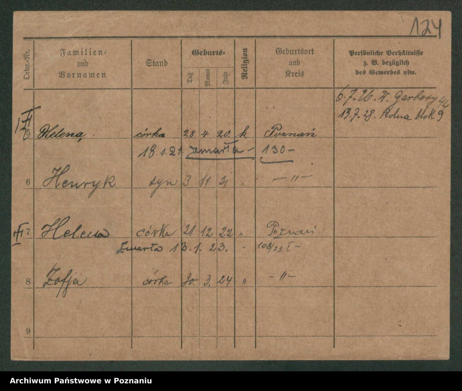 Durch Anklicken eines Namens oder Kartensymbols gelangen Sie zum Vorschau einer Personalkarte. Sie können die Ansicht vergrößern (Symbole am oberen Rand) oder zwischen den Scans wechseln (Pfeile an den Seiten).