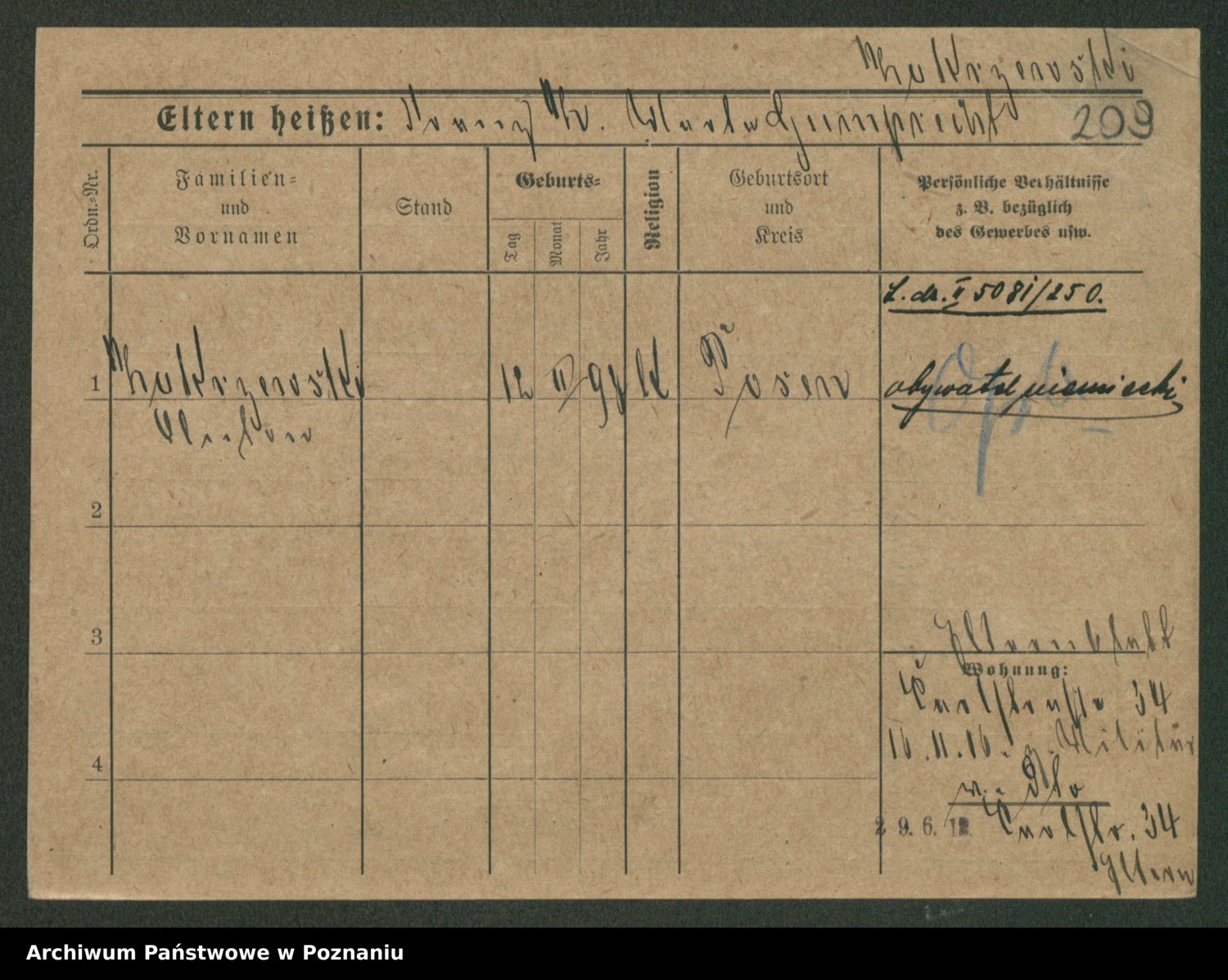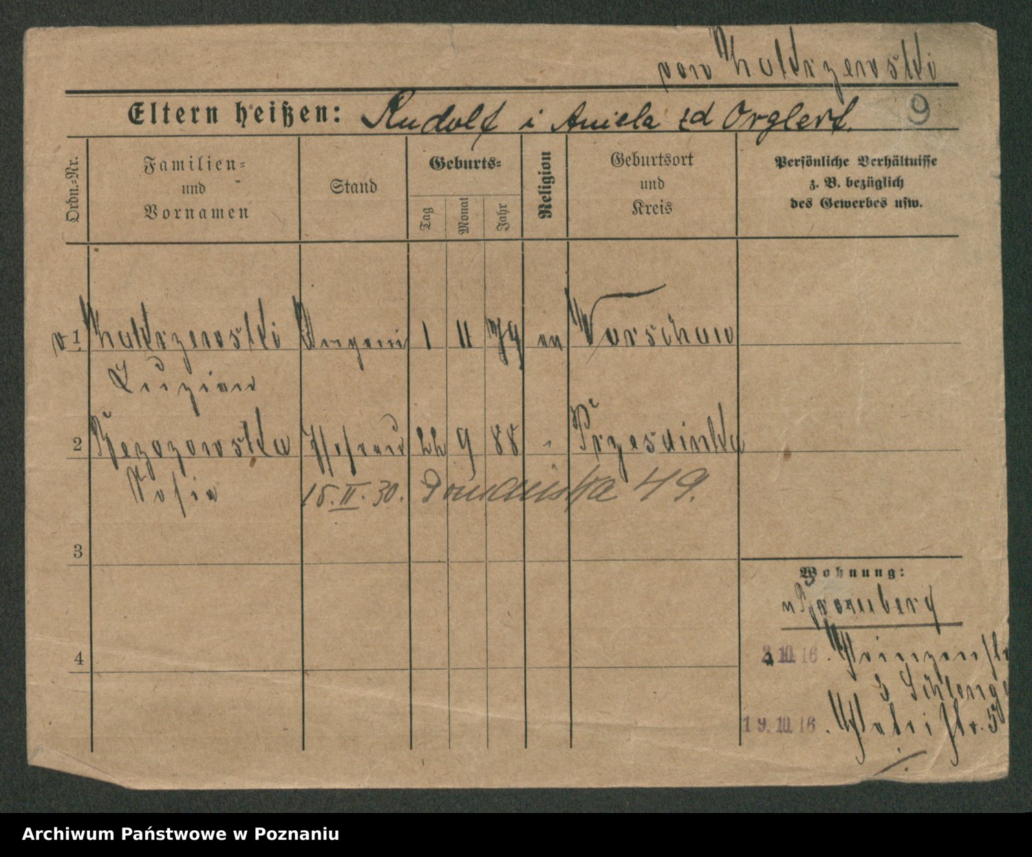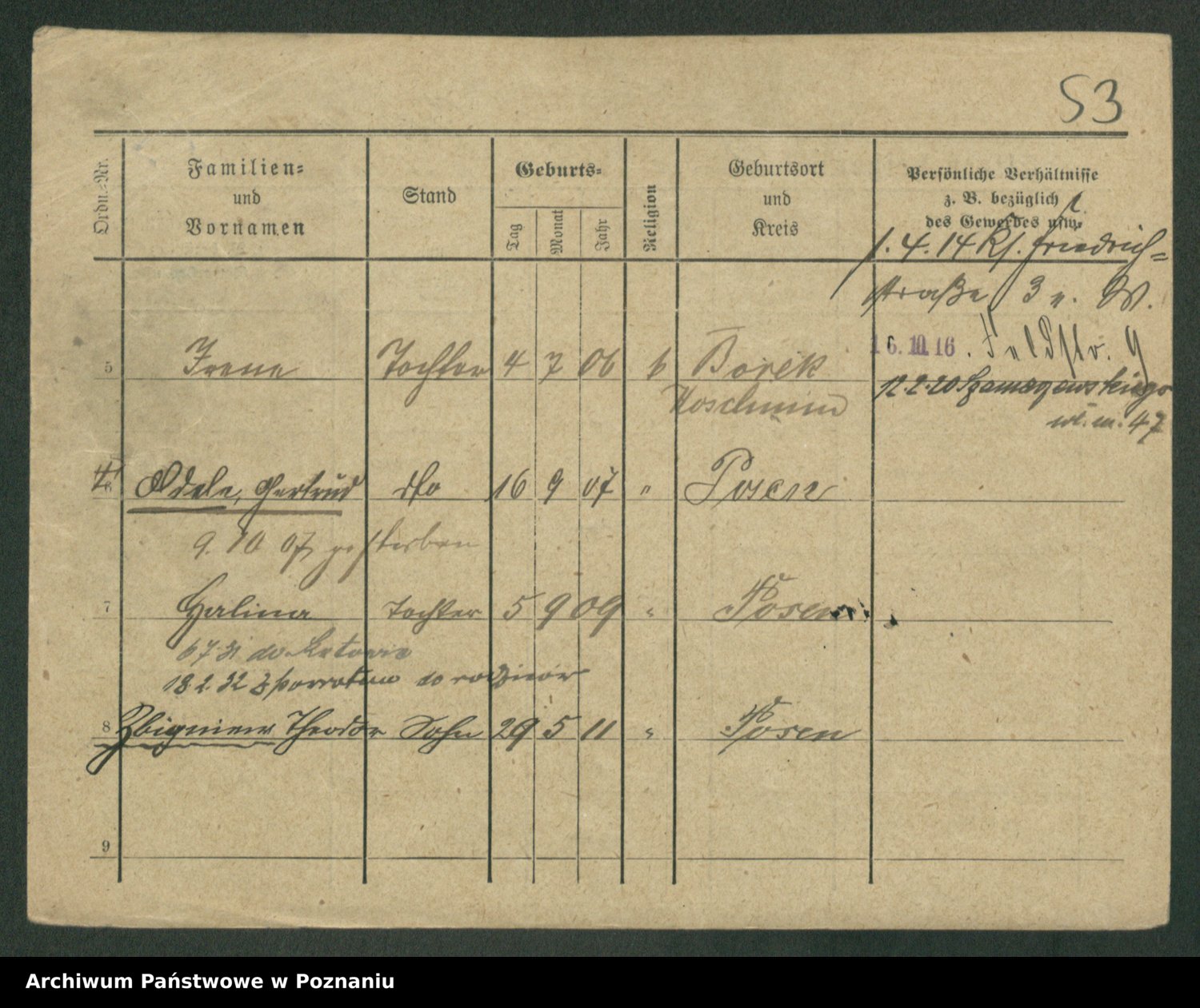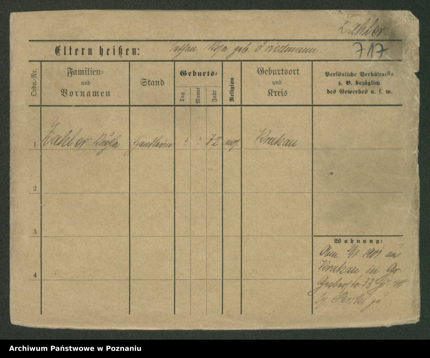 Durch Anklicken eines Namens oder Kartensymbols gelangen Sie zum Vorschau einer Personalkarte. Sie können die Ansicht vergrößern (Symbole am oberen Rand) oder zwischen den Scans wechseln (Pfeile an den Seiten).