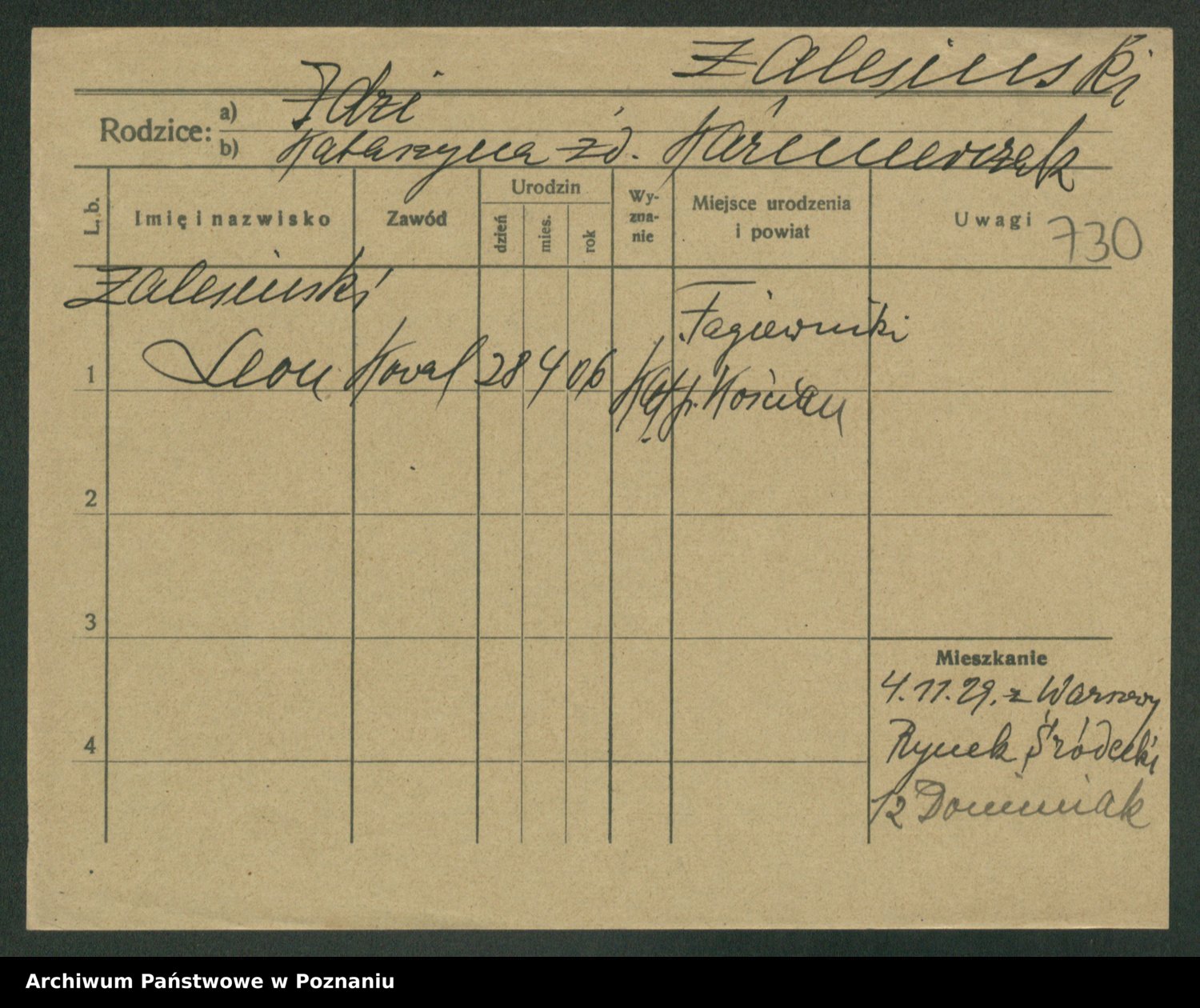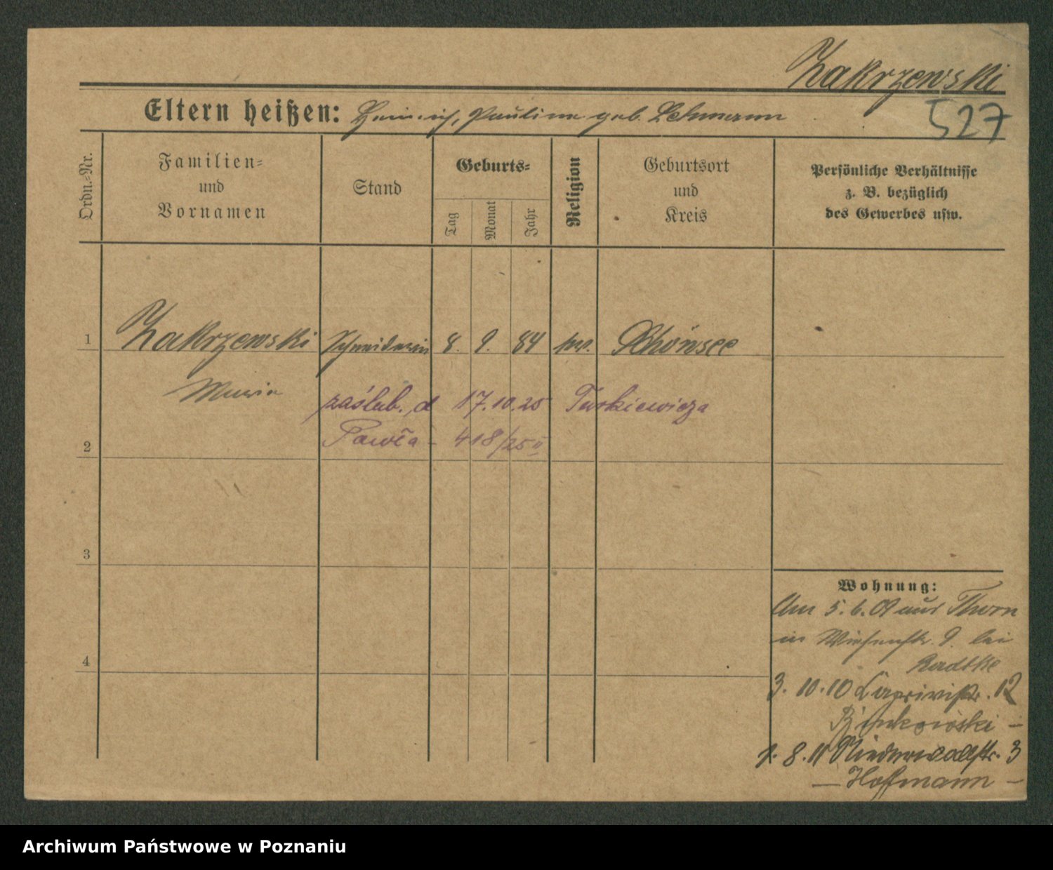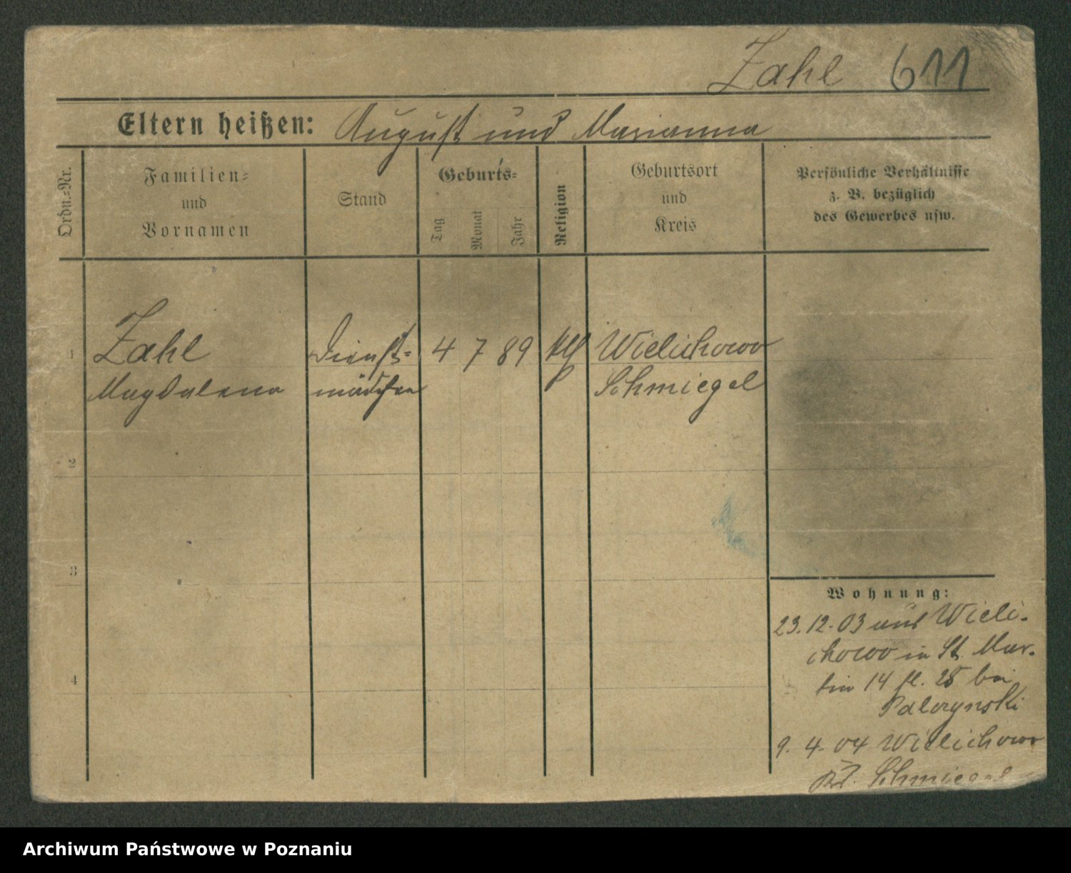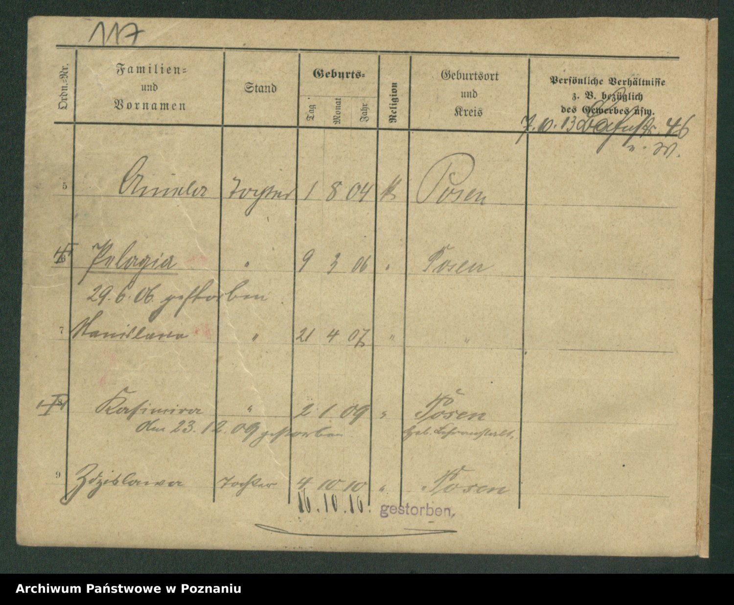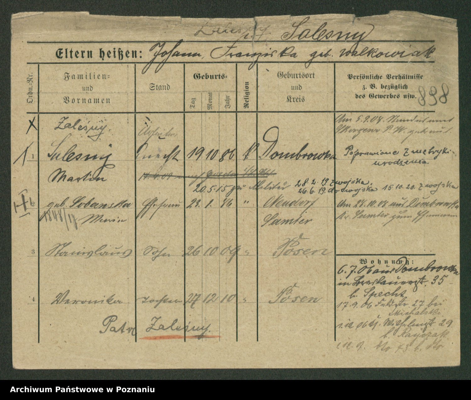 Durch Anklicken eines Namens oder Kartensymbols gelangen Sie zum Vorschau einer Personalkarte. Sie können die Ansicht vergrößern (Symbole am oberen Rand) oder zwischen den Scans wechseln (Pfeile an den Seiten).