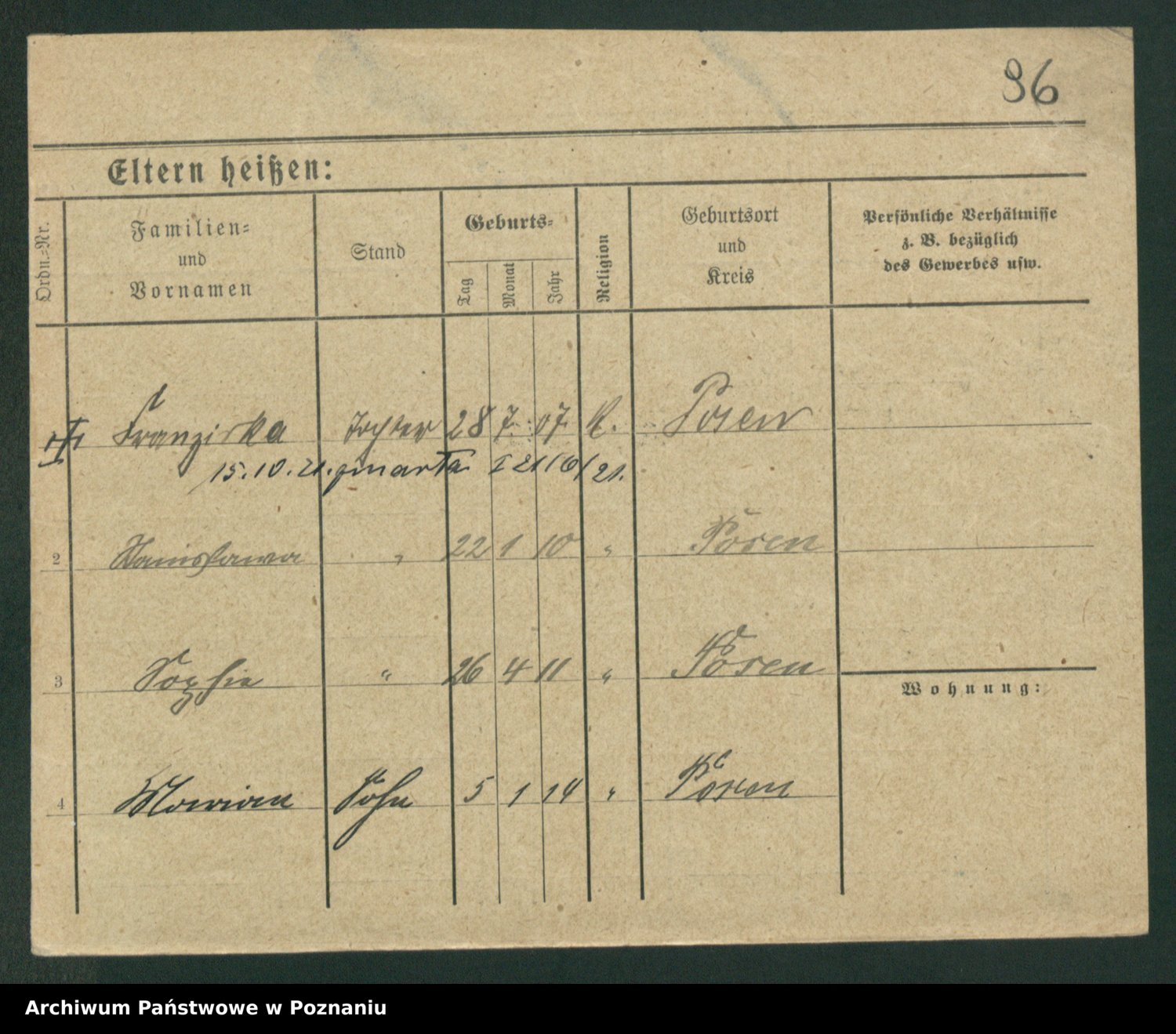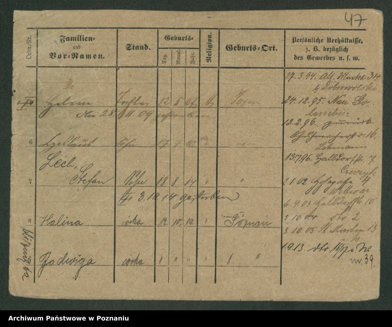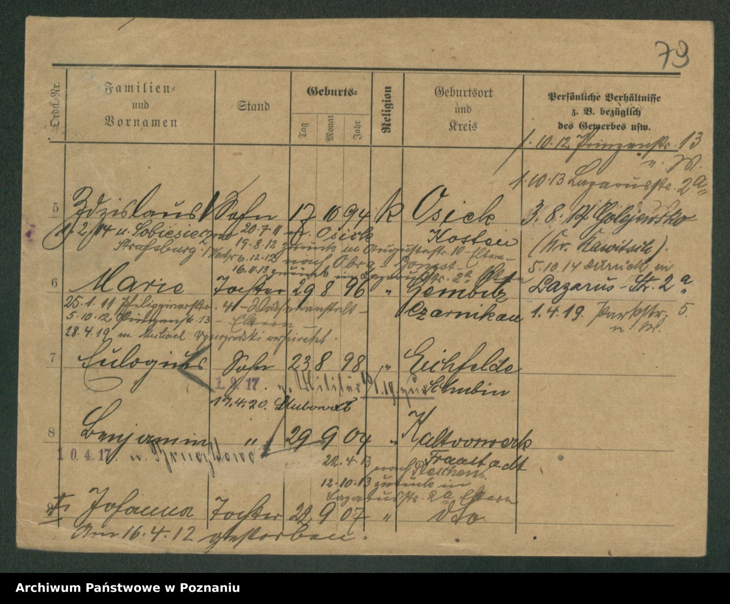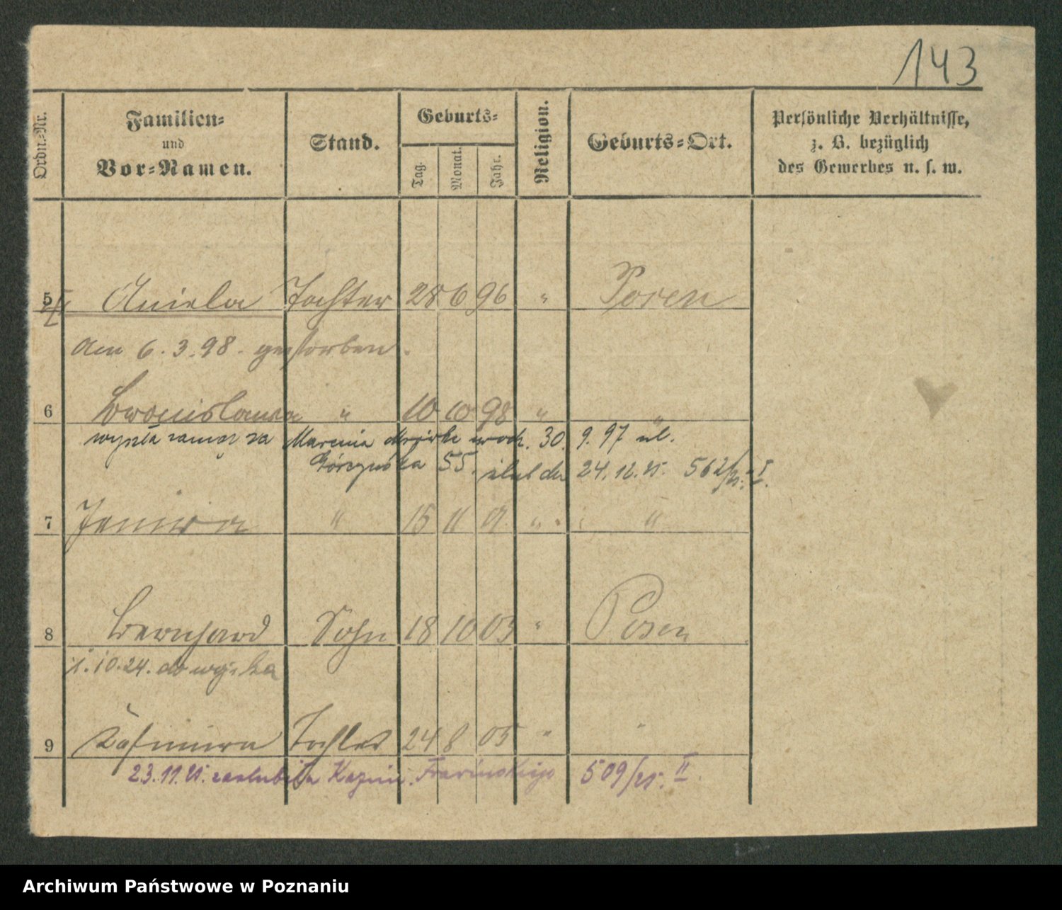 Durch Anklicken eines Namens oder Kartensymbols gelangen Sie zum Vorschau einer Personalkarte. Sie können die Ansicht vergrößern (Symbole am oberen Rand) oder zwischen den Scans wechseln (Pfeile an den Seiten).