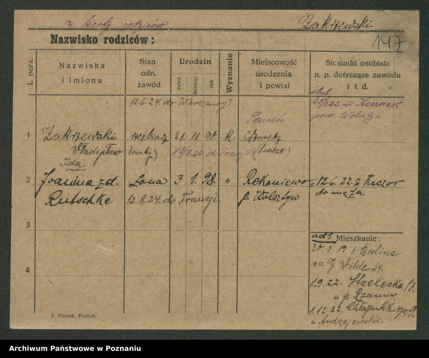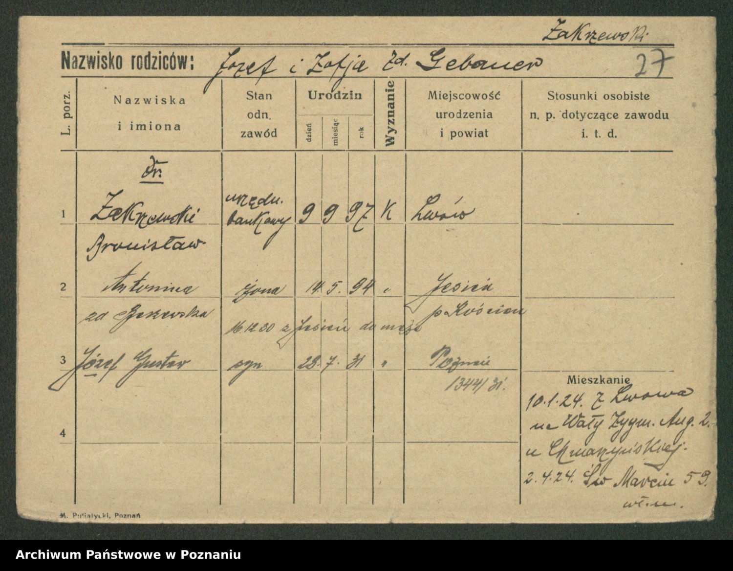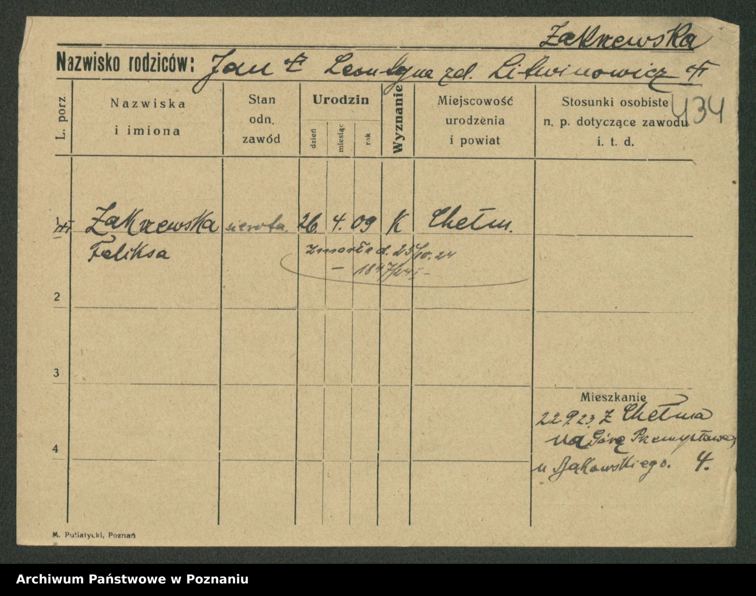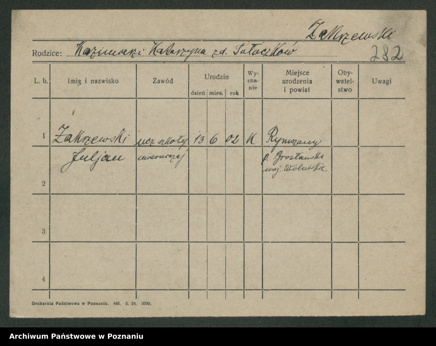 Zakrzewski v. Z d. Rychlowska, Josefa