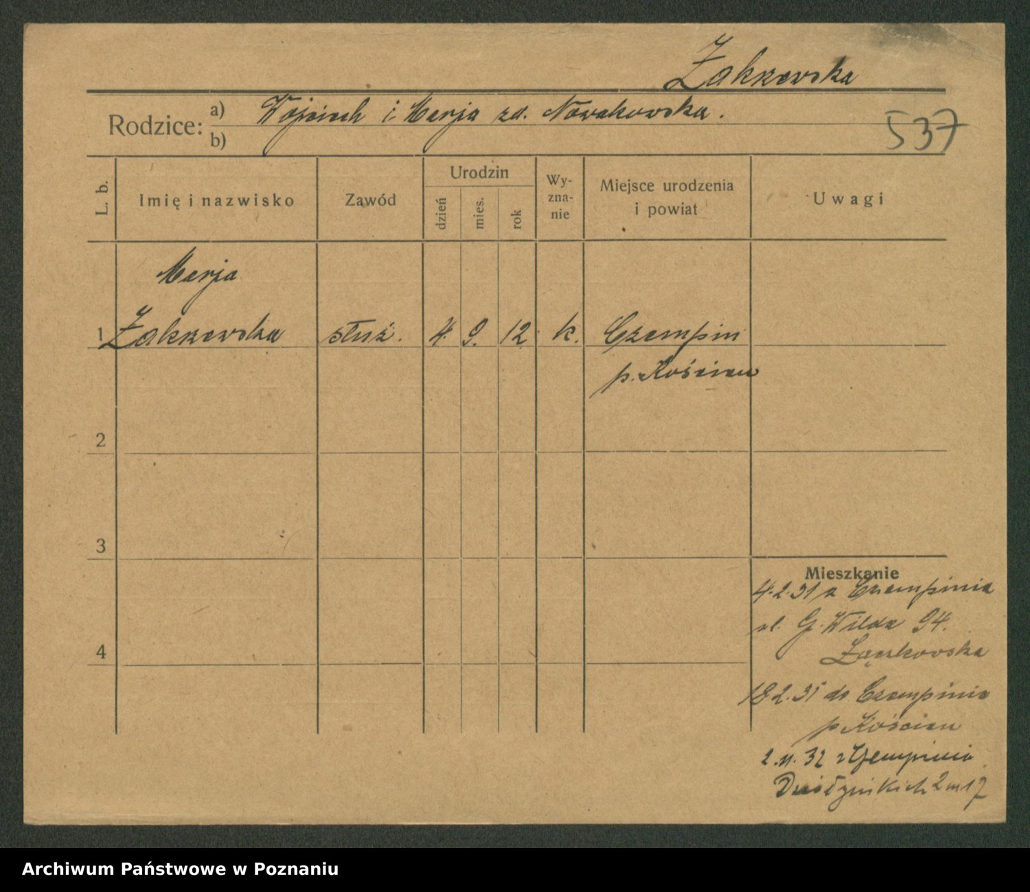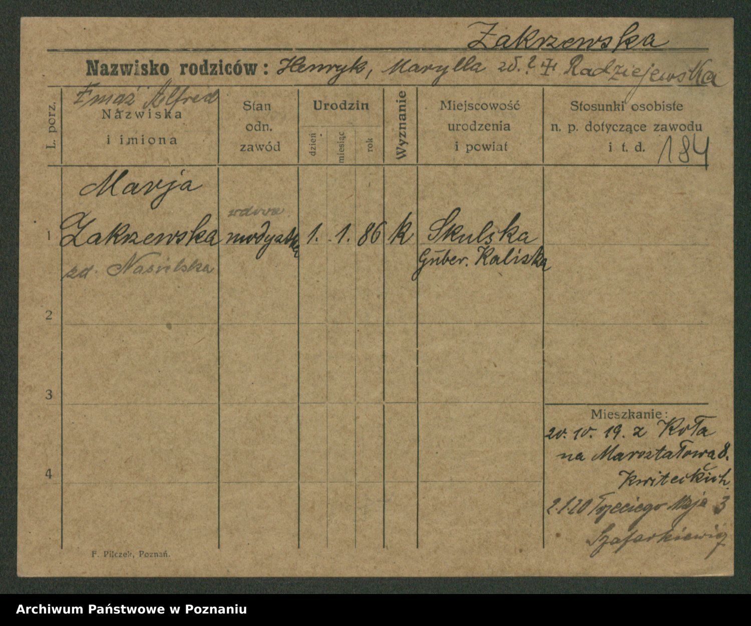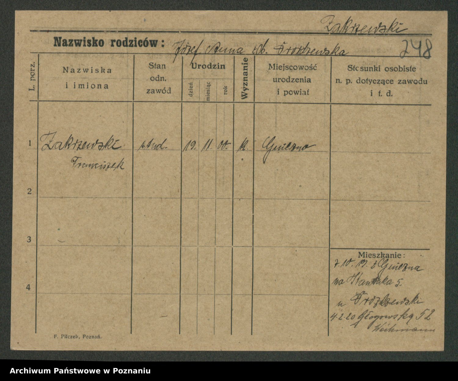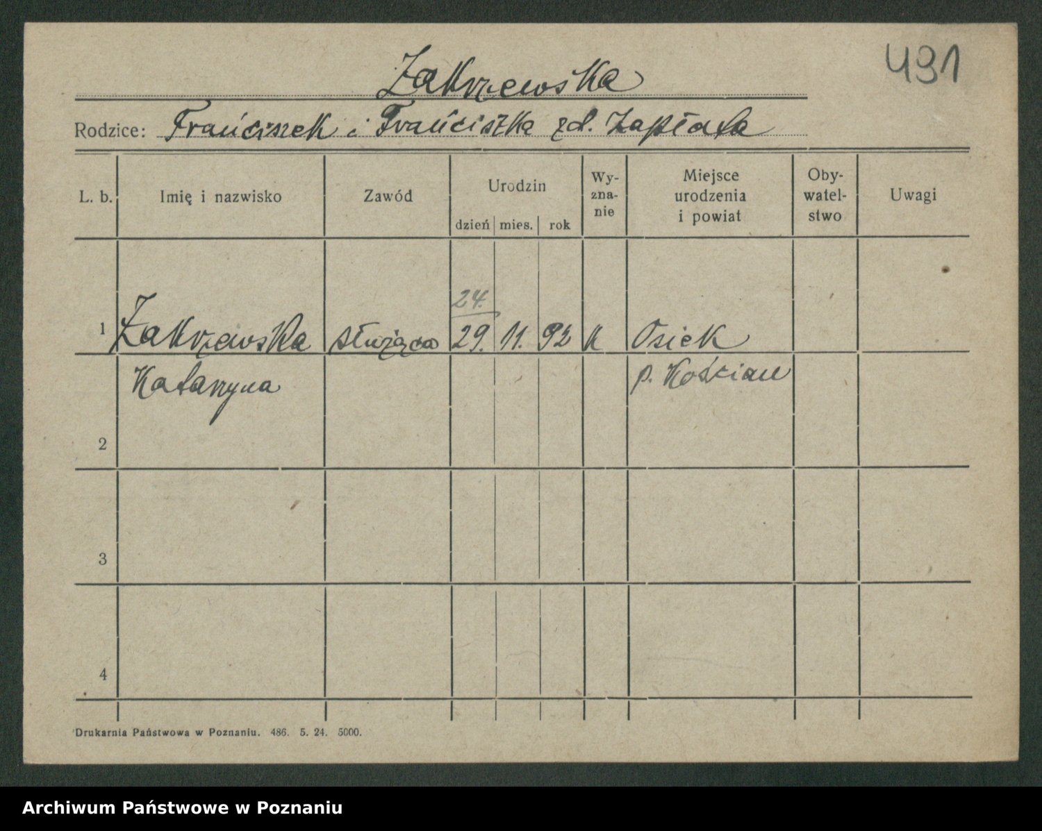 Zakrzewski v. Z d. Rychlowska, Josefa