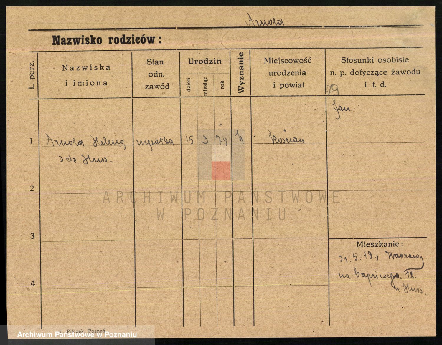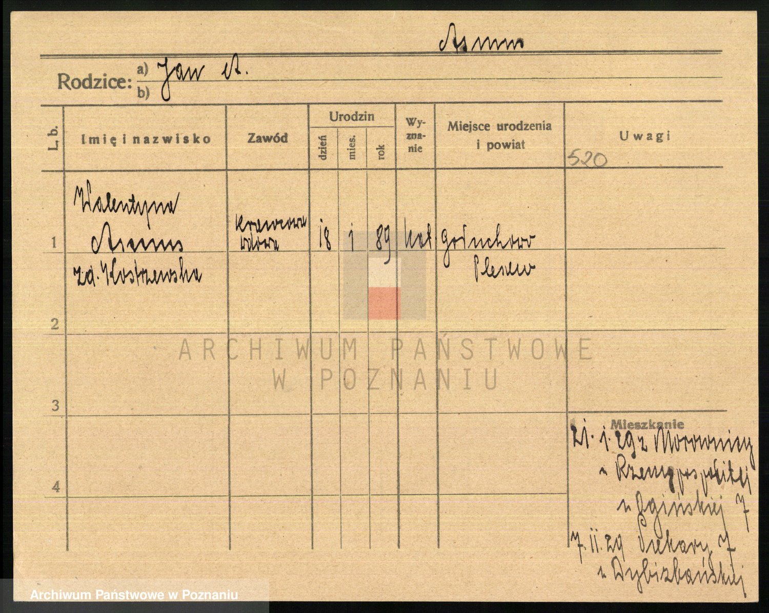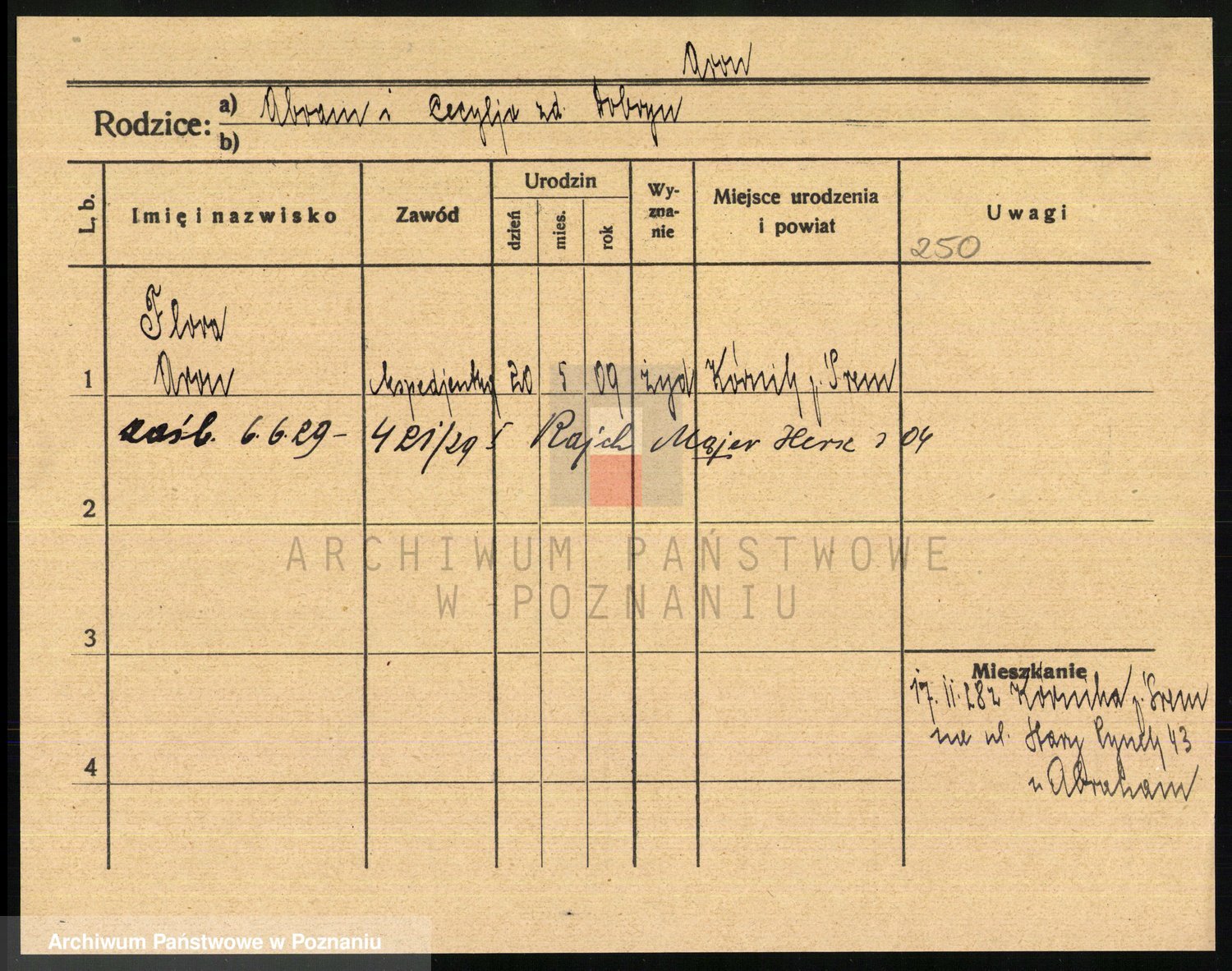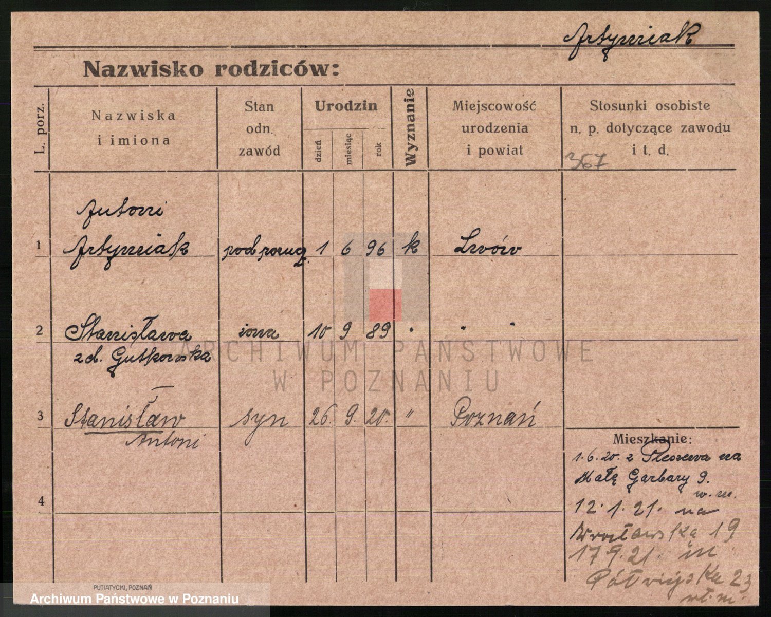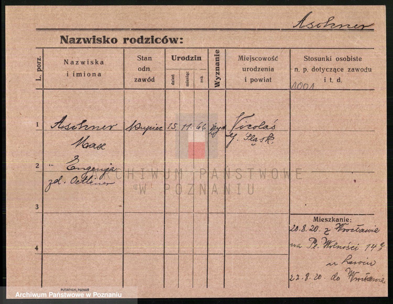 Podgląd karty osobowej dostępny jest po kliknięciu na nazwisko lub ikonkę karty. Można dokonywać powiększenia (ikony na górze) lub przechodzić między kolejnymi skanami (strzałki po bokach).