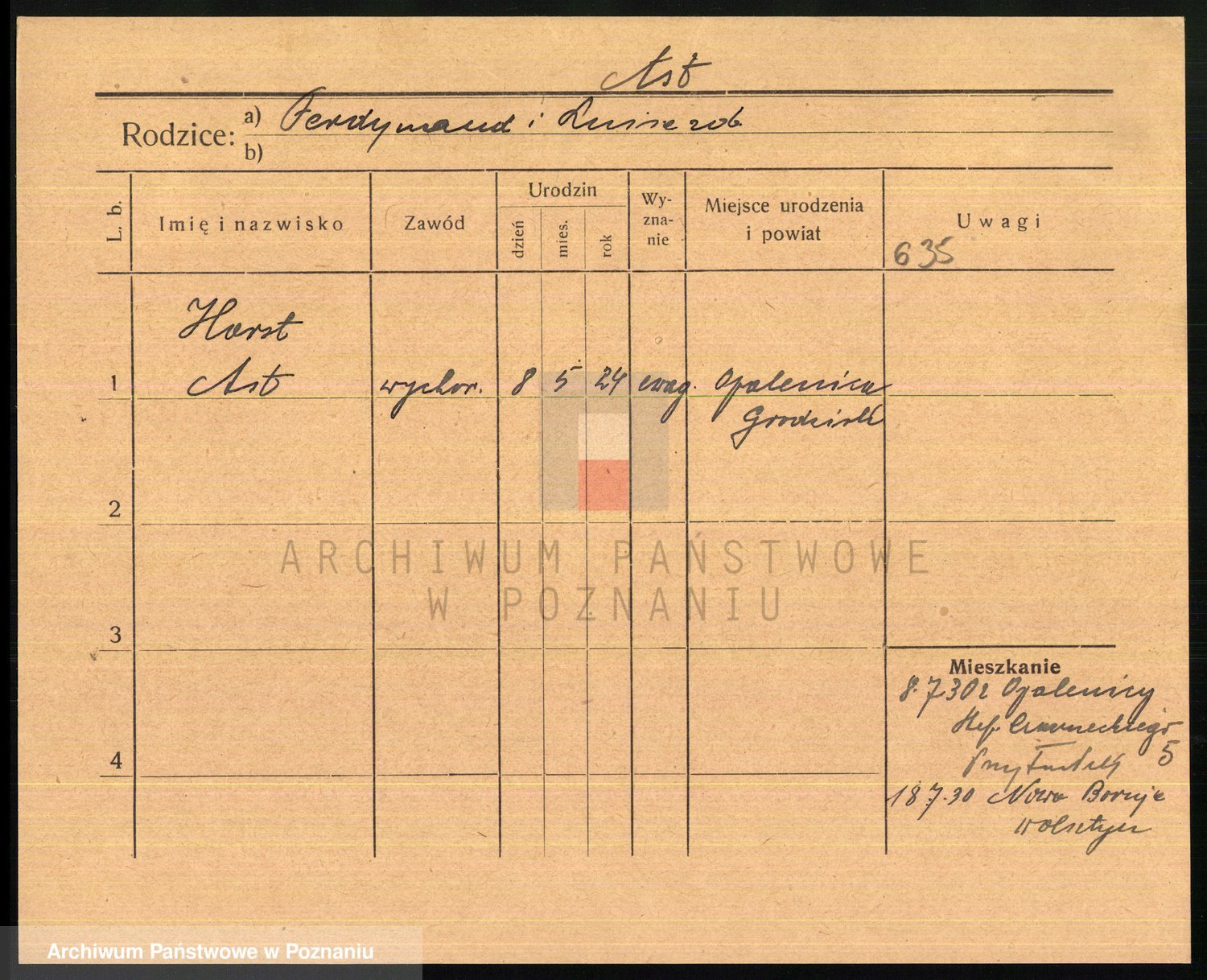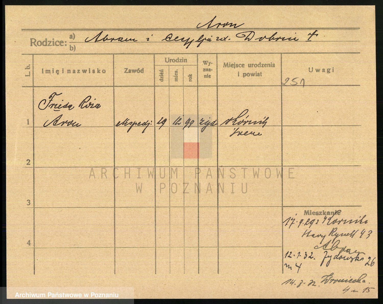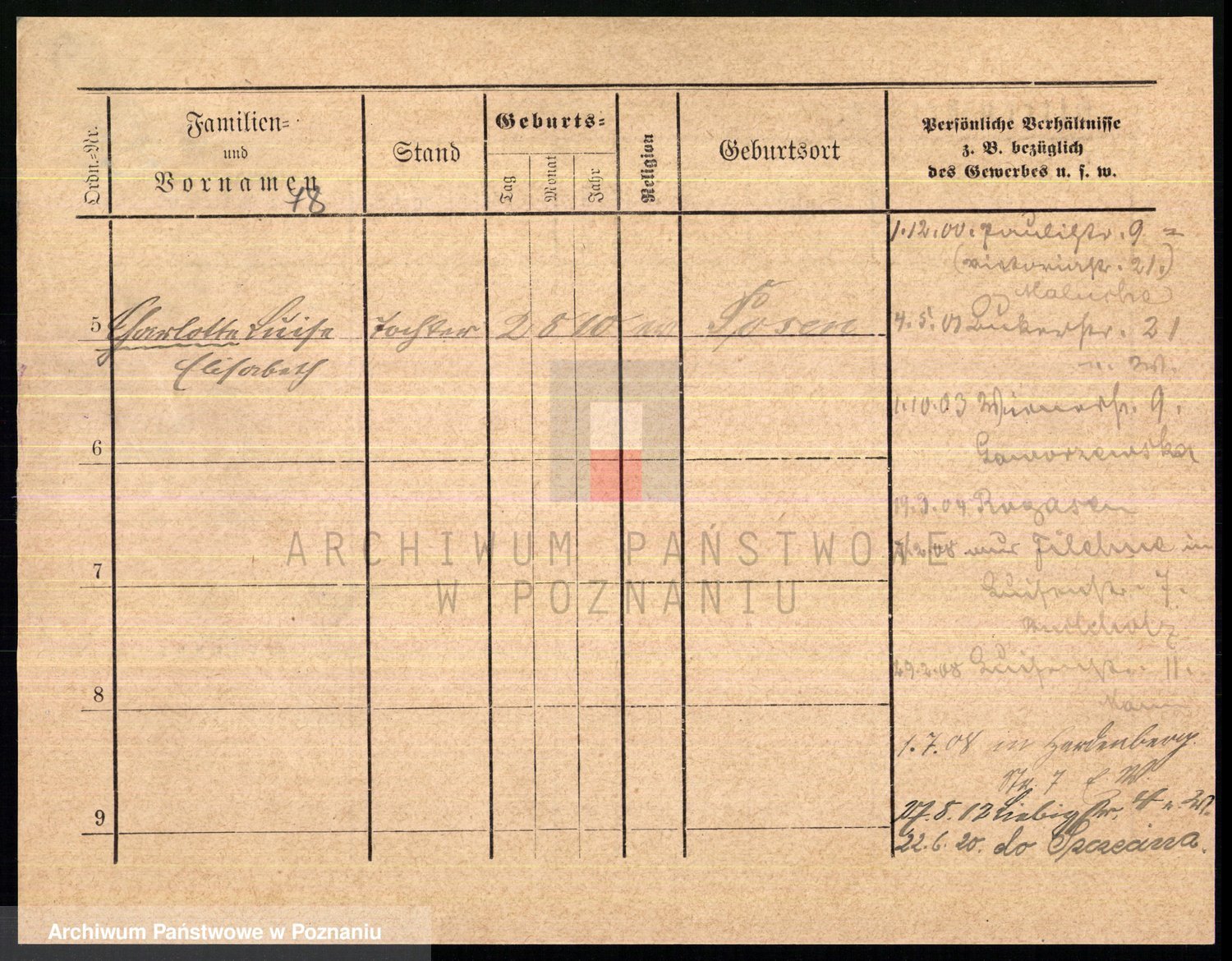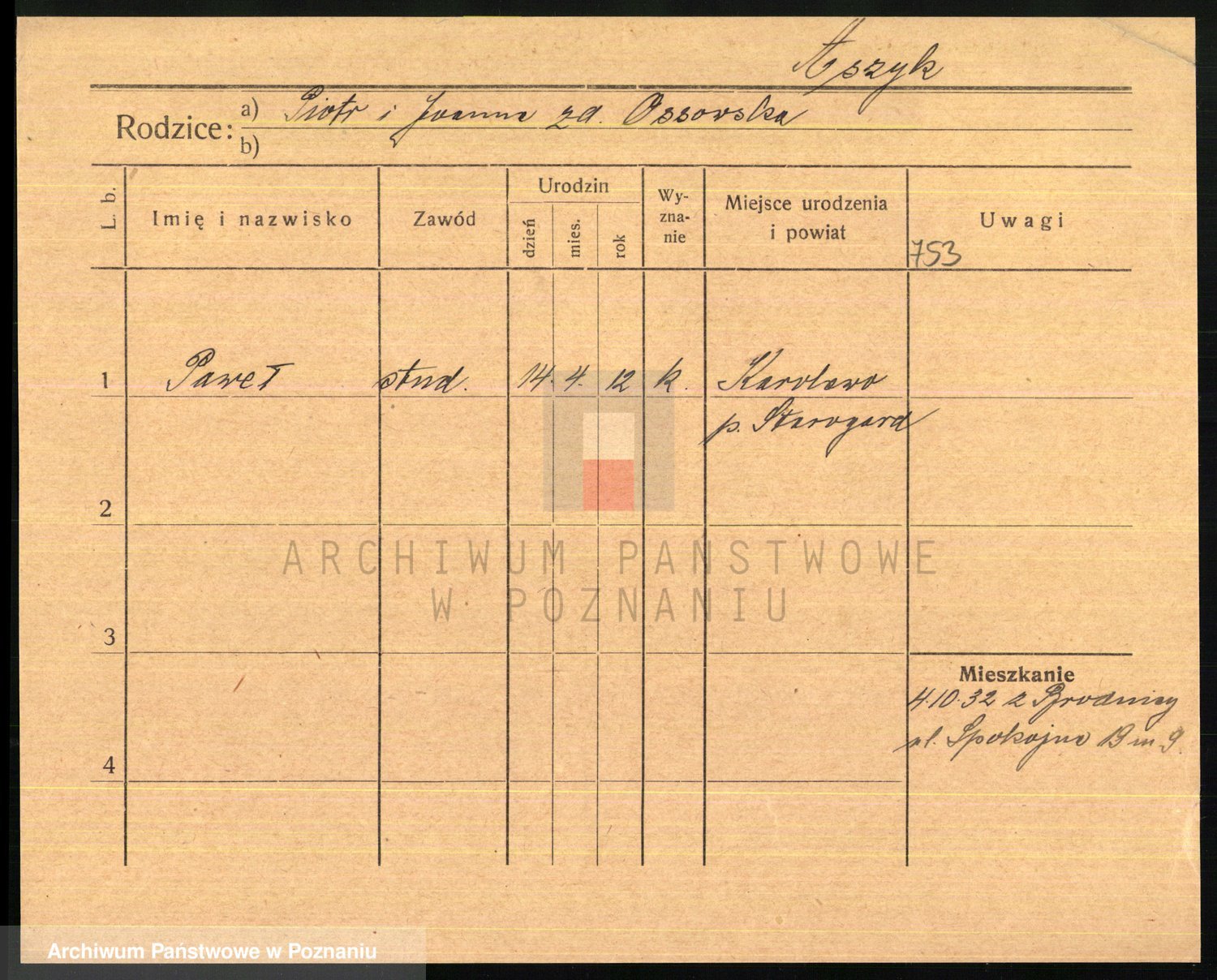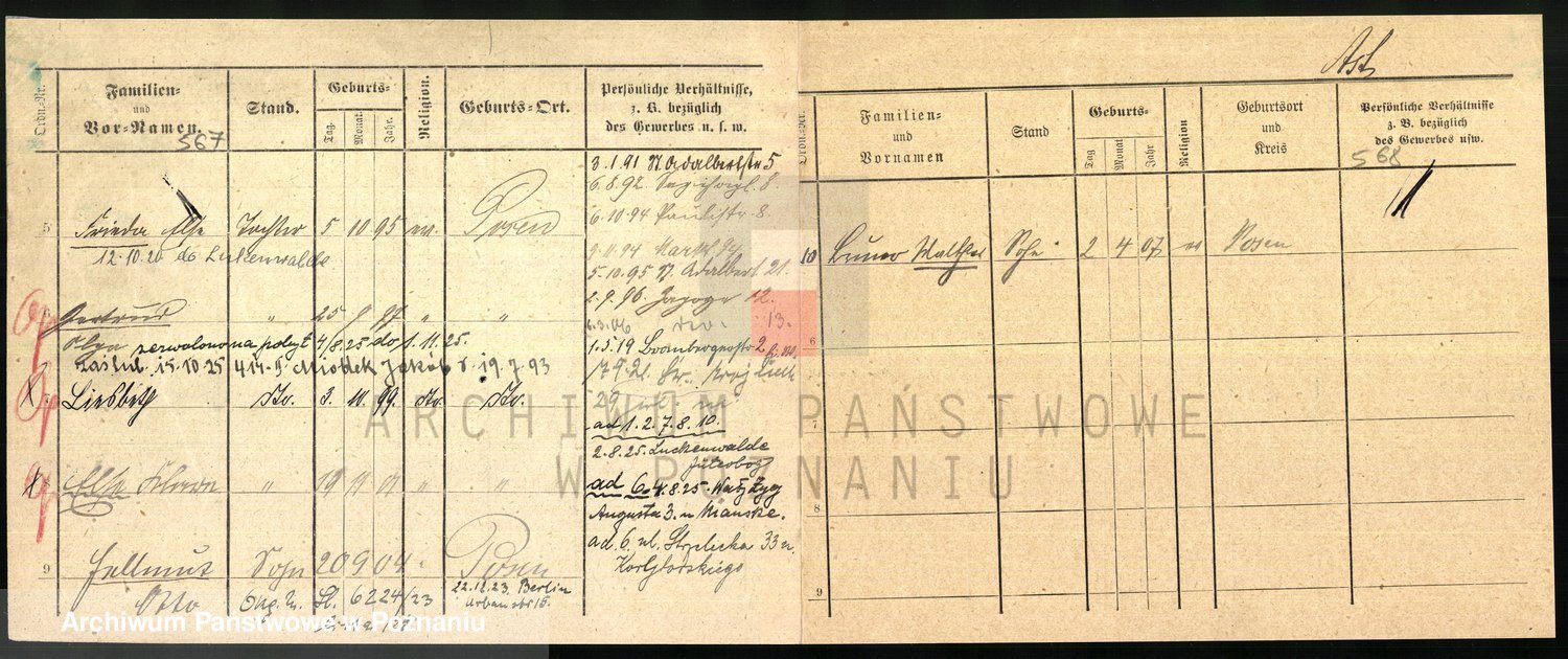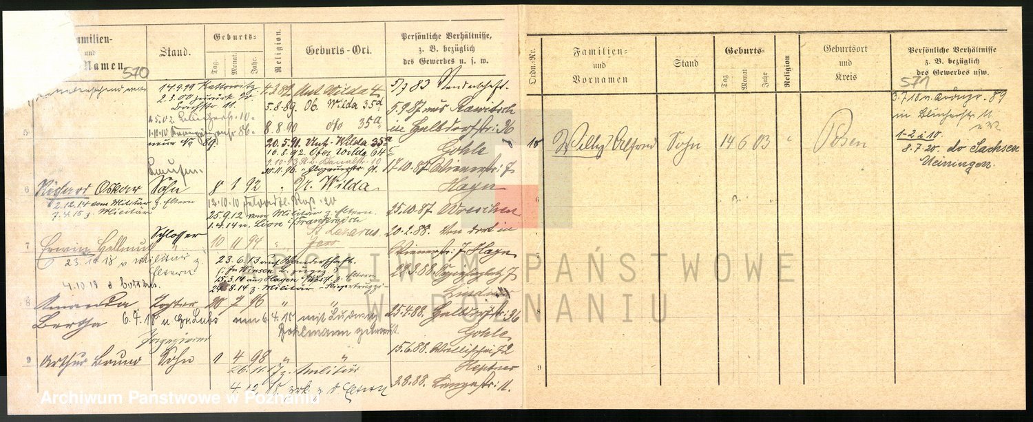 Podgląd karty osobowej dostępny jest po kliknięciu na nazwisko lub ikonkę karty. Można dokonywać powiększenia (ikony na górze) lub przechodzić między kolejnymi skanami (strzałki po bokach).