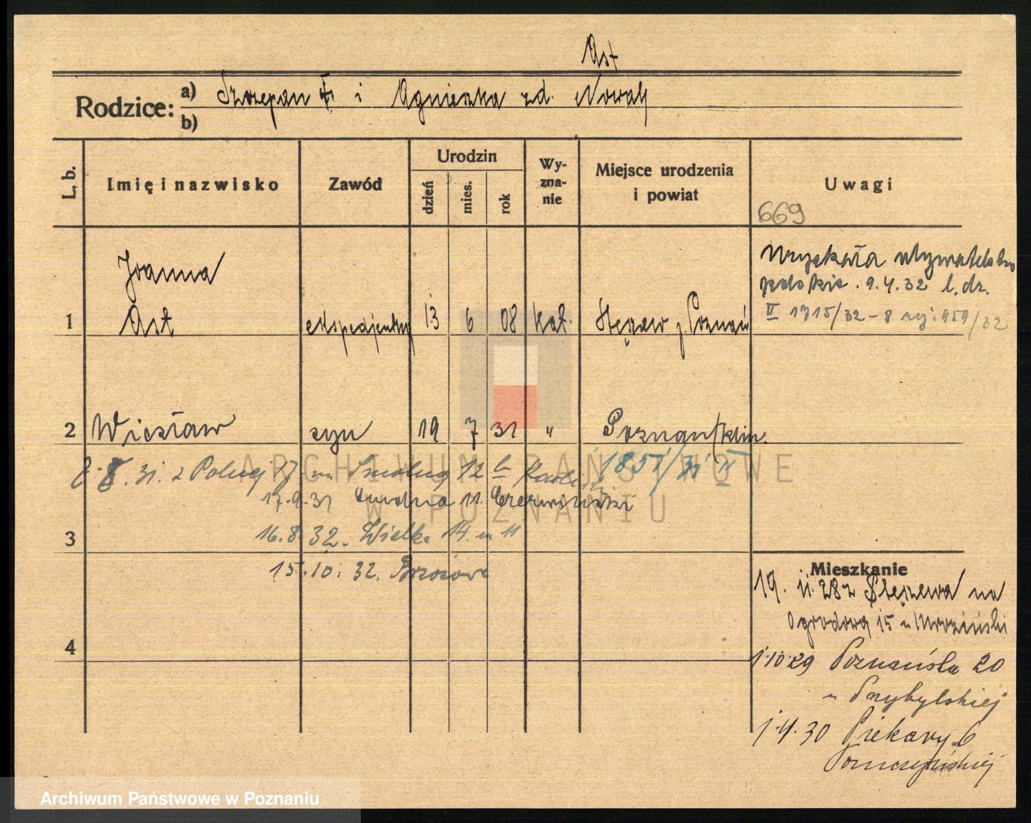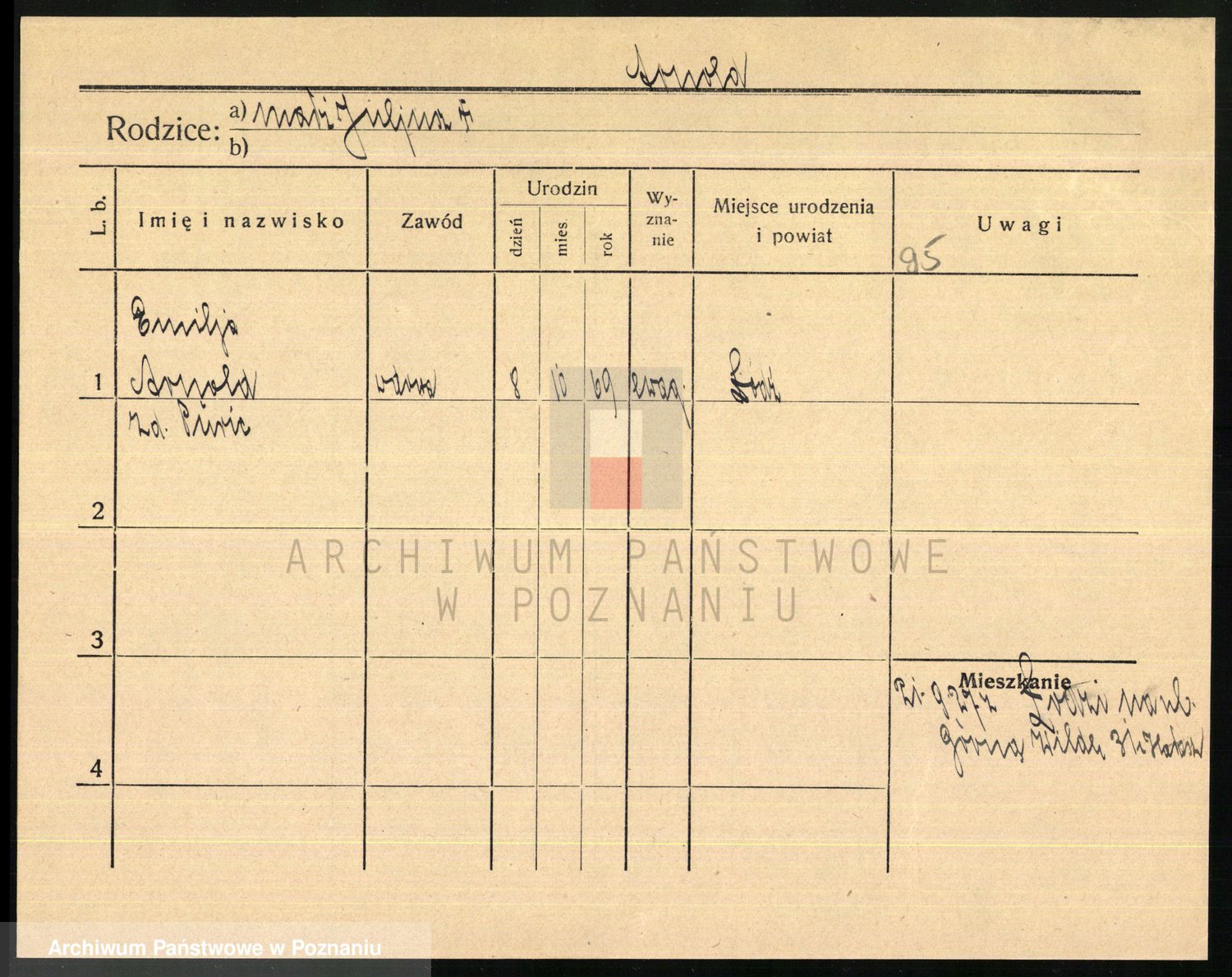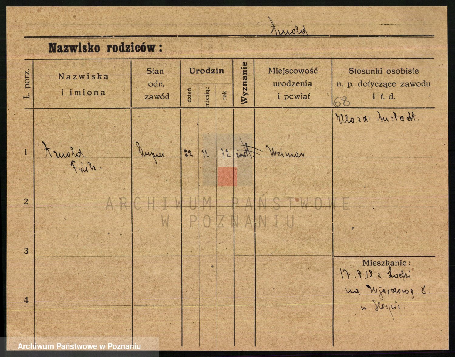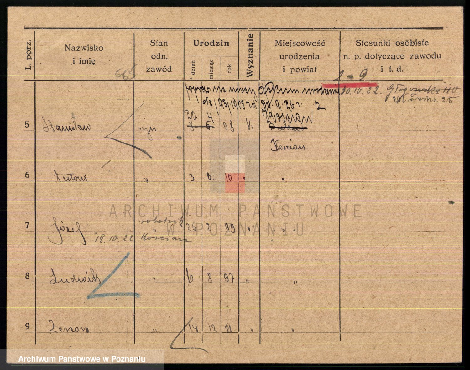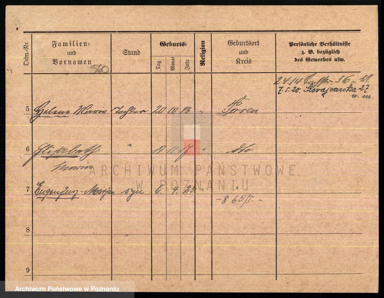 Podgląd karty osobowej dostępny jest po kliknięciu na nazwisko lub ikonkę karty. Można dokonywać powiększenia (ikony na górze) lub przechodzić między kolejnymi skanami (strzałki po bokach).