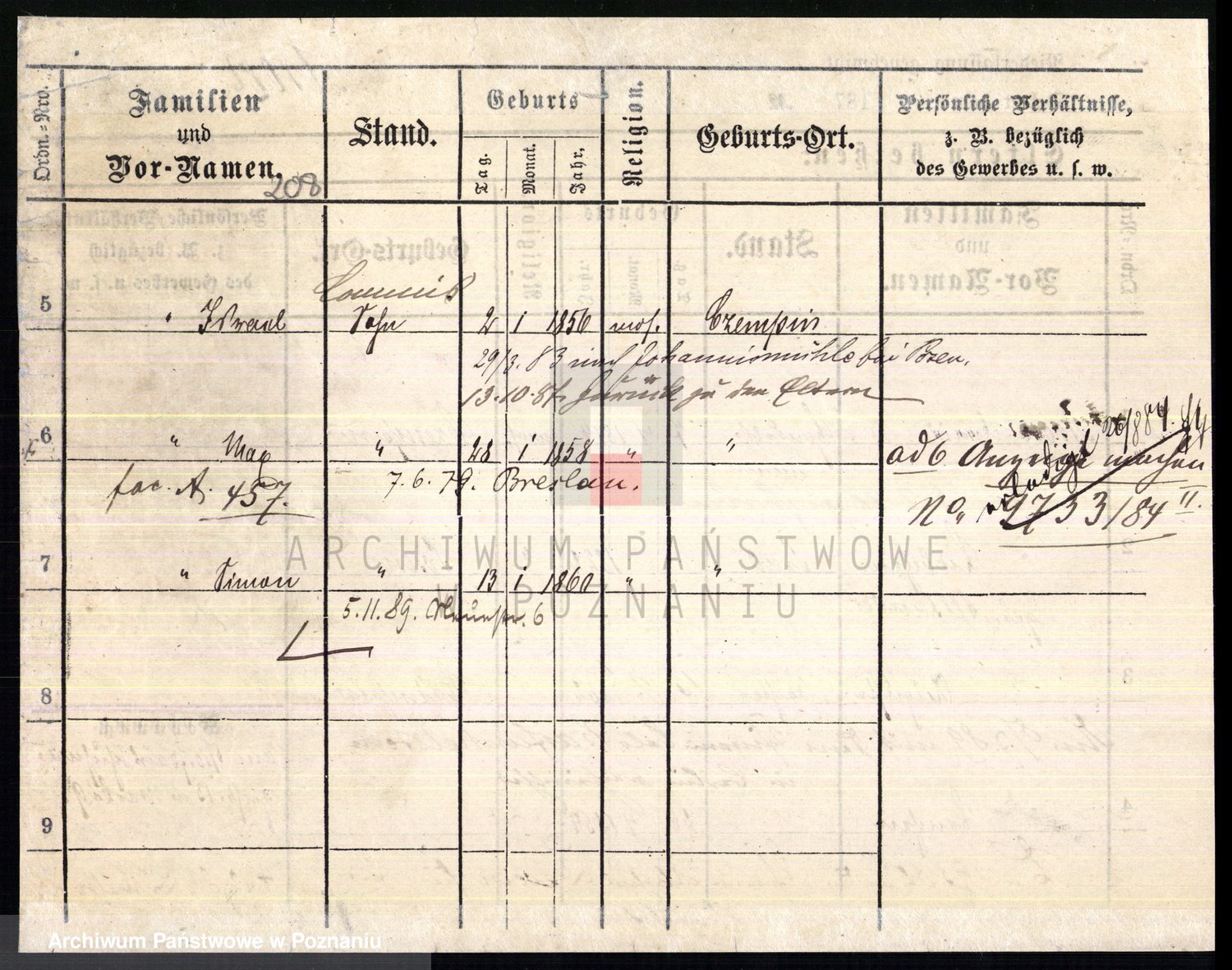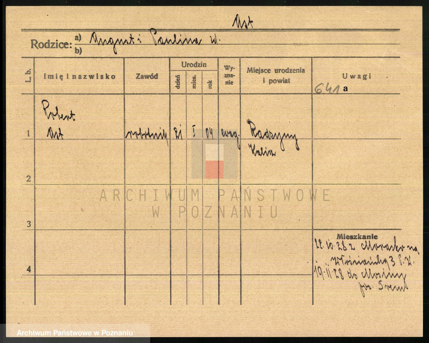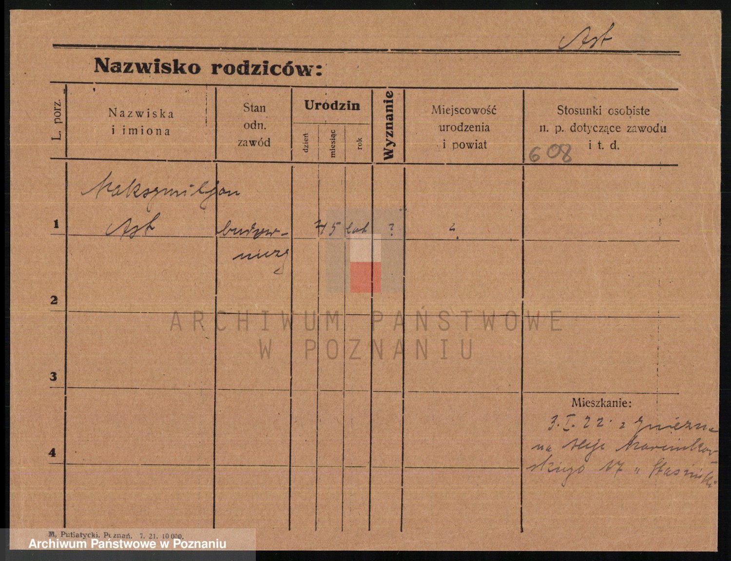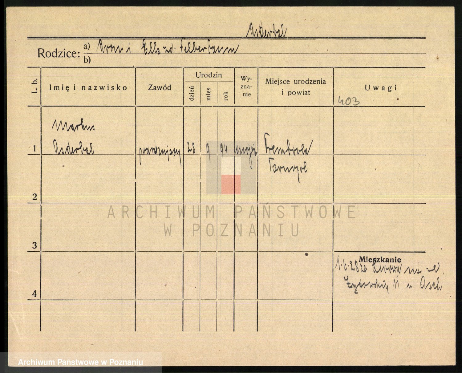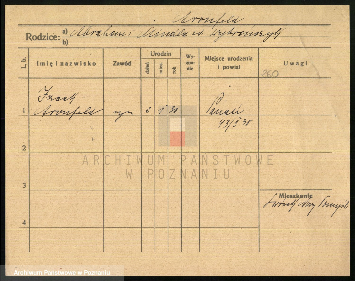 Podgląd karty osobowej dostępny jest po kliknięciu na nazwisko lub ikonkę karty. Można dokonywać powiększenia (ikony na górze) lub przechodzić między kolejnymi skanami (strzałki po bokach).
