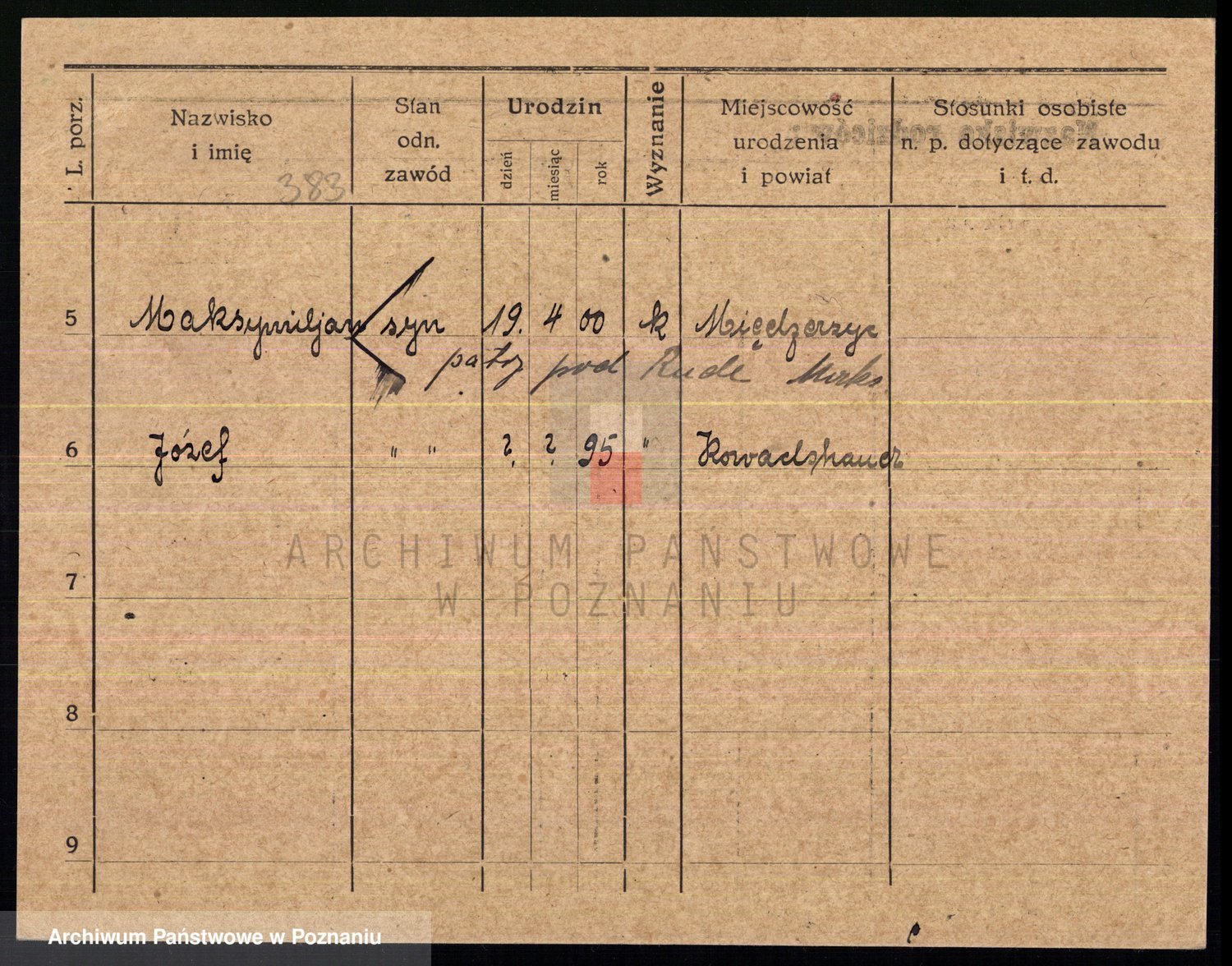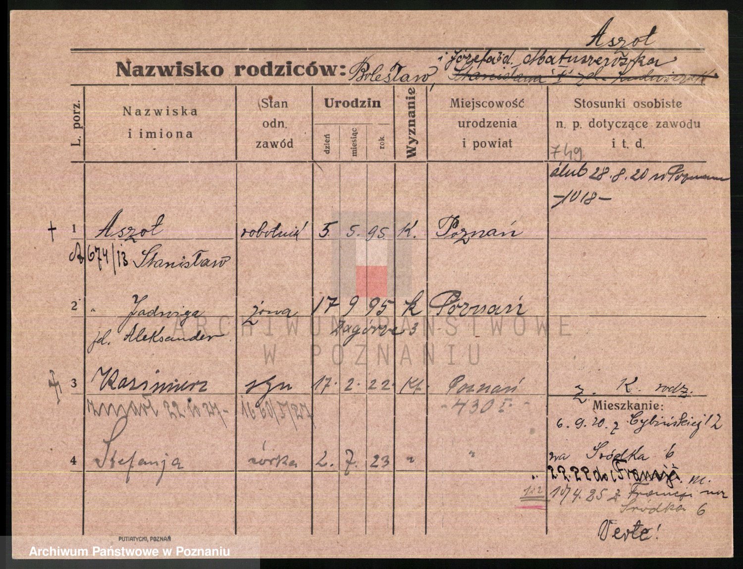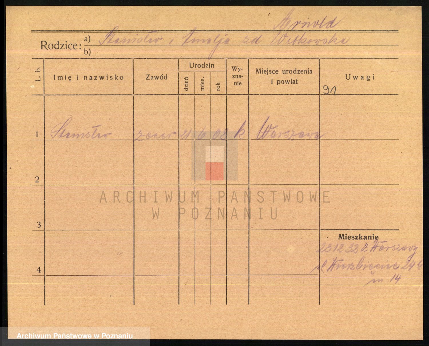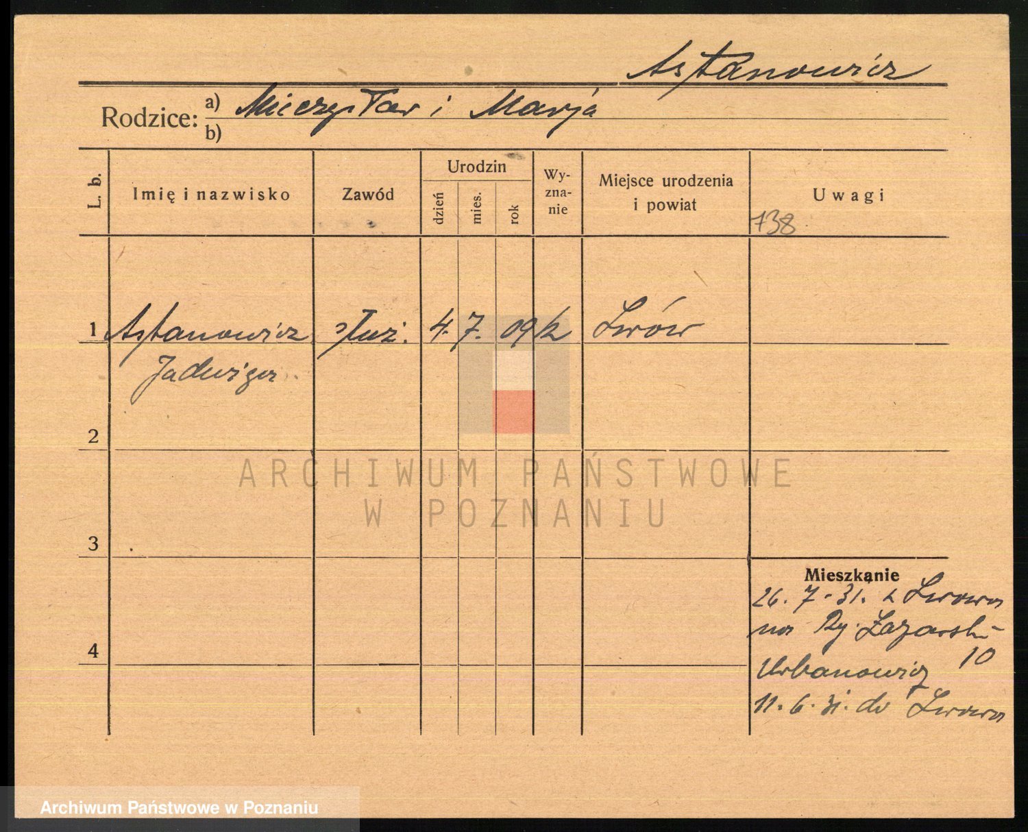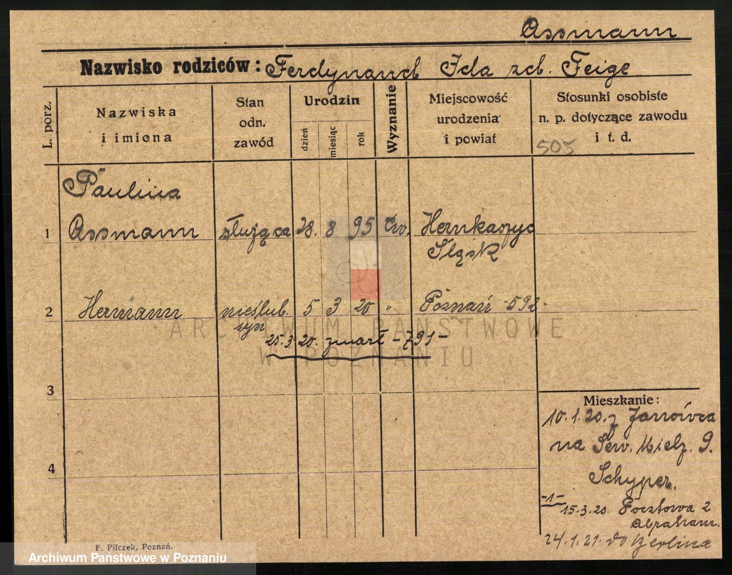 Podgląd karty osobowej dostępny jest po kliknięciu na nazwisko lub ikonkę karty. Można dokonywać powiększenia (ikony na górze) lub przechodzić między kolejnymi skanami (strzałki po bokach).