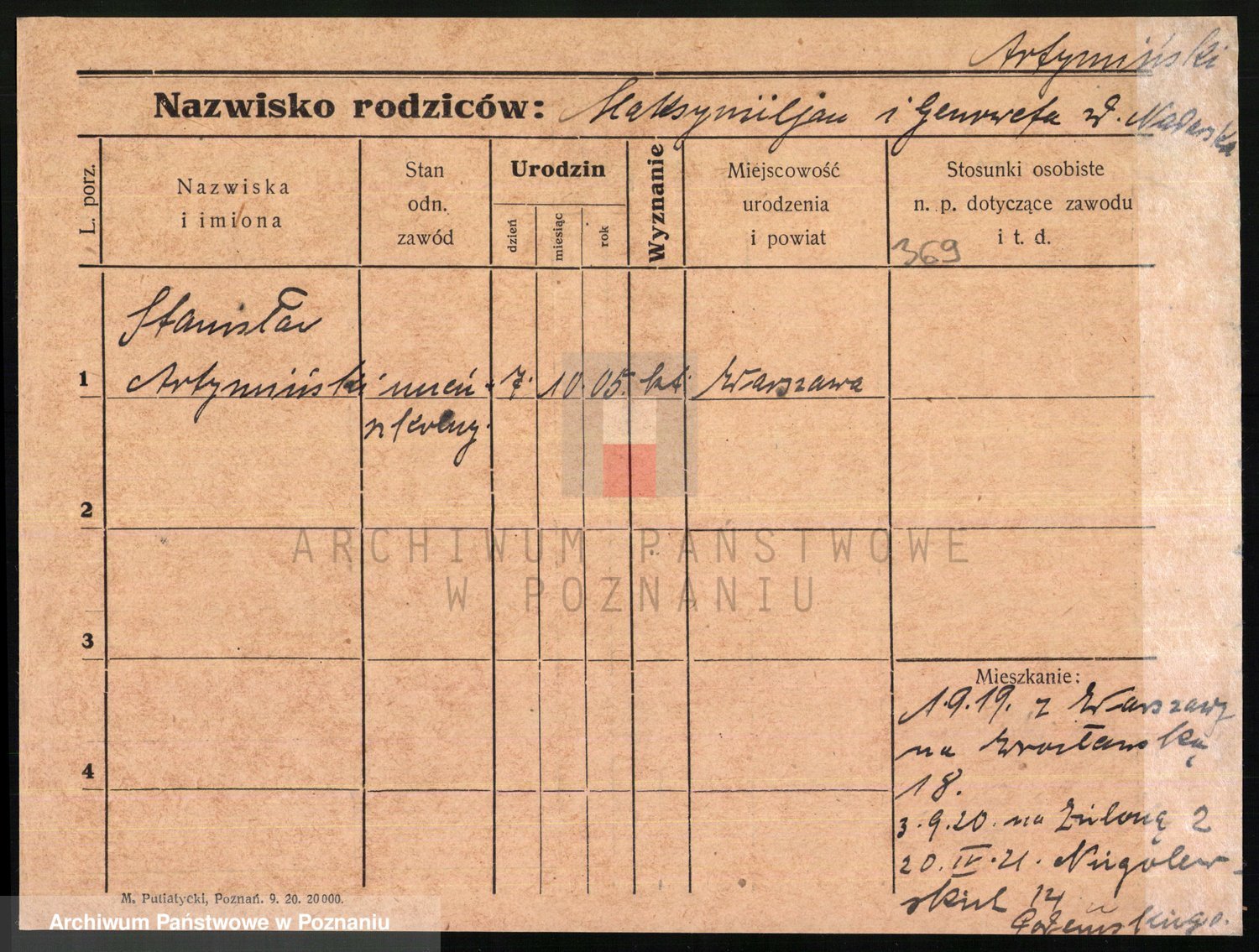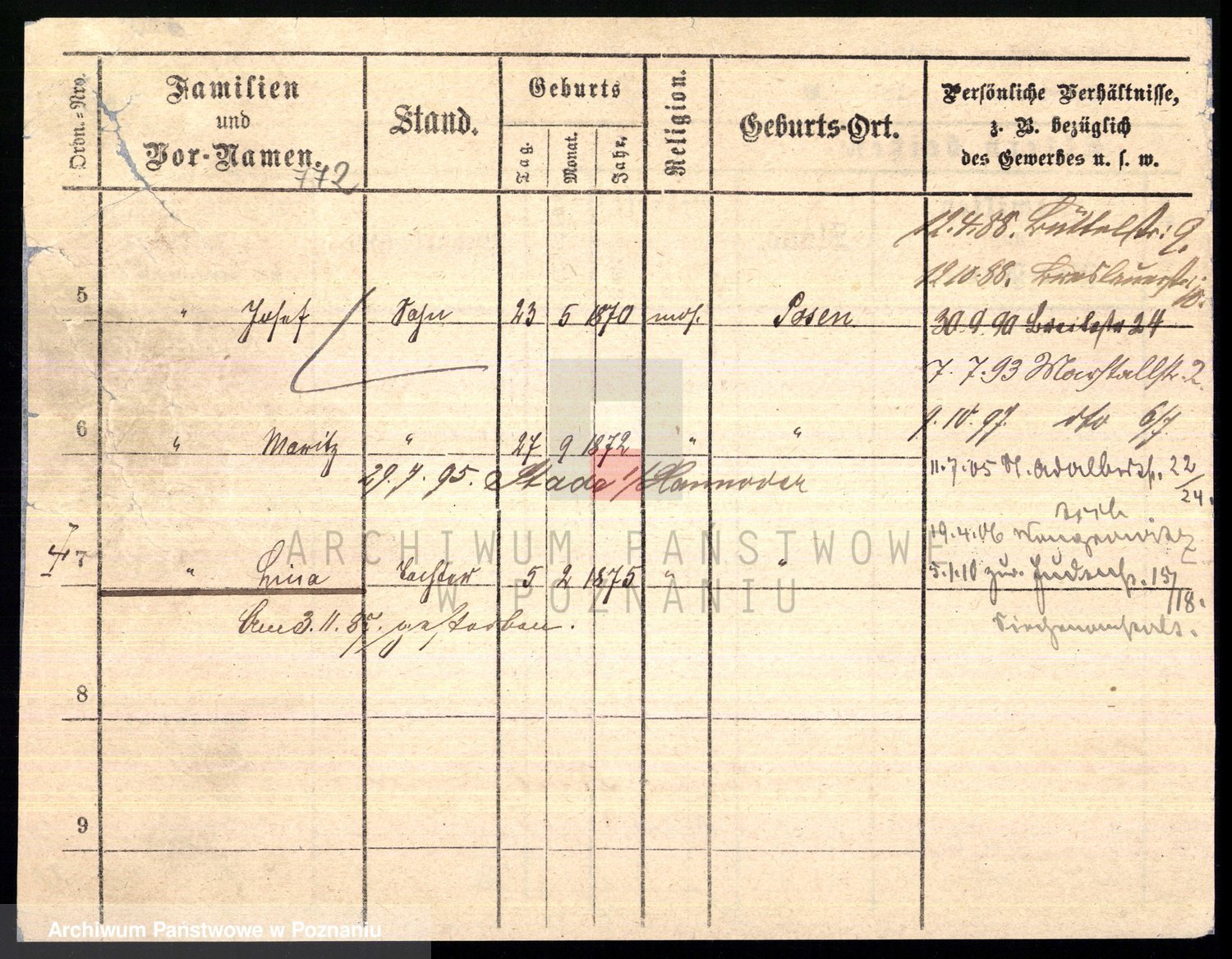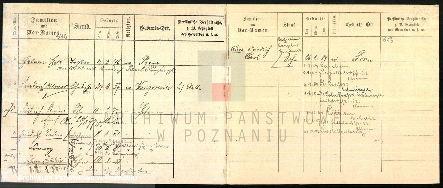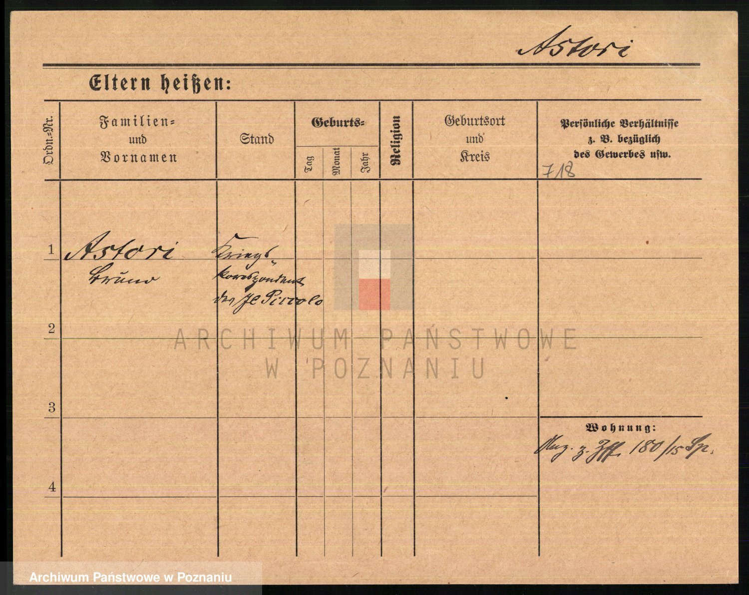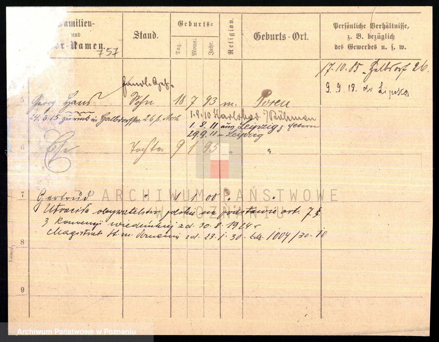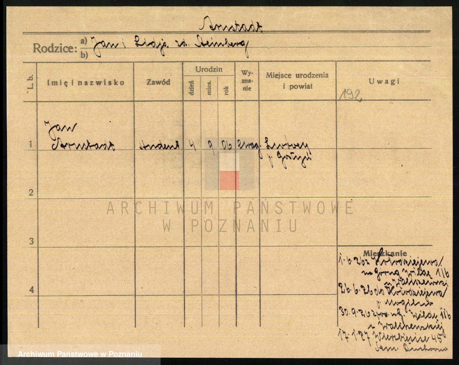 Podgląd karty osobowej dostępny jest po kliknięciu na nazwisko lub ikonkę karty. Można dokonywać powiększenia (ikony na górze) lub przechodzić między kolejnymi skanami (strzałki po bokach).