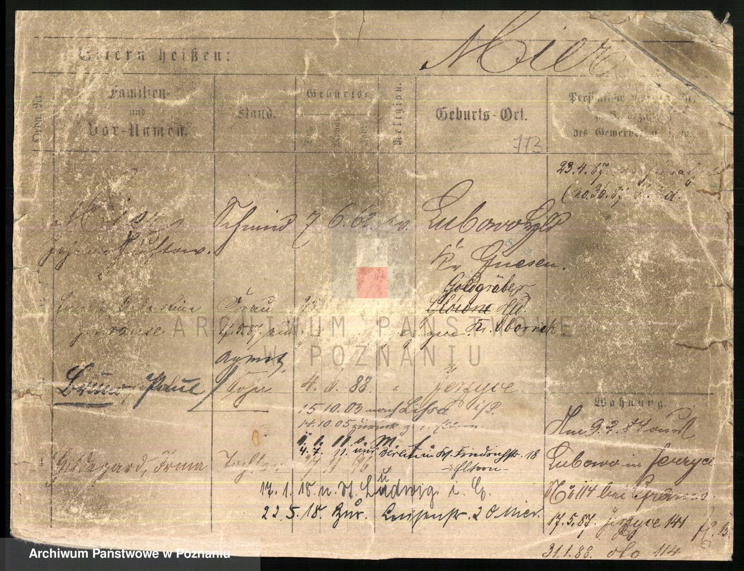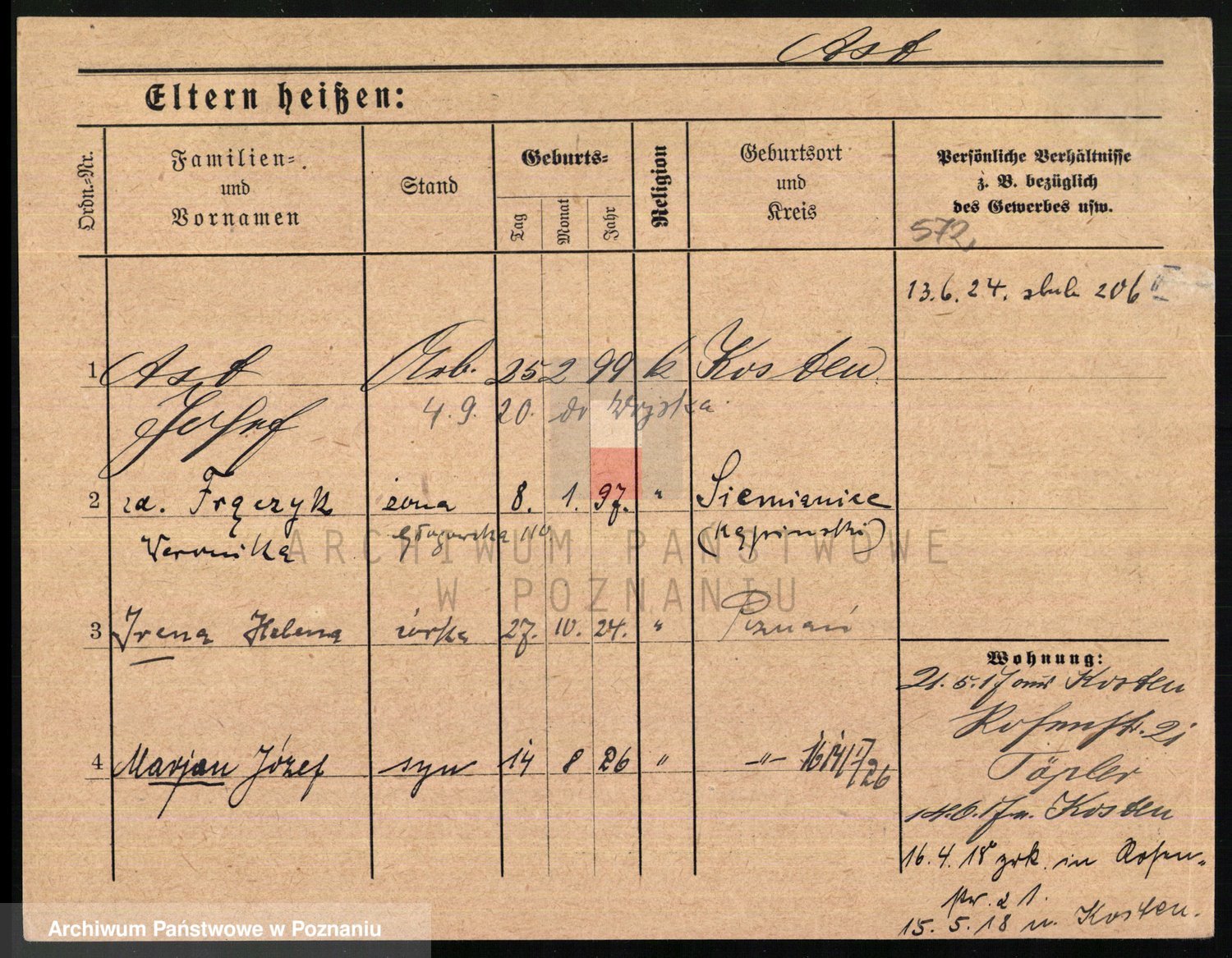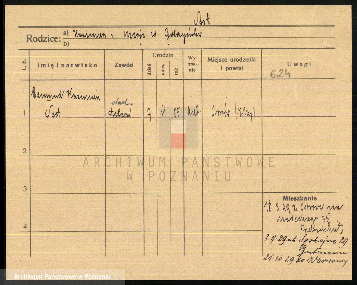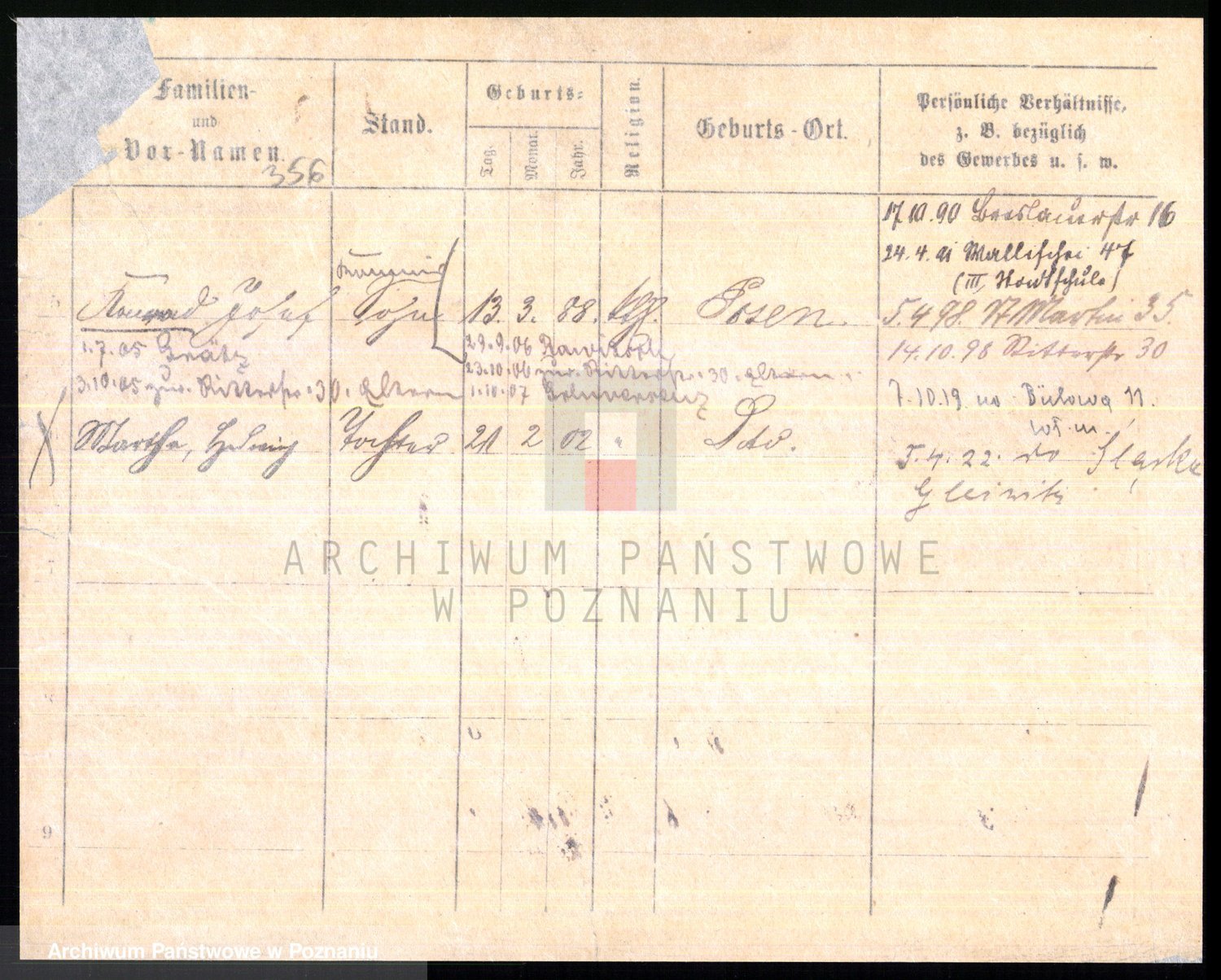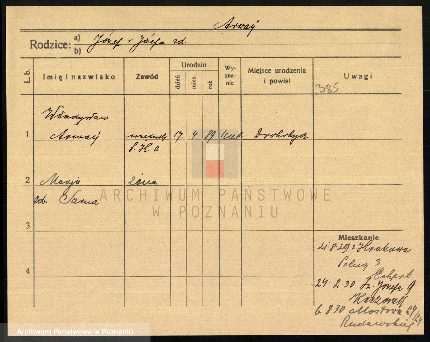 Podgląd karty osobowej dostępny jest po kliknięciu na nazwisko lub ikonkę karty. Można dokonywać powiększenia (ikony na górze) lub przechodzić między kolejnymi skanami (strzałki po bokach).
