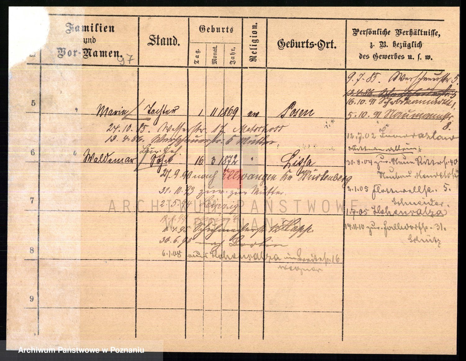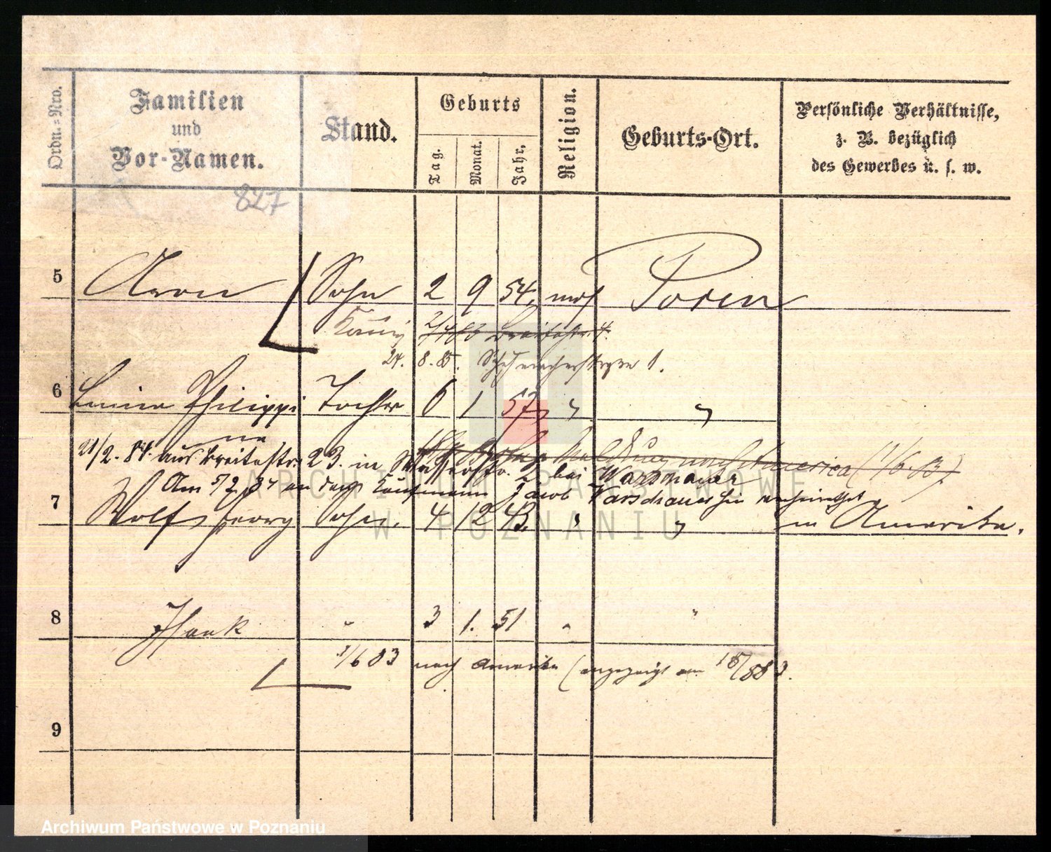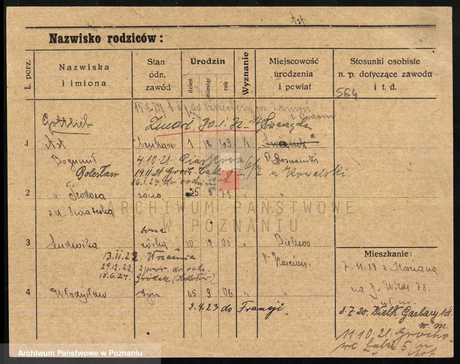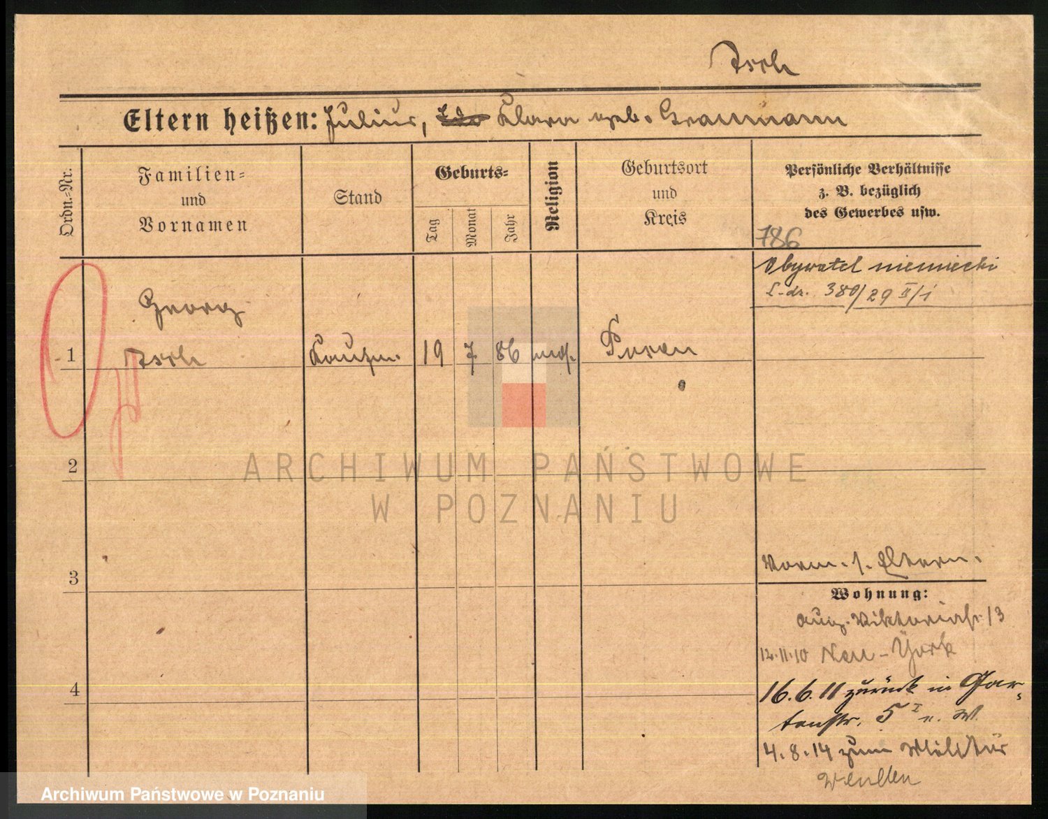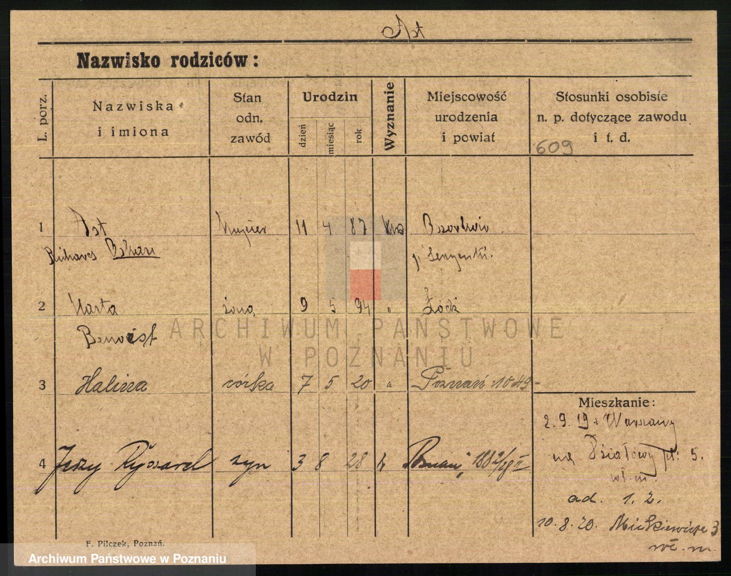 Podgląd karty osobowej dostępny jest po kliknięciu na nazwisko lub ikonkę karty. Można dokonywać powiększenia (ikony na górze) lub przechodzić między kolejnymi skanami (strzałki po bokach).