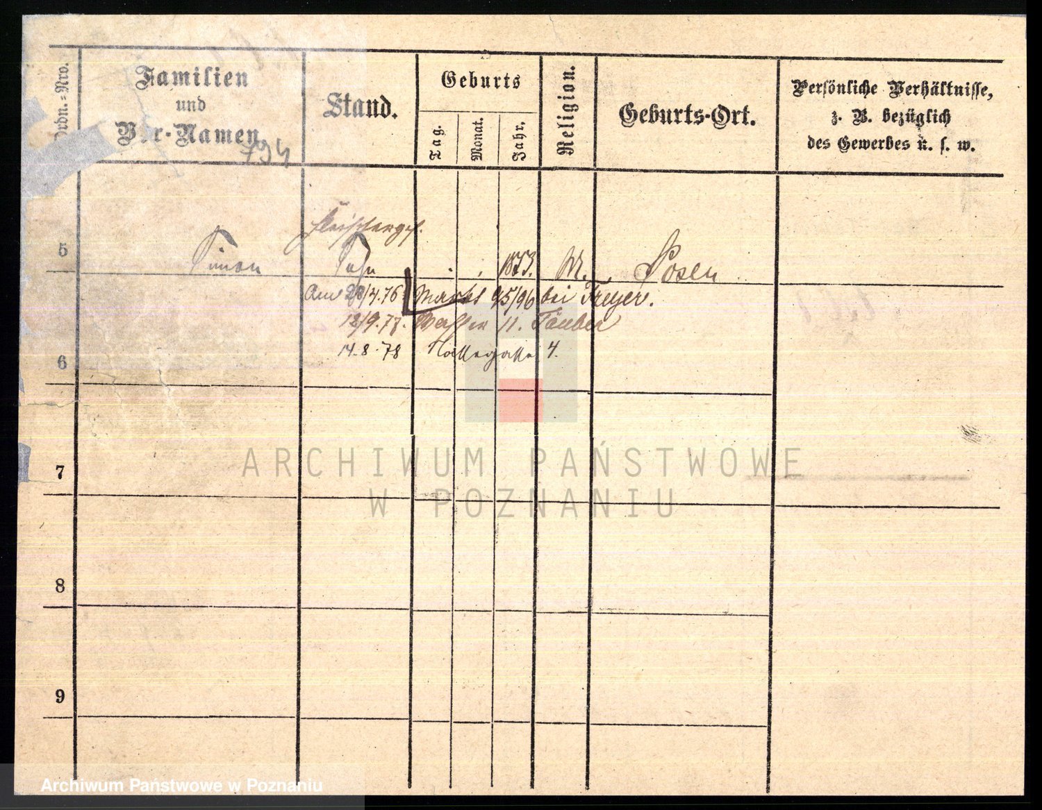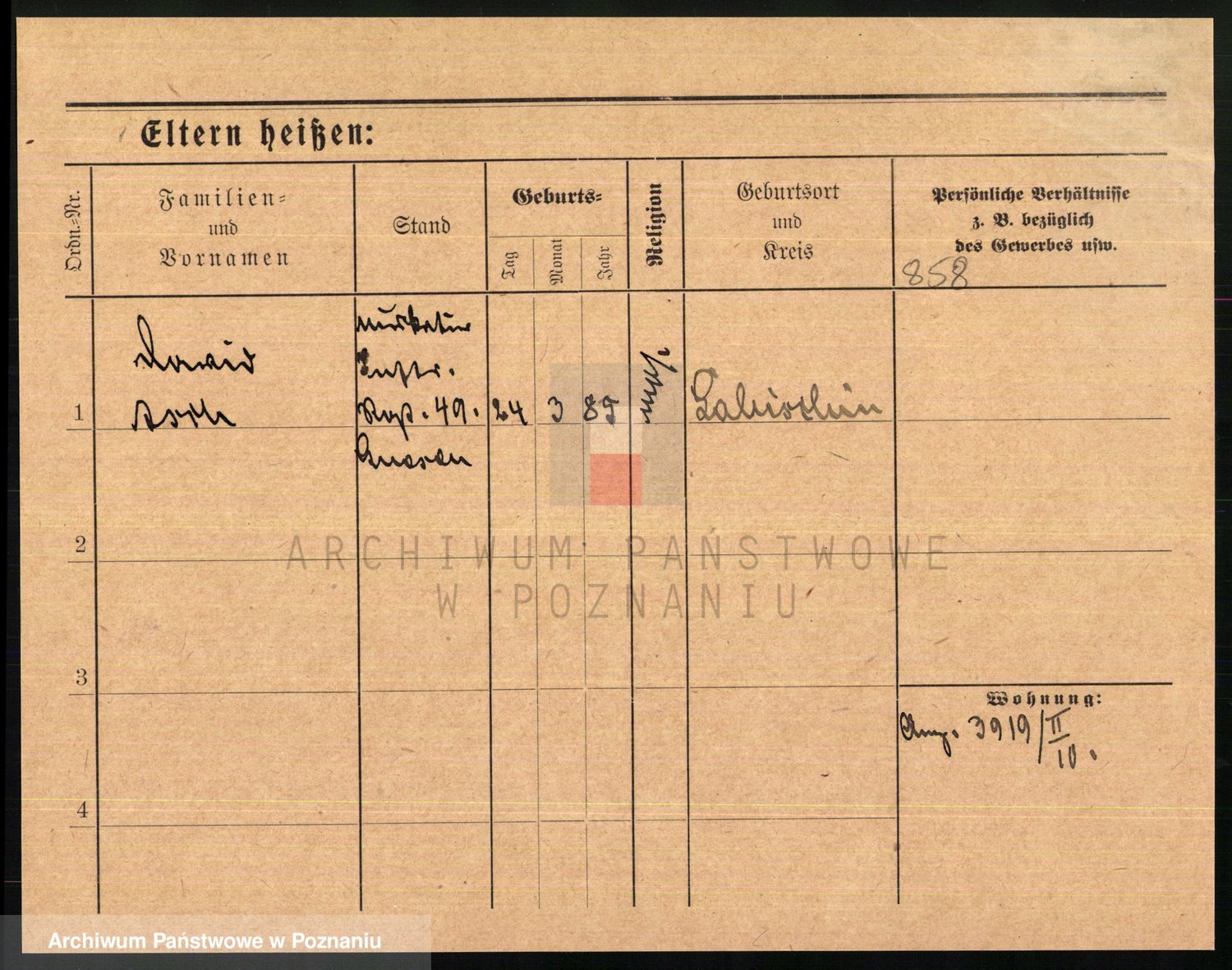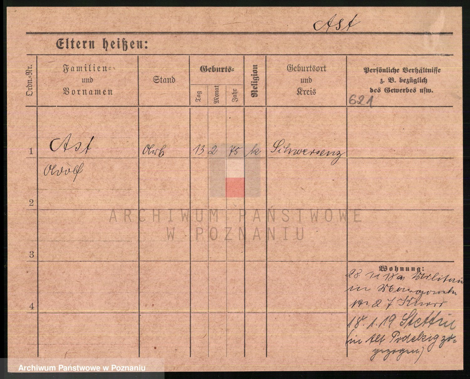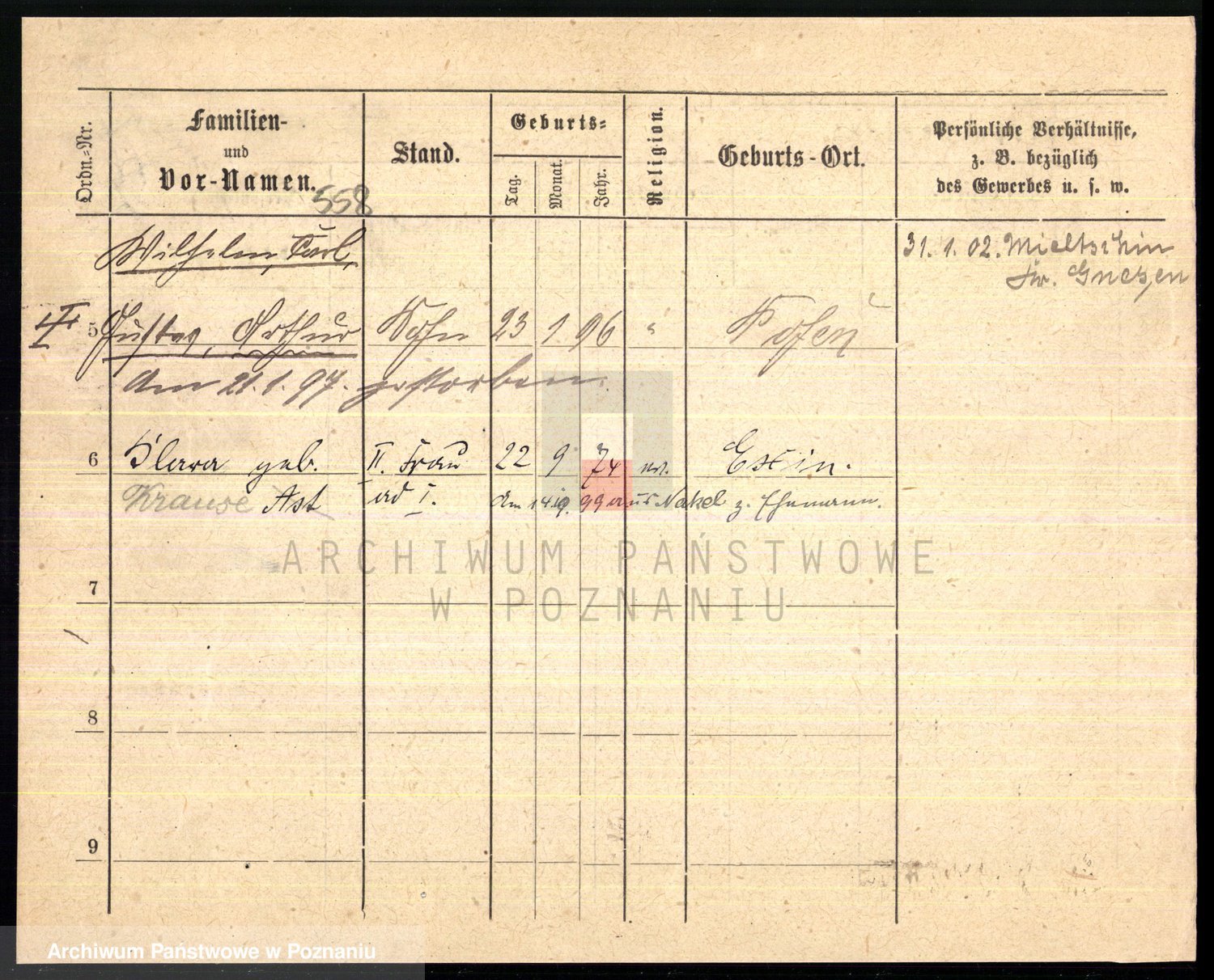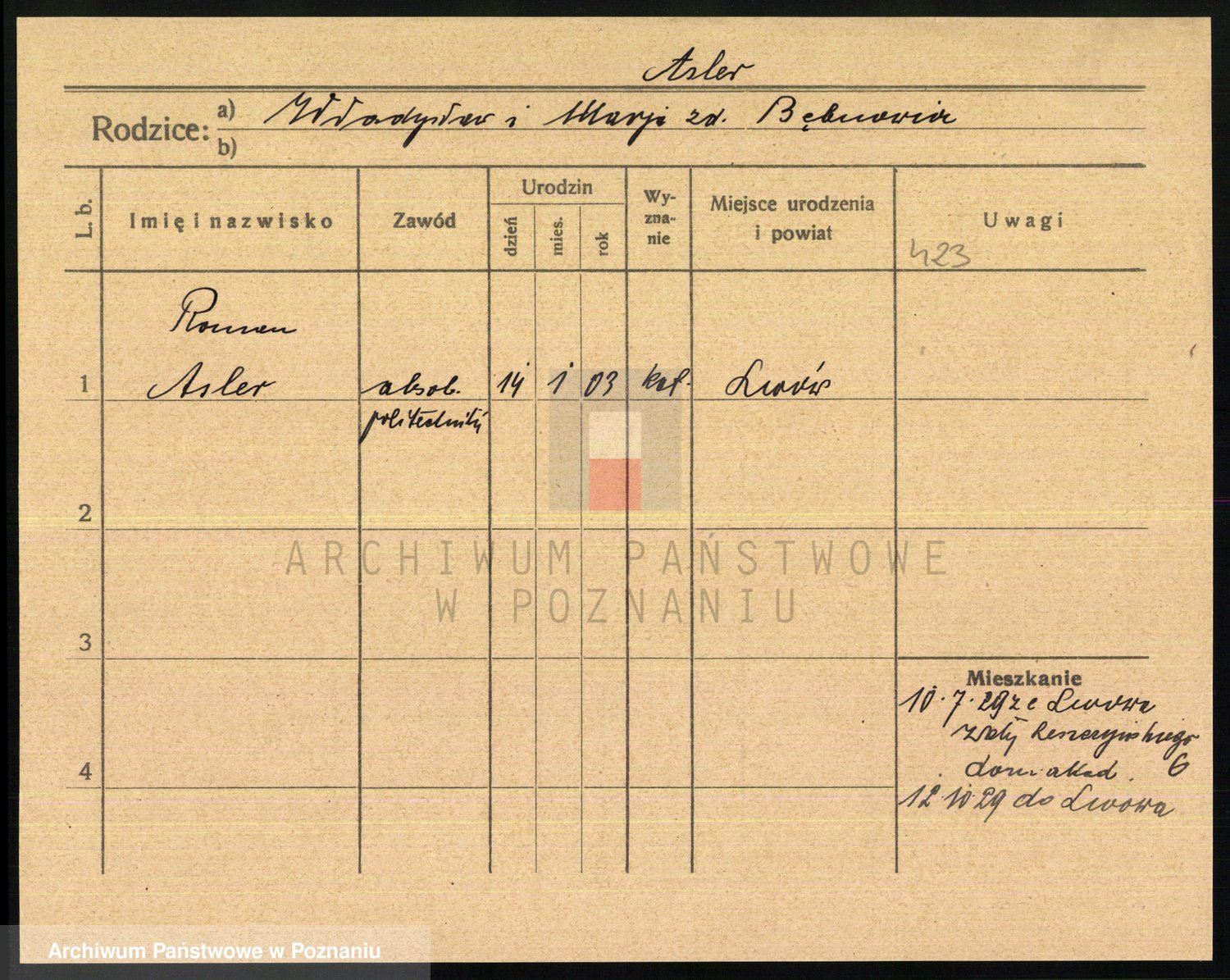Podgląd karty osobowej dostępny jest po kliknięciu na nazwisko lub ikonkę karty. Można dokonywać powiększenia (ikony na górze) lub przechodzić między kolejnymi skanami (strzałki po bokach).