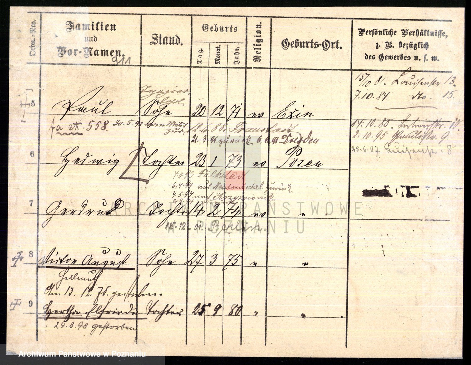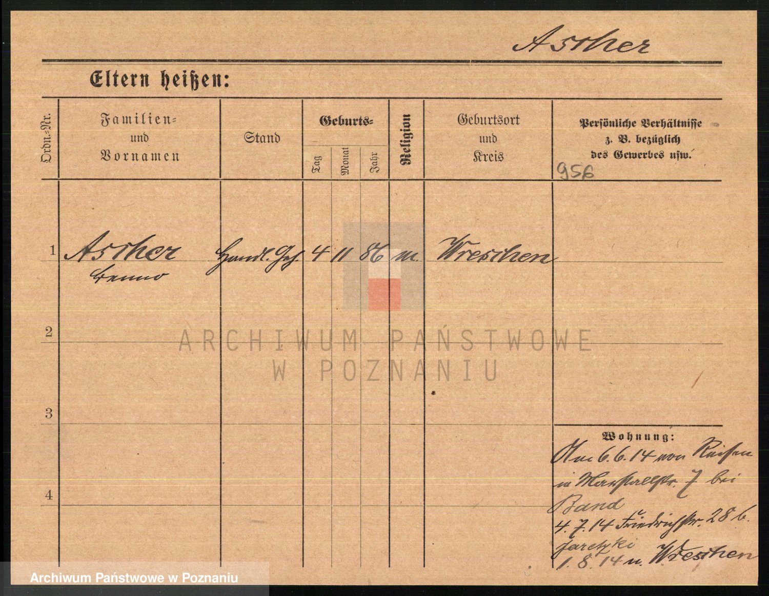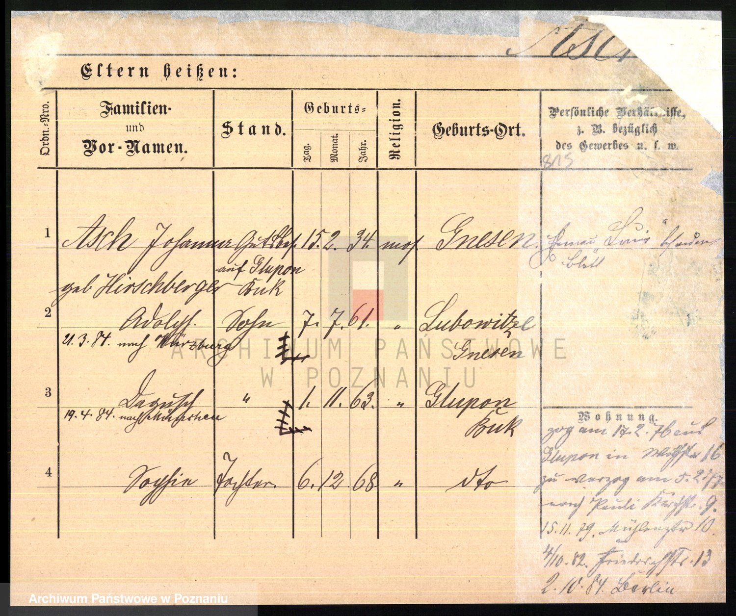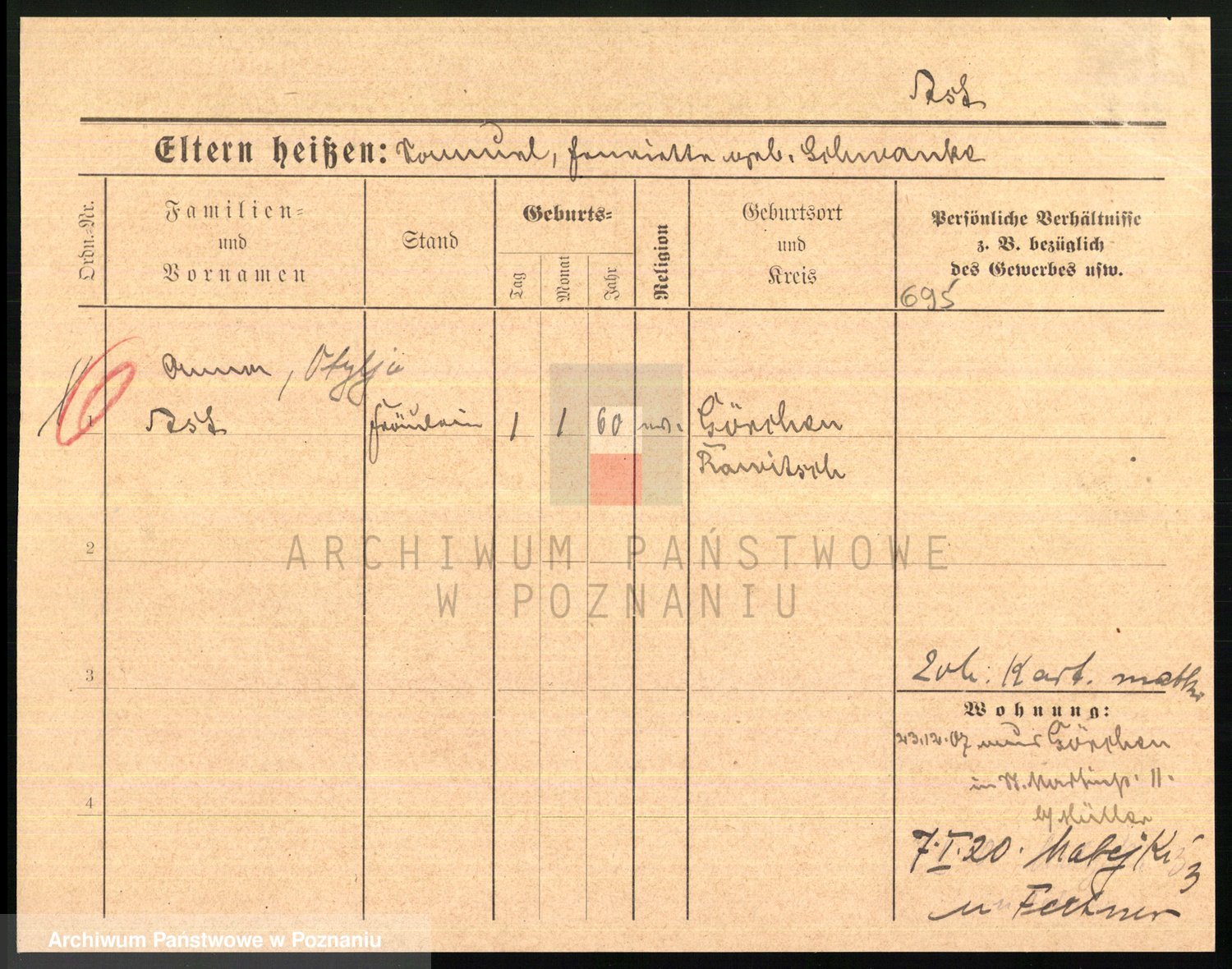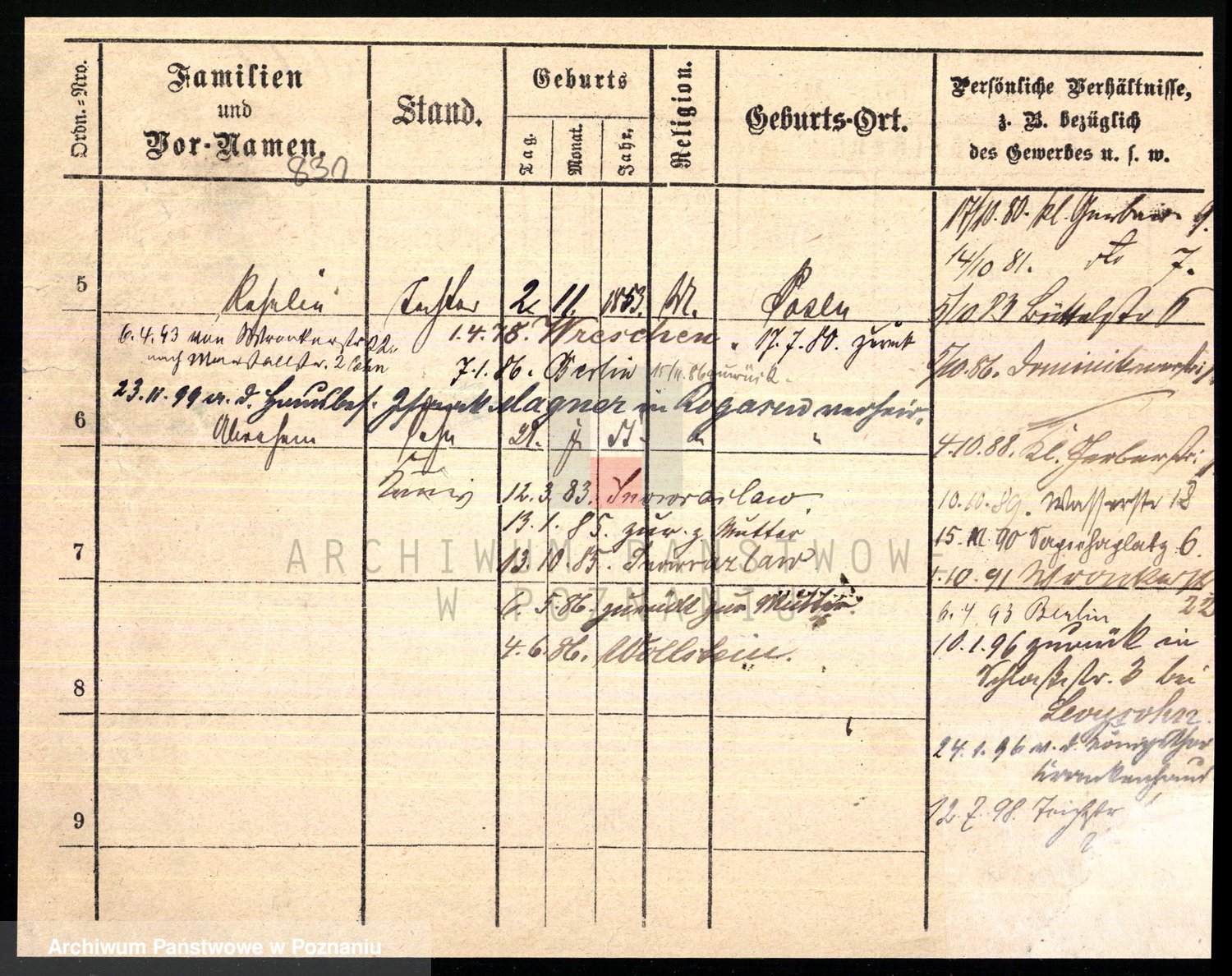 Podgląd karty osobowej dostępny jest po kliknięciu na nazwisko lub ikonkę karty. Można dokonywać powiększenia (ikony na górze) lub przechodzić między kolejnymi skanami (strzałki po bokach).