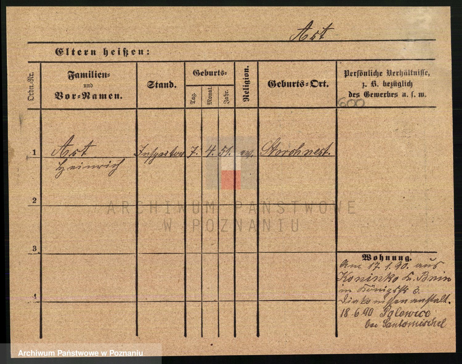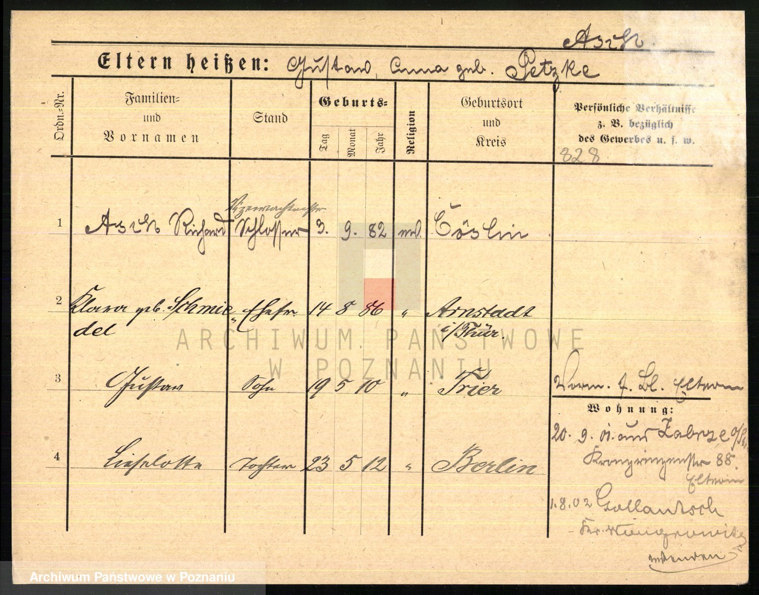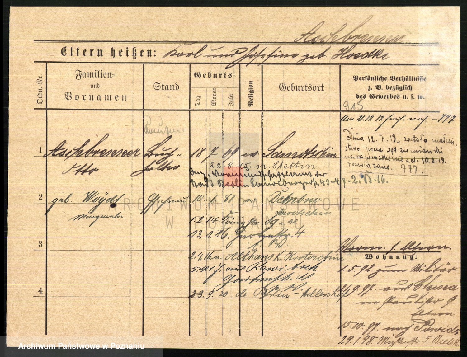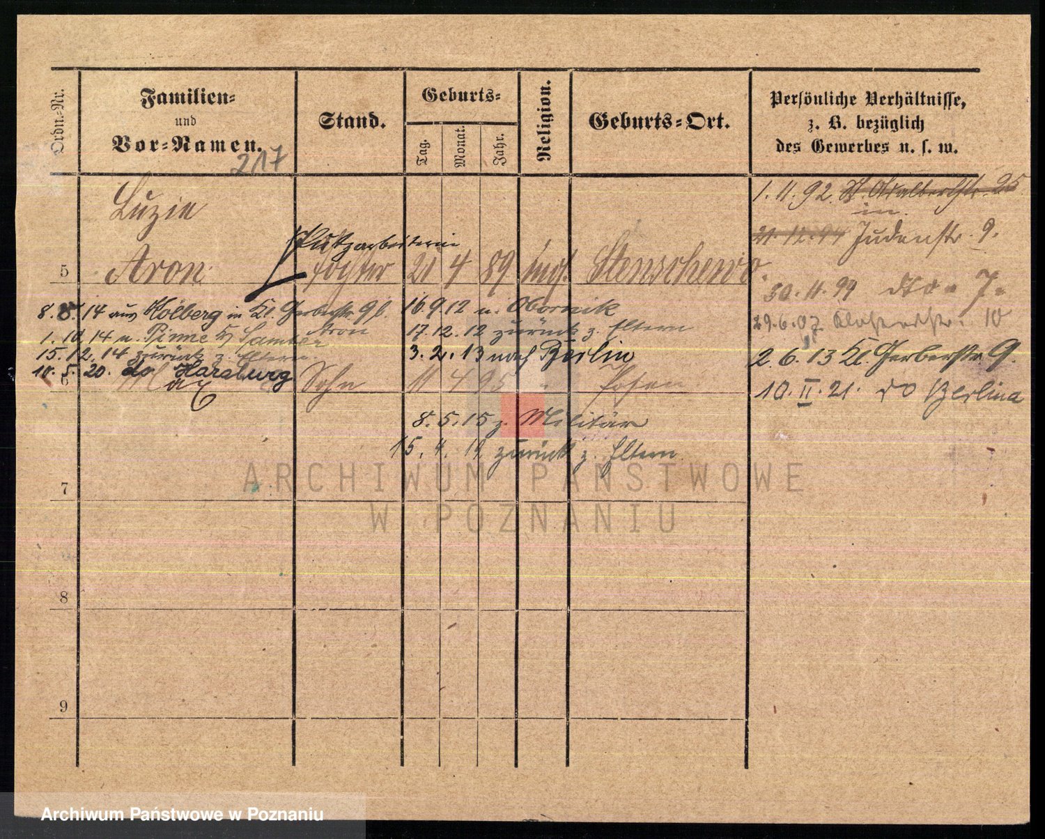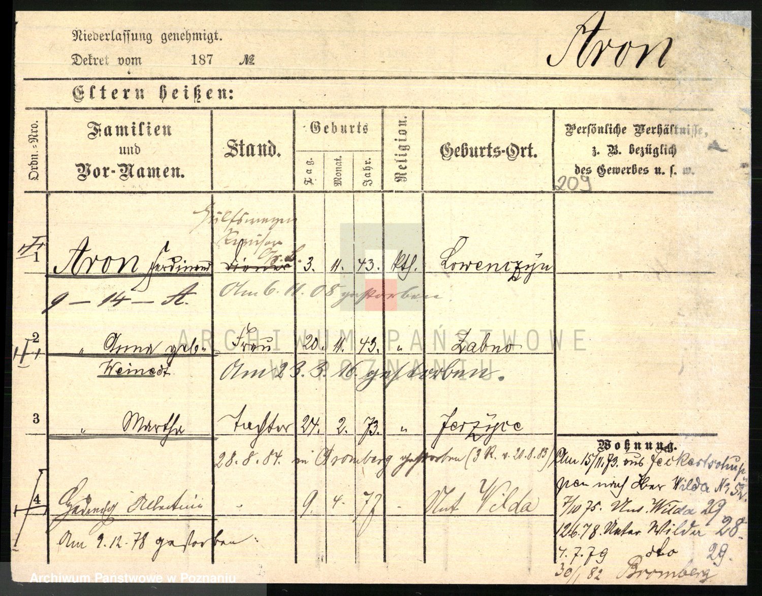 Podgląd karty osobowej dostępny jest po kliknięciu na nazwisko lub ikonkę karty. Można dokonywać powiększenia (ikony na górze) lub przechodzić między kolejnymi skanami (strzałki po bokach).