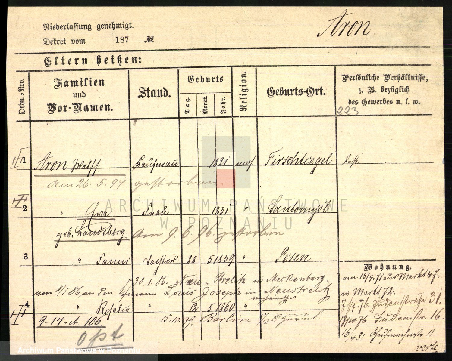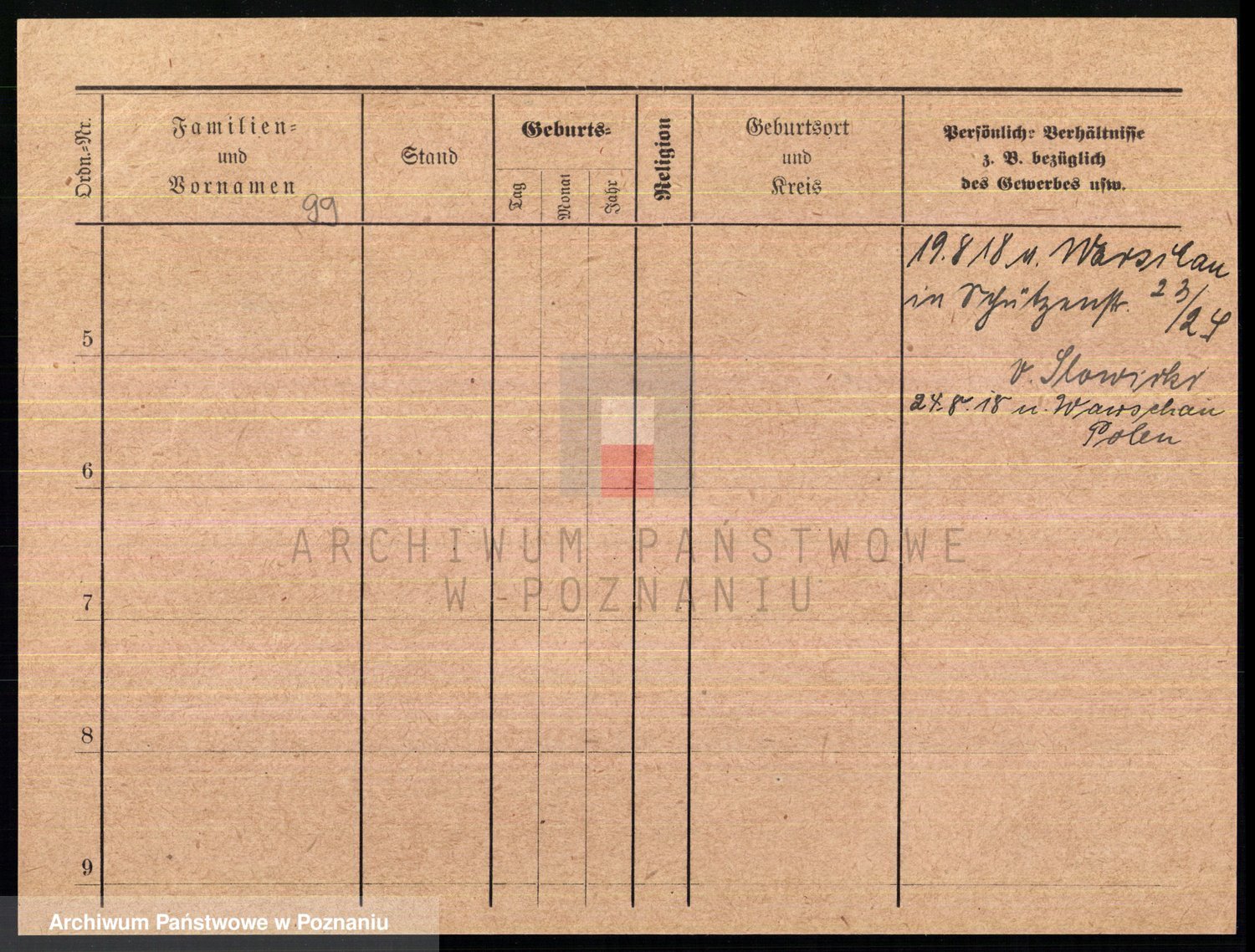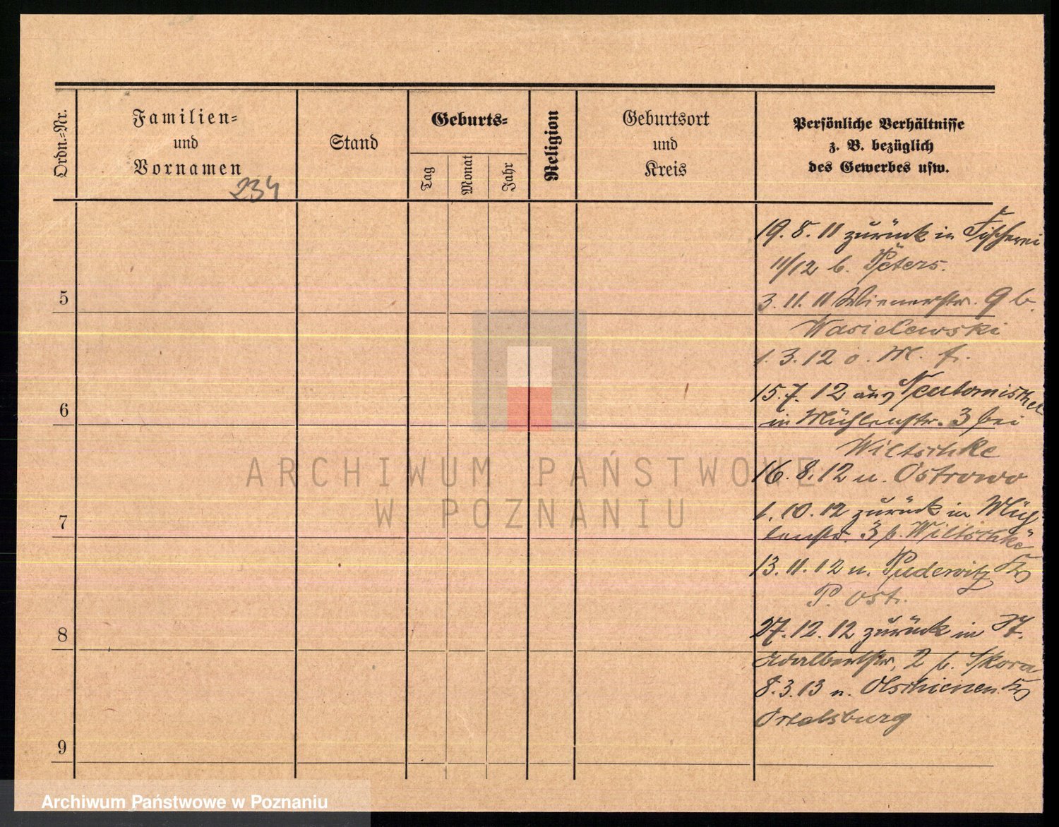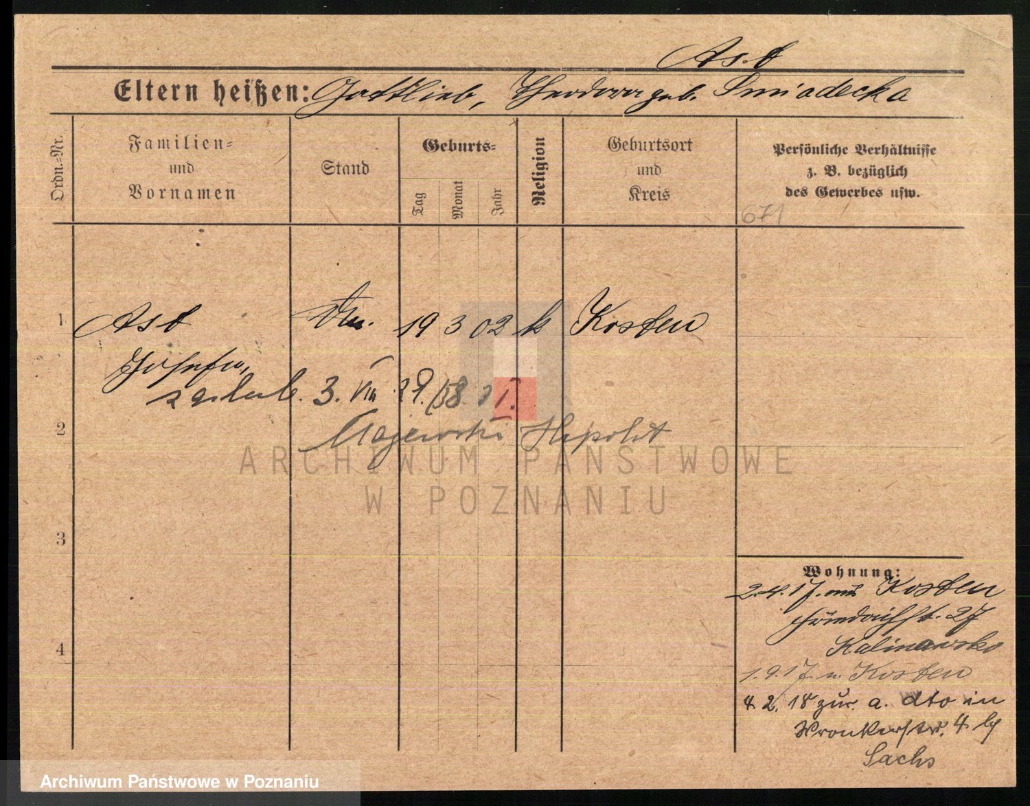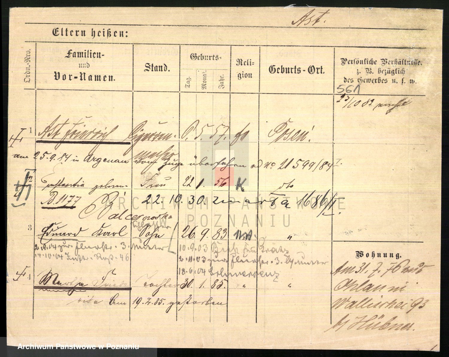 Podgląd karty osobowej dostępny jest po kliknięciu na nazwisko lub ikonkę karty. Można dokonywać powiększenia (ikony na górze) lub przechodzić między kolejnymi skanami (strzałki po bokach).