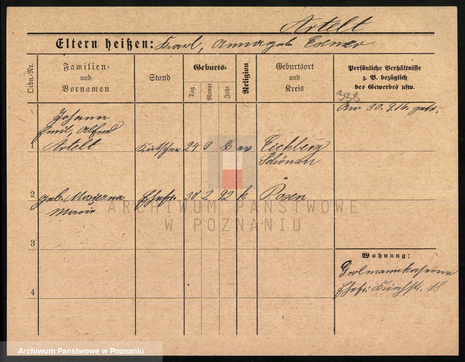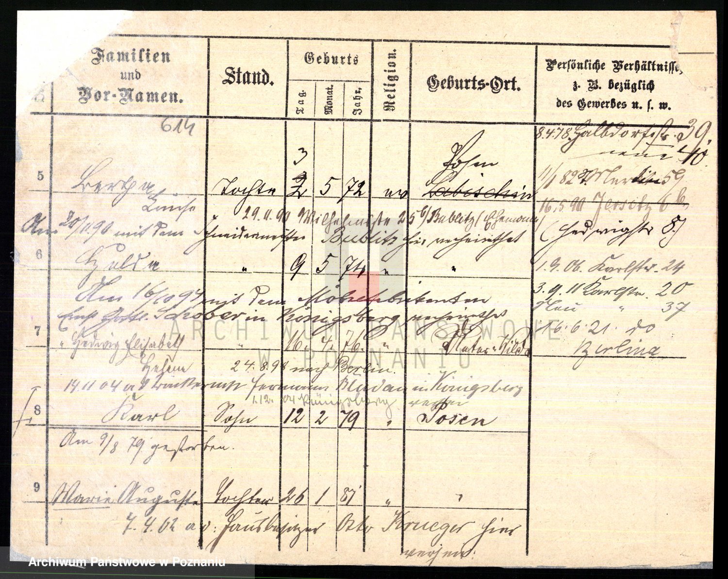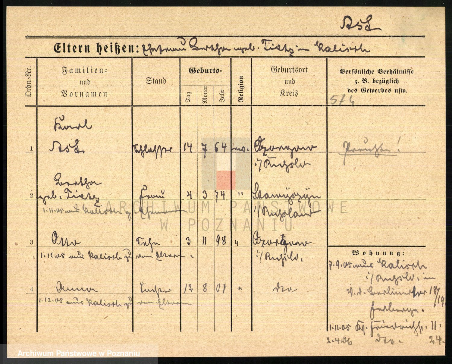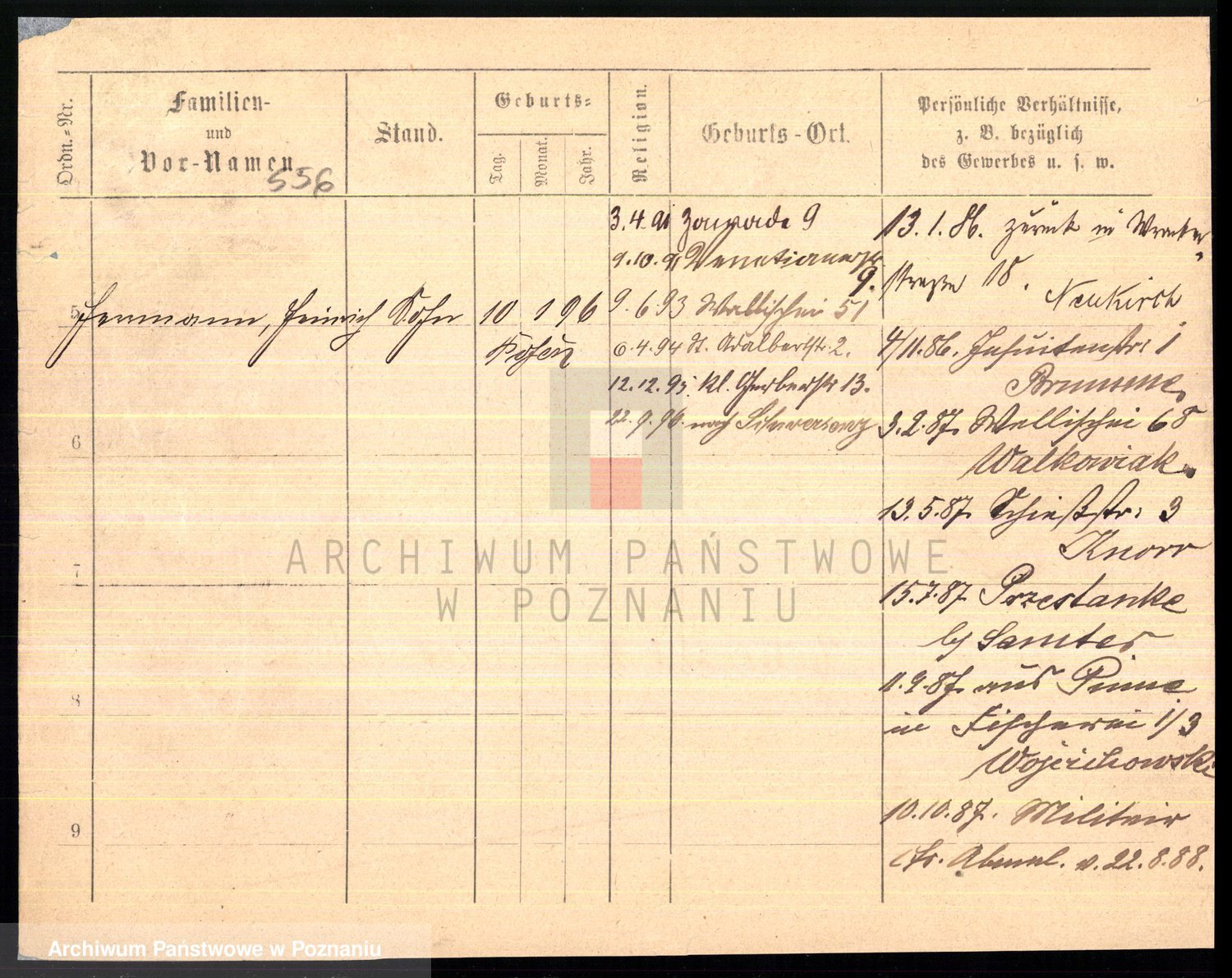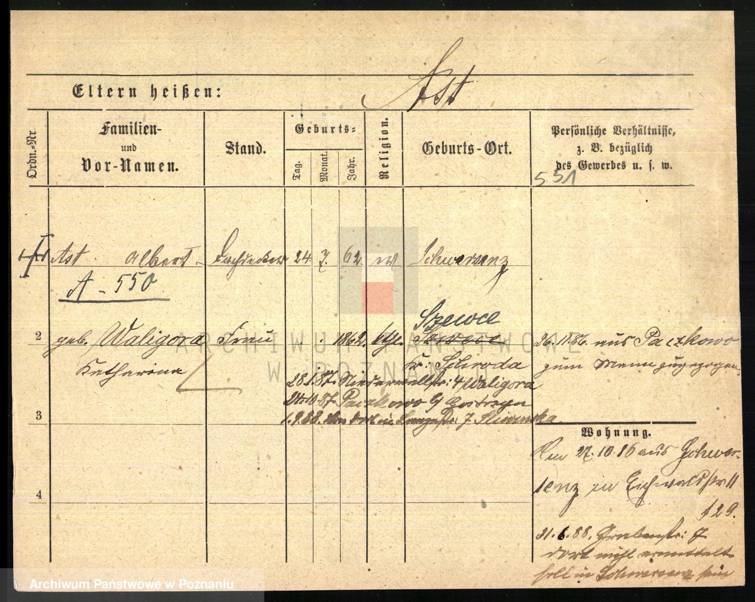 Podgląd karty osobowej dostępny jest po kliknięciu na nazwisko lub ikonkę karty. Można dokonywać powiększenia (ikony na górze) lub przechodzić między kolejnymi skanami (strzałki po bokach).