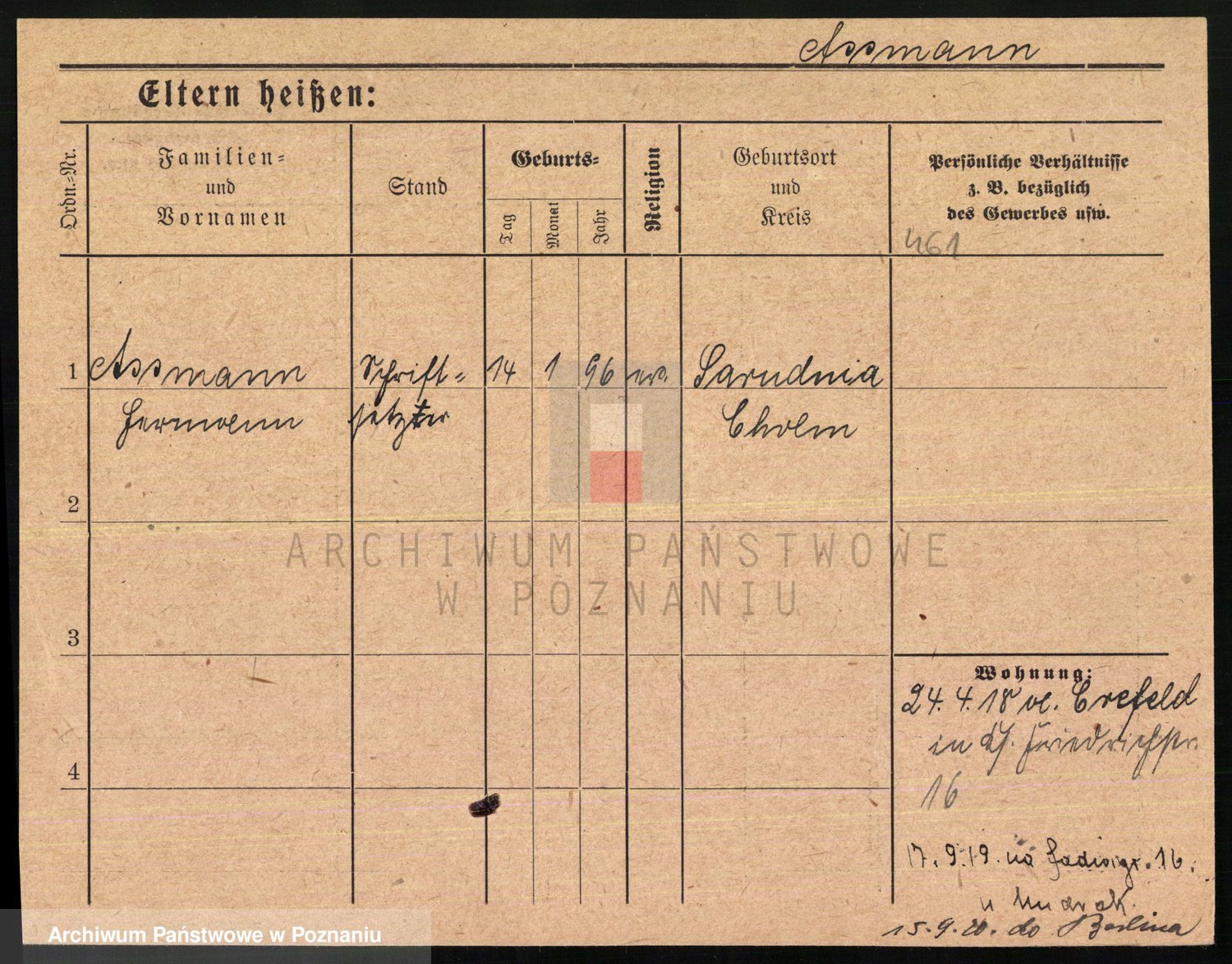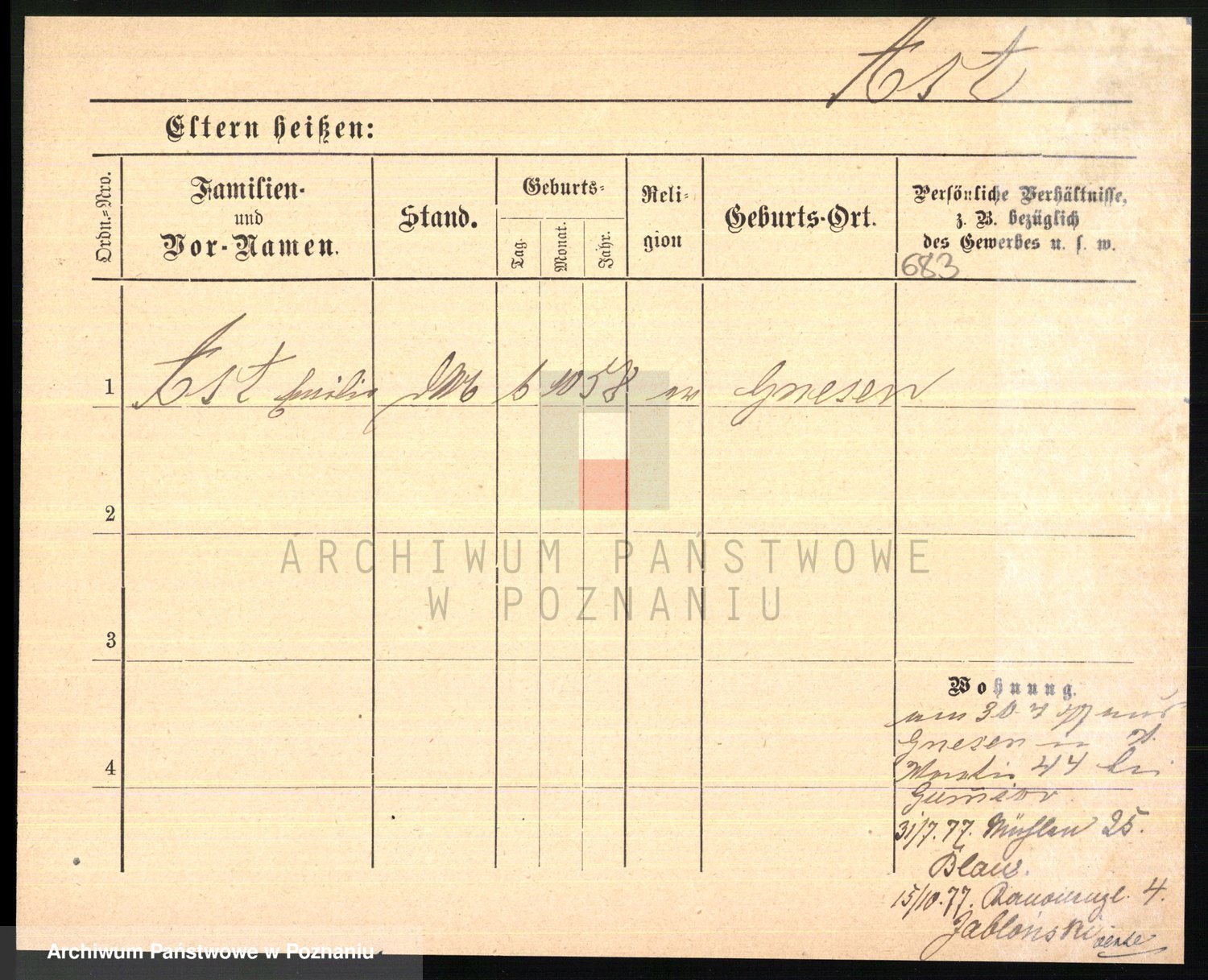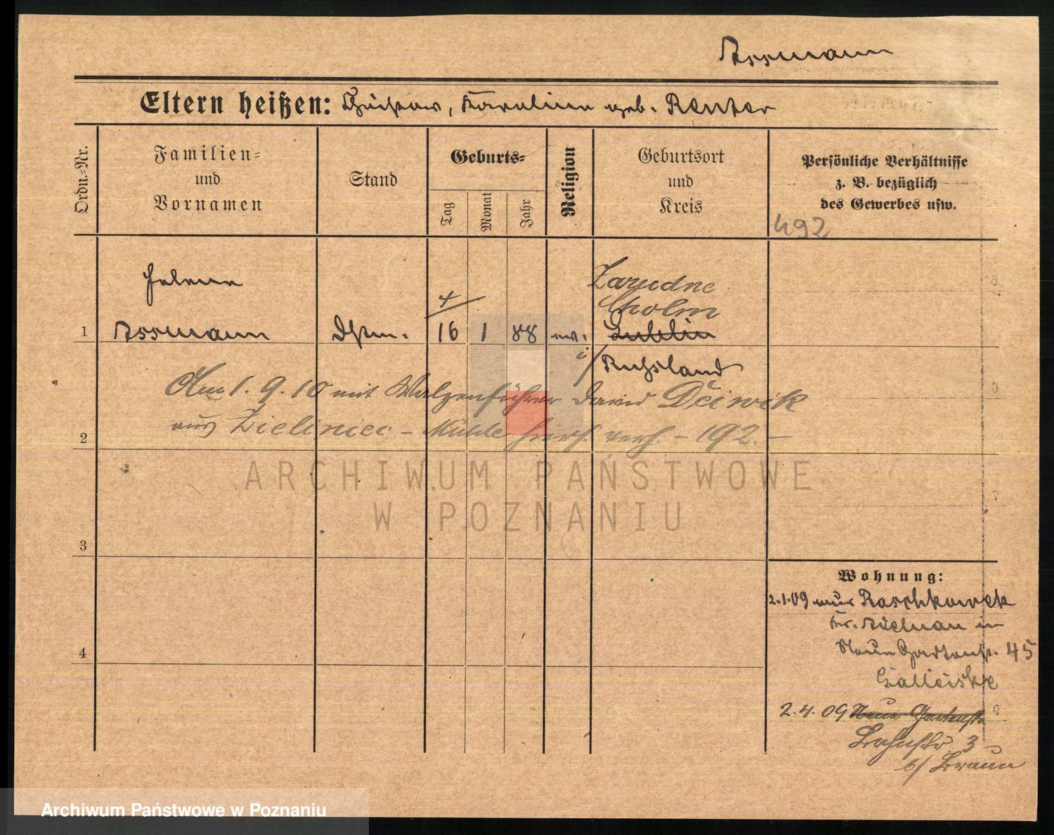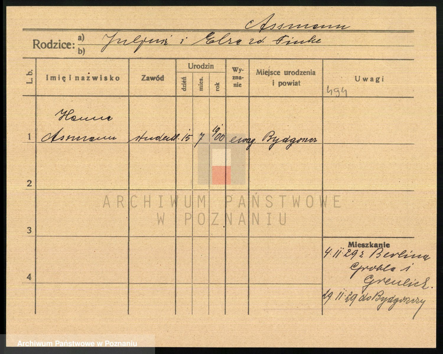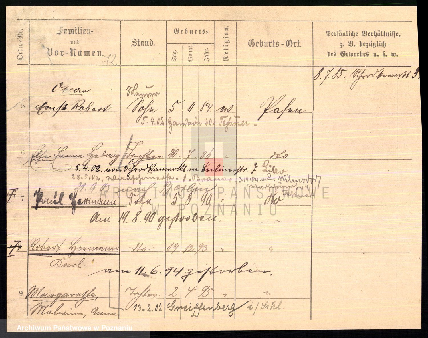 Podgląd karty osobowej dostępny jest po kliknięciu na nazwisko lub ikonkę karty. Można dokonywać powiększenia (ikony na górze) lub przechodzić między kolejnymi skanami (strzałki po bokach).
